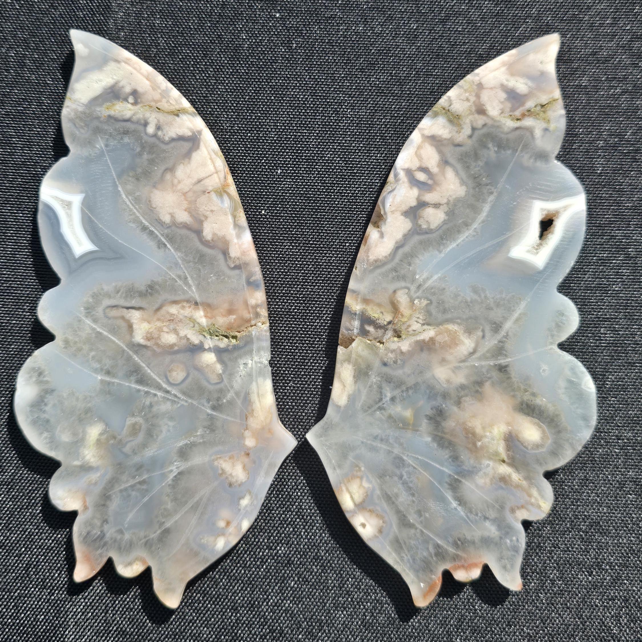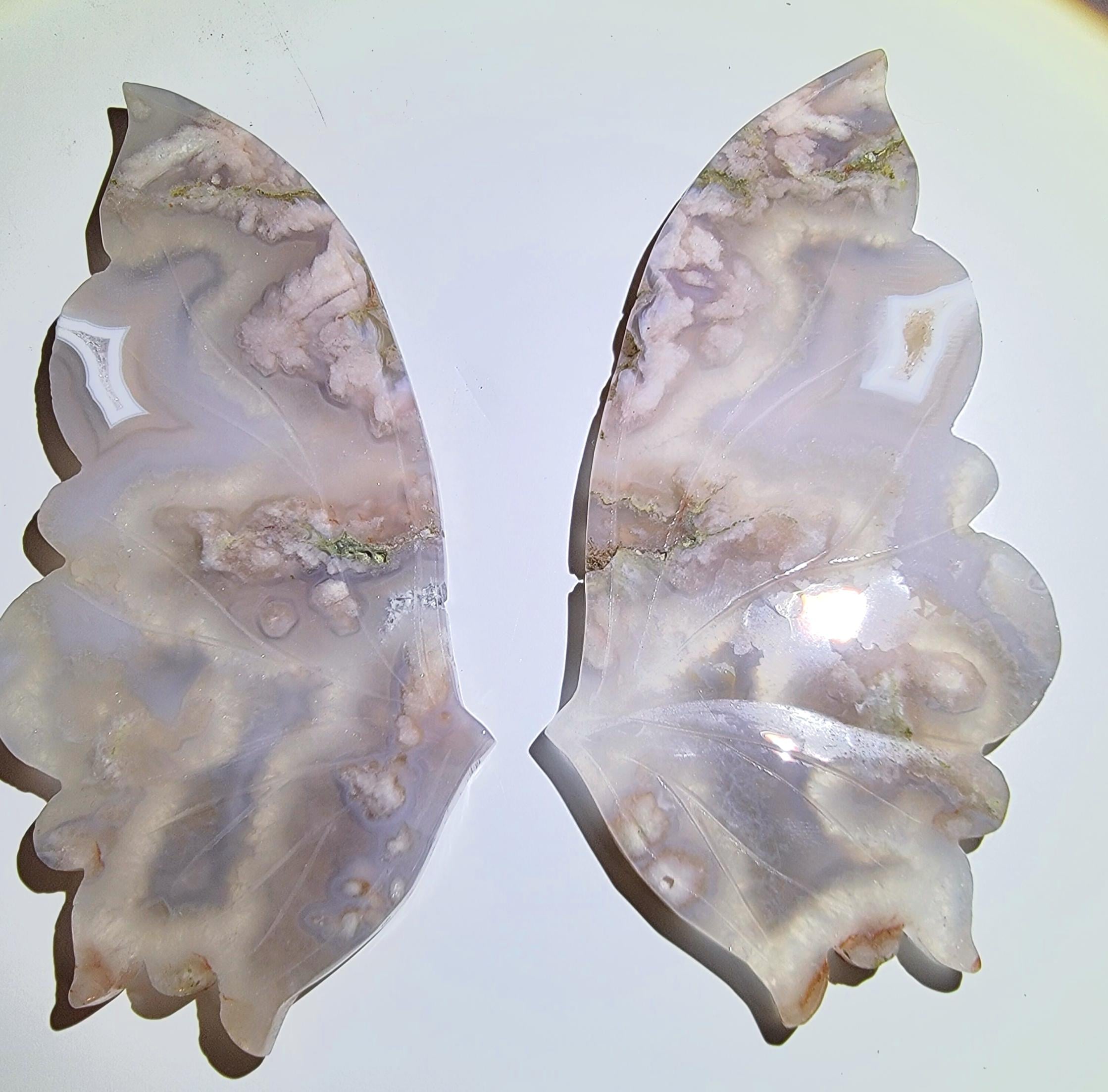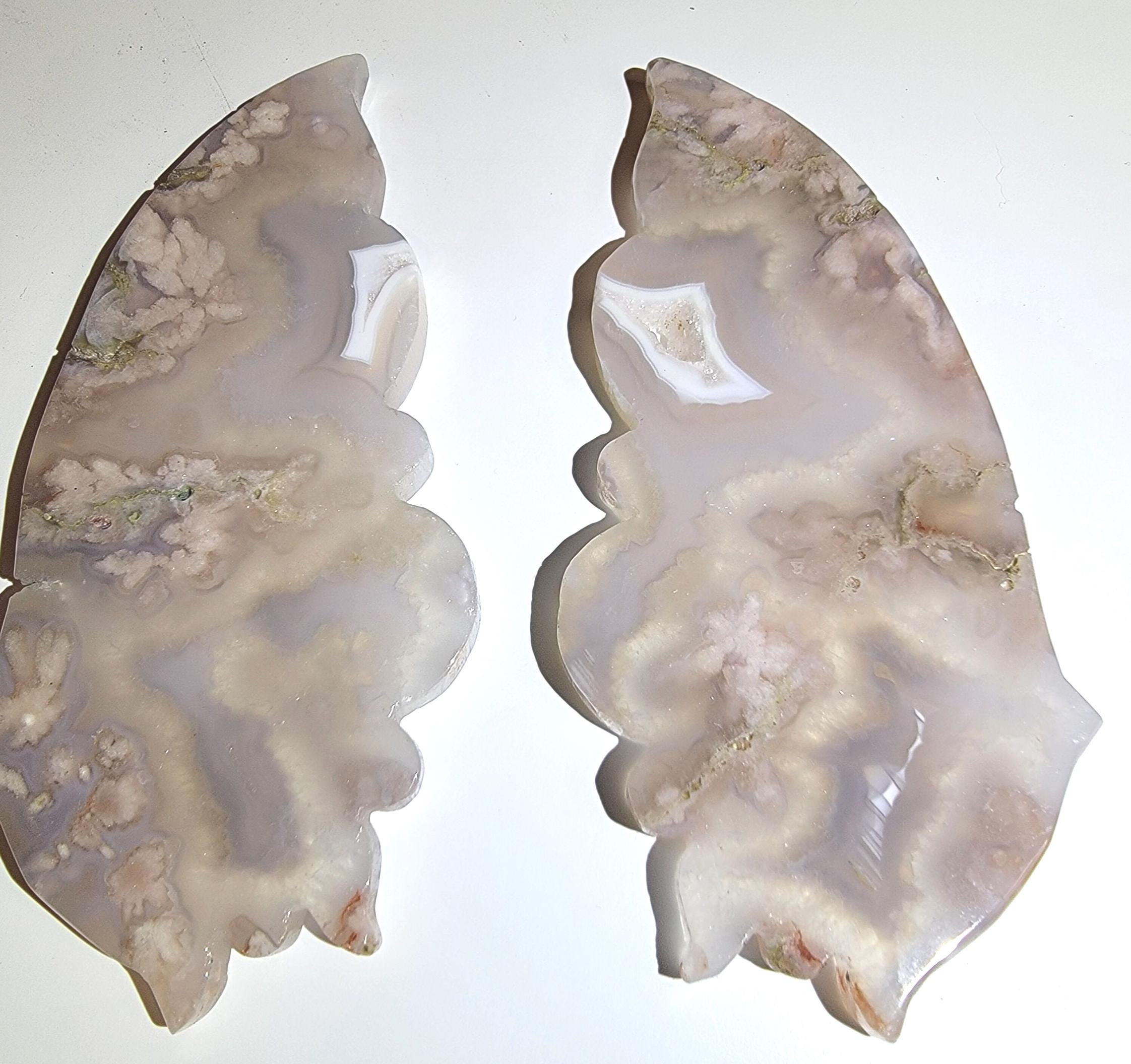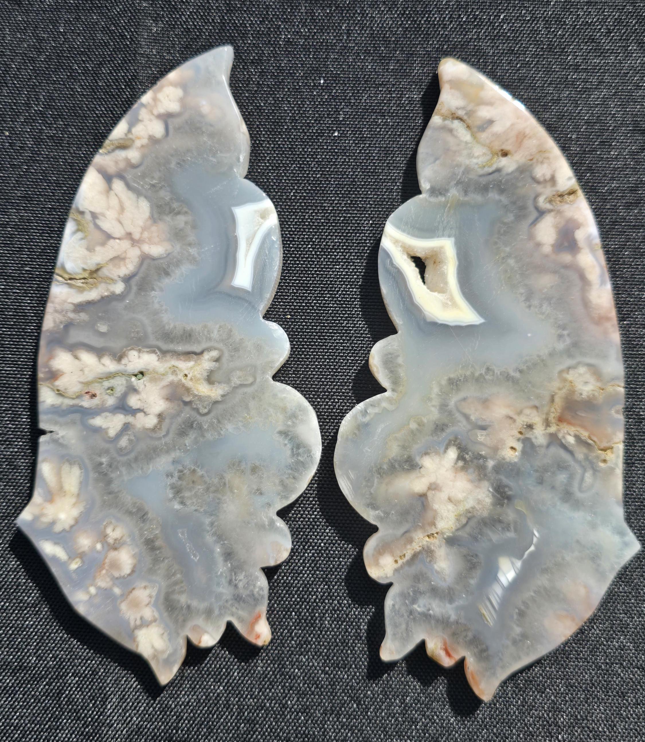 Beautiful Flower Agate Butterfly Wings with matching drusy on both sides.