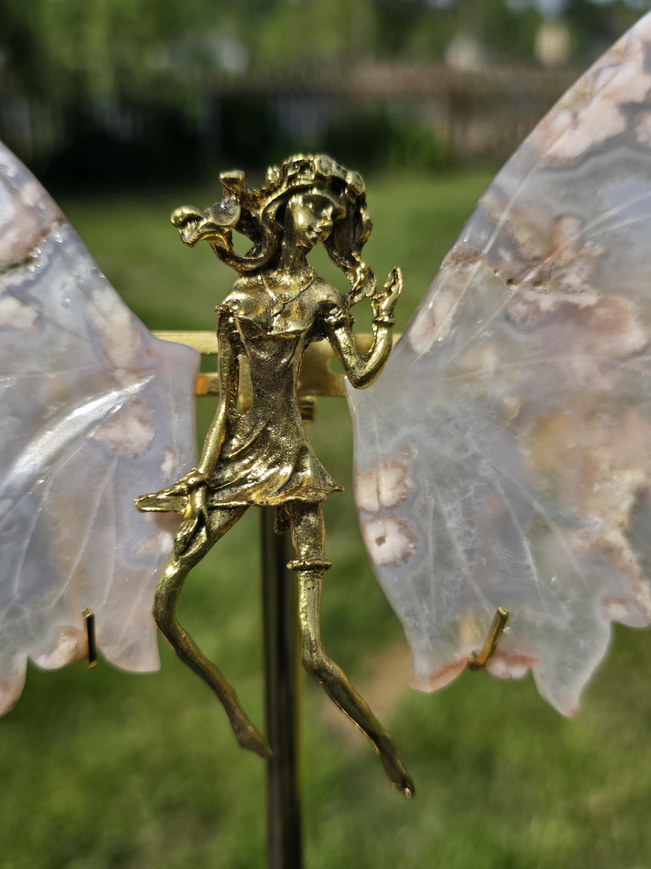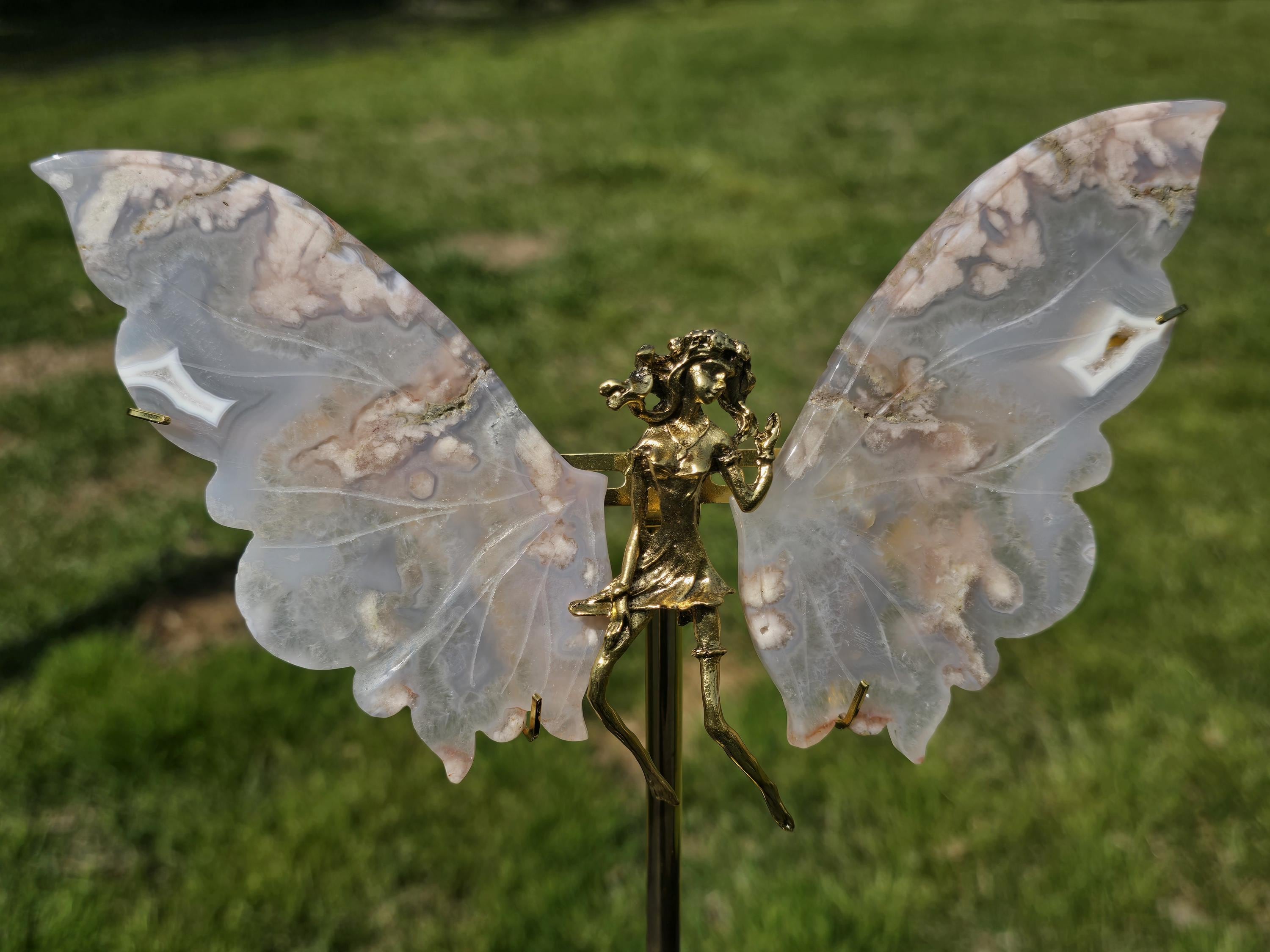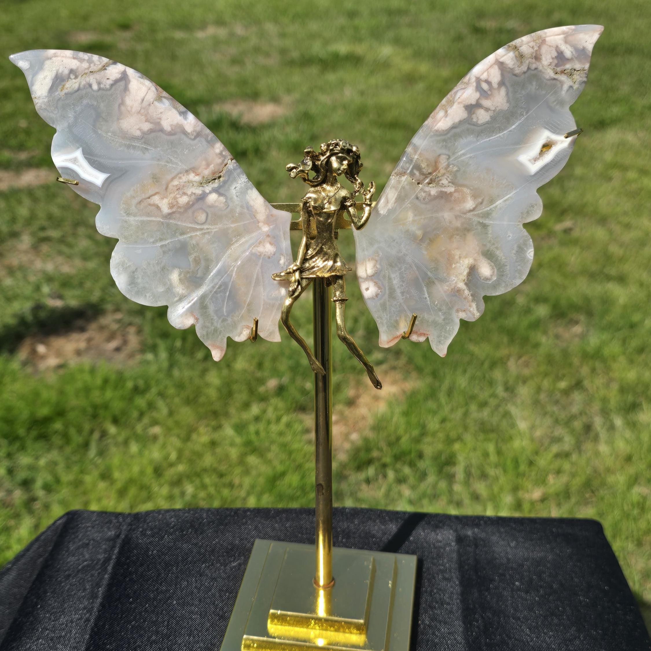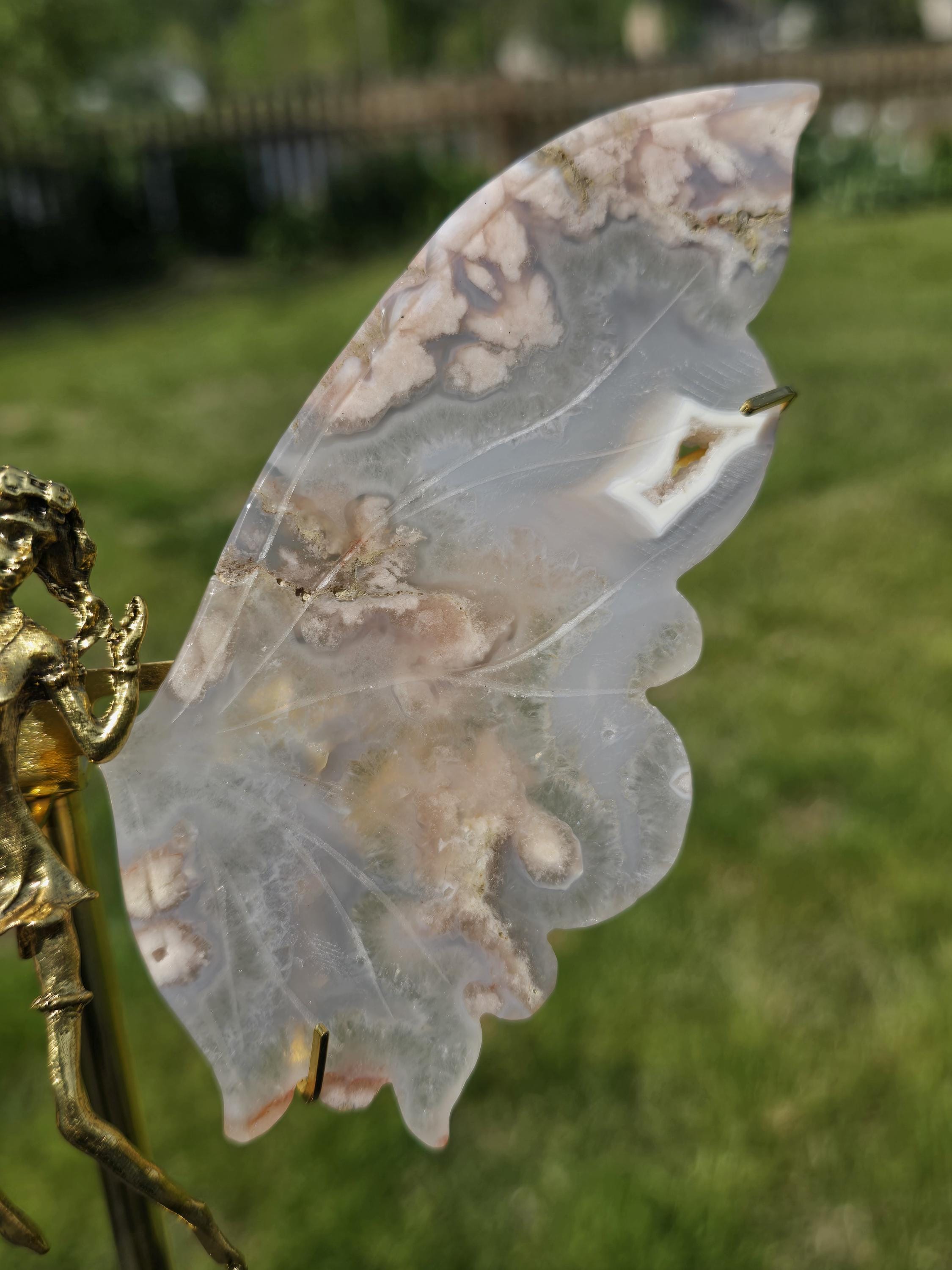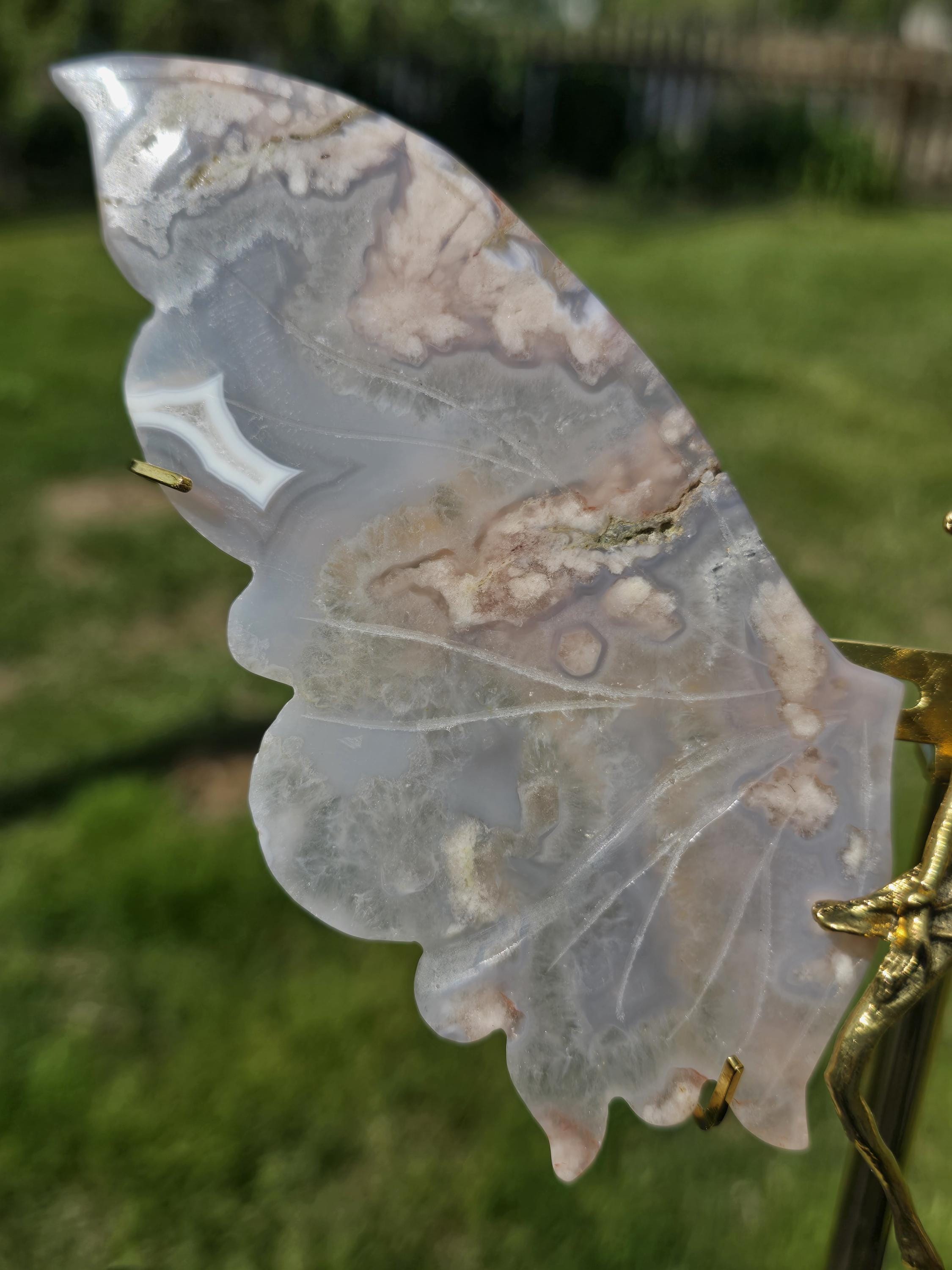 Beautiful Flower Agate Butterfly Wings with matching drusy on both sides.