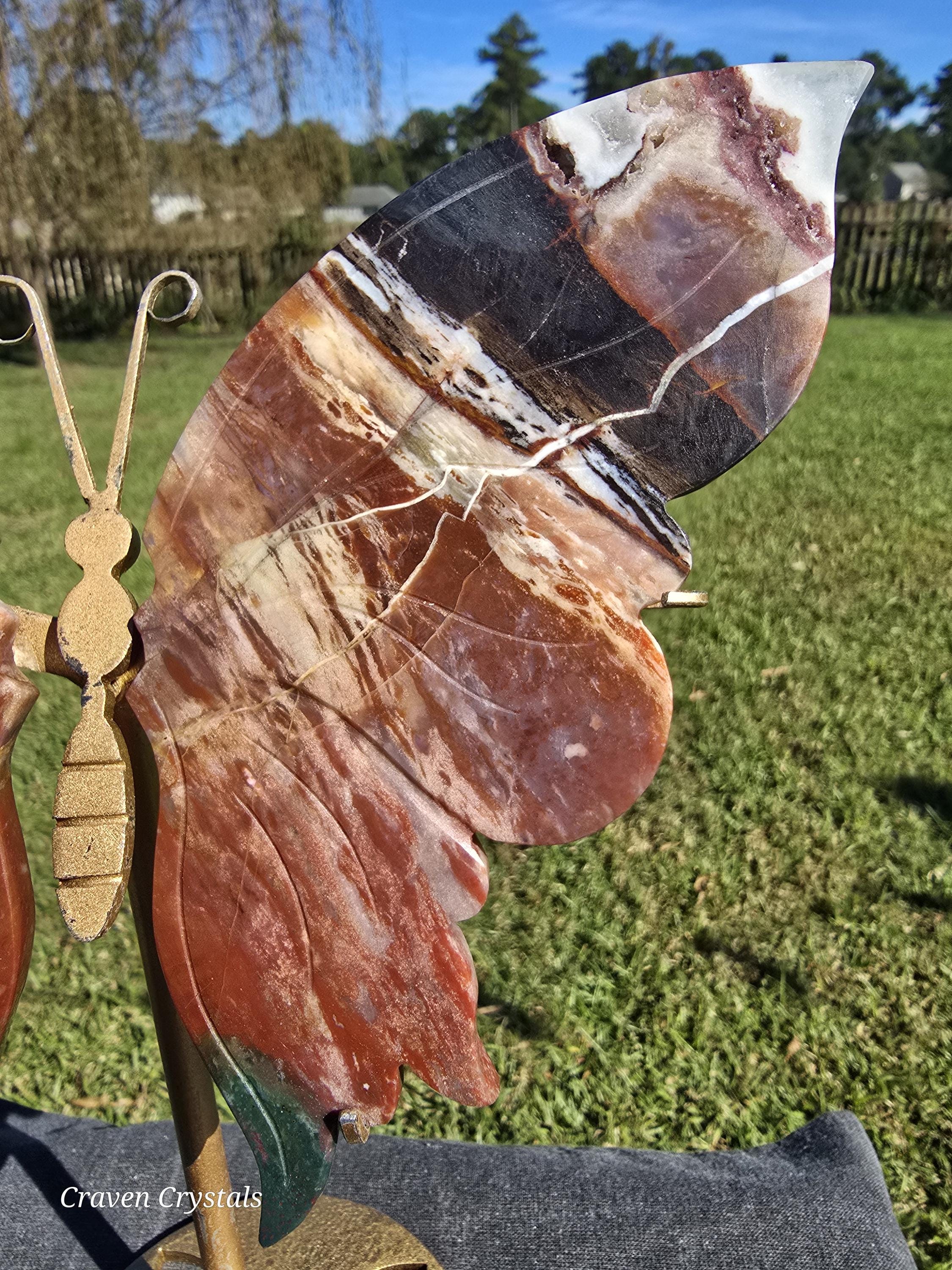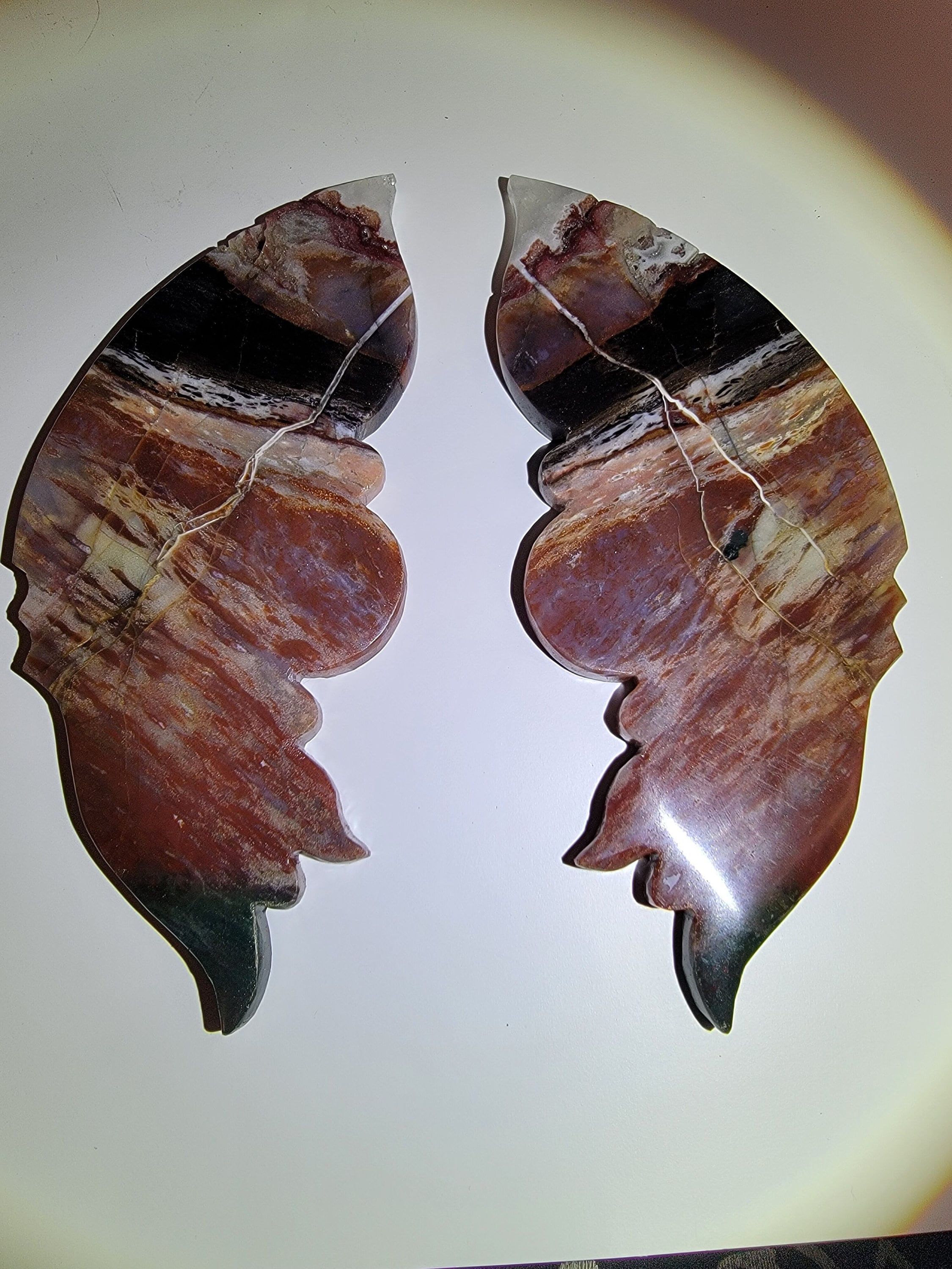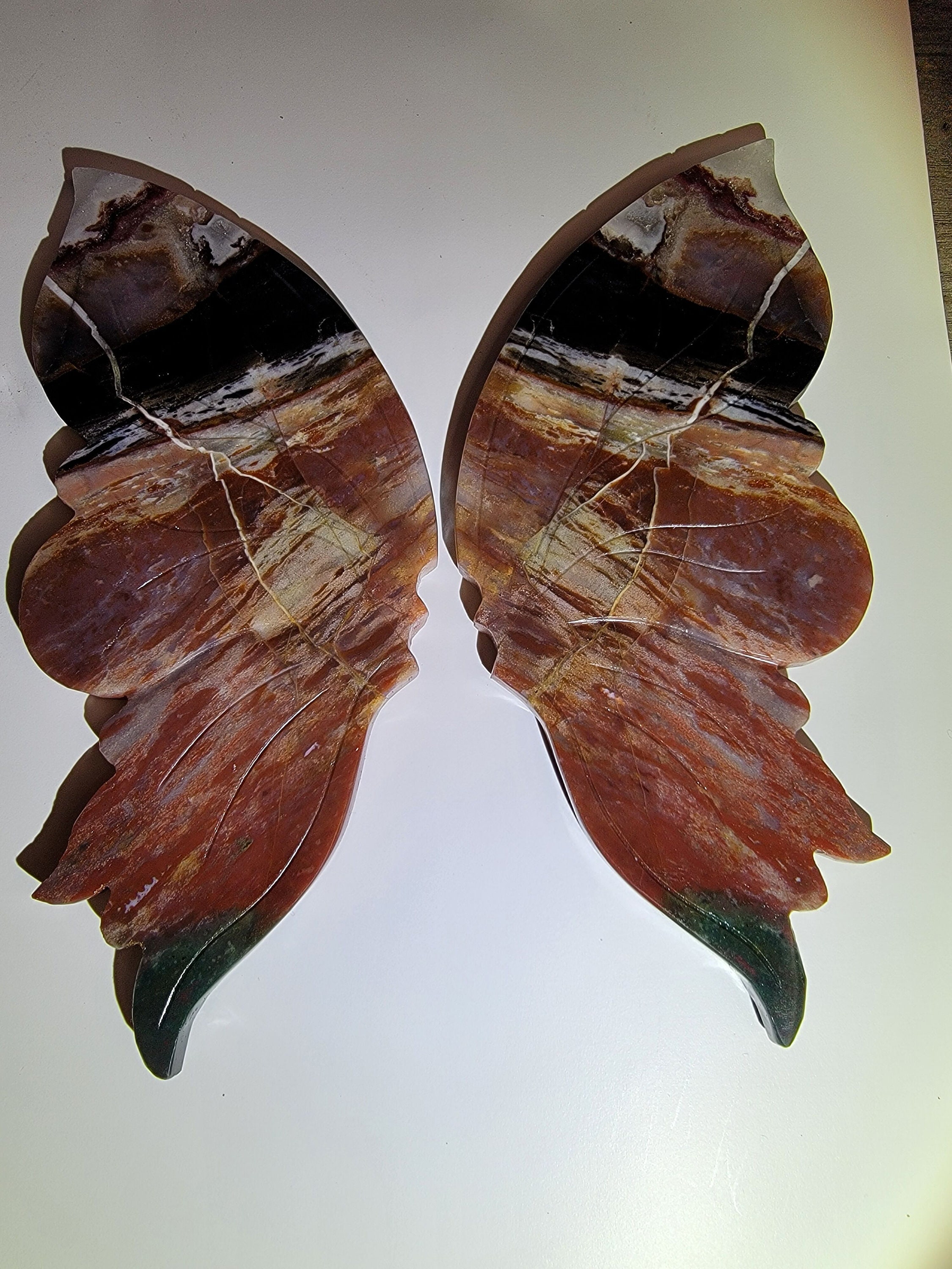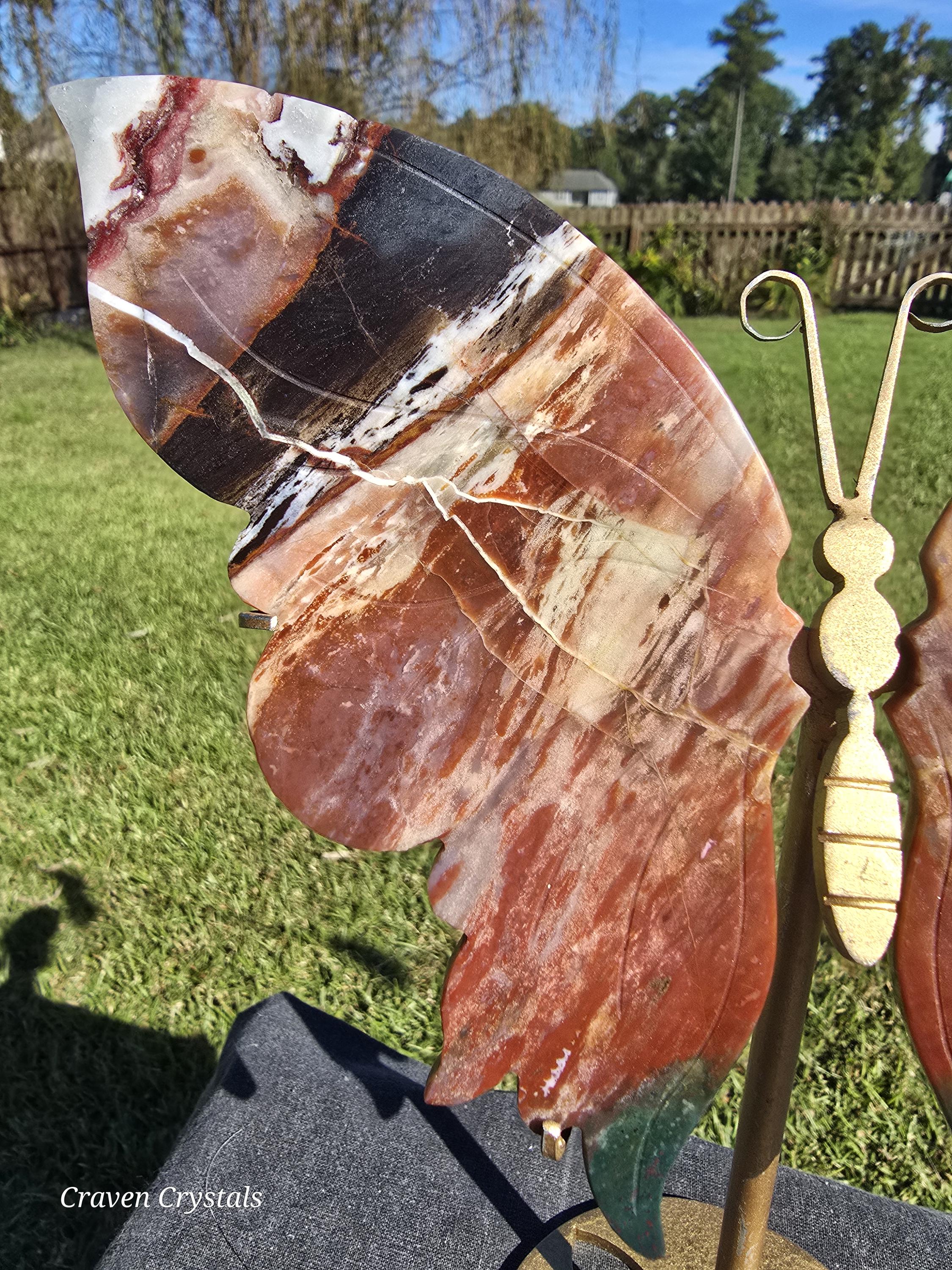 Gorgeous red and black Ocean Jasper Crystal Butterfly Wings with creamy white tips and red drusy quartz.