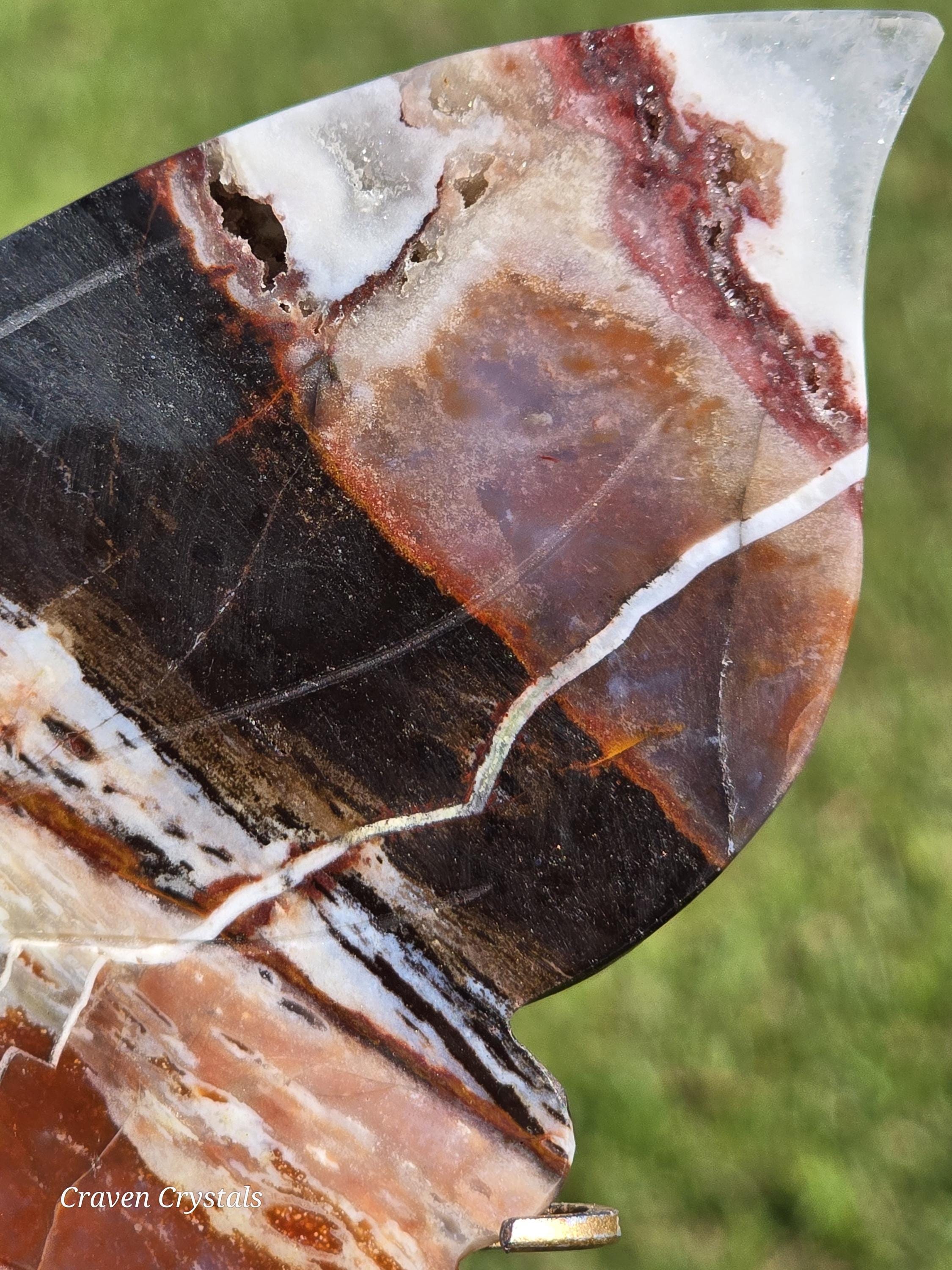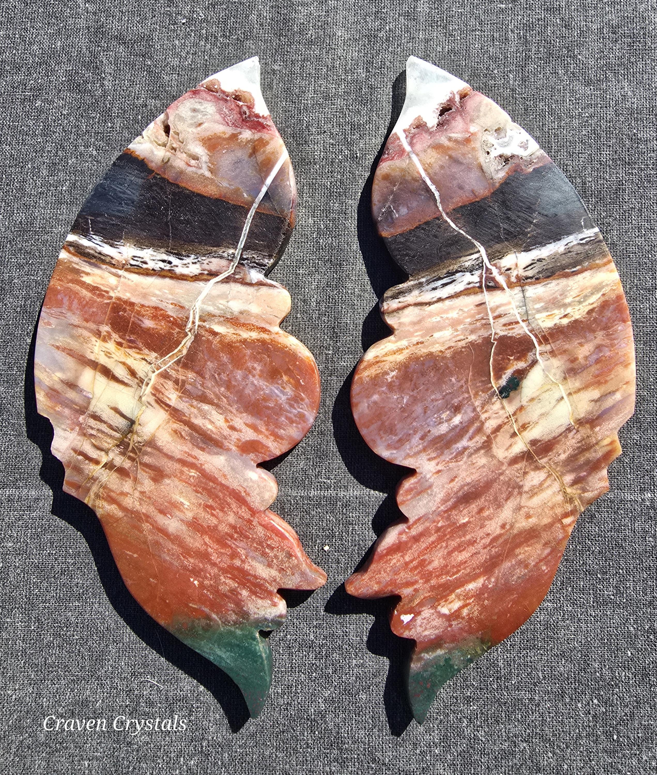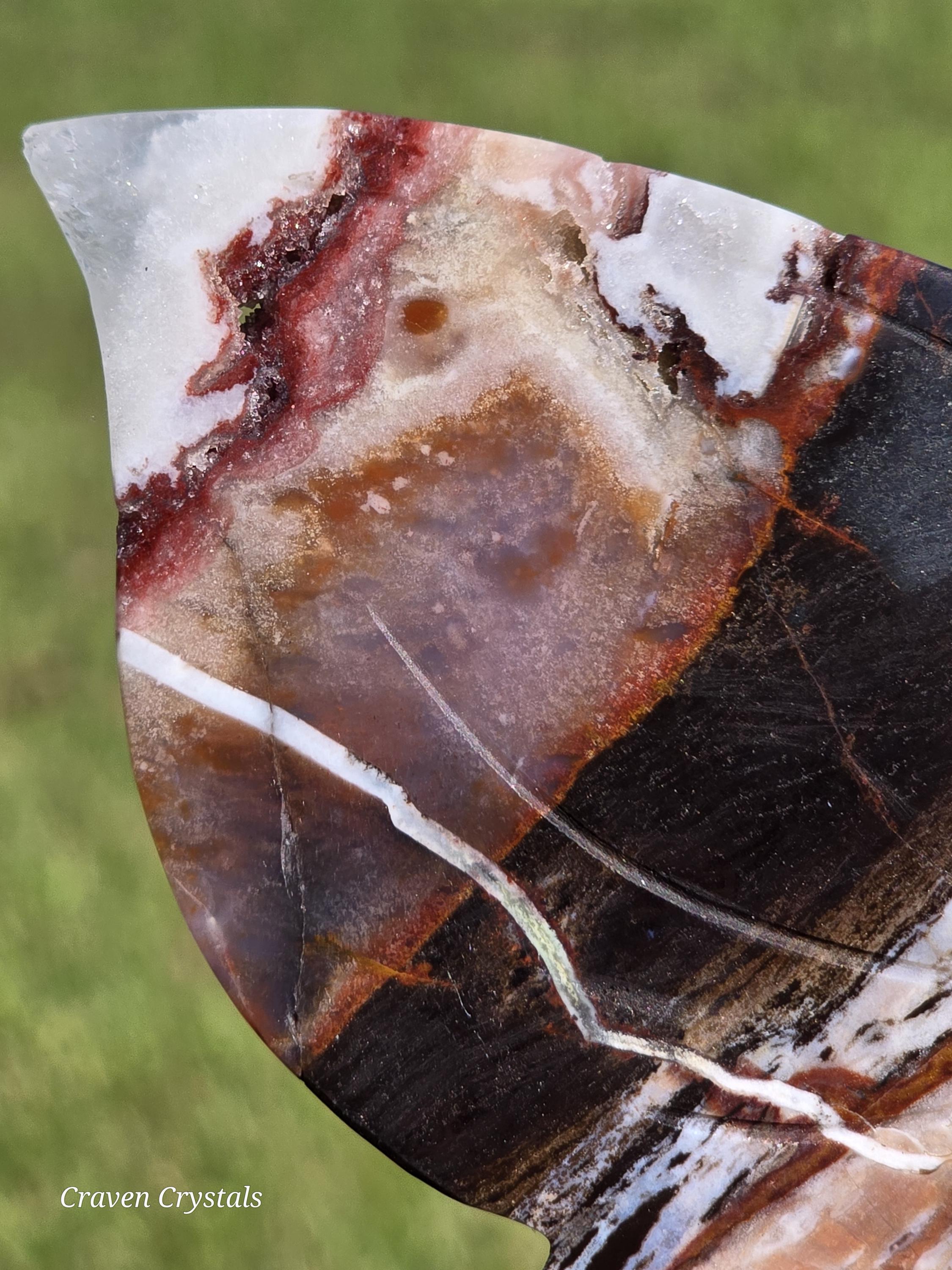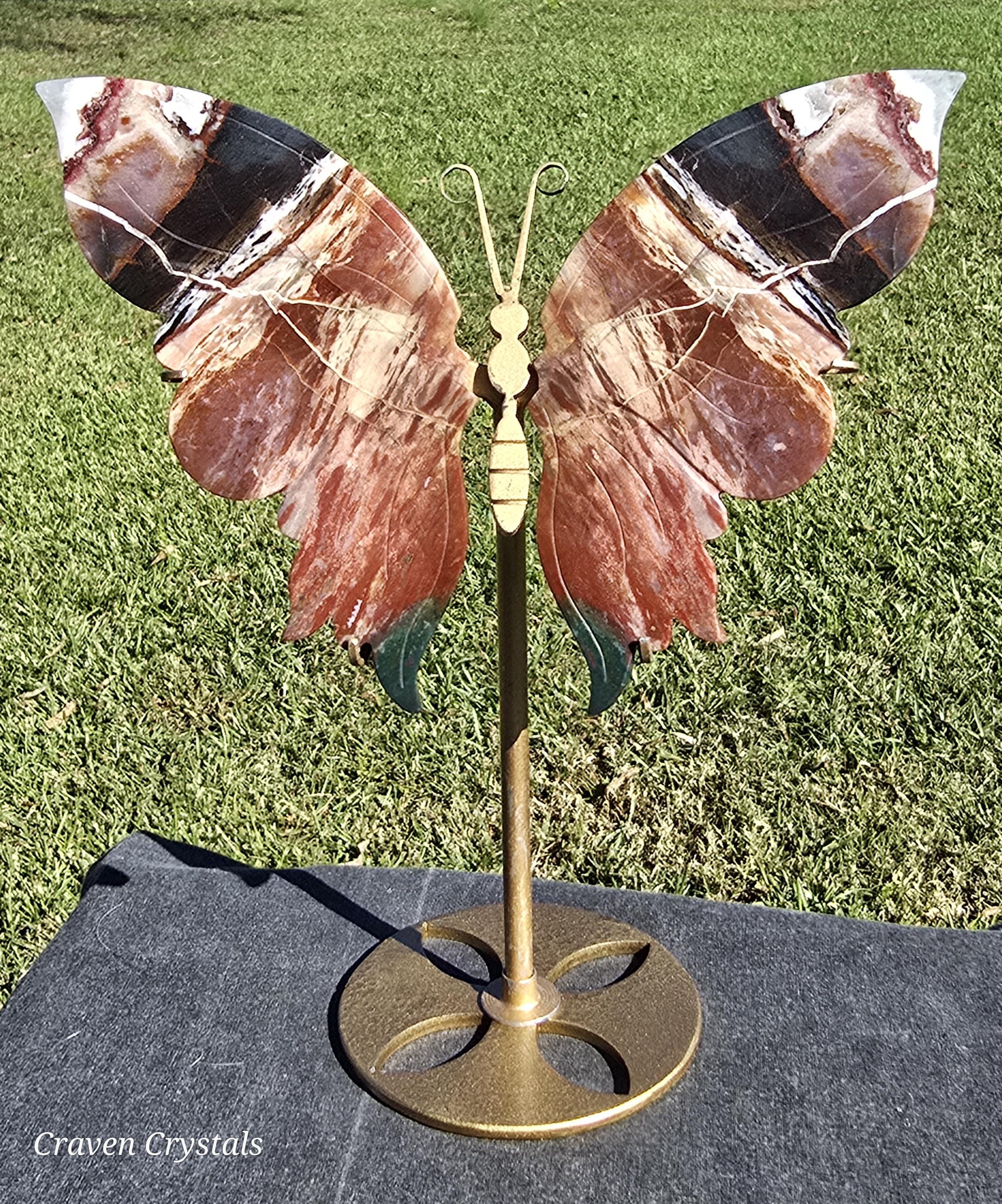Gorgeous red and black Ocean Jasper Crystal Butterfly Wings with creamy white tips and red drusy quartz.
