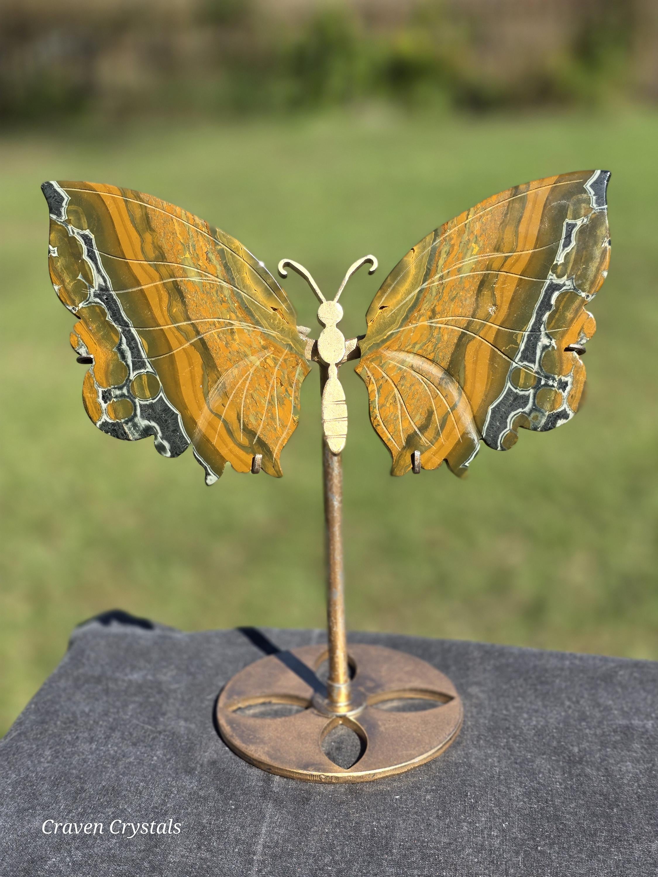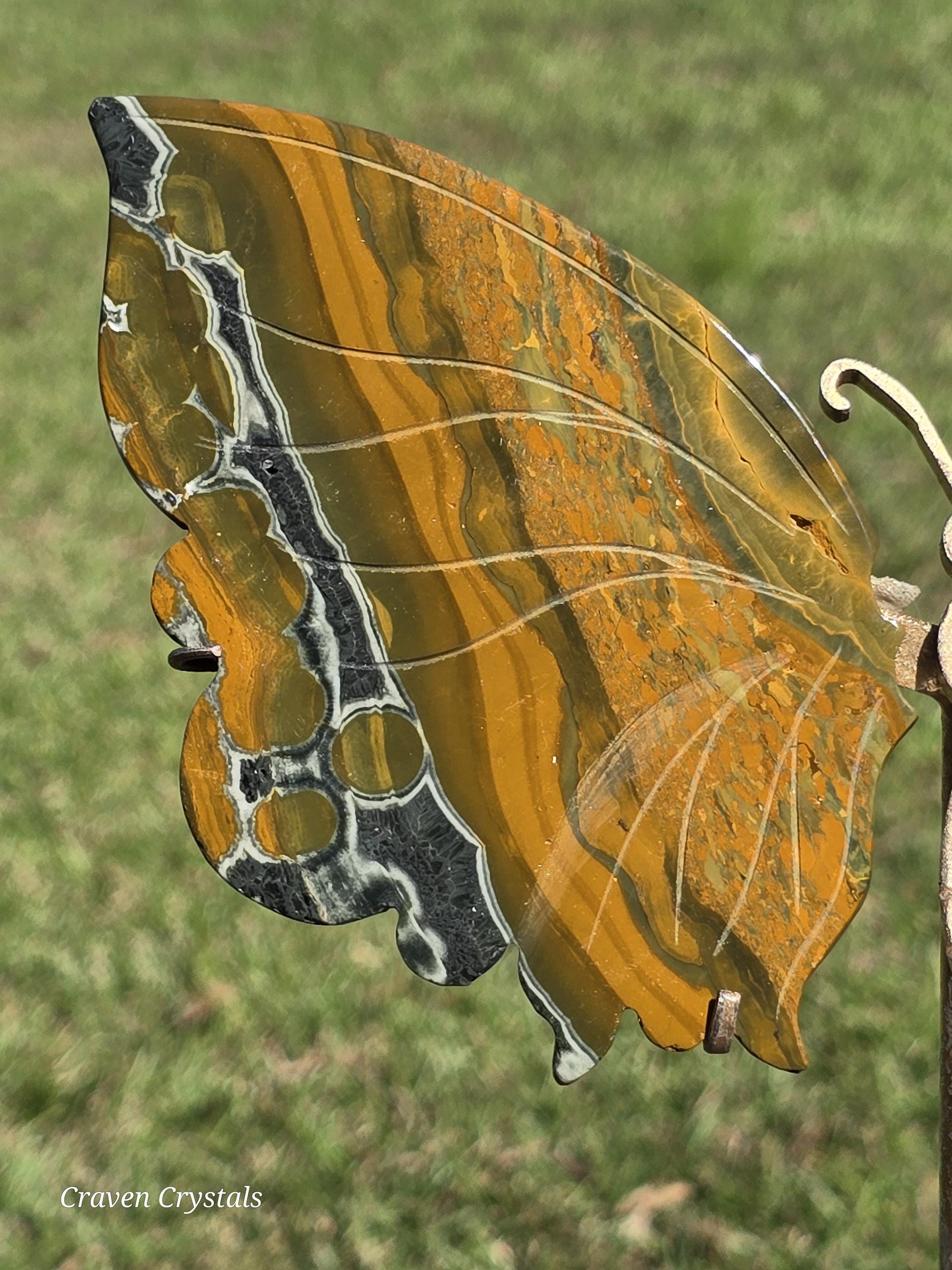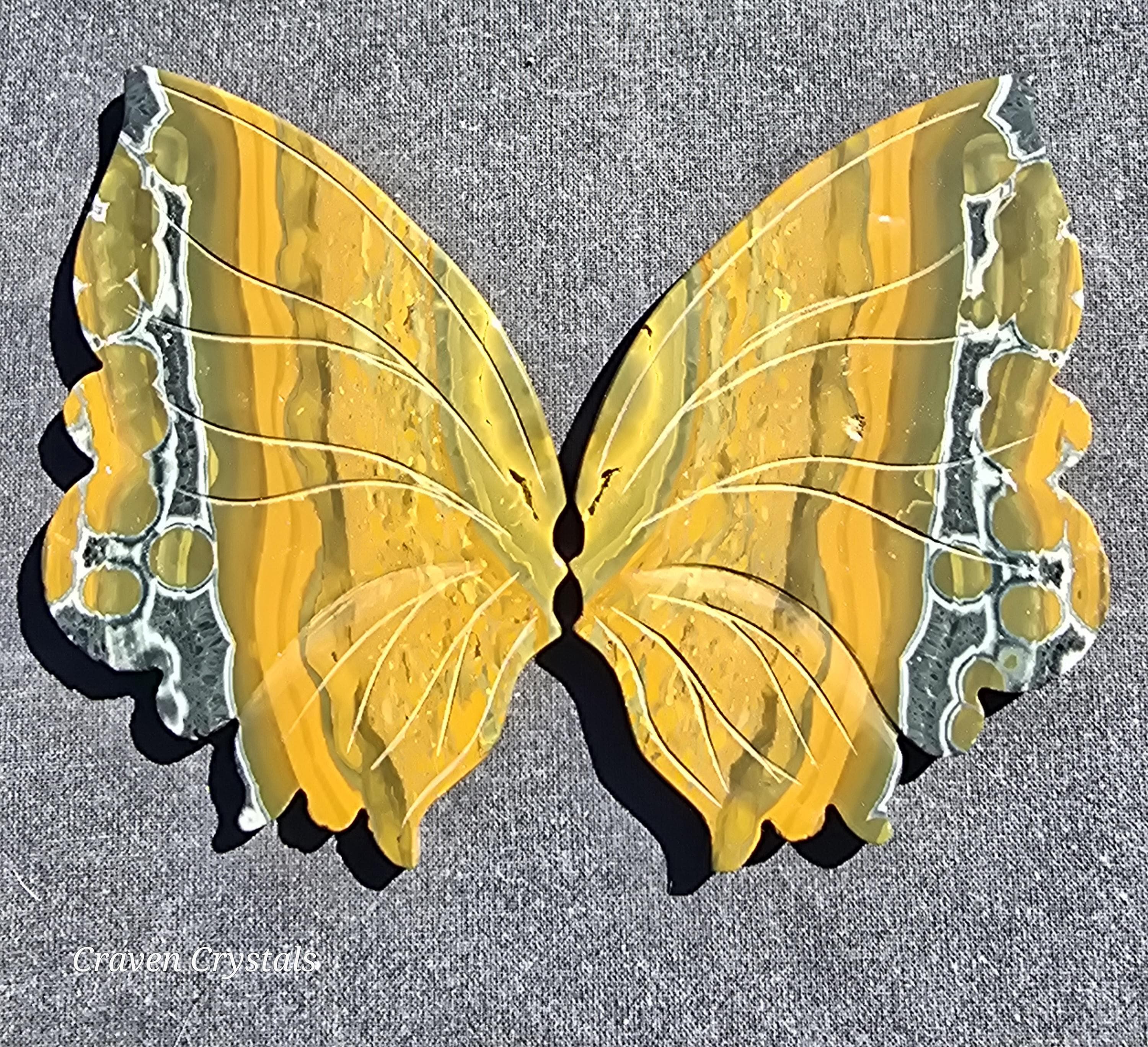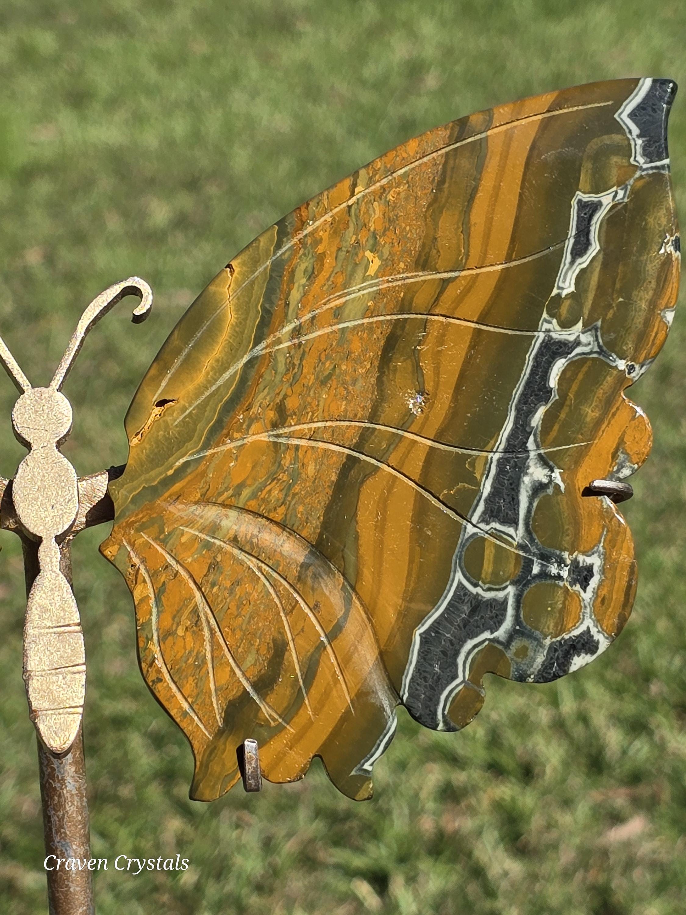 Yellow Orbicular Ocean Jasper Crystal Butterfly Wings with dark orange banding with stripes of black... what a beauty