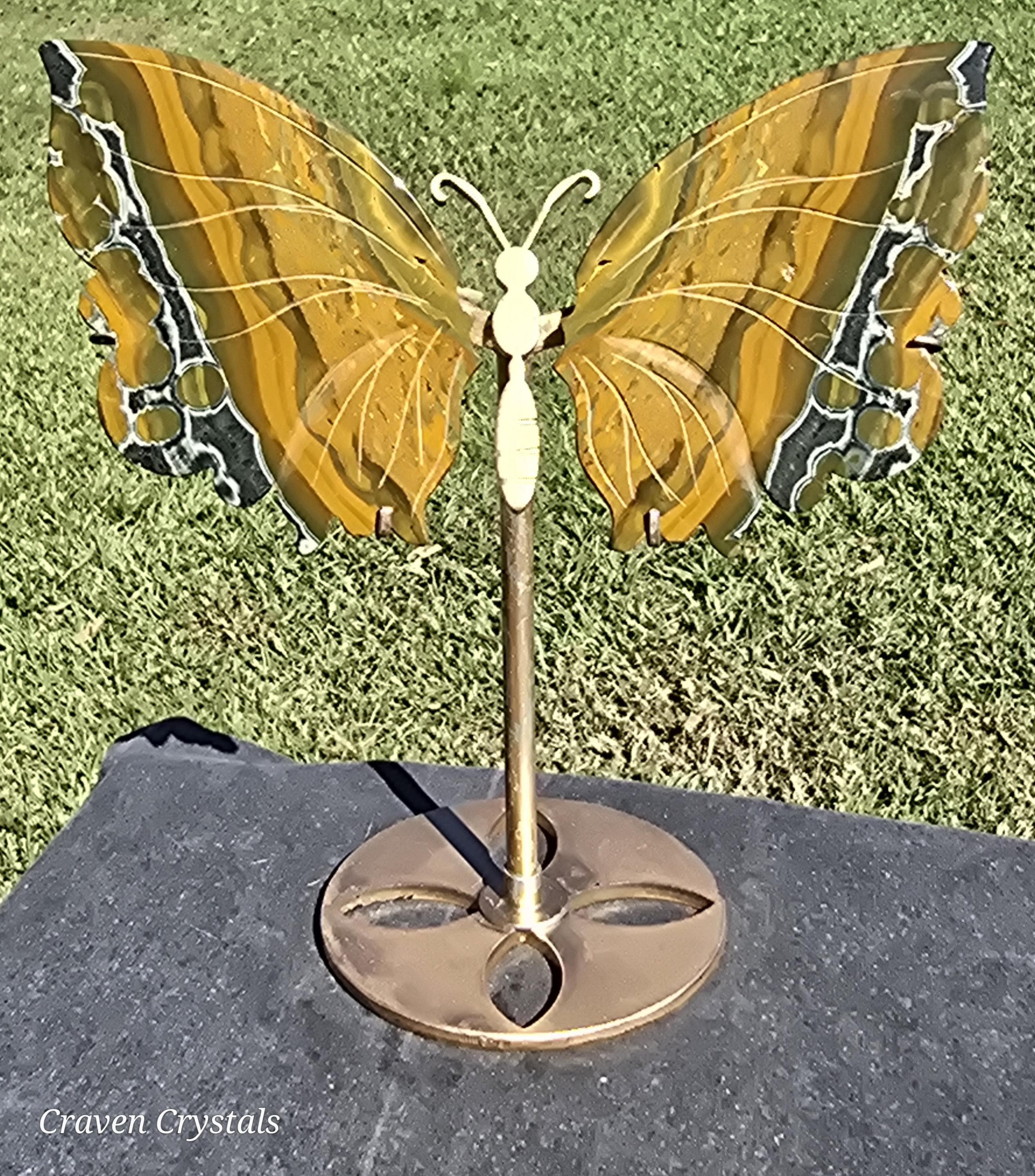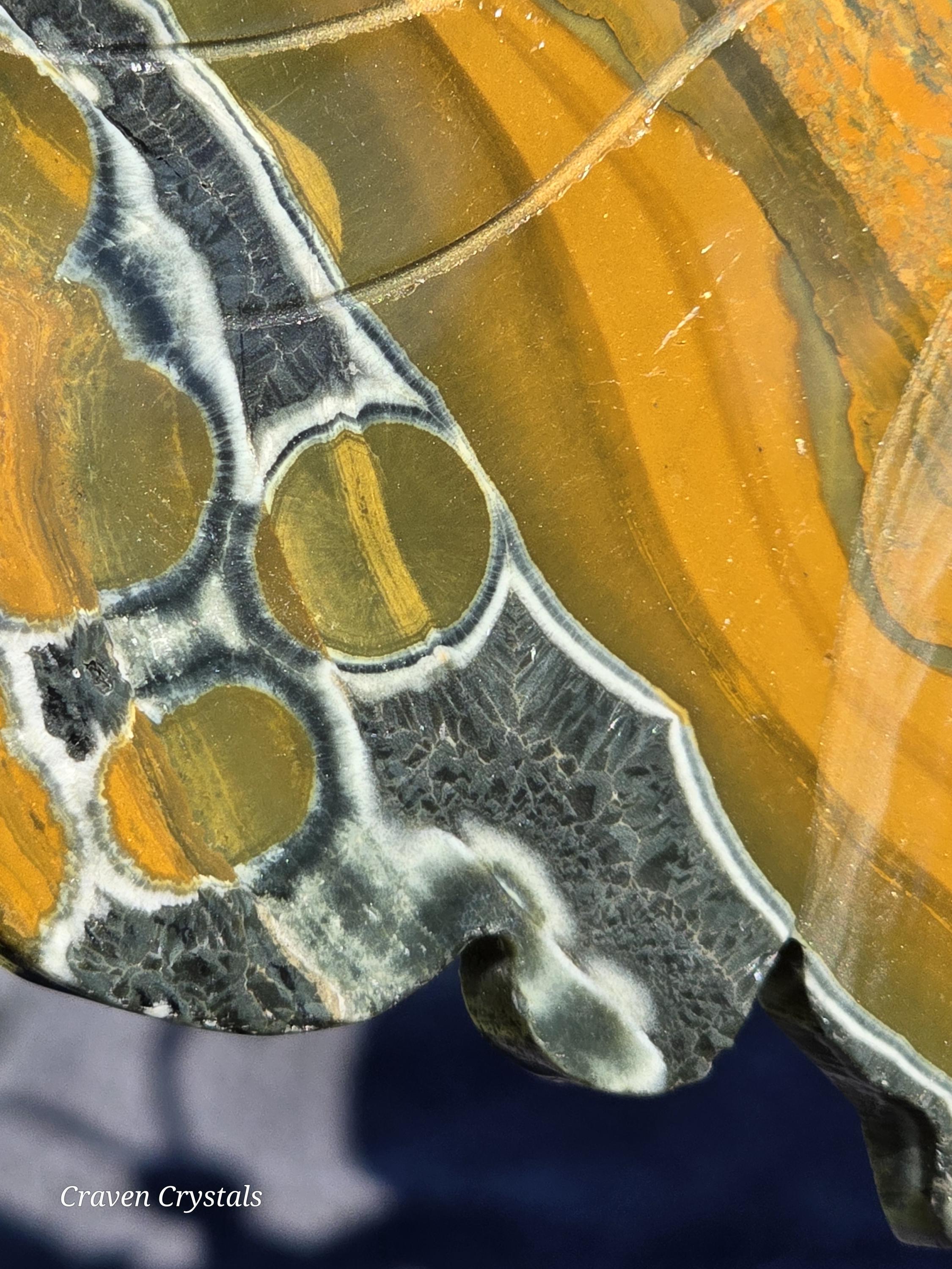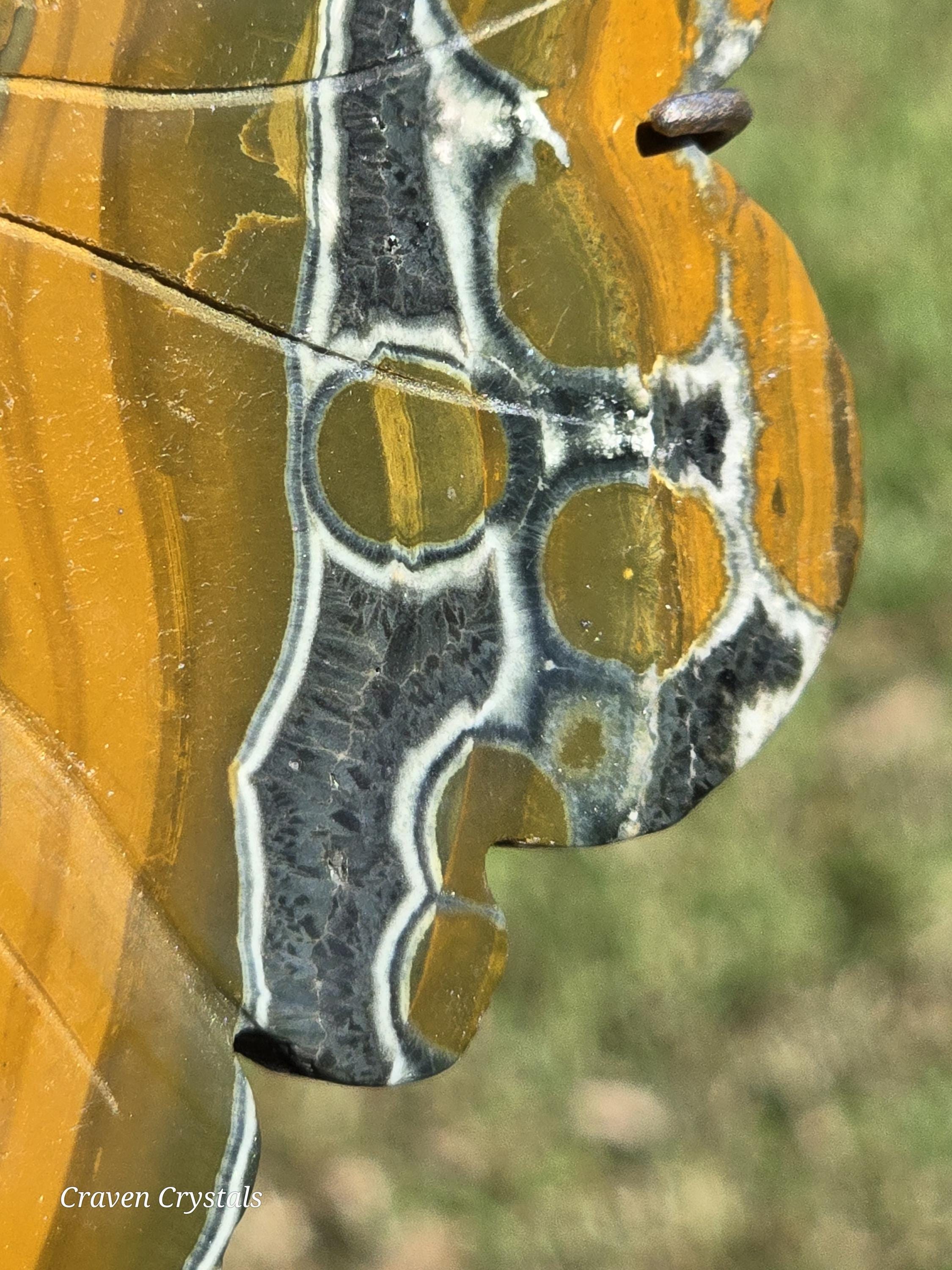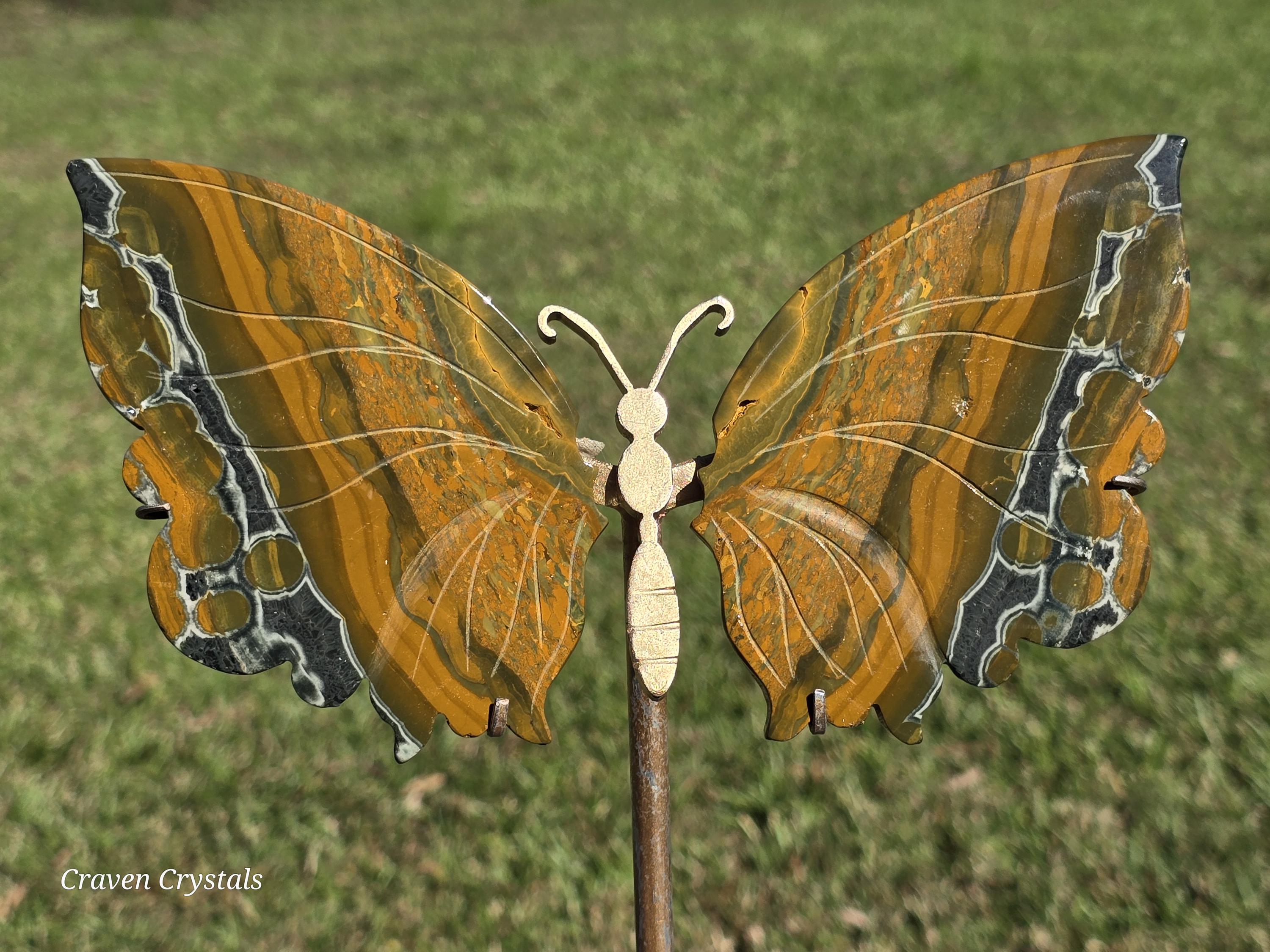Yellow Orbicular Ocean Jasper Crystal Butterfly Wings with dark orange banding with stripes of black... what a beauty