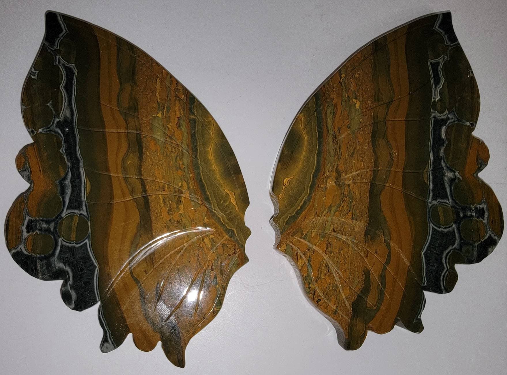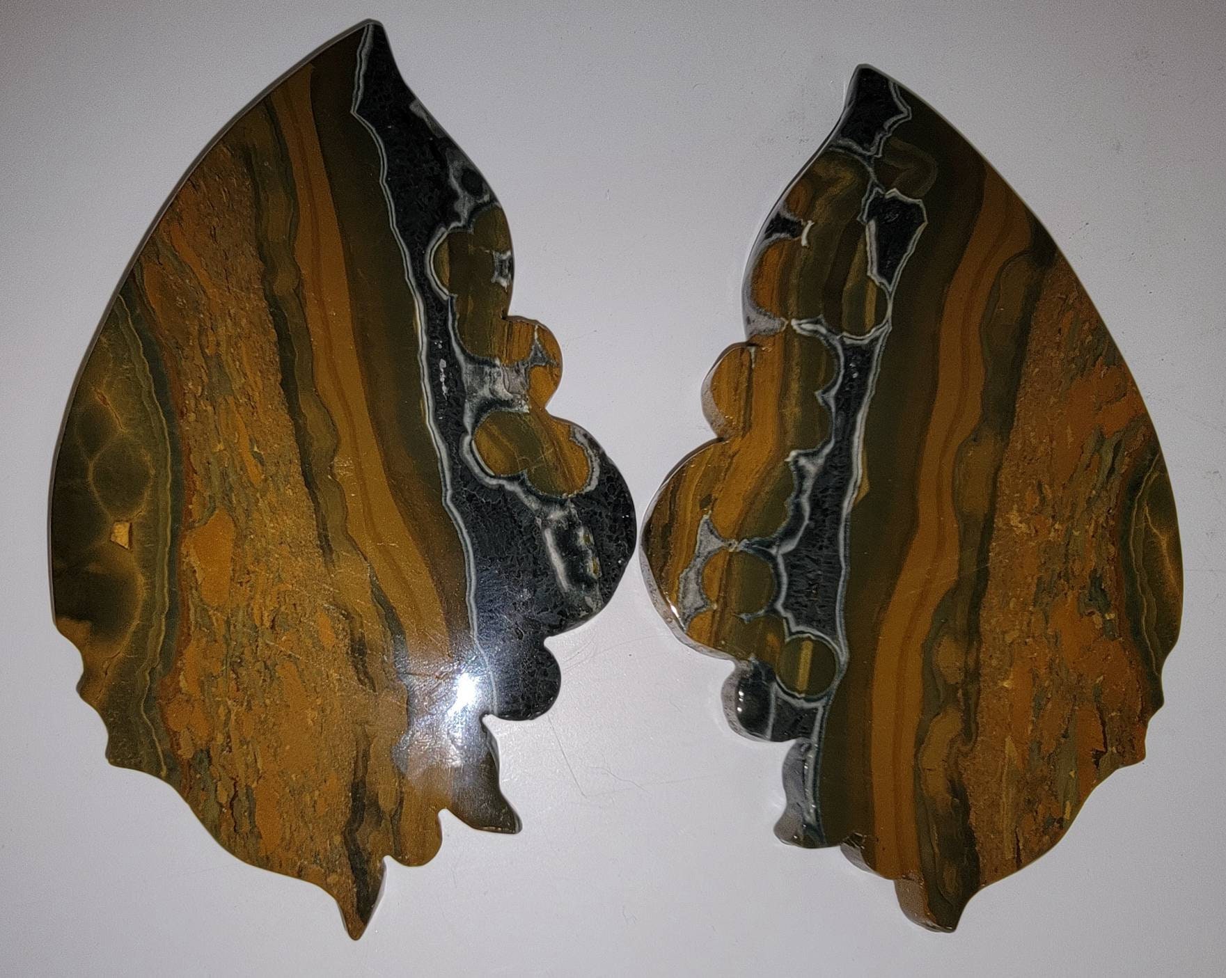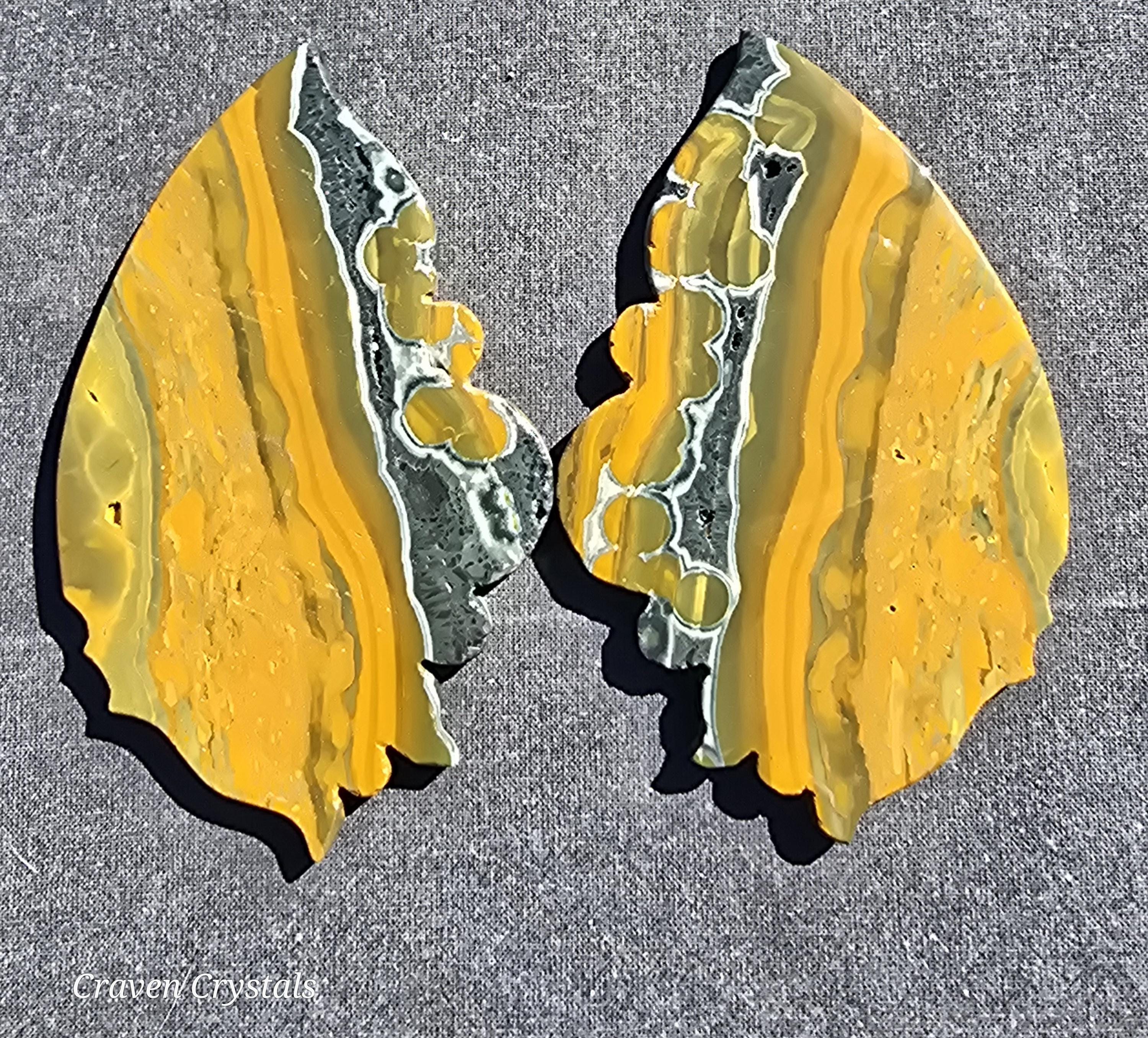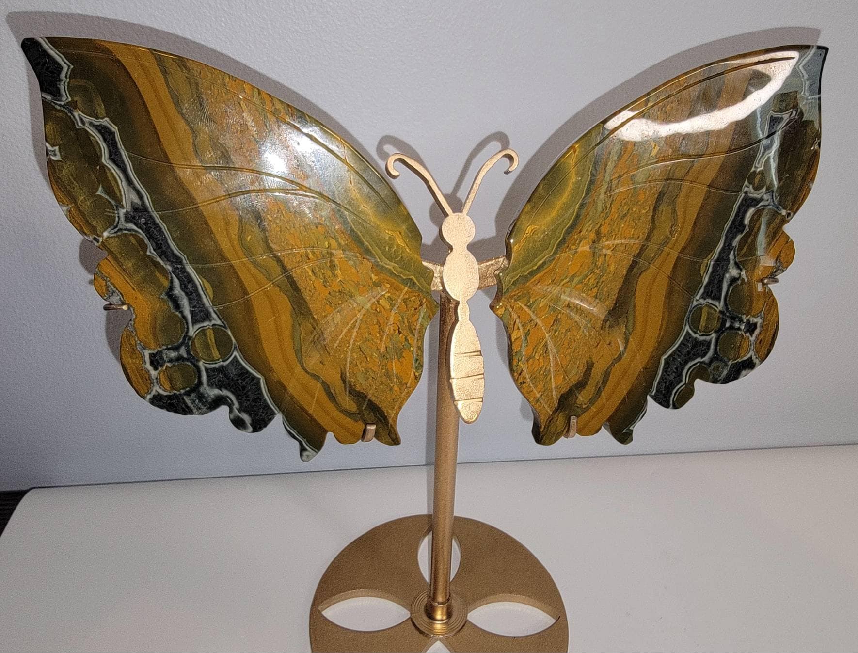 Yellow Orbicular Ocean Jasper Crystal Butterfly Wings with dark orange banding with stripes of black... what a beauty
