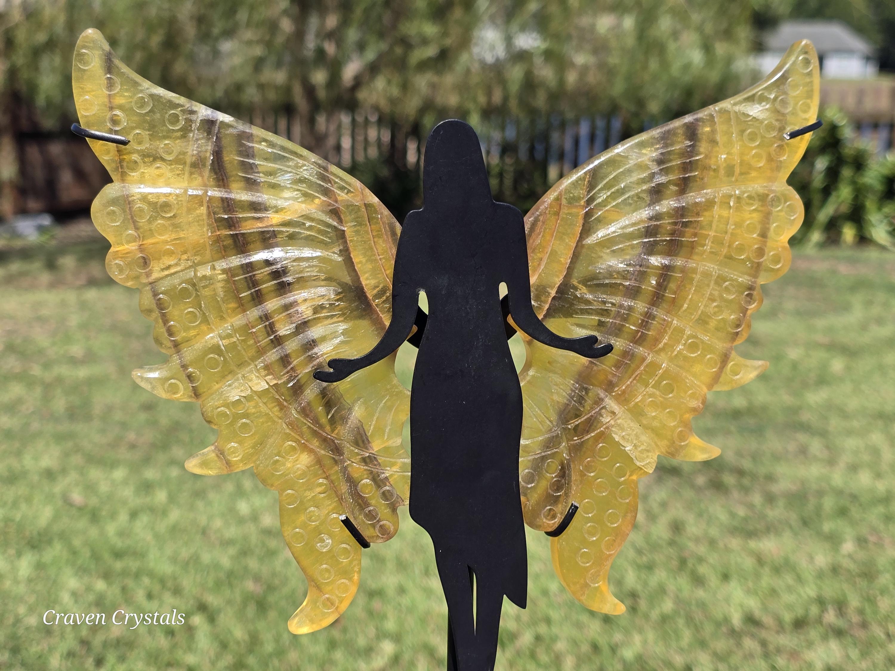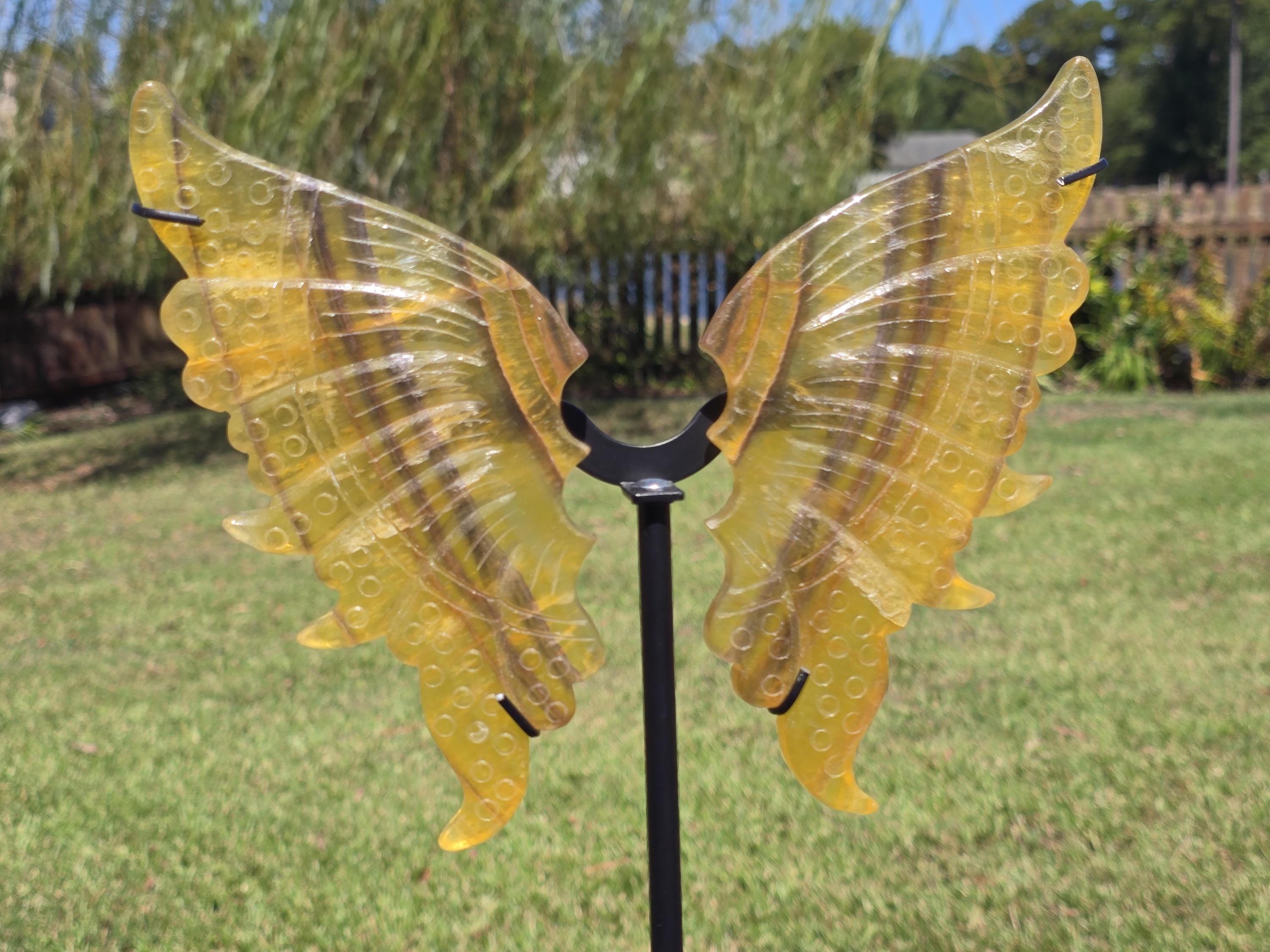 Thick (almost 1/2") Yellow Fluorite Crystal Angel/Fairy Wings with blue and purple bands