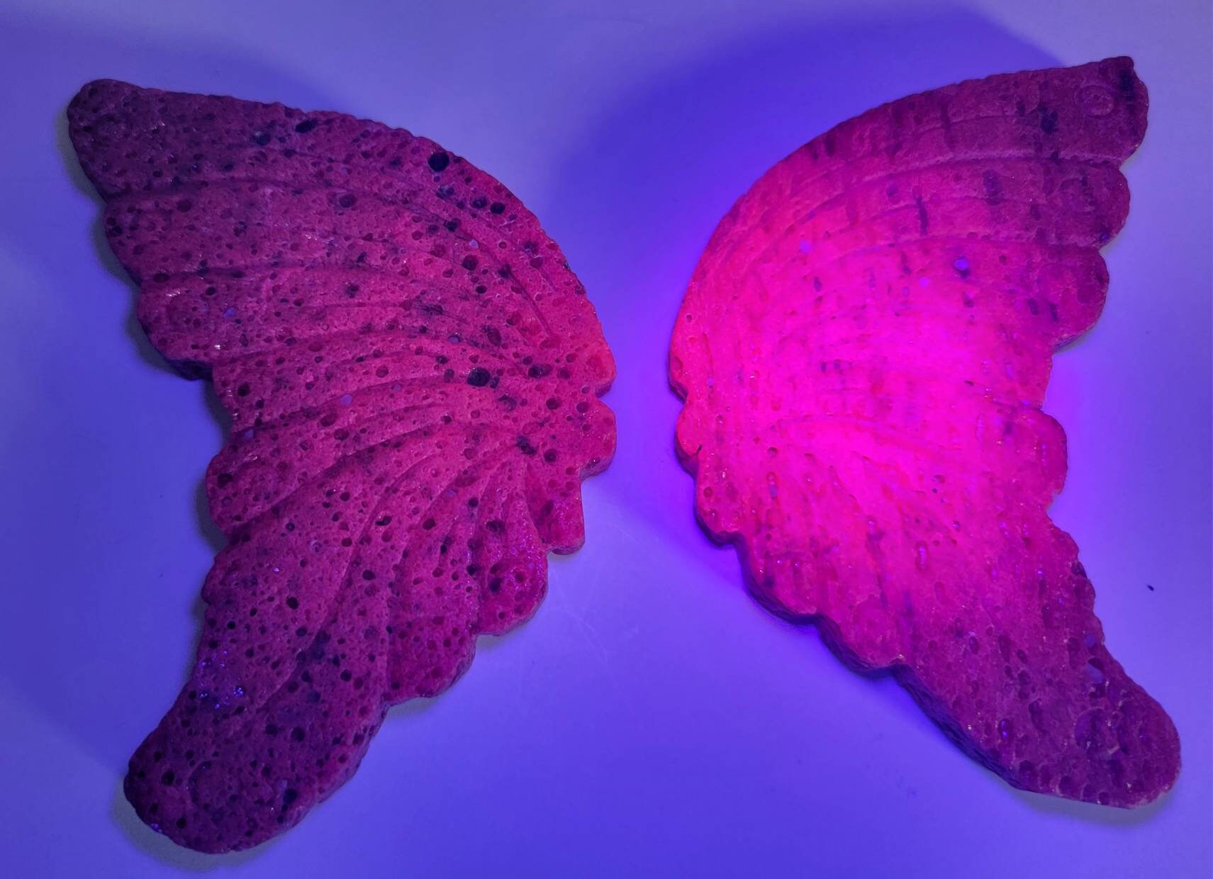 Beautiful magenta UV reactive Honeycomb Ruby Crystal Butterfly Wings * Manmade*