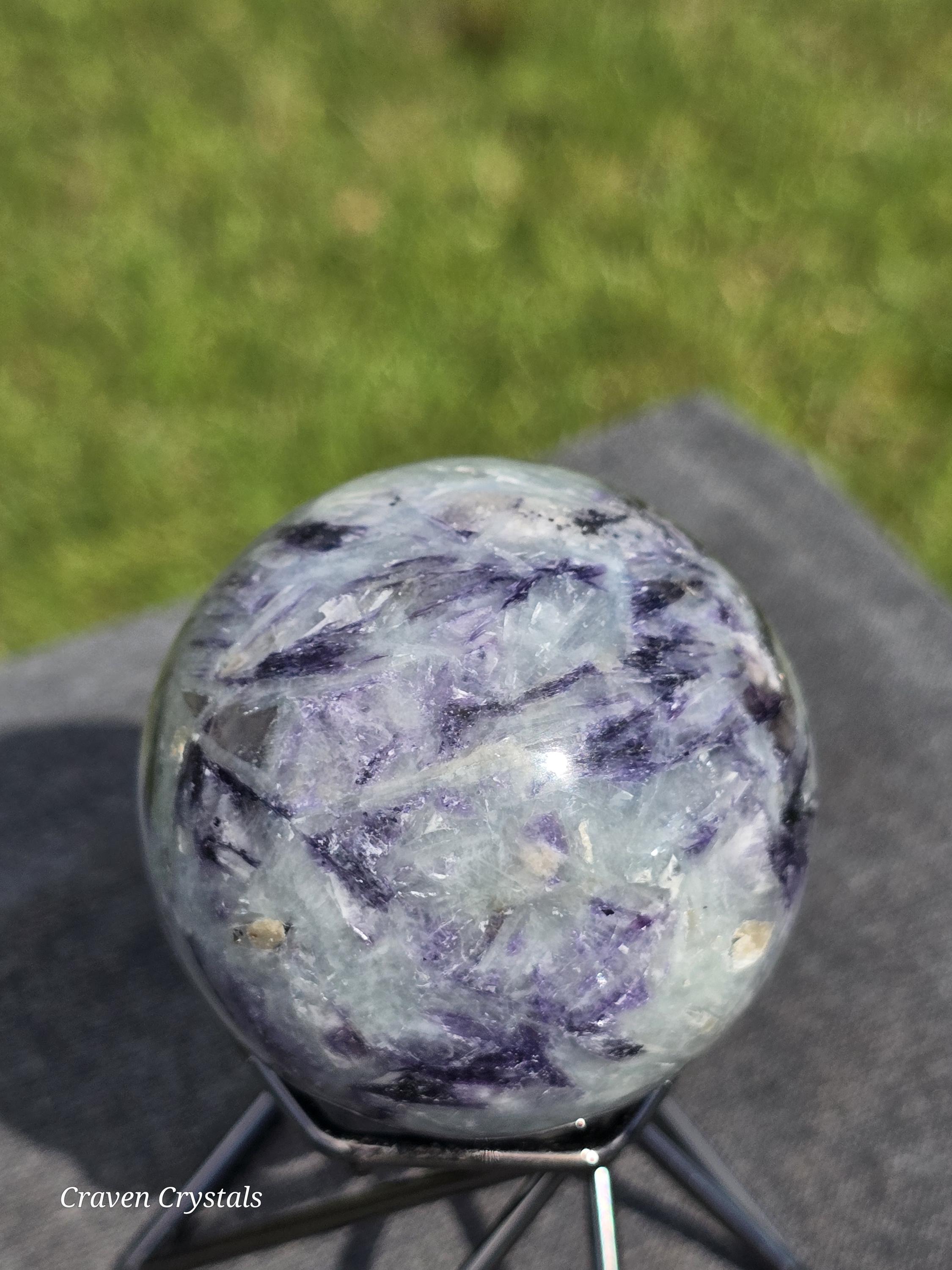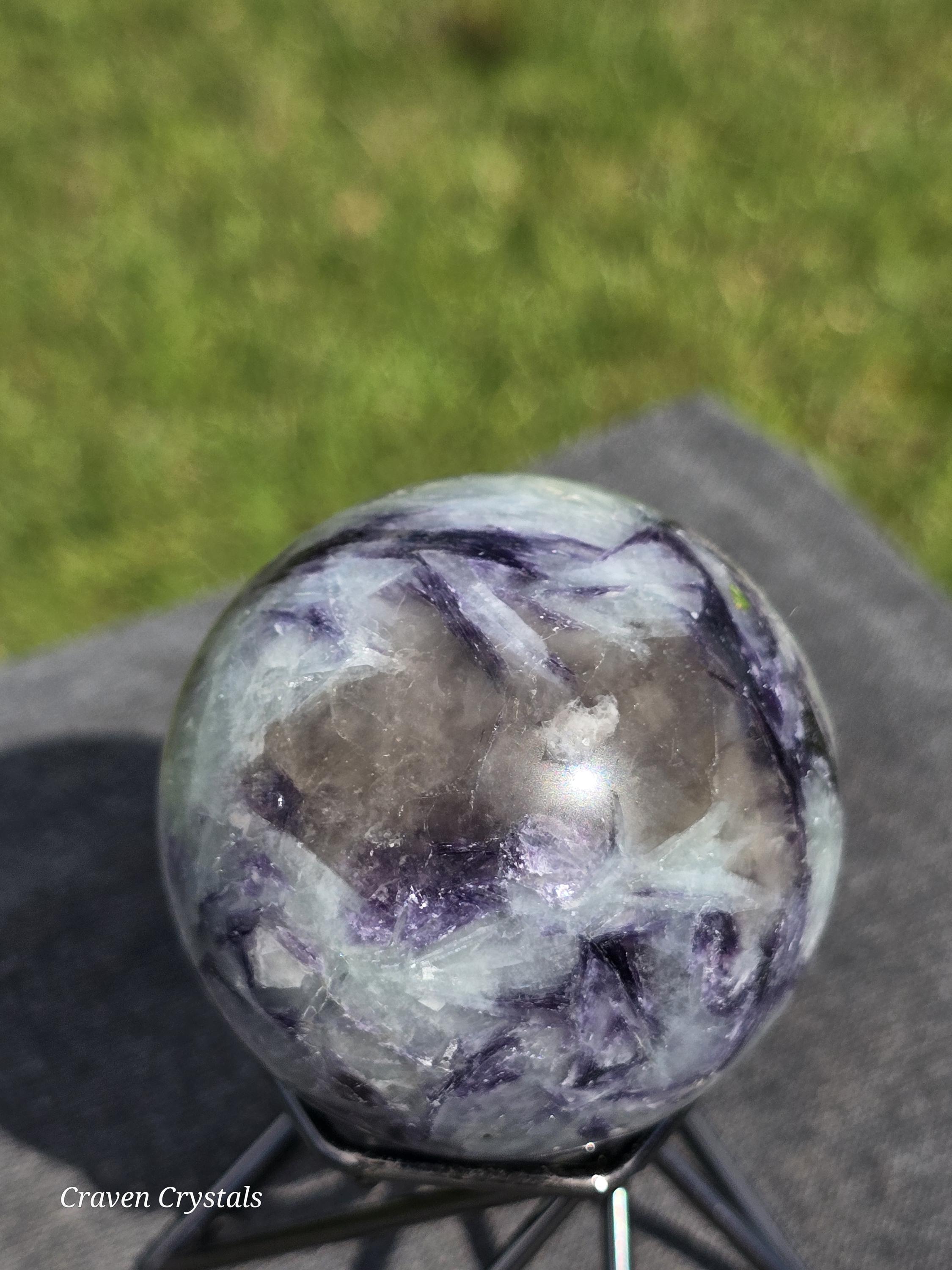 Aquamarine with Purple Mica inclusions Crystal Sphere