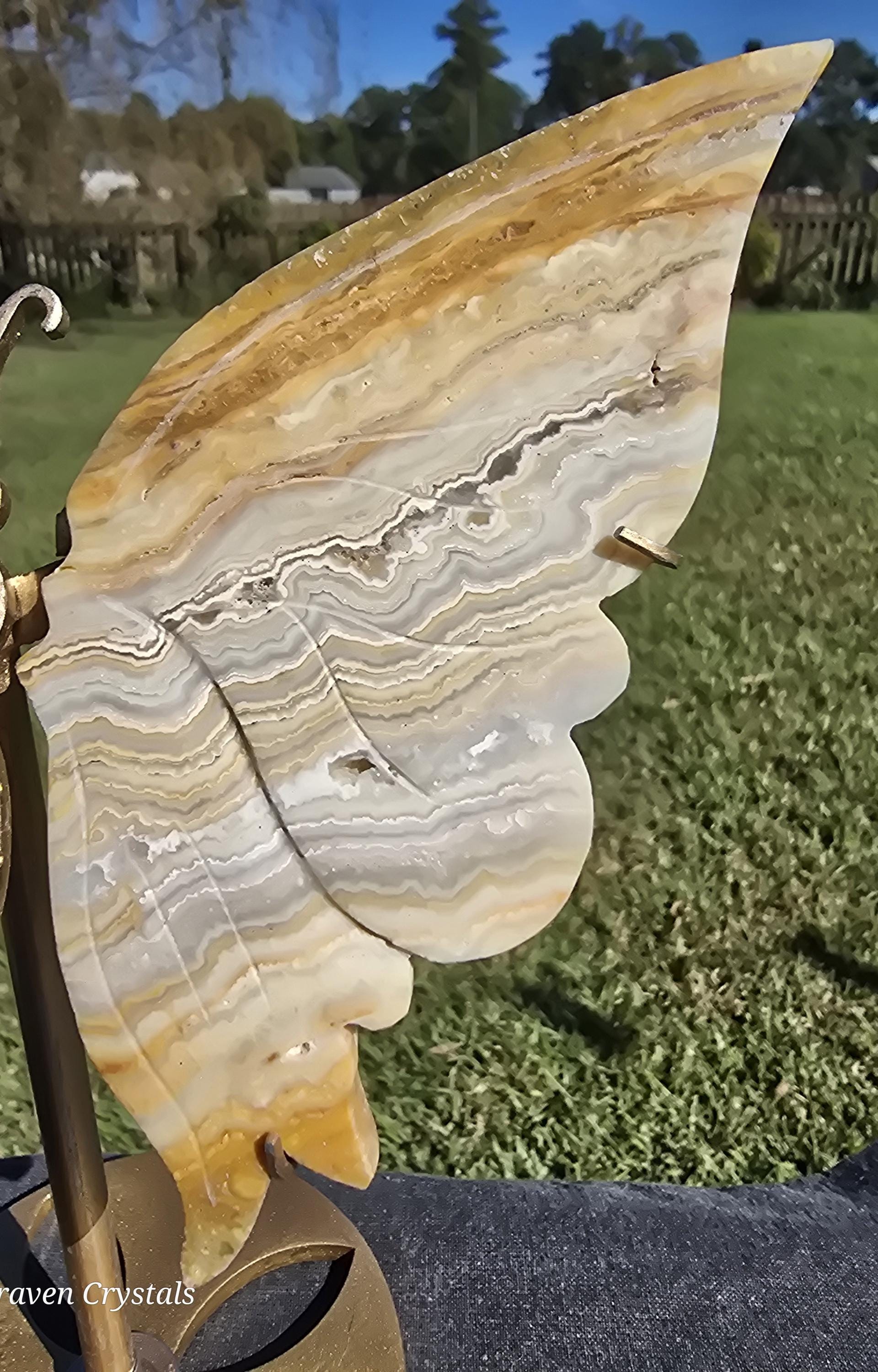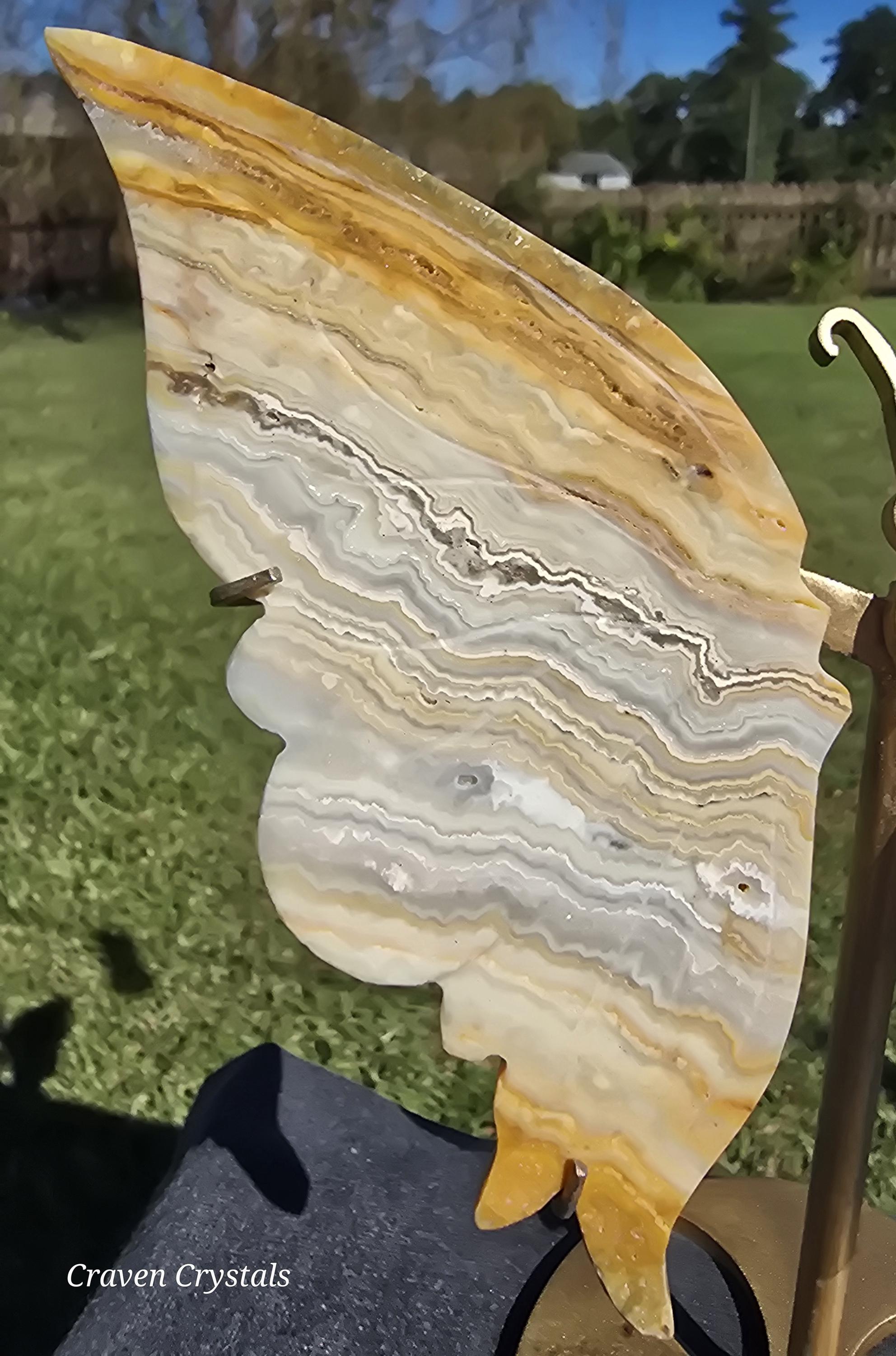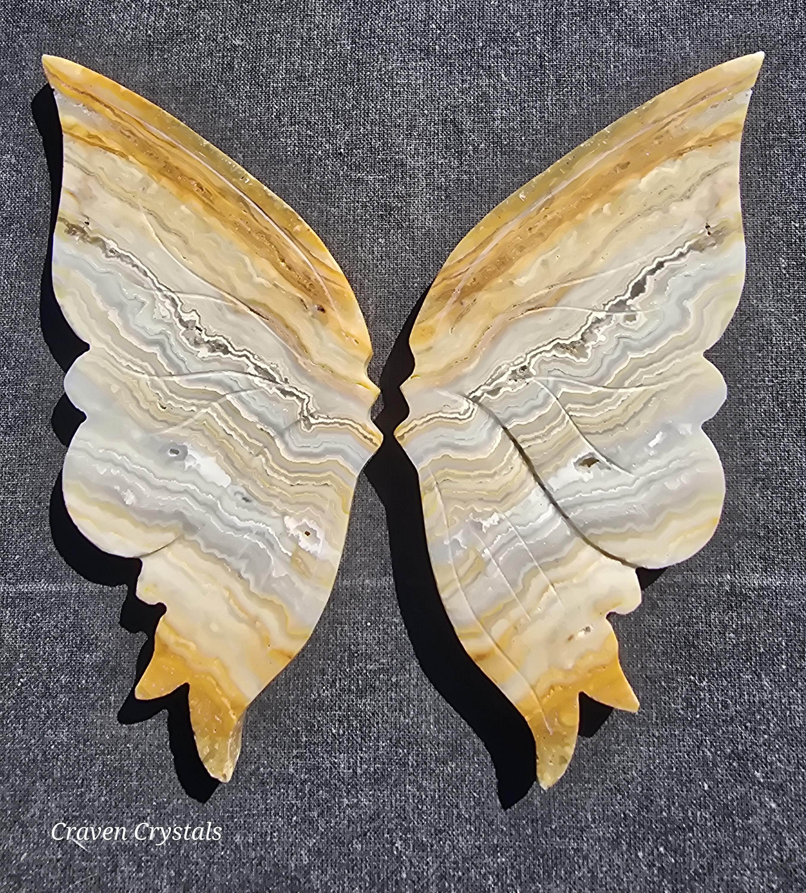 Striking Yellow Crazy Lace Agate, also known as Lemon Lace, Crystal Butterfly Wings with amazing banding