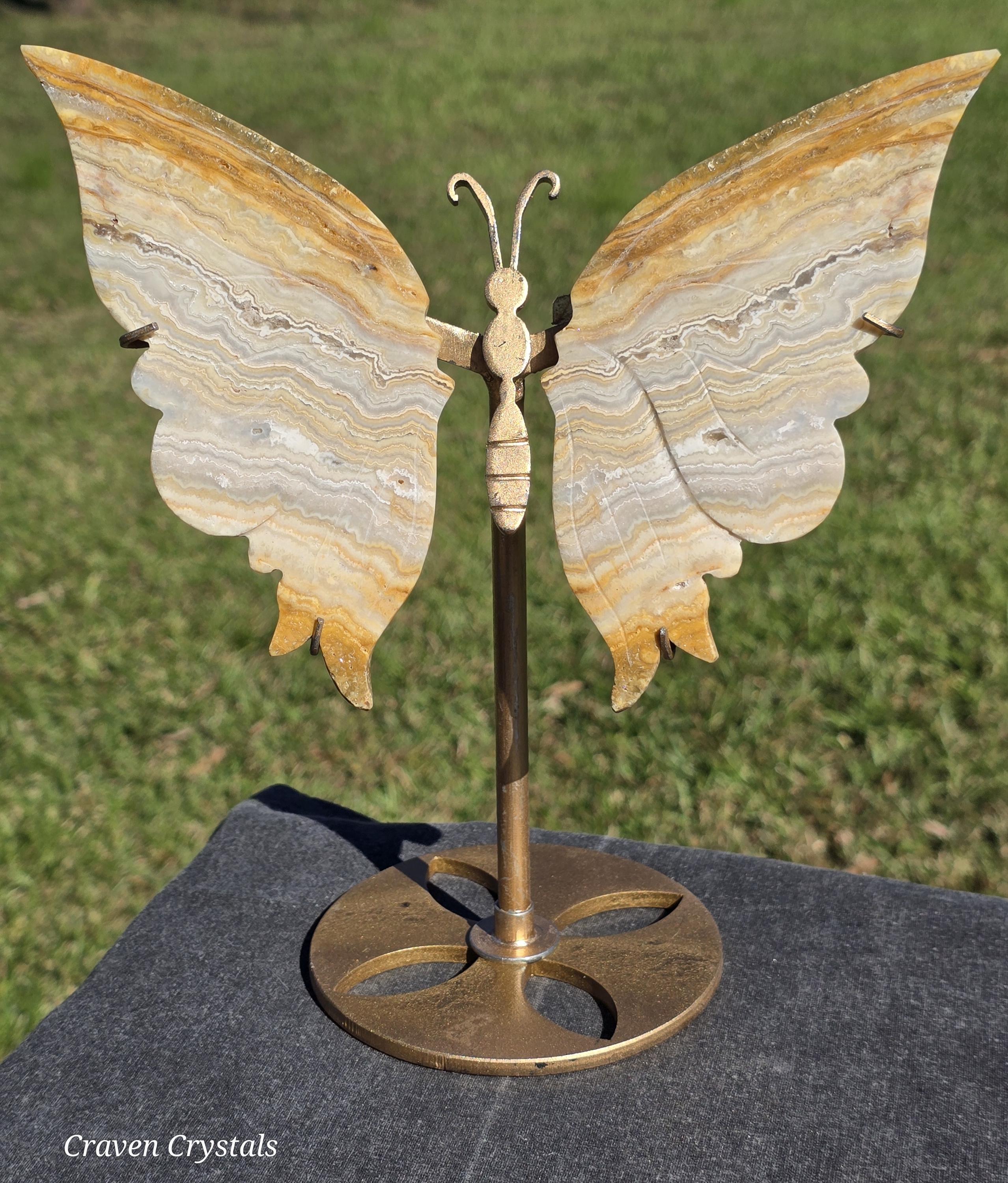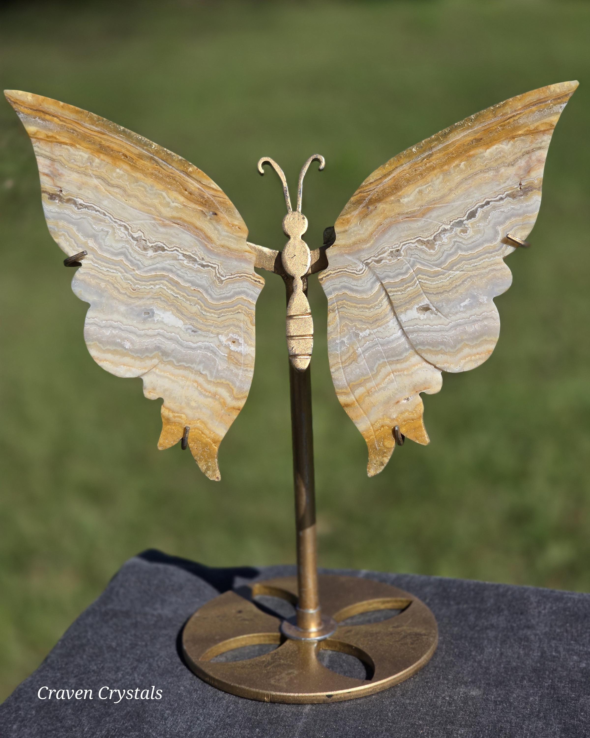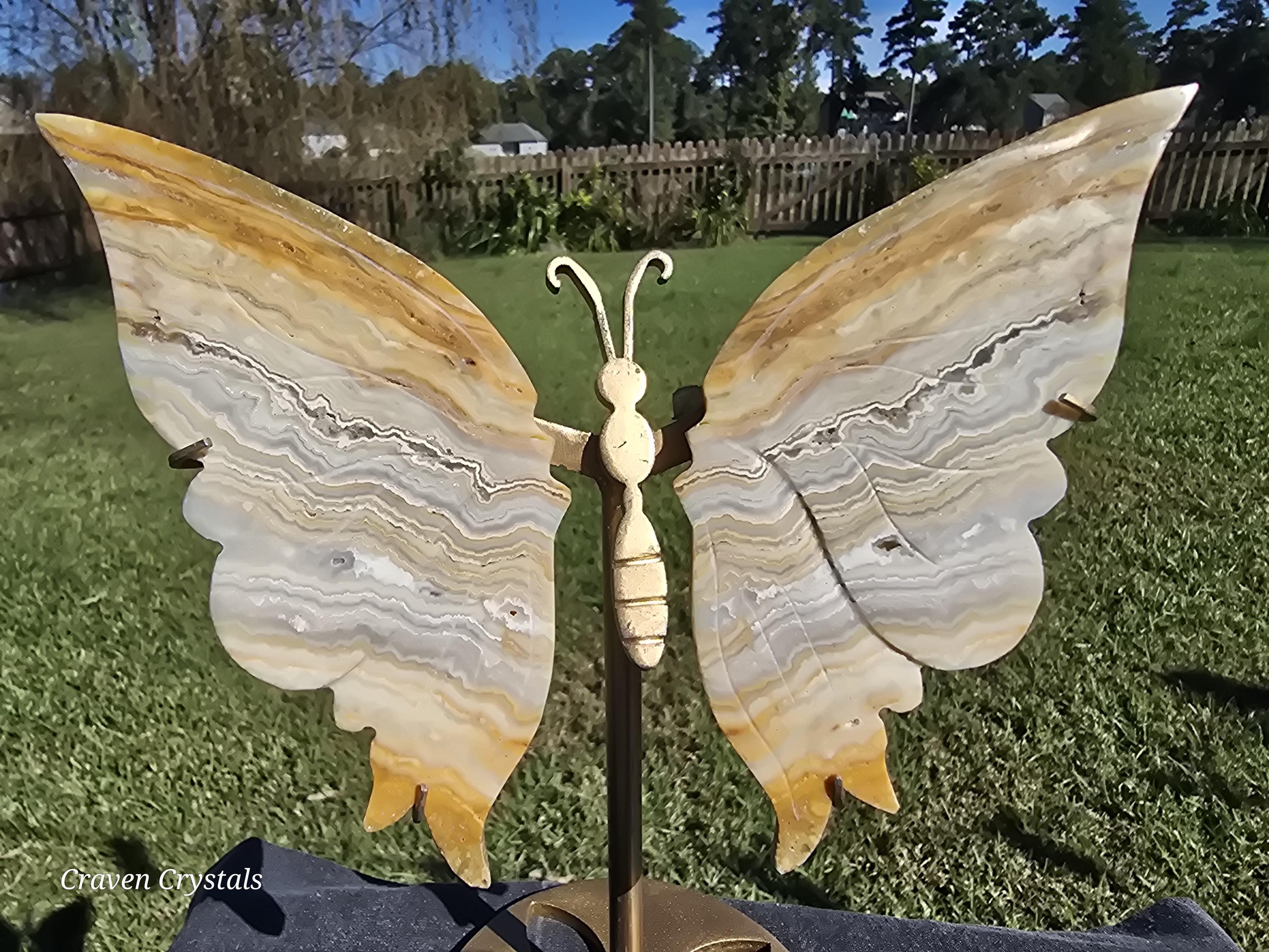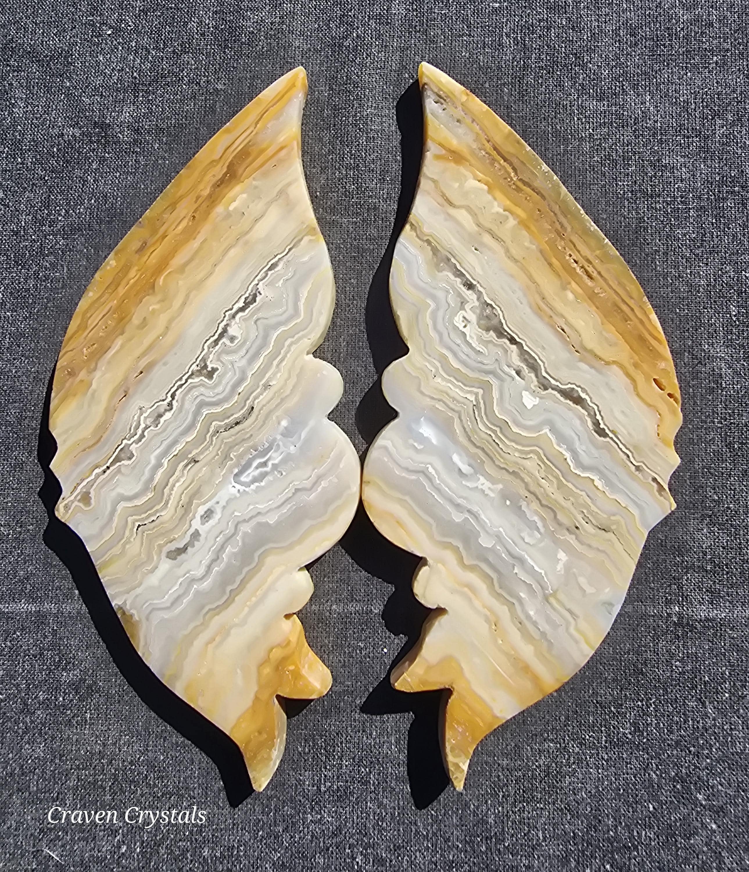 Striking Yellow Crazy Lace Agate, also known as Lemon Lace, Crystal Butterfly Wings with amazing banding