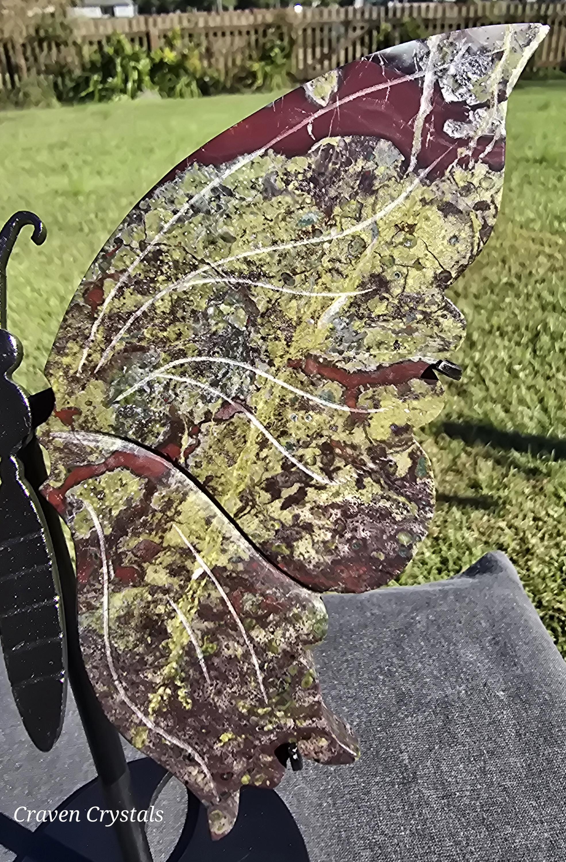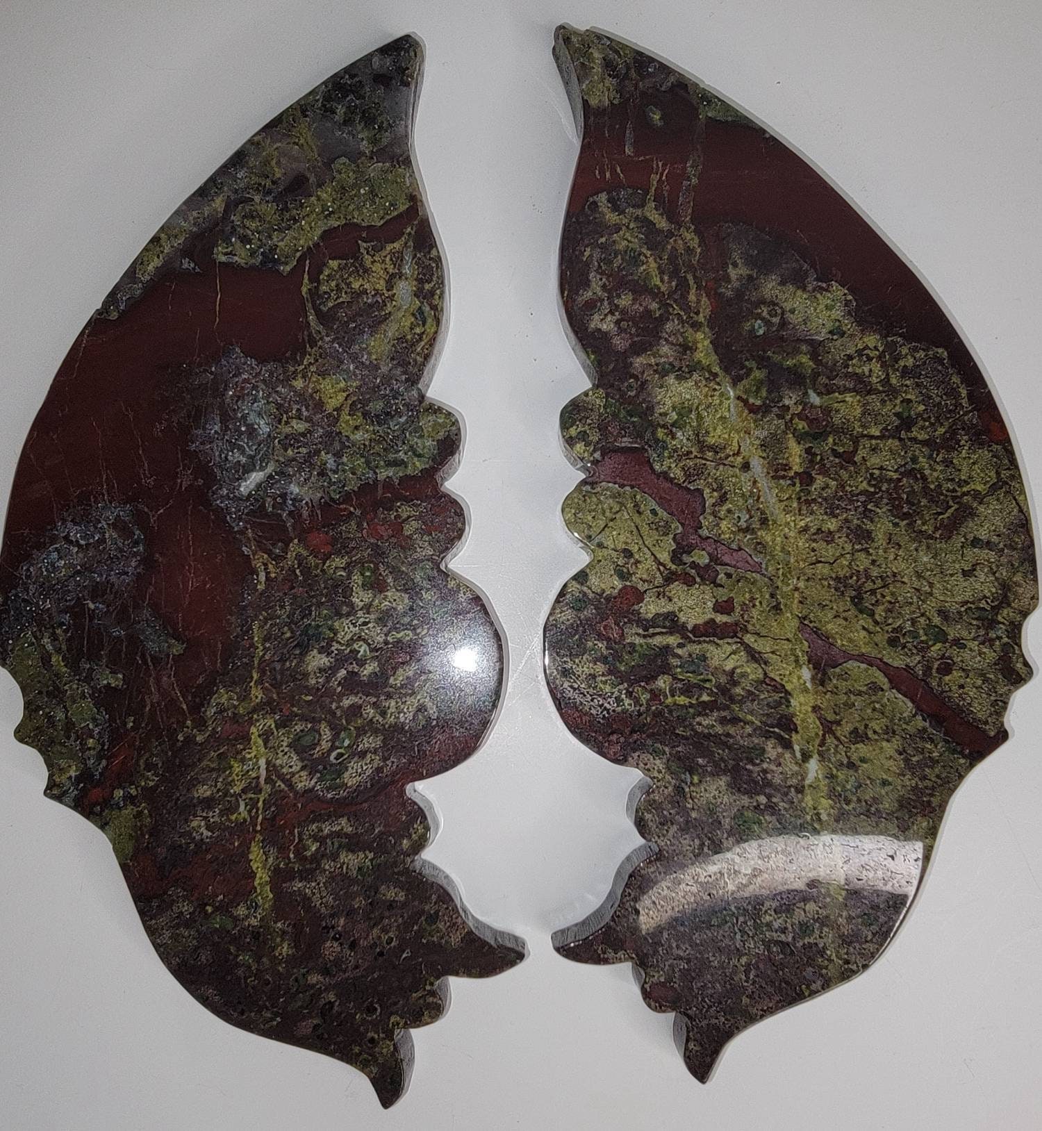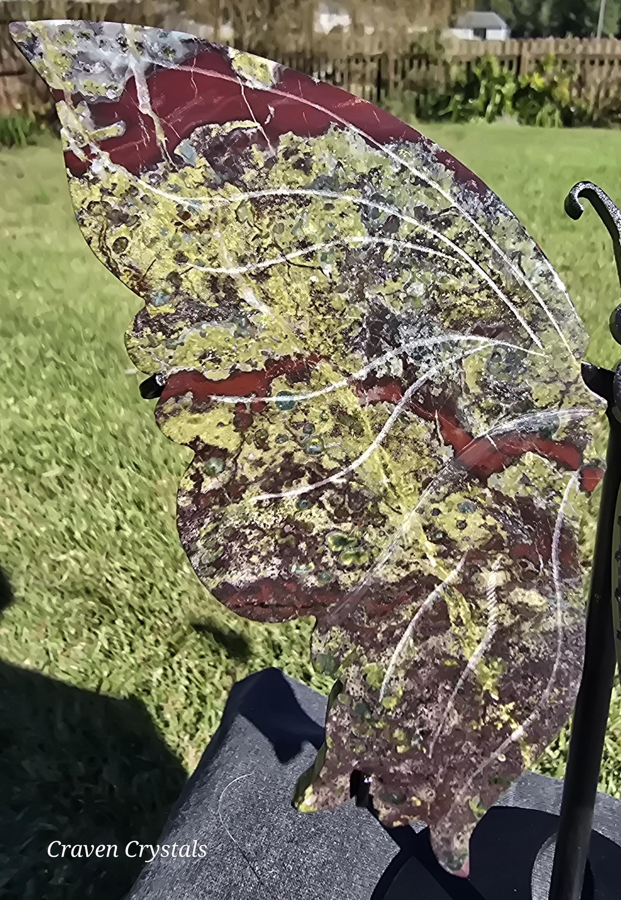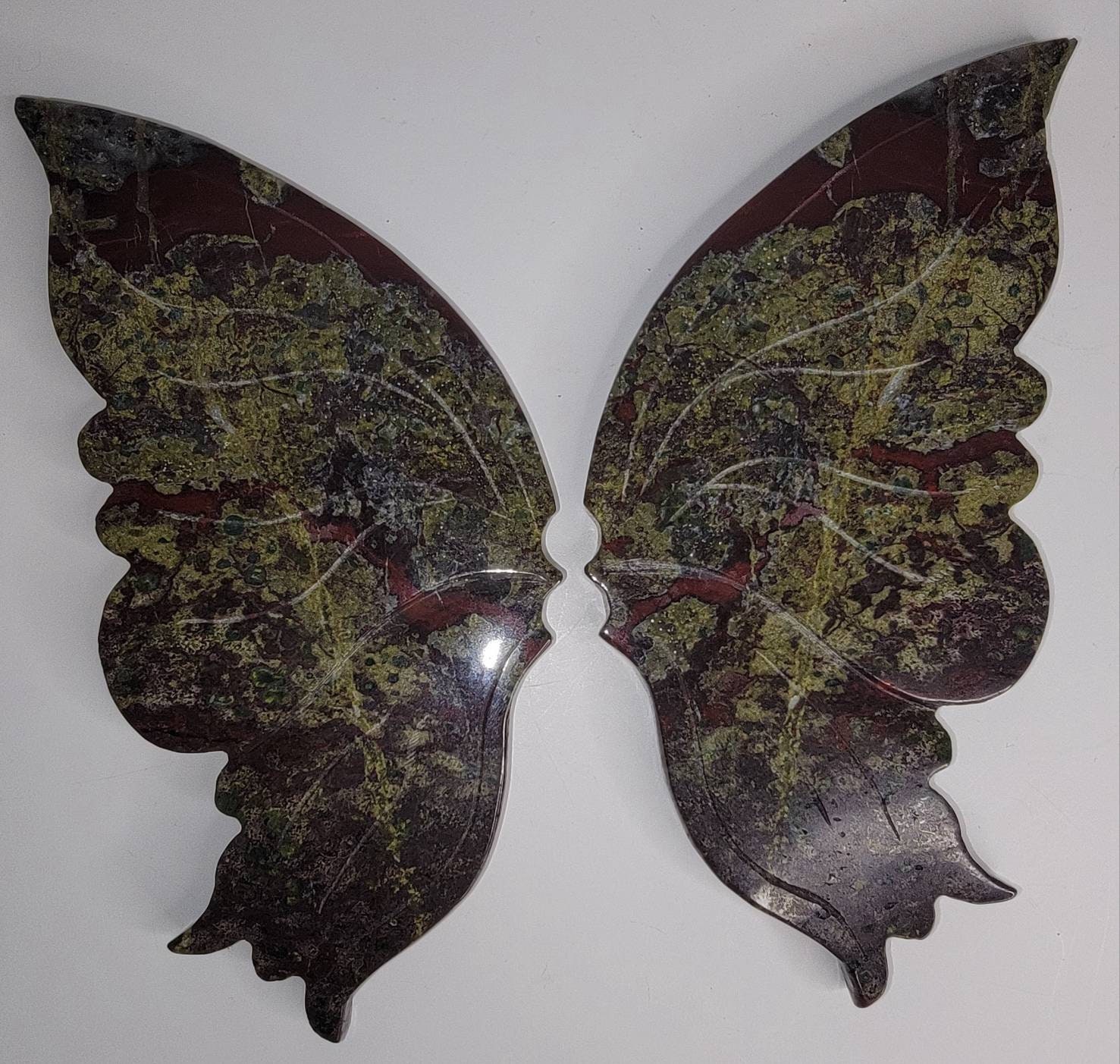 Dragons Blood Crystal Butterfly Wings with shades of green with deep red rivers of blood