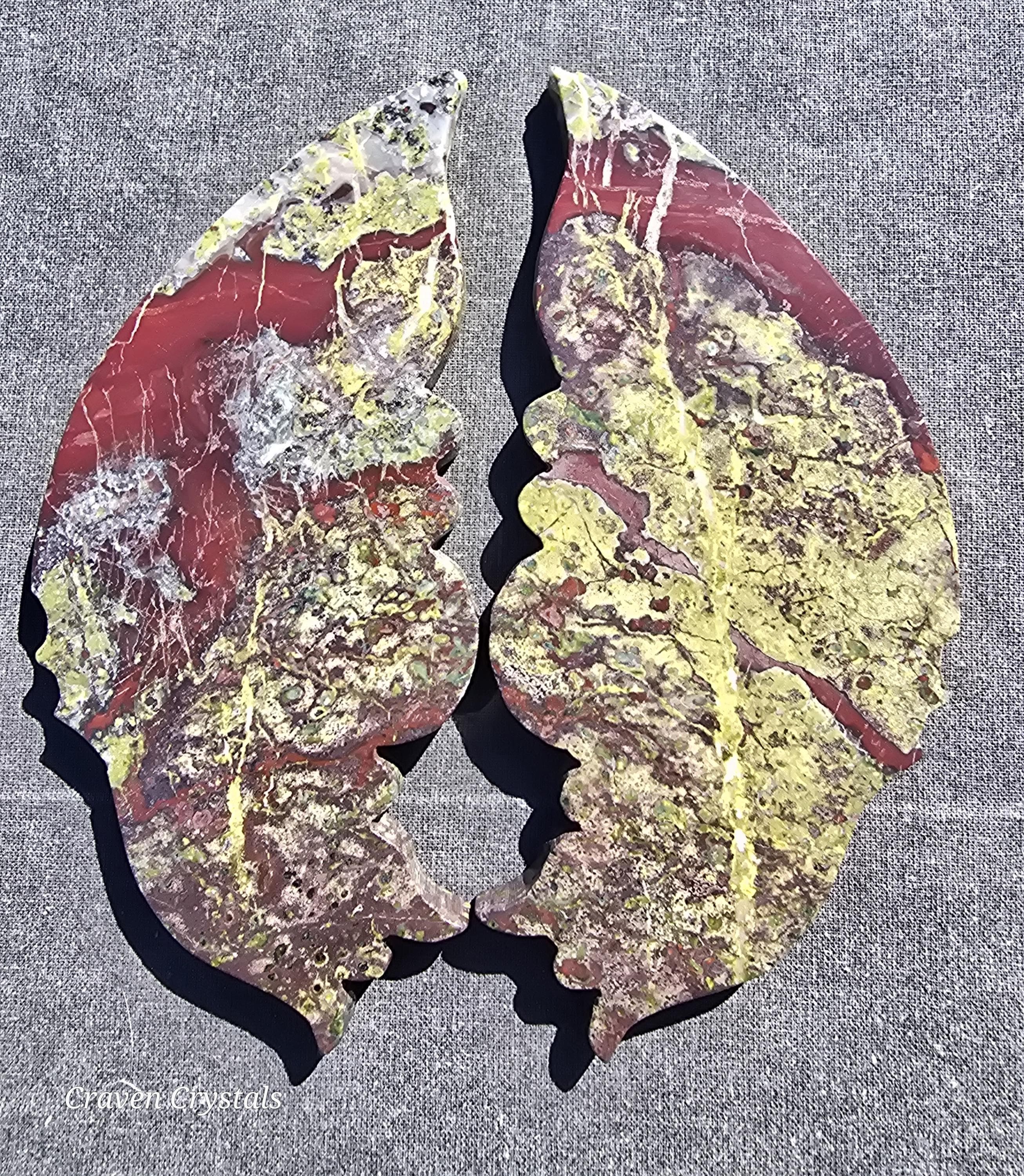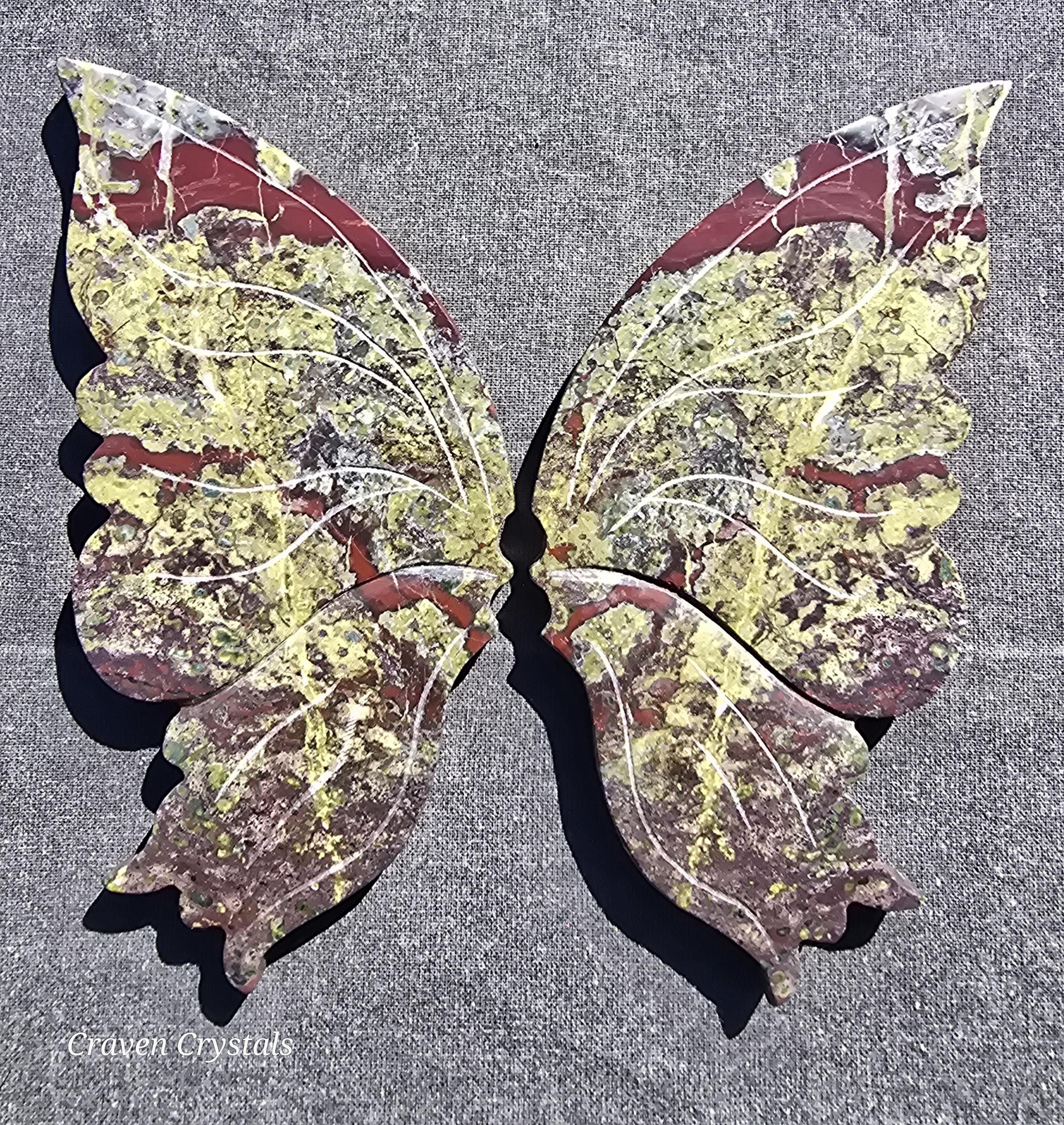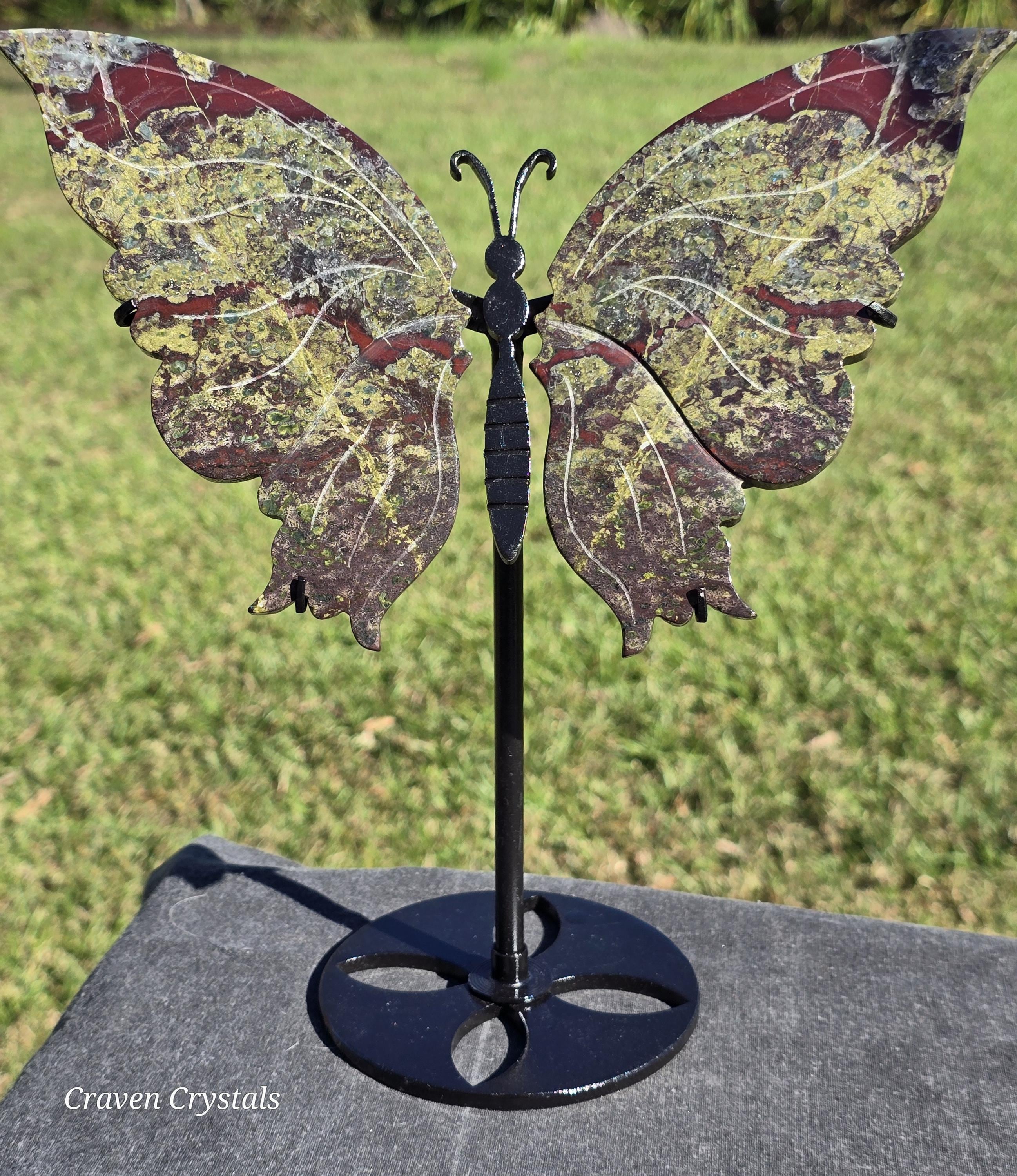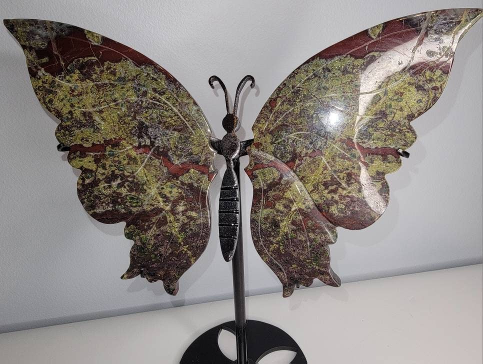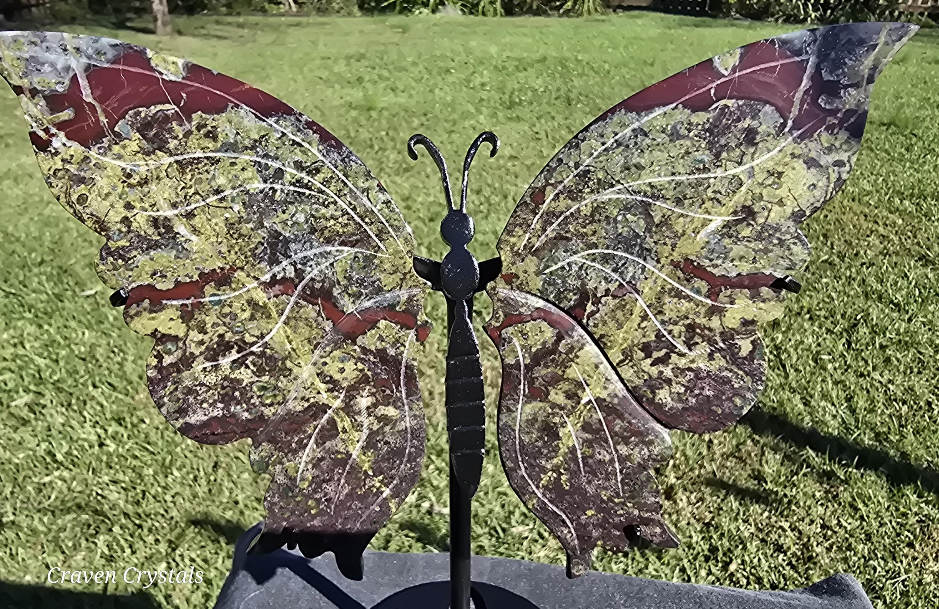 Dragons Blood Crystal Butterfly Wings with shades of green with deep red rivers of blood