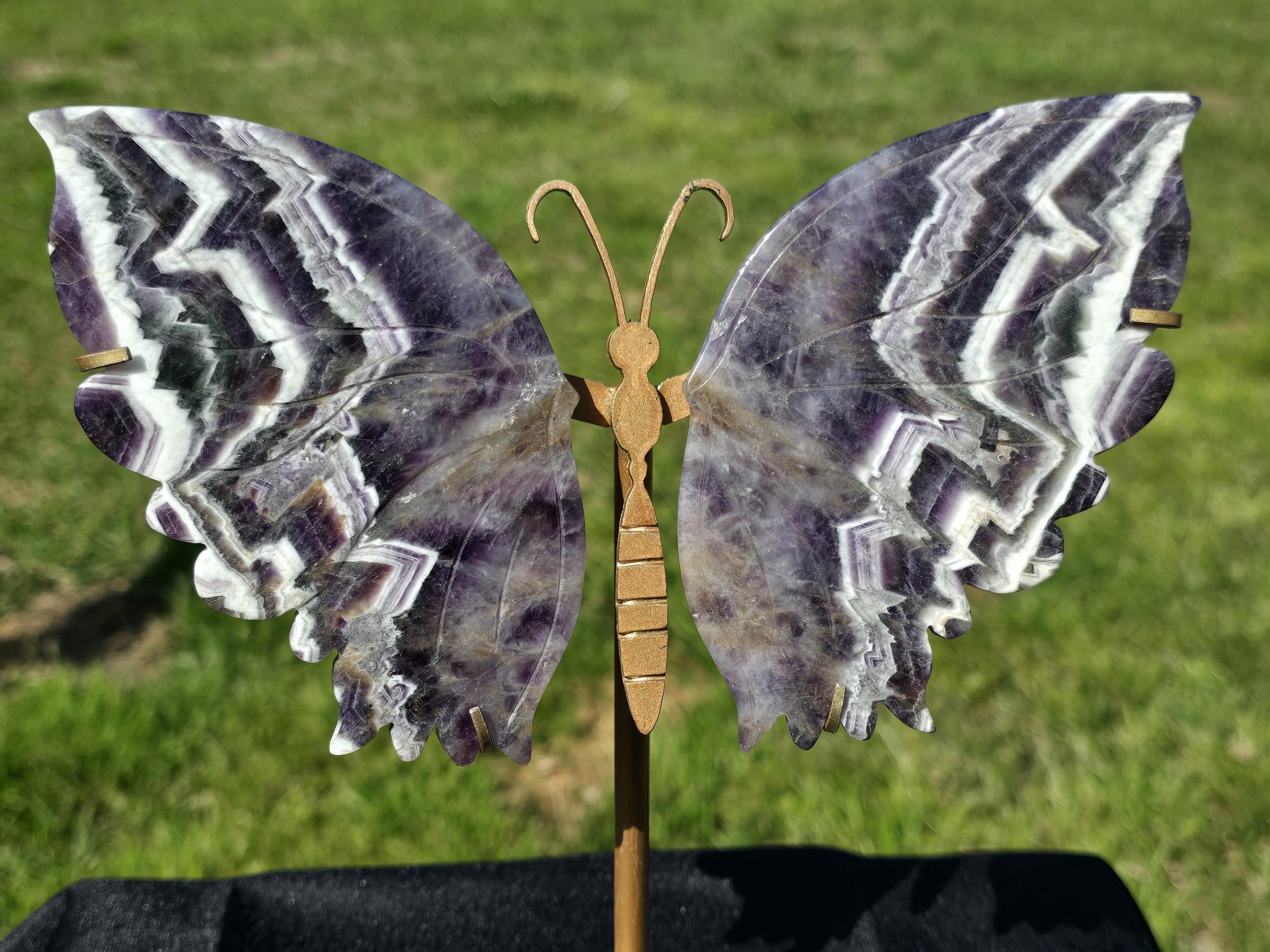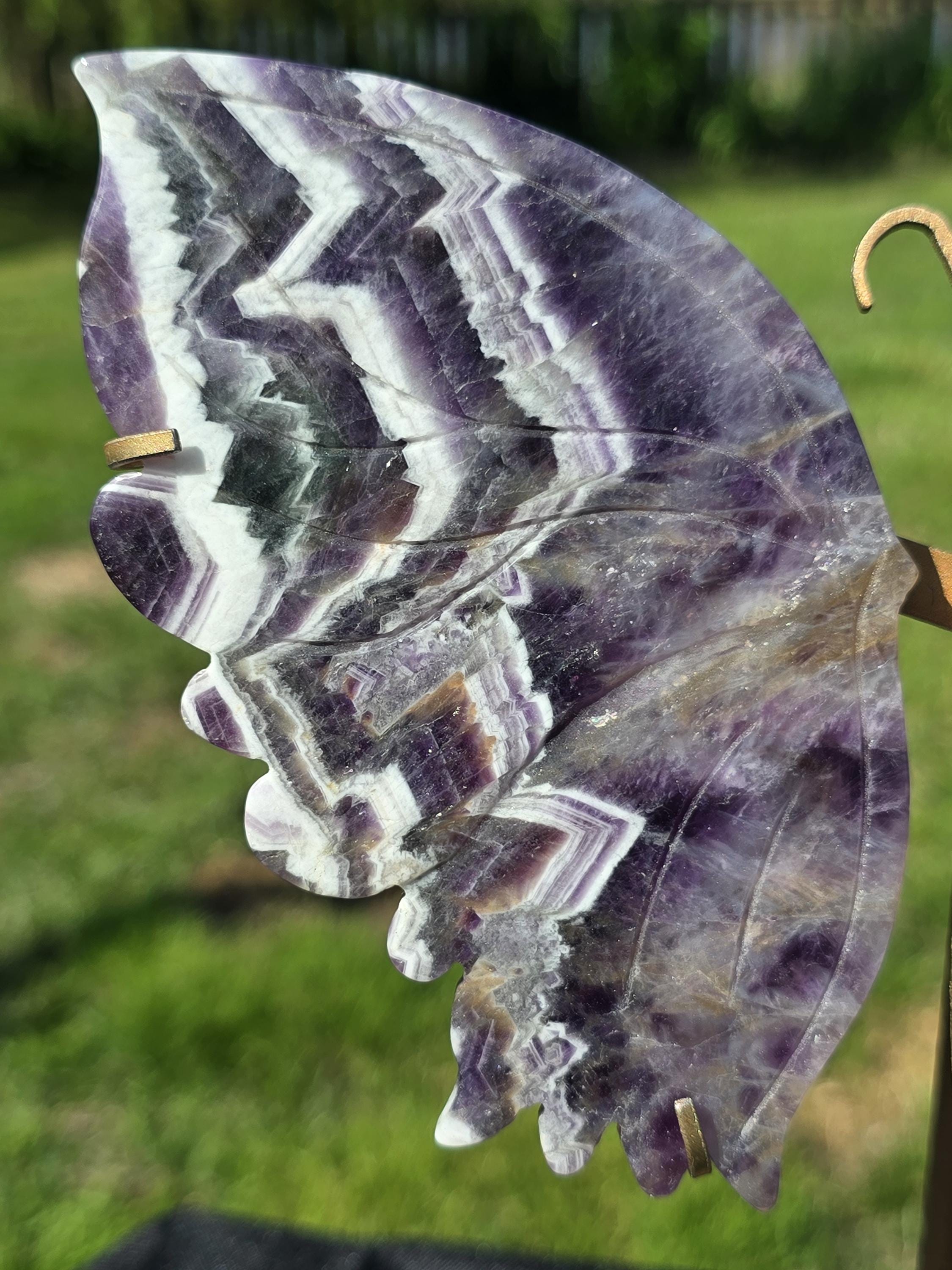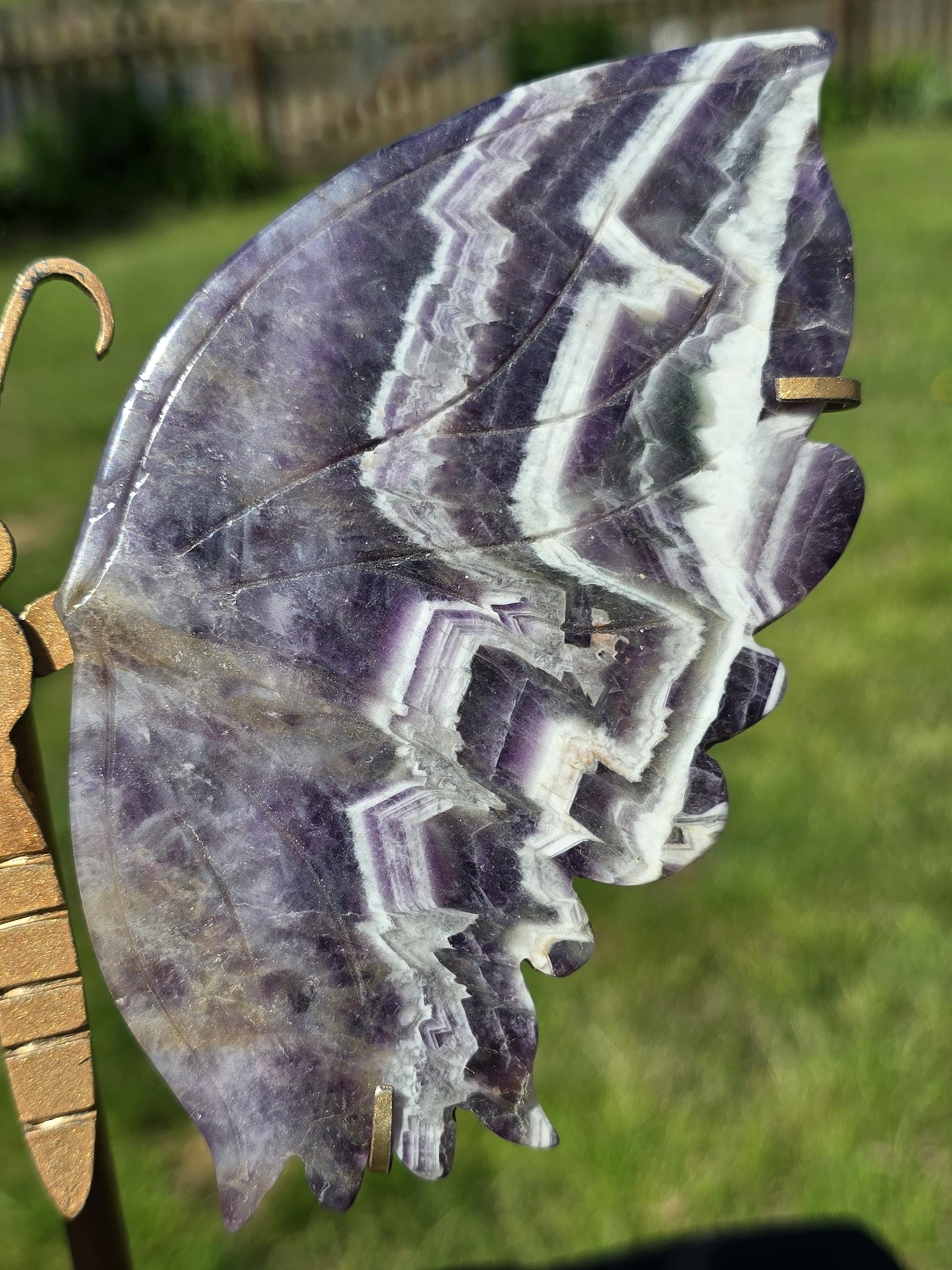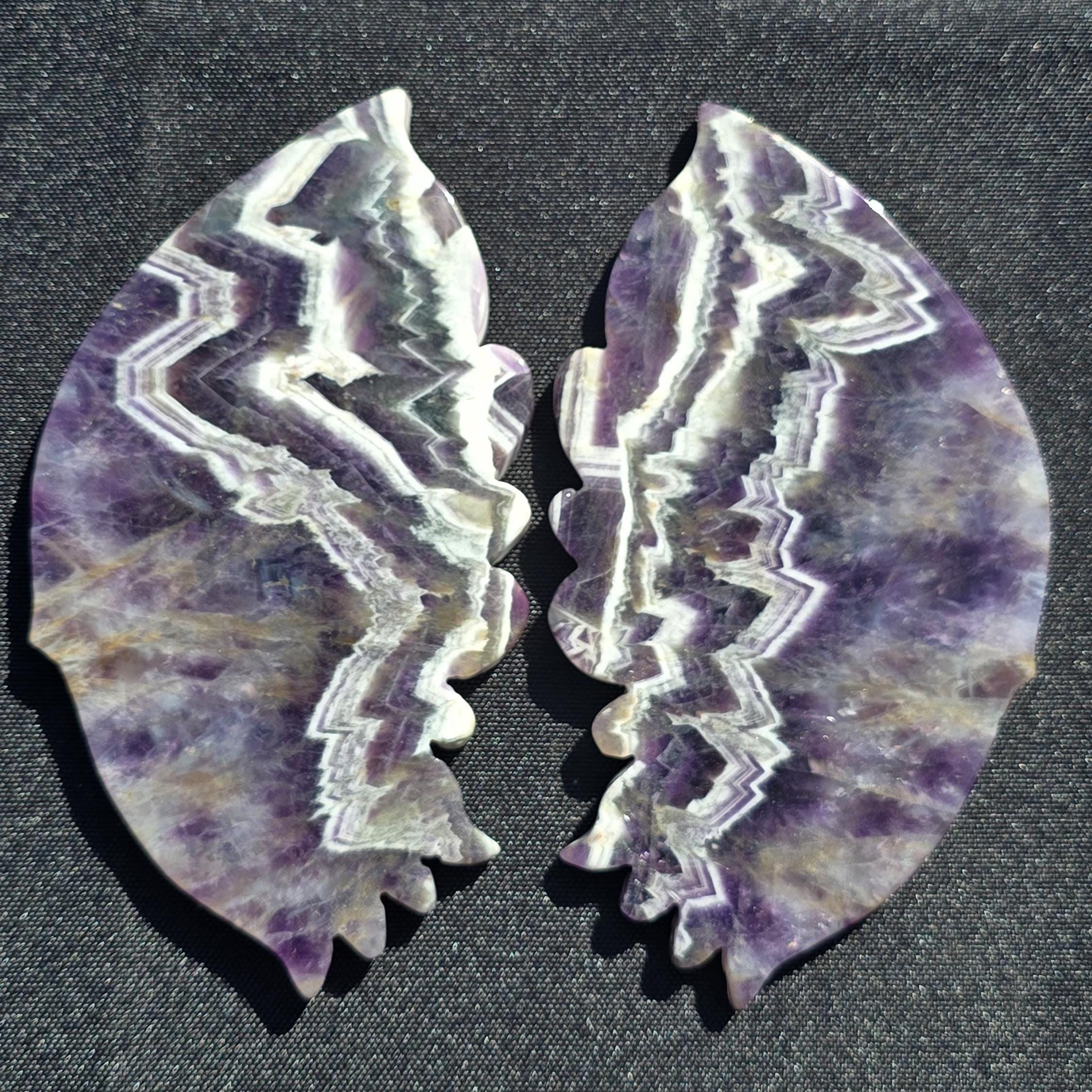 Beautiful purple Dream Amethyst Crystal Butterfly Wings with chevron banding