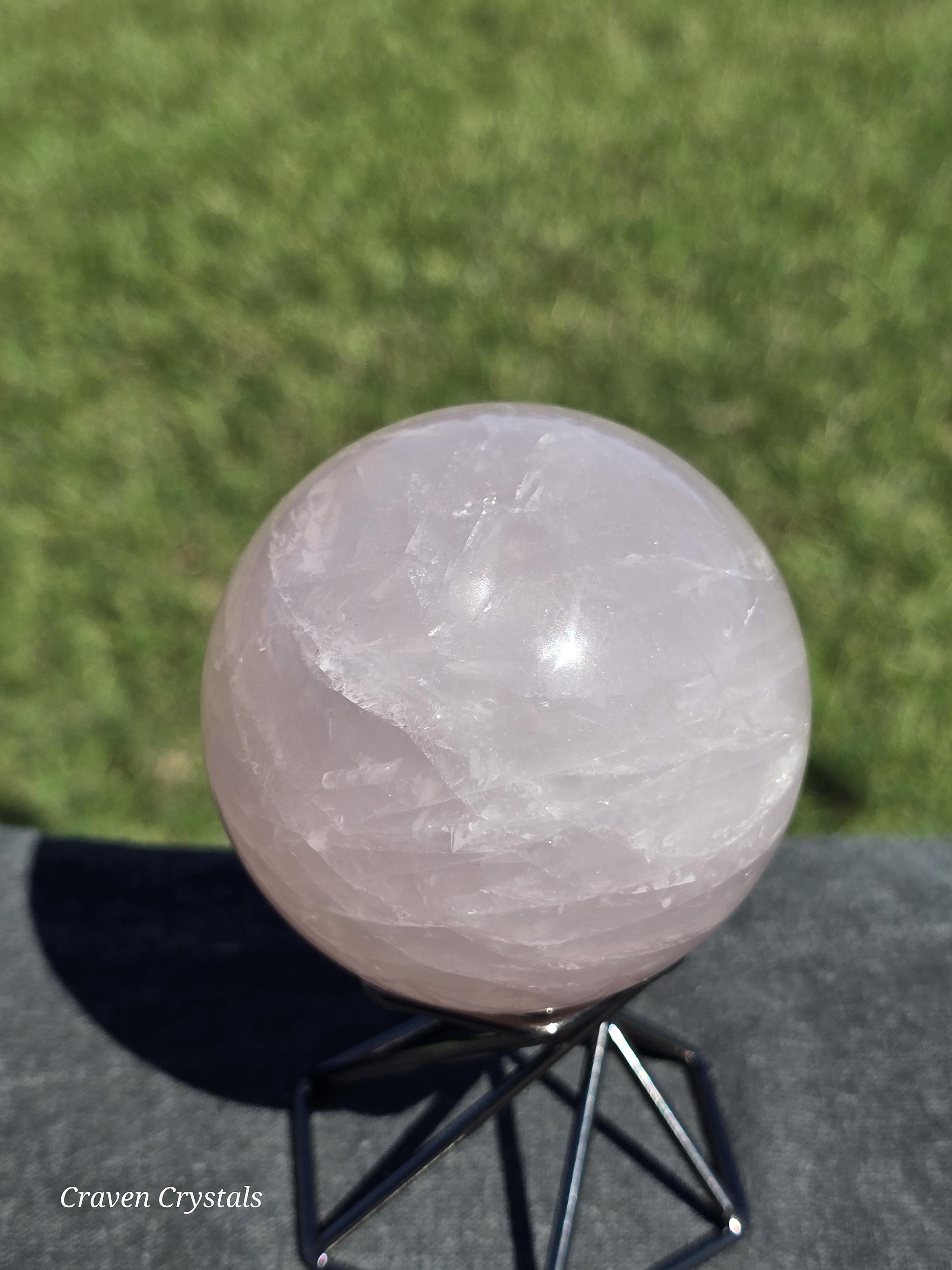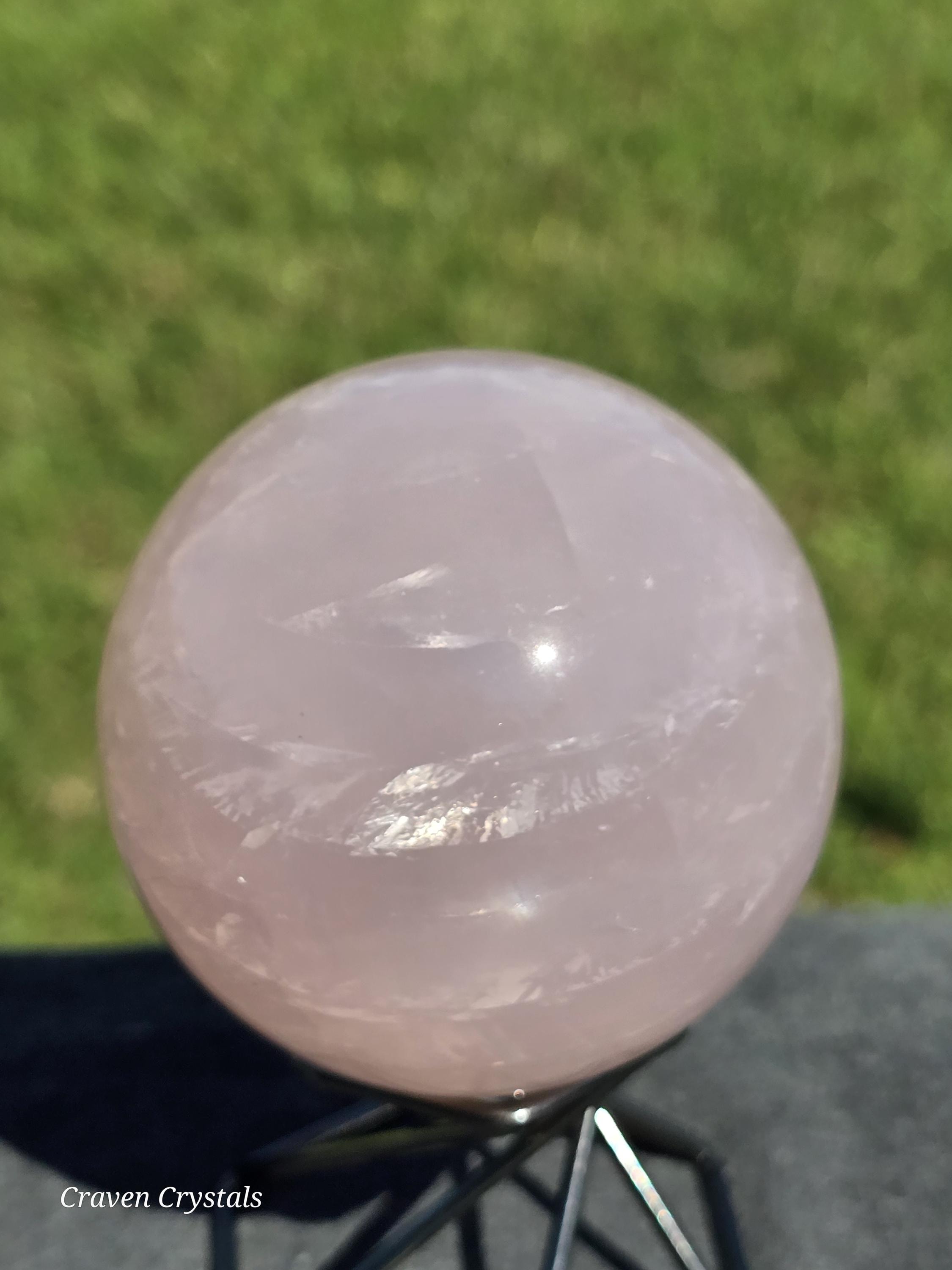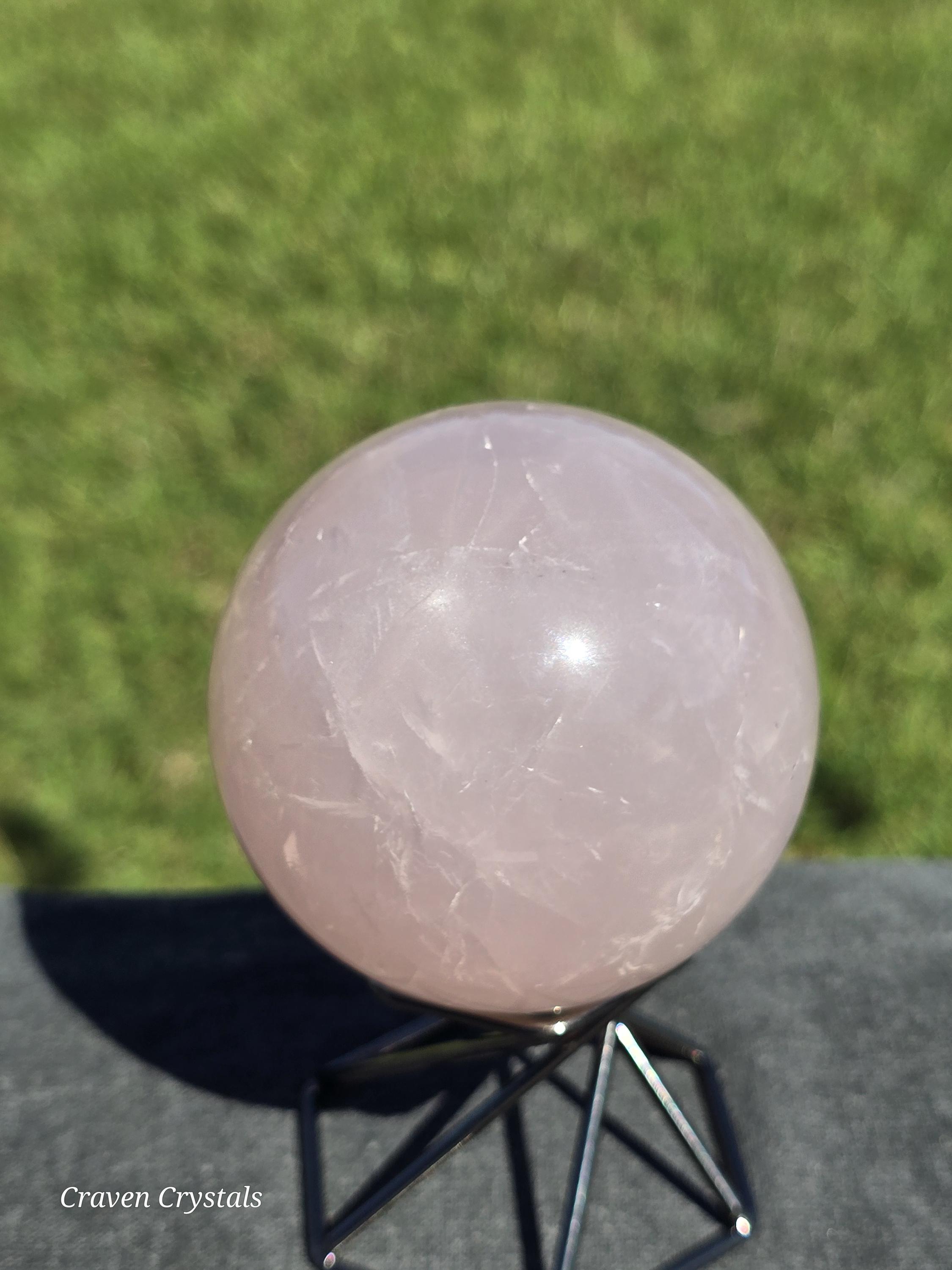 Gorgeous pink Rose Quartz Crystal Sphere with Starlight Flash and rainbows