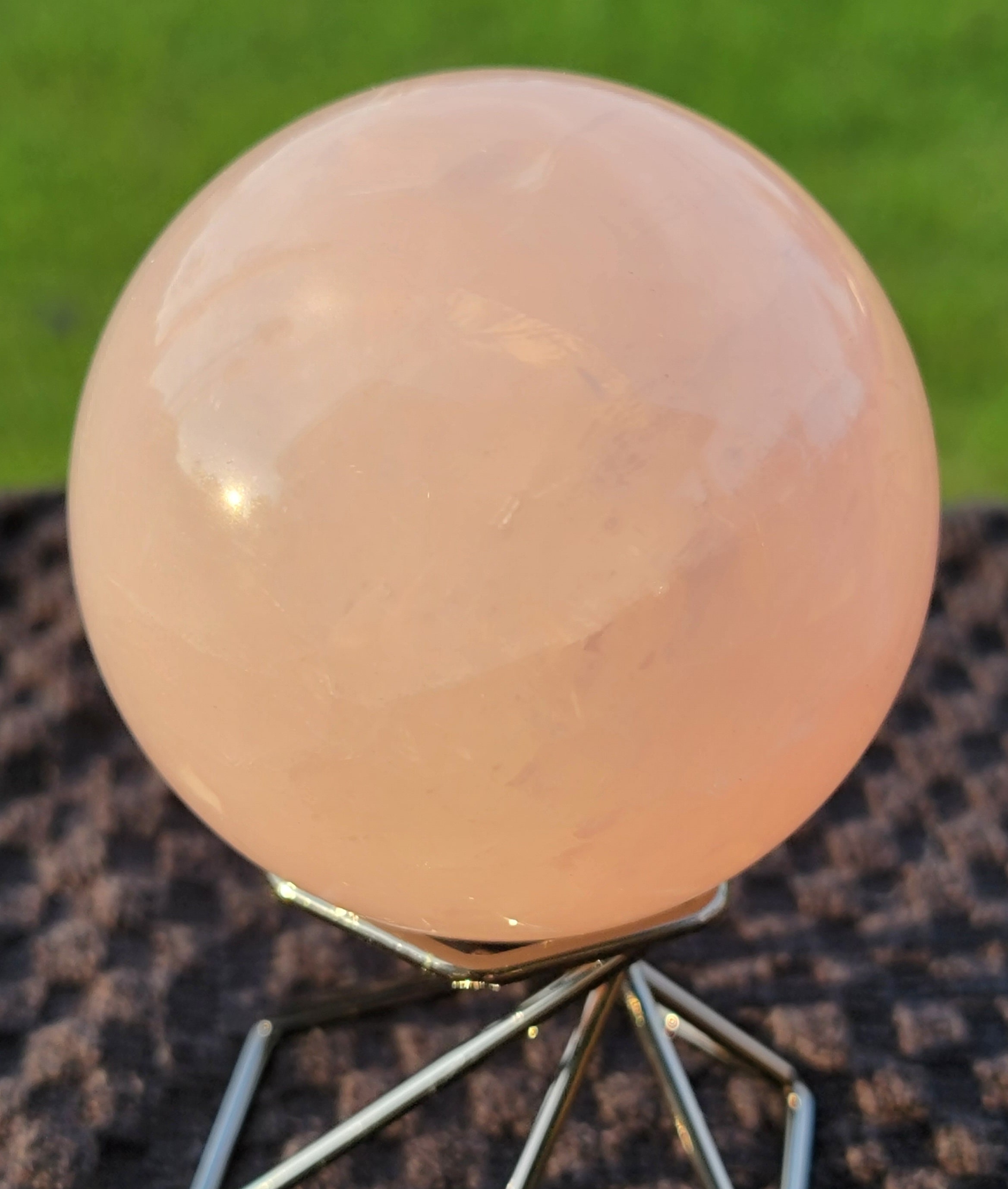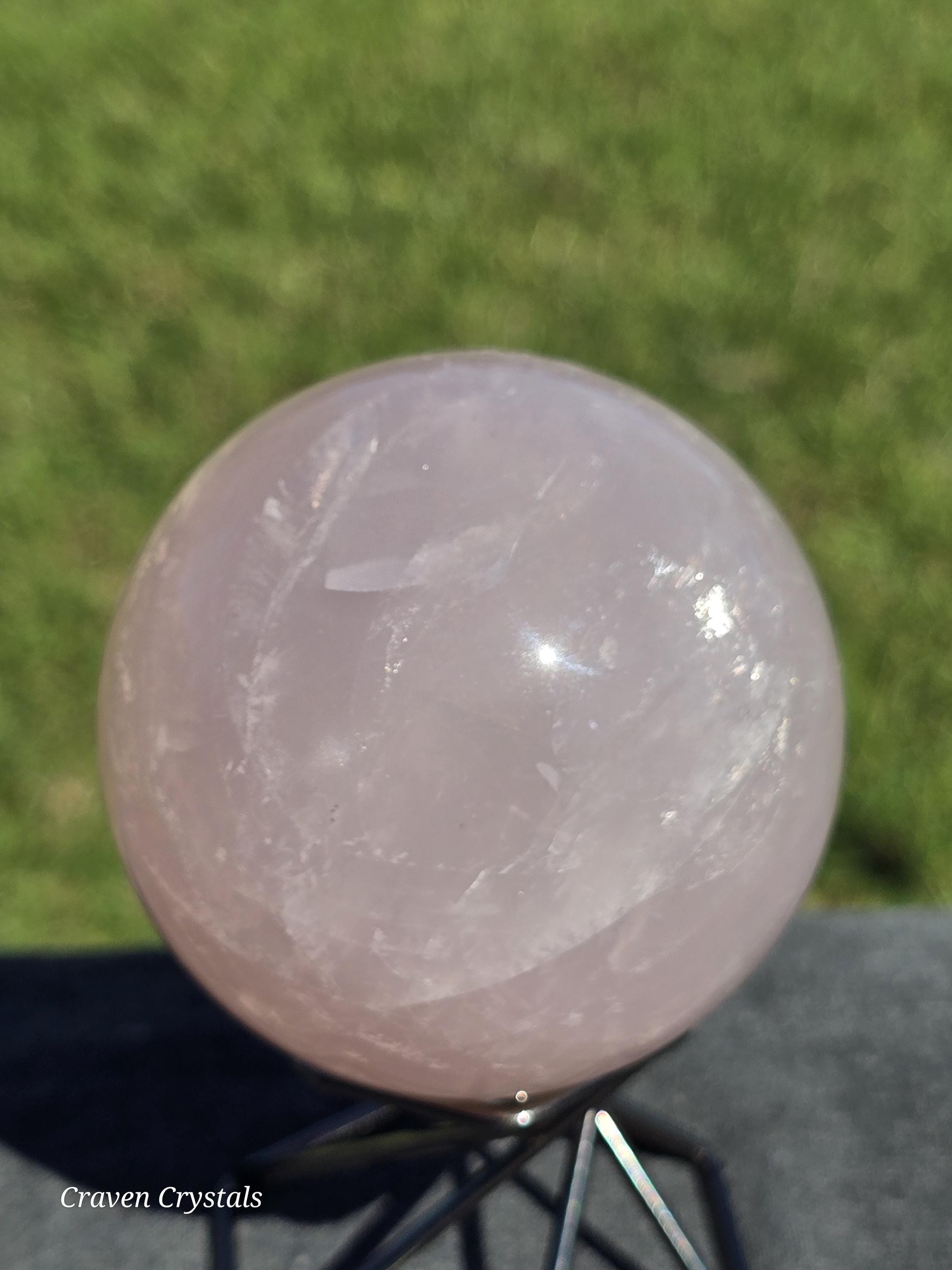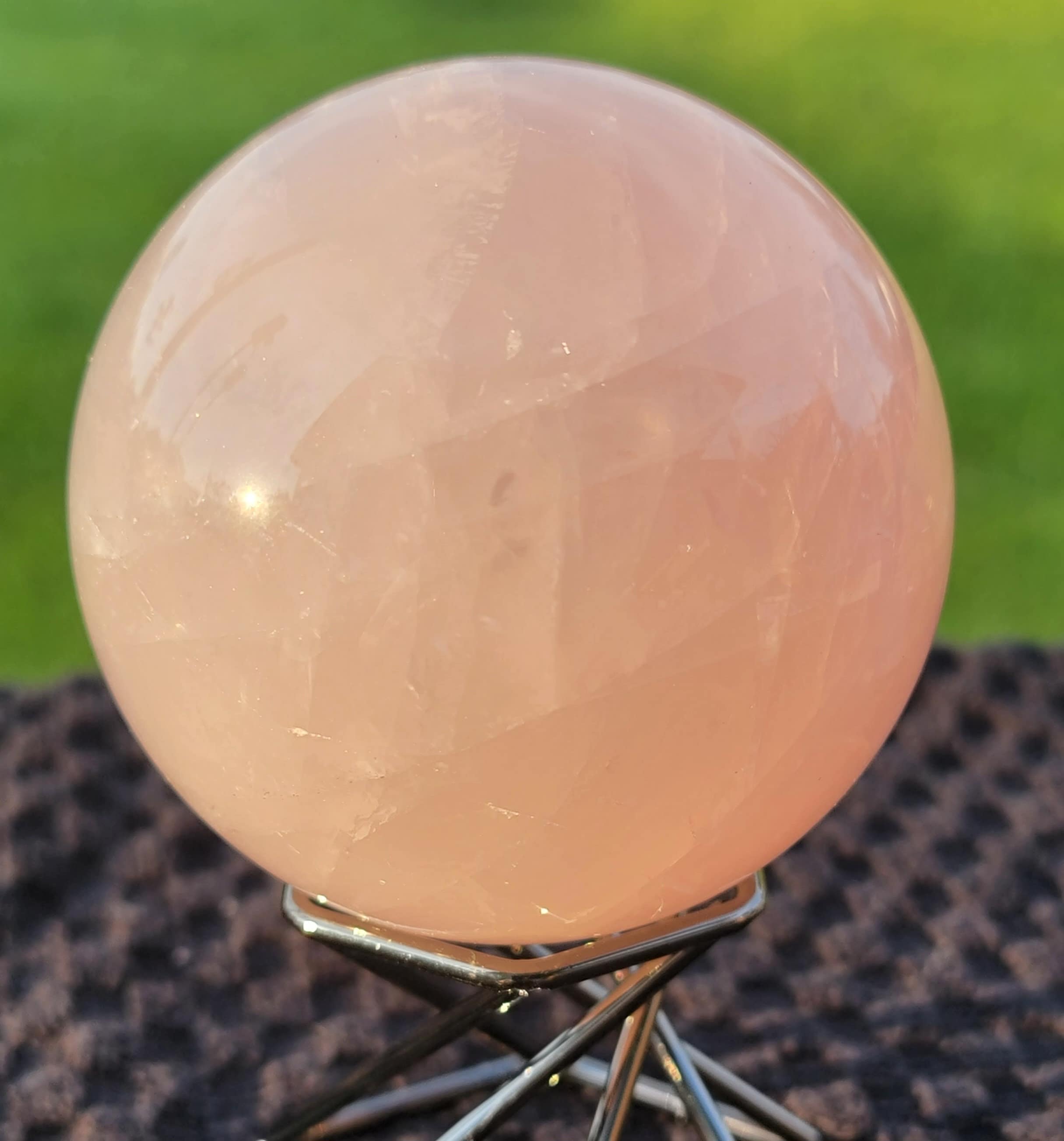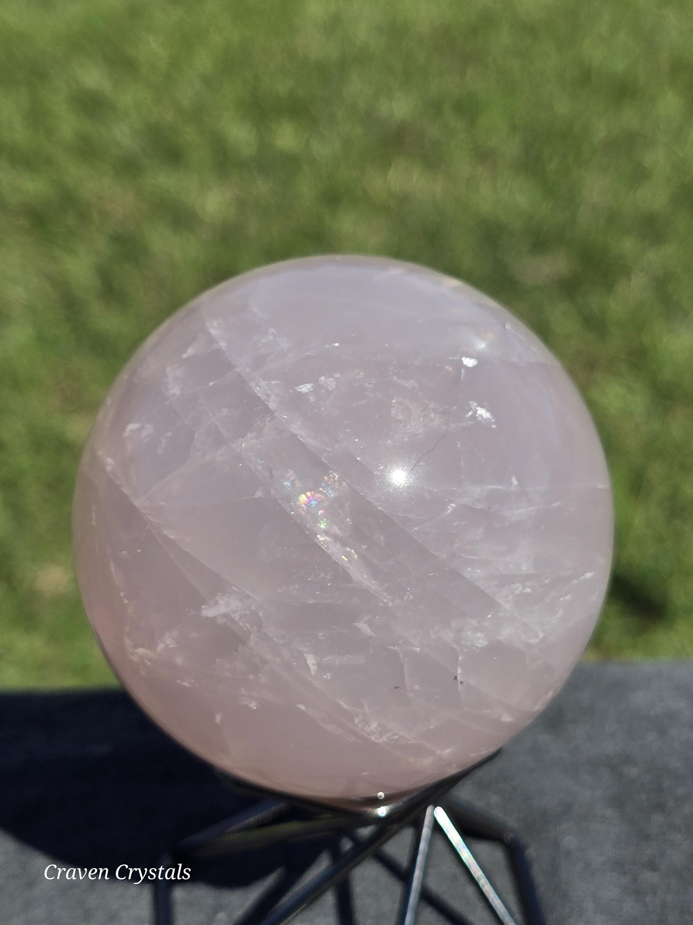 Gorgeous pink Rose Quartz Crystal Sphere with Starlight Flash and rainbows