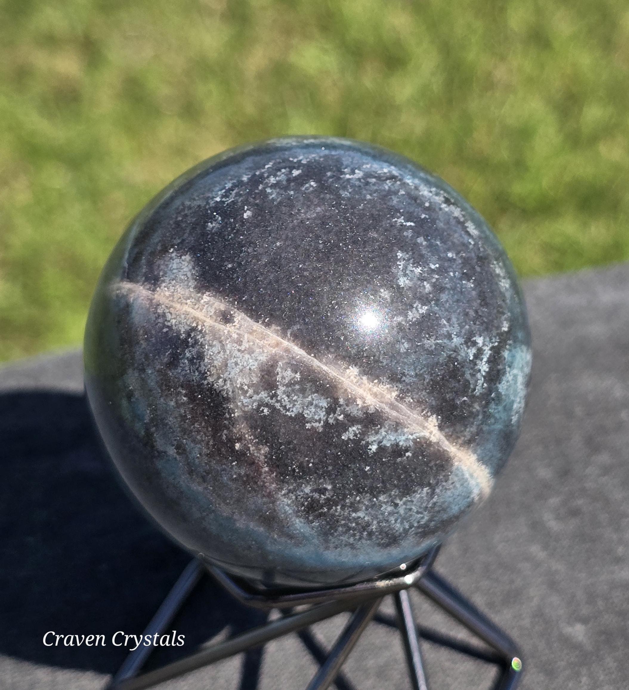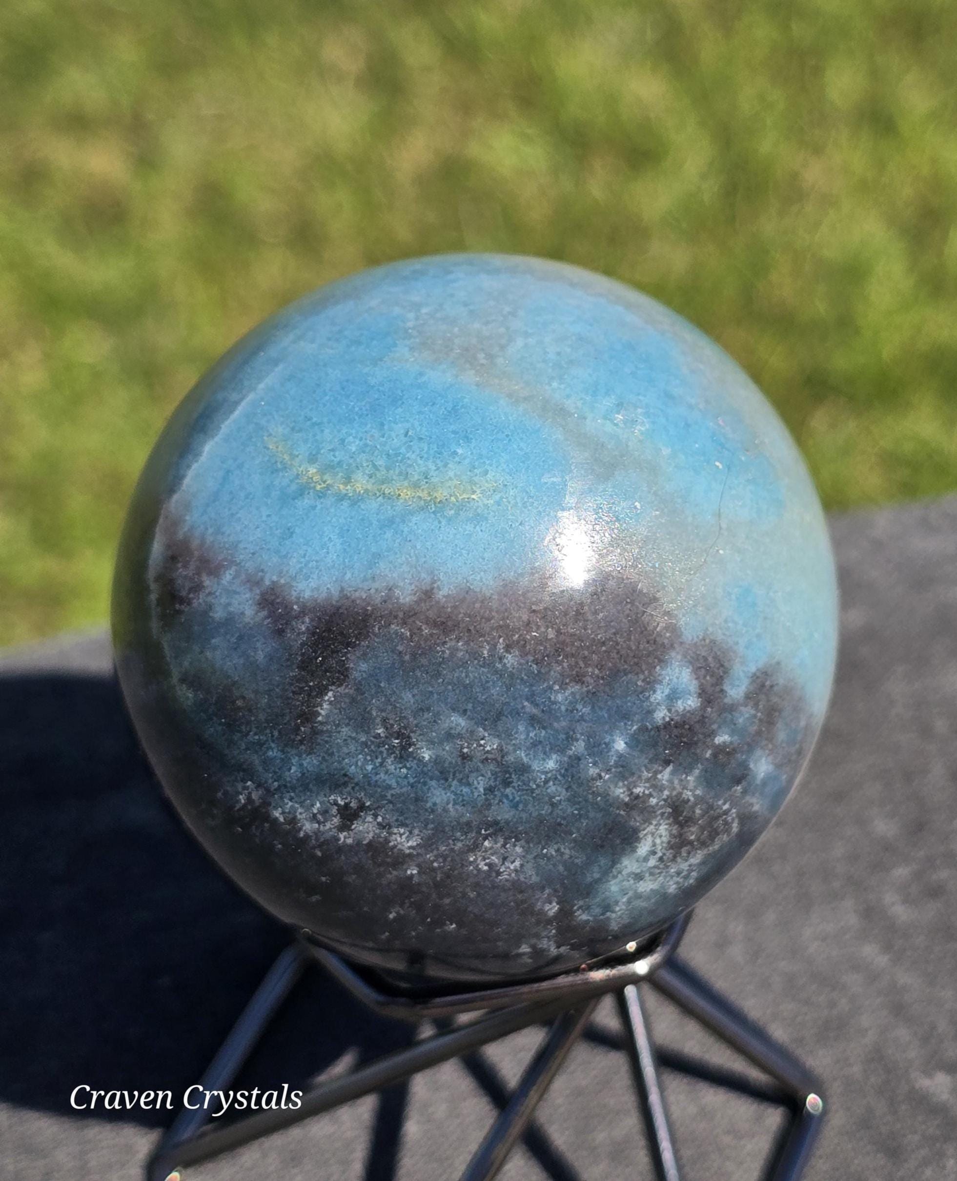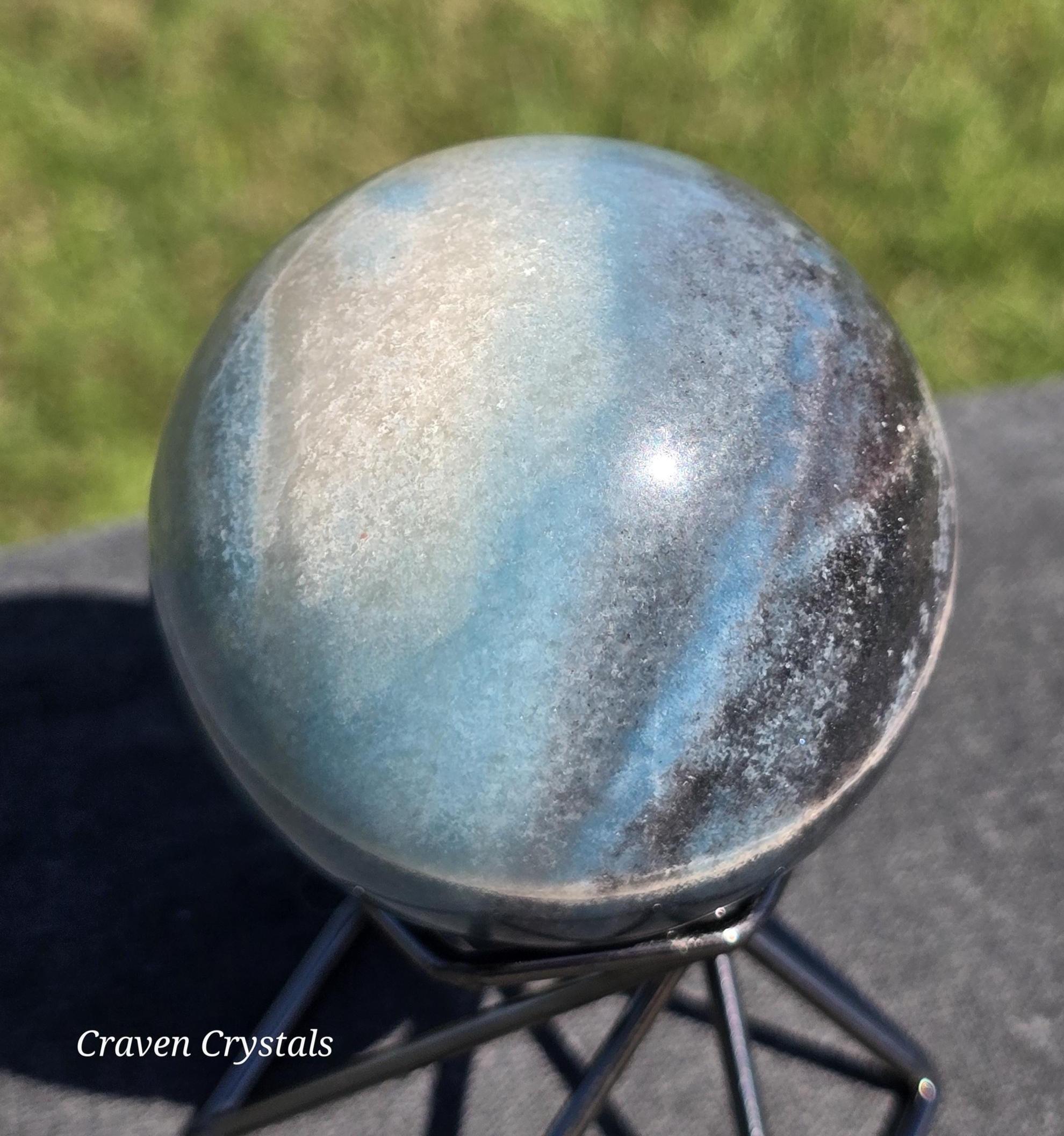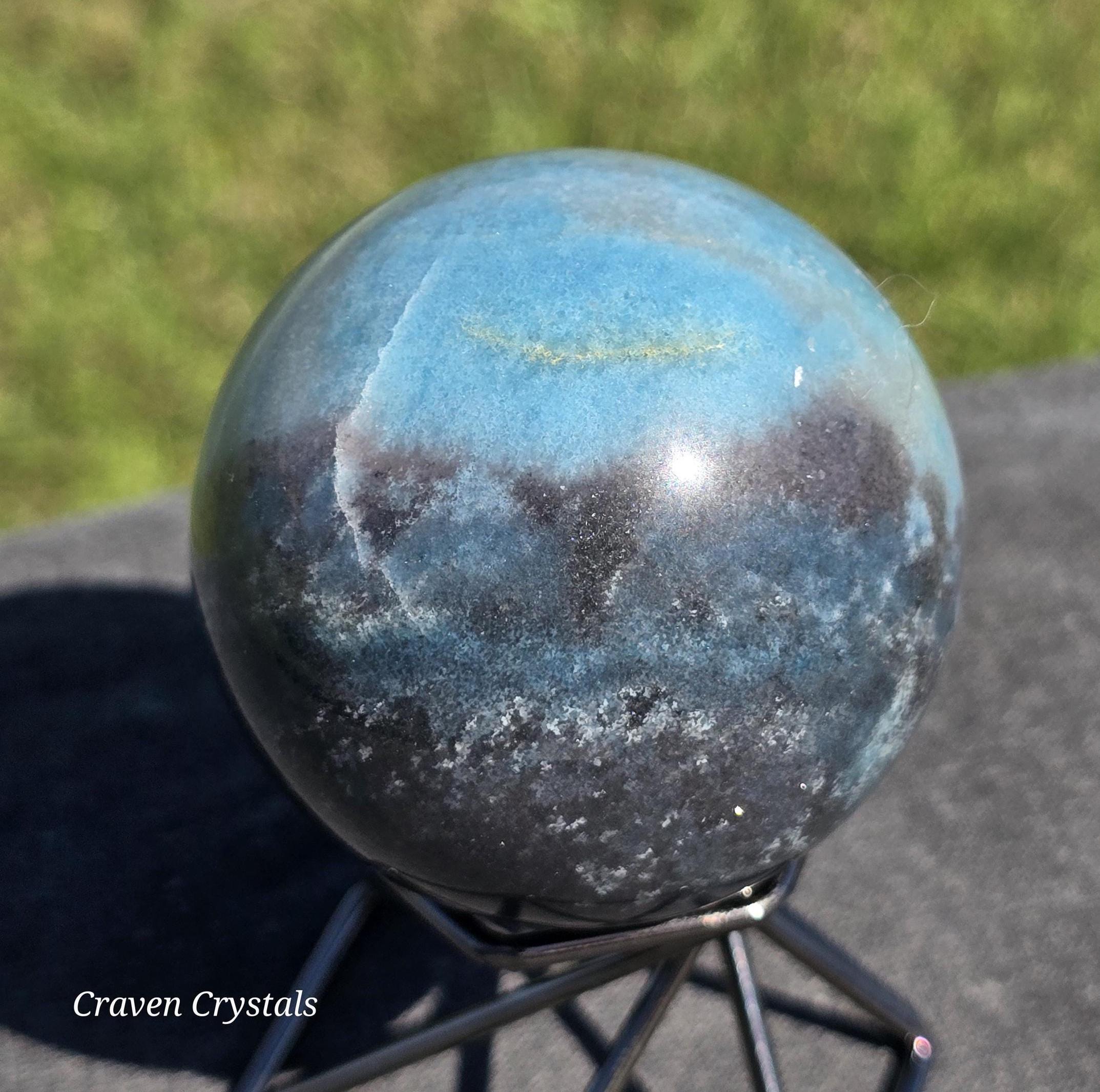 Trolleite Crystal Sphere with striking pale blue and dark blue color, found in association with Lazulite and Scorzalite.