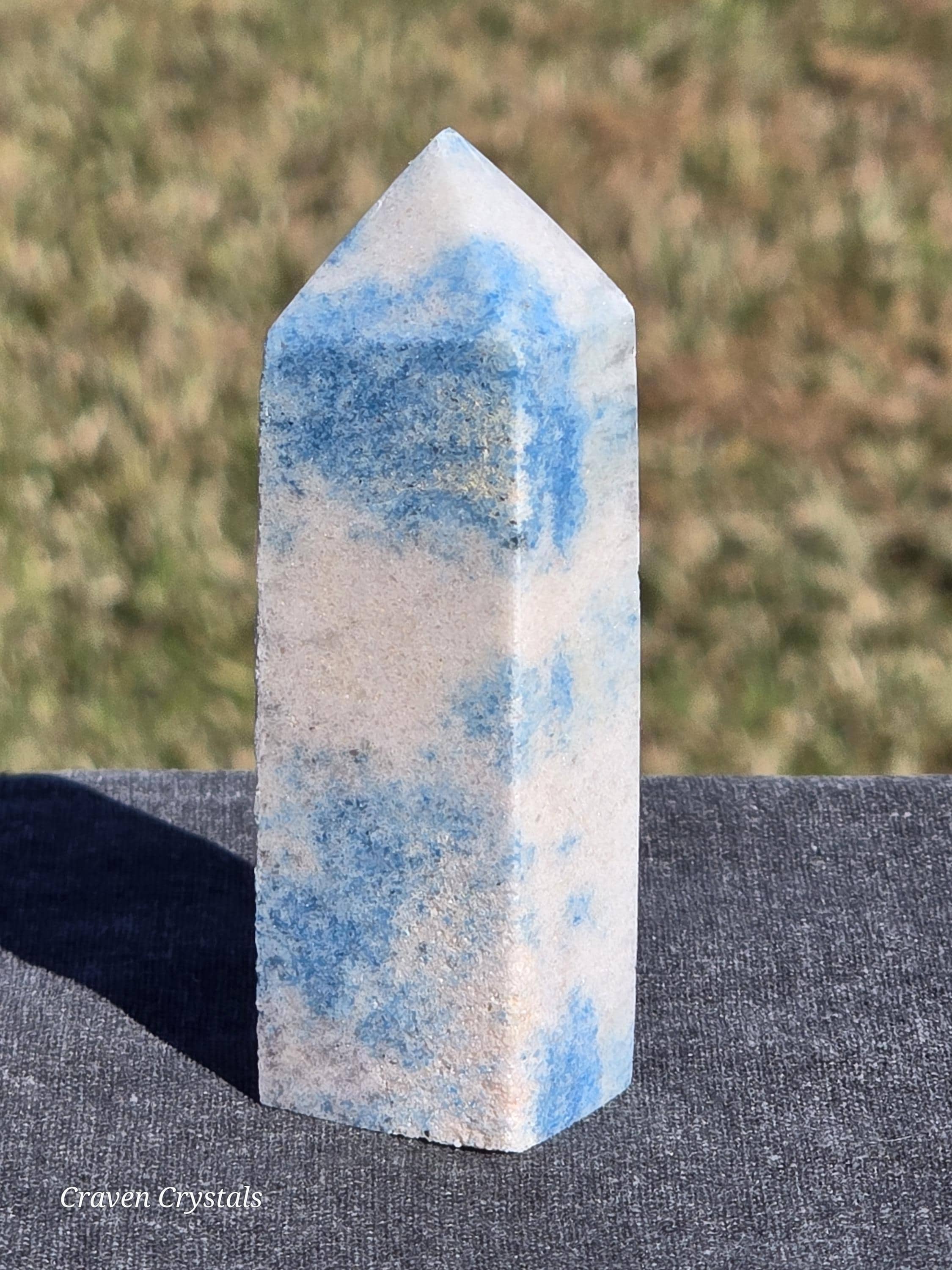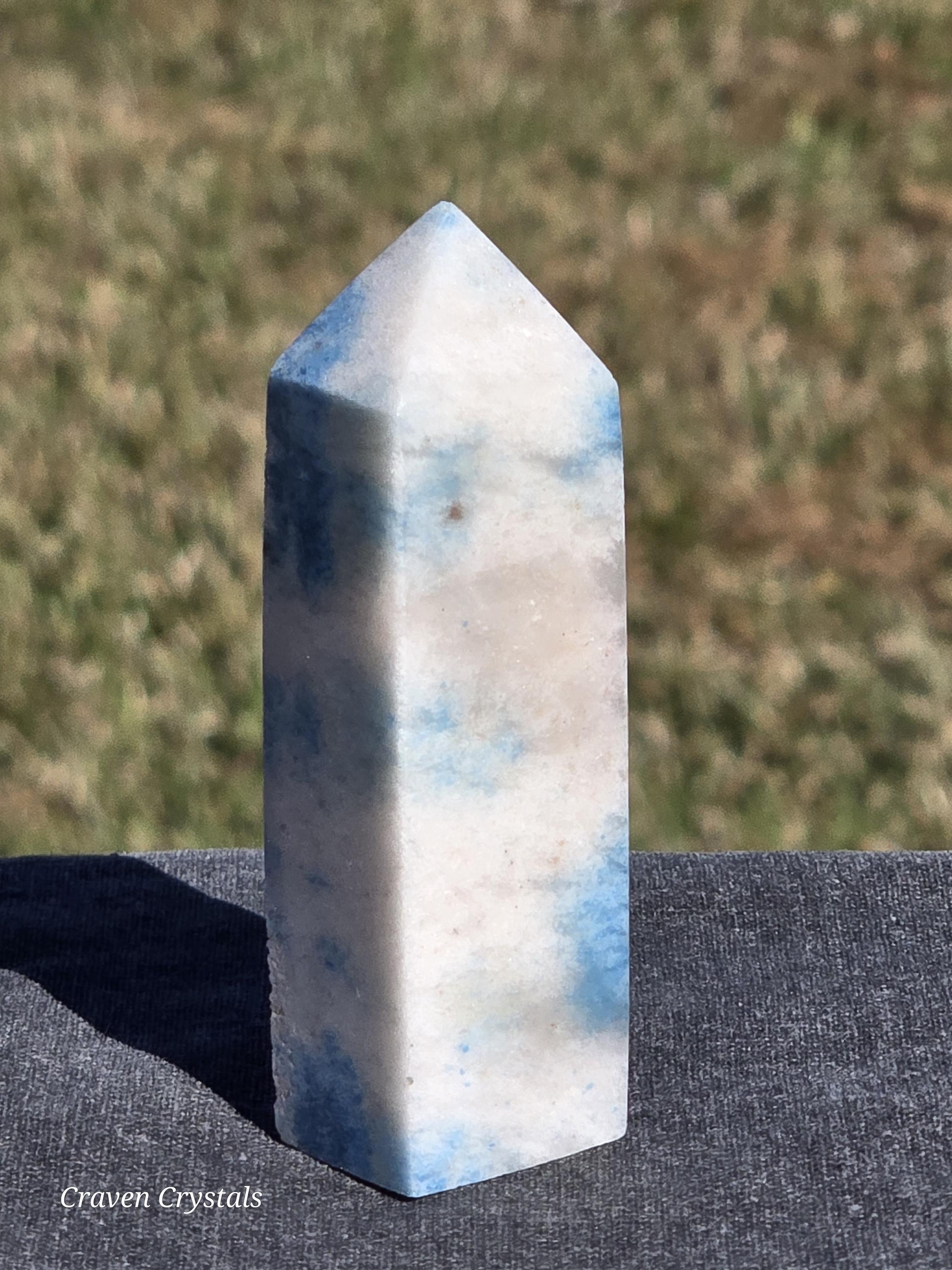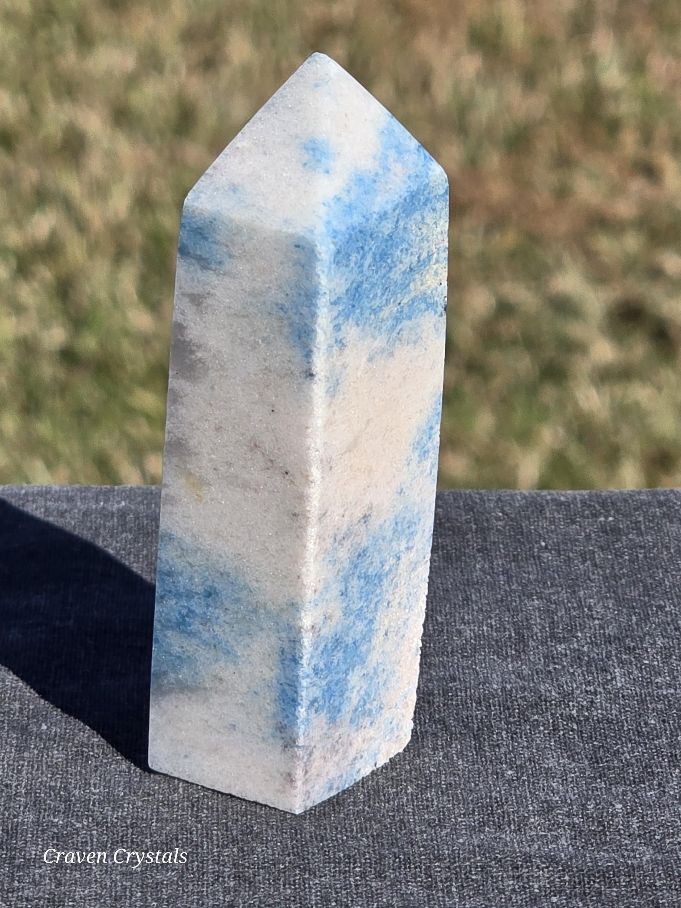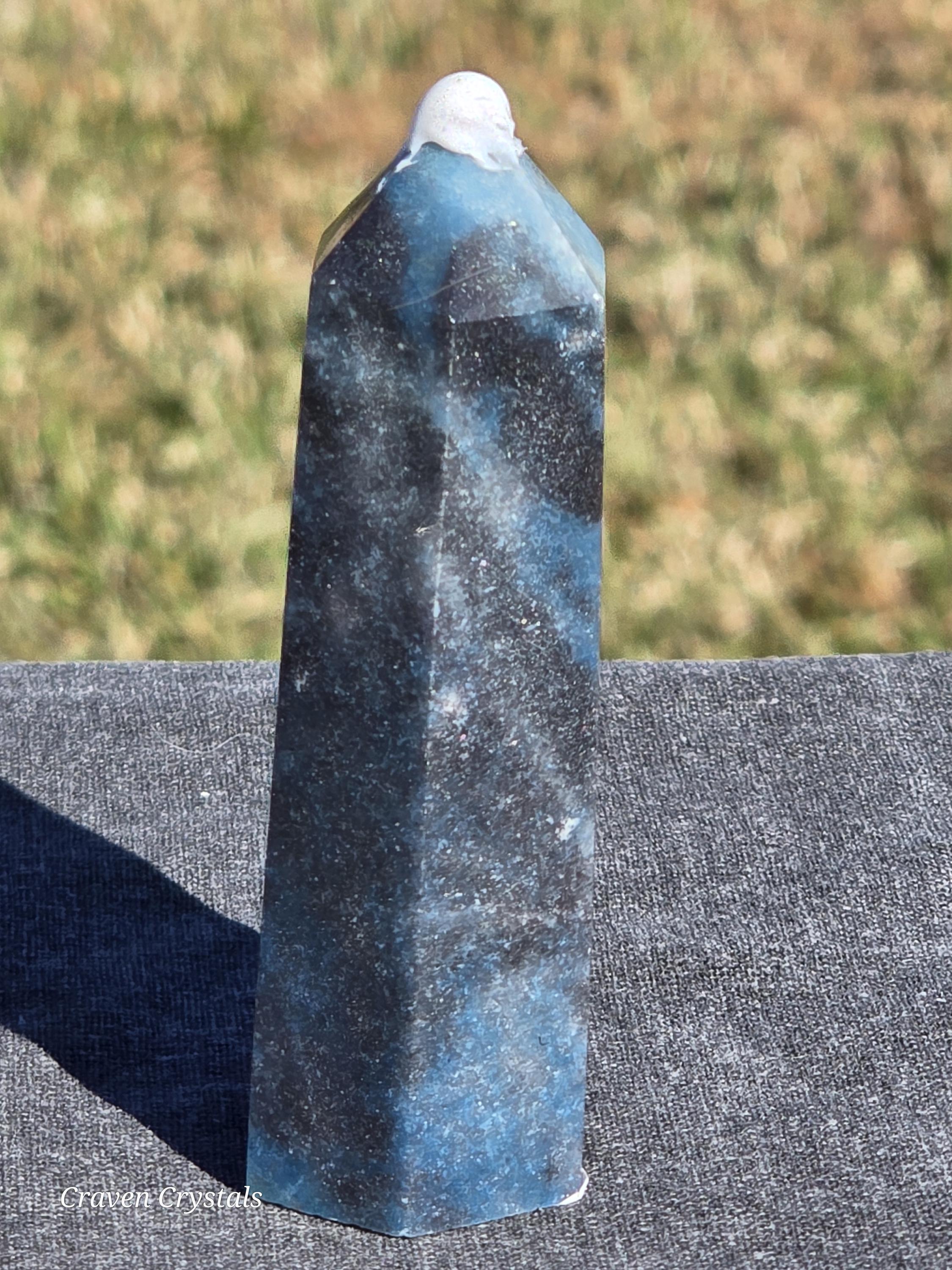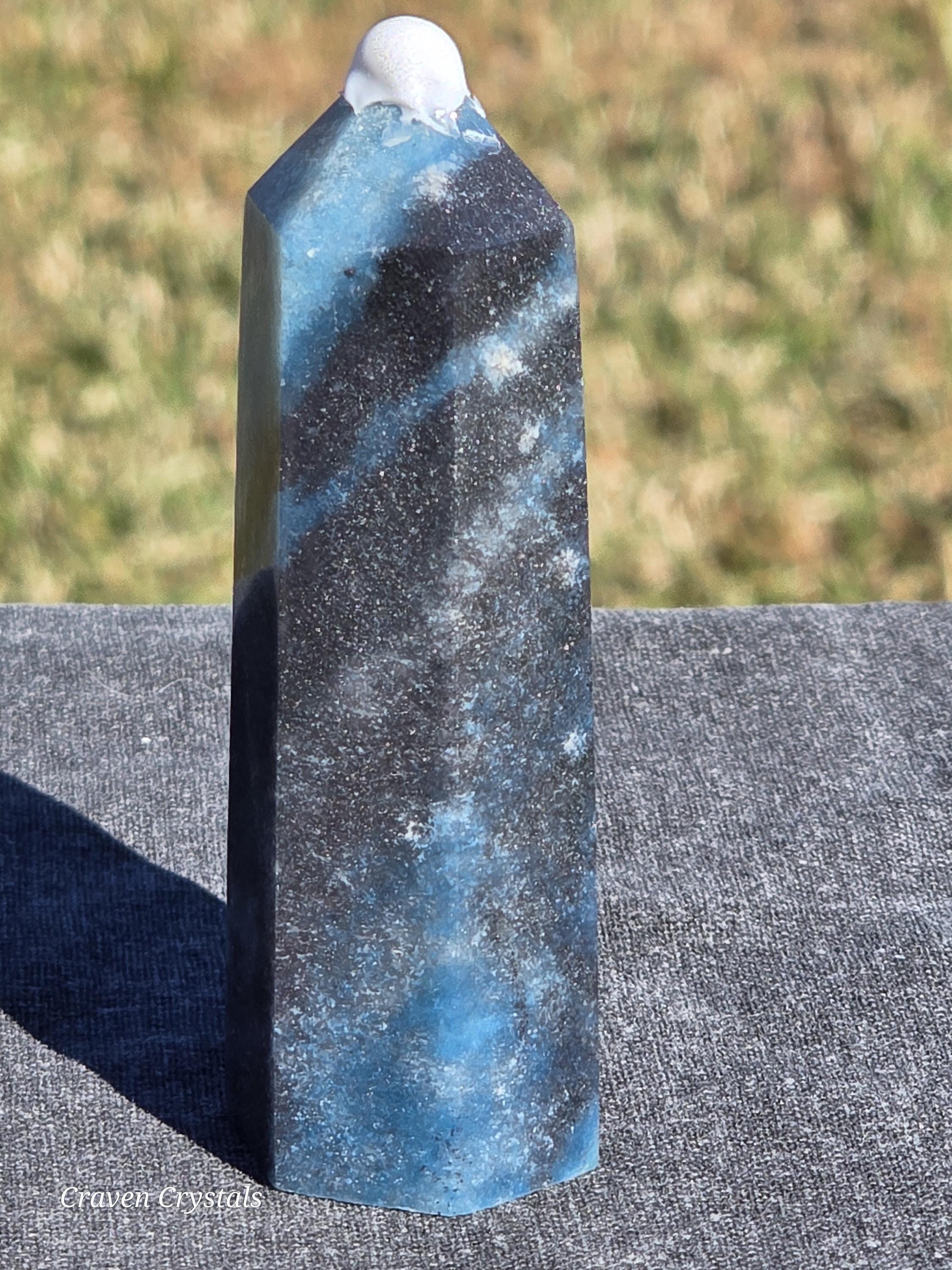 Trolleite Crystal Tower, known for its striking blue color, which can range from pale blue to a deep blue-green. It is often found in association with Lazulite and Scorzalite.