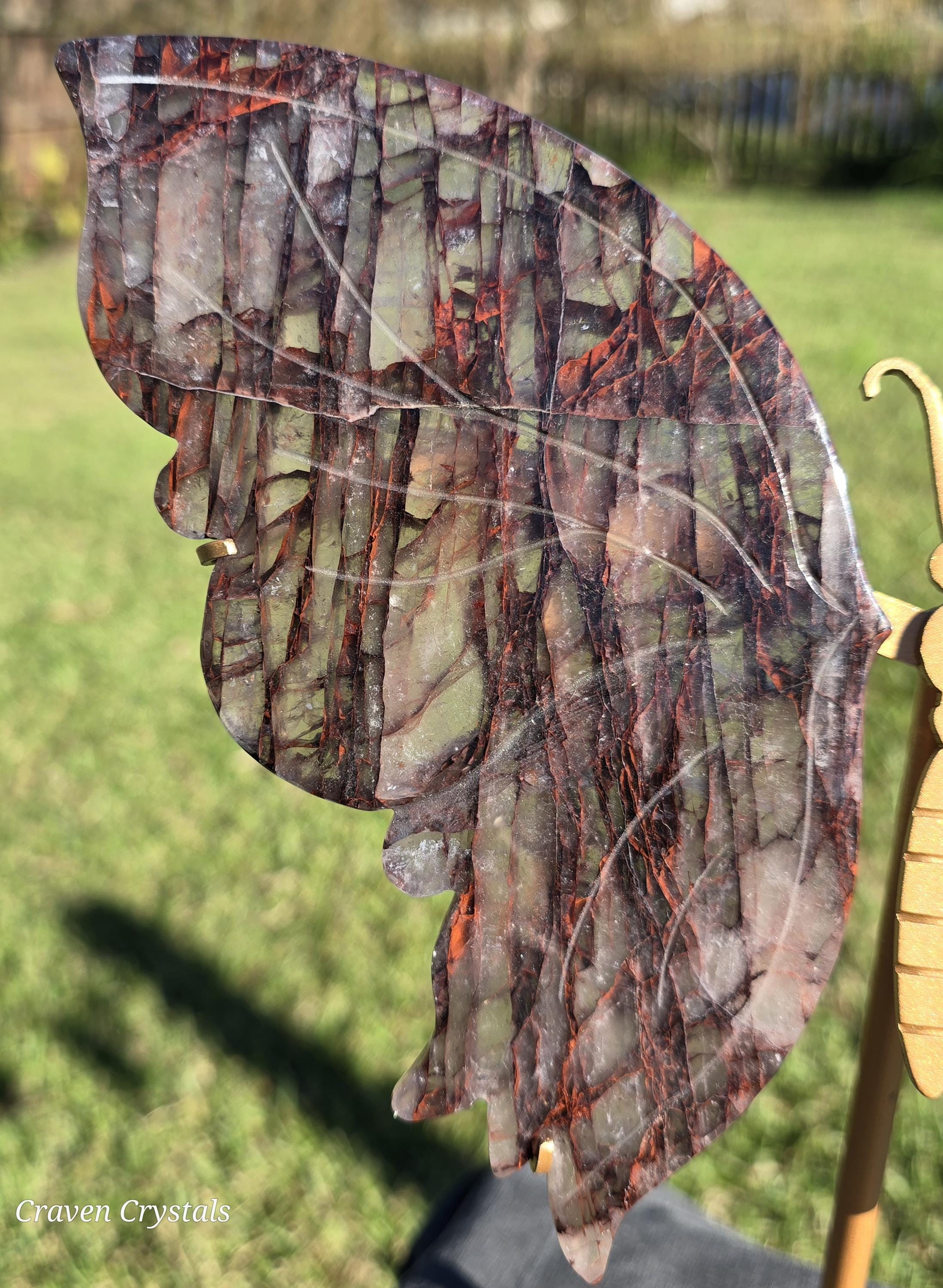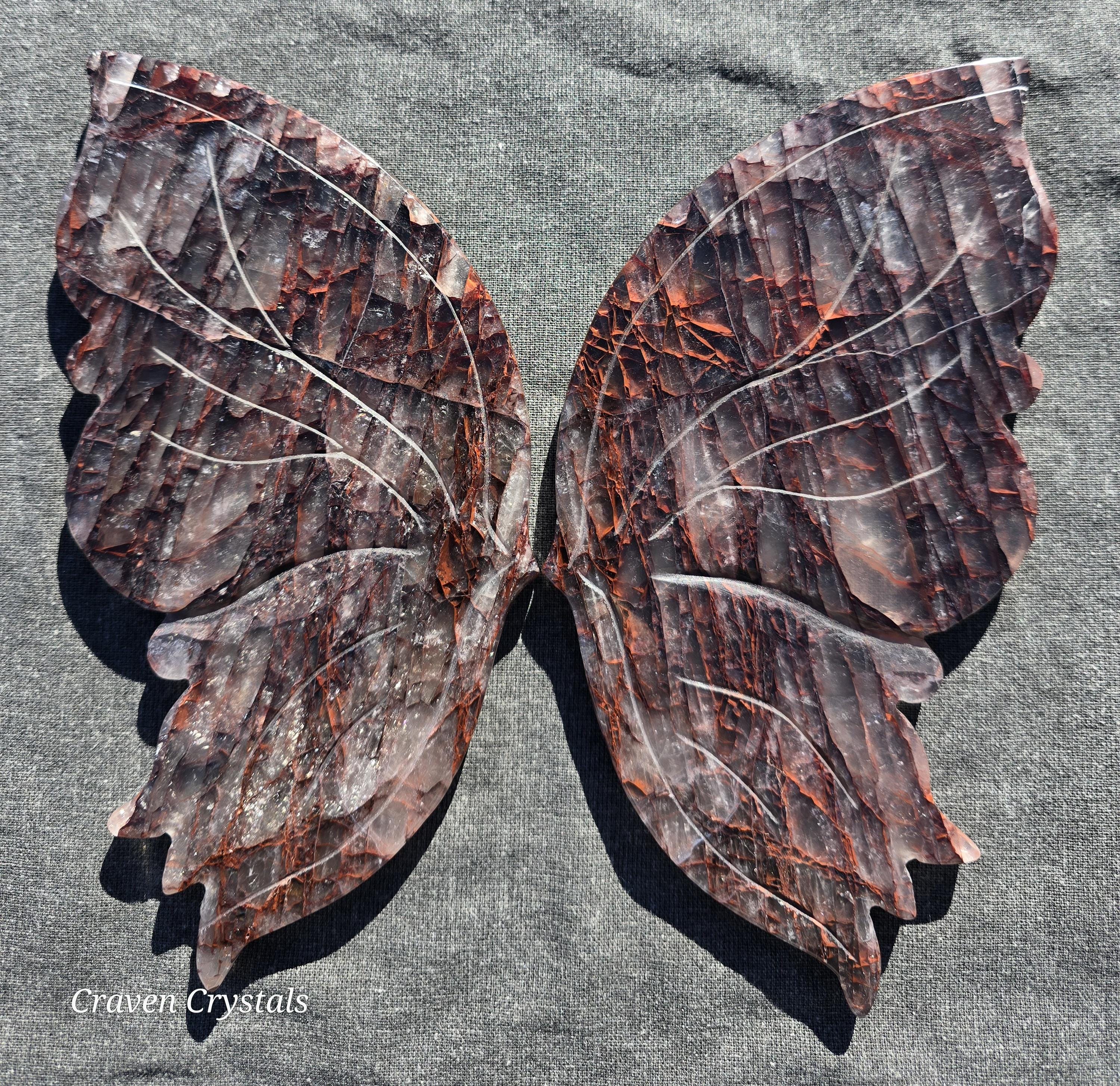 Absolutely amazing deep red, almost black, Fire Quartz Crystal Butterfly Wings
