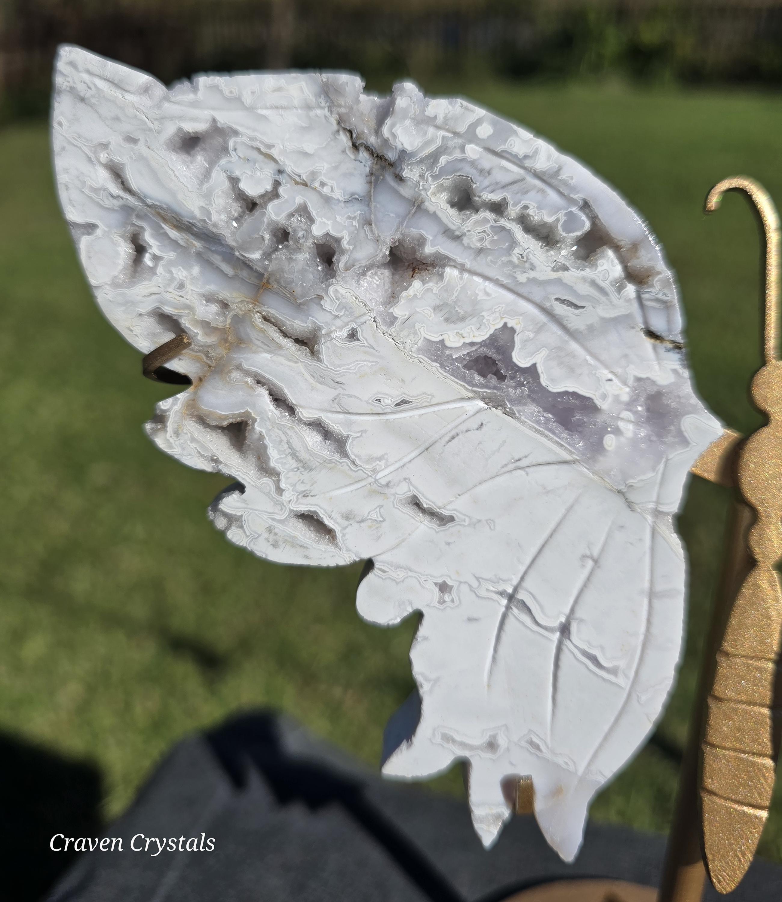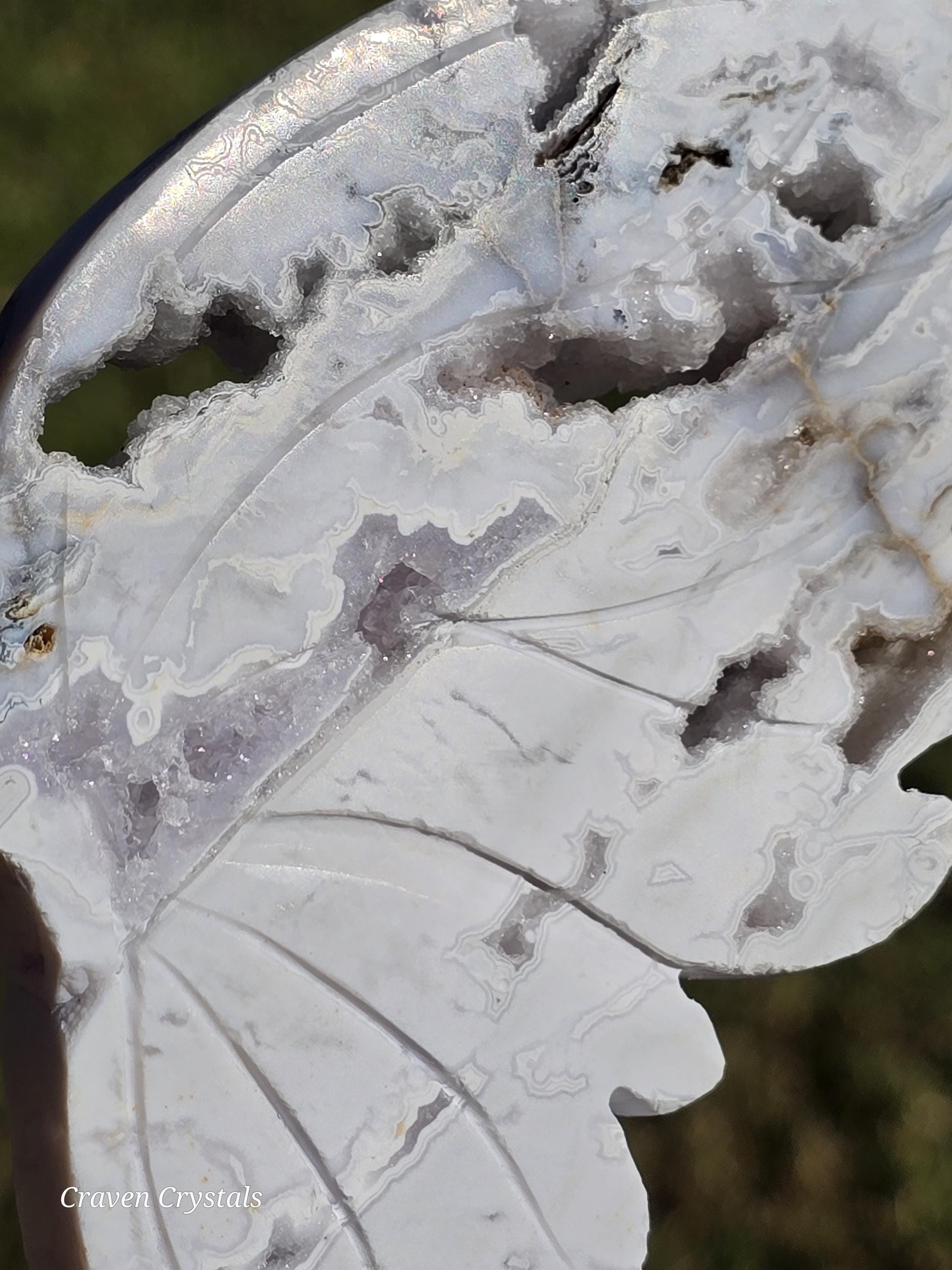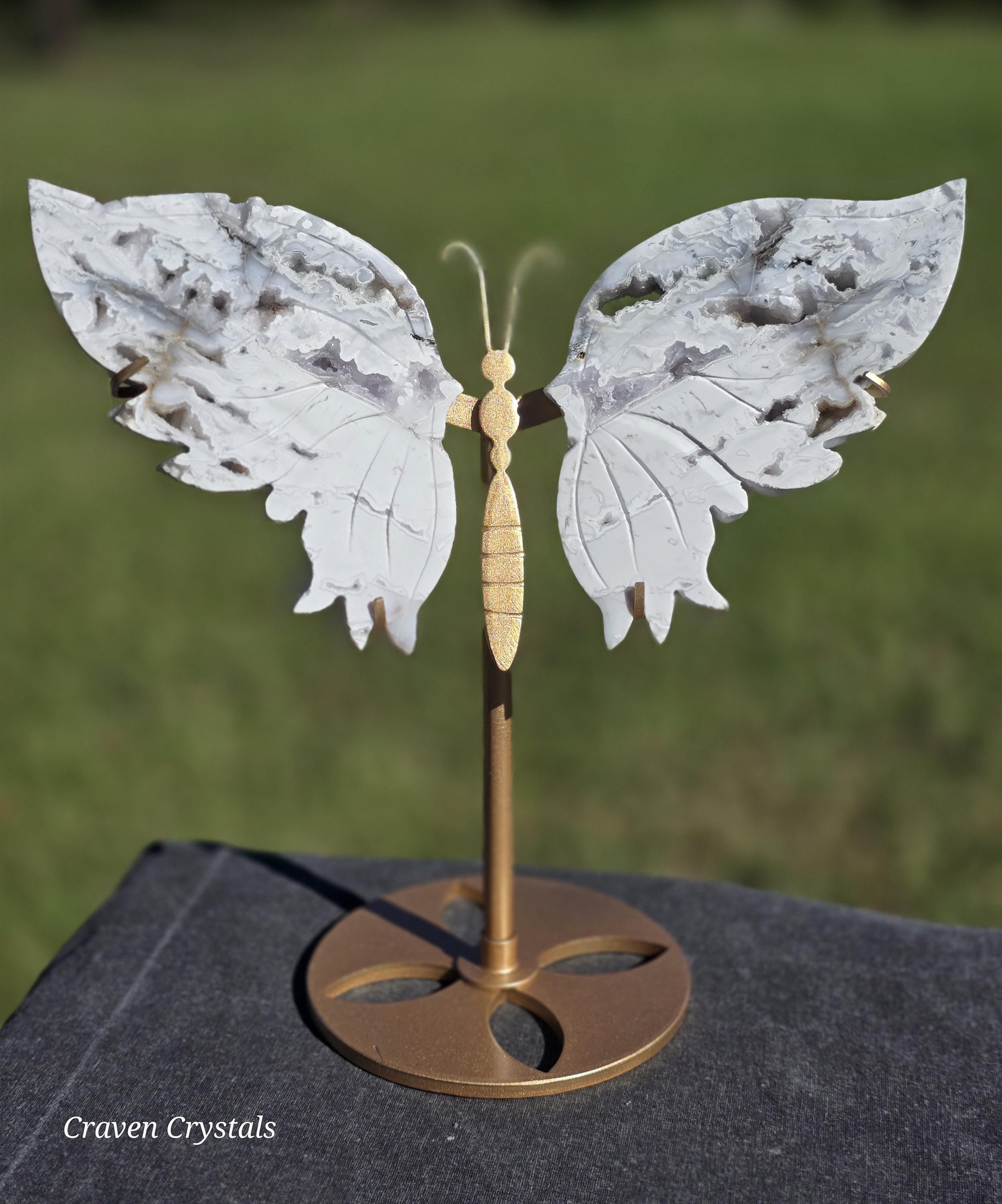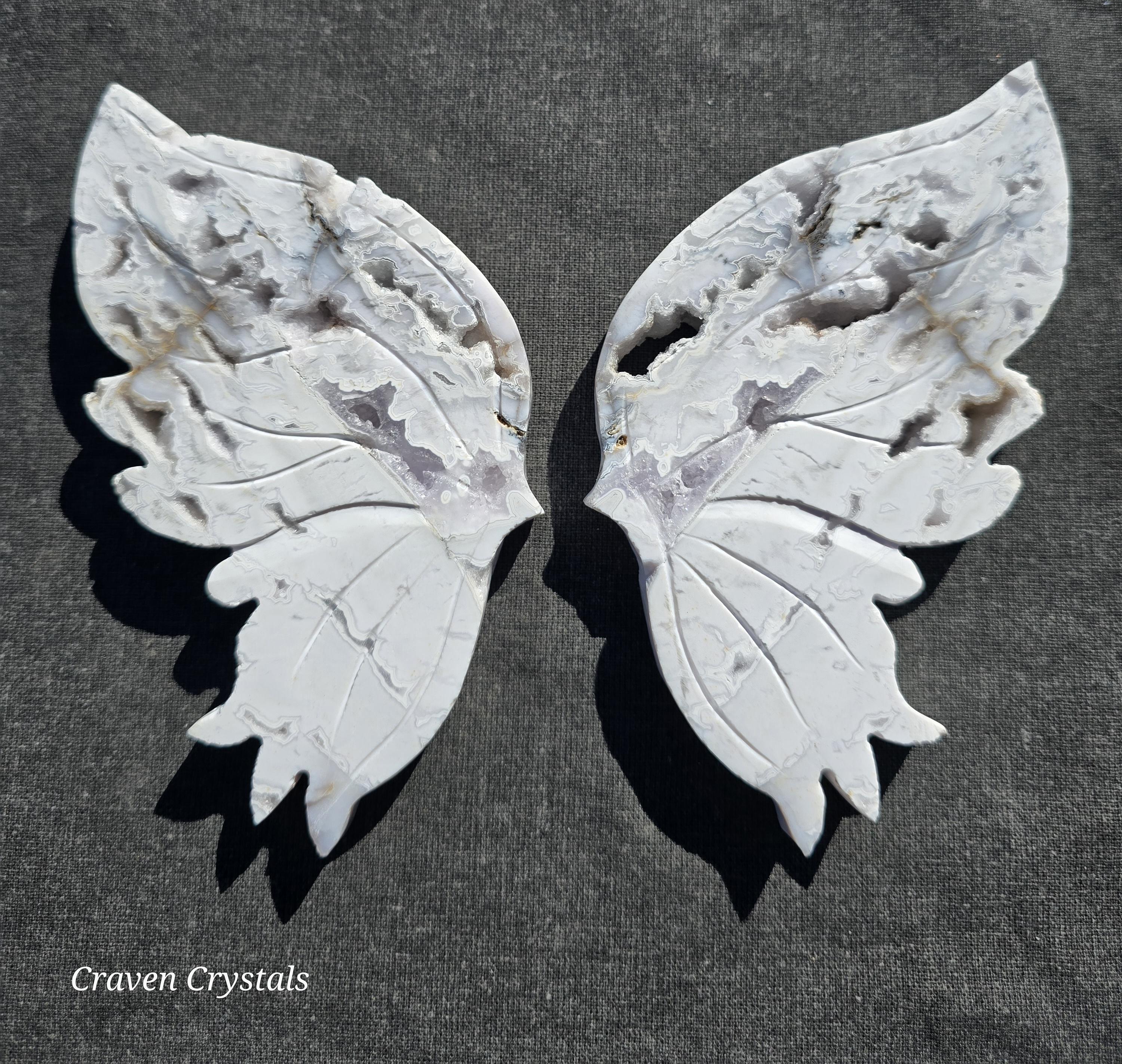 Absolutely stunning white Snow Agate Crystal Butterfly Wings with light purple Amethyst sparkly drusy