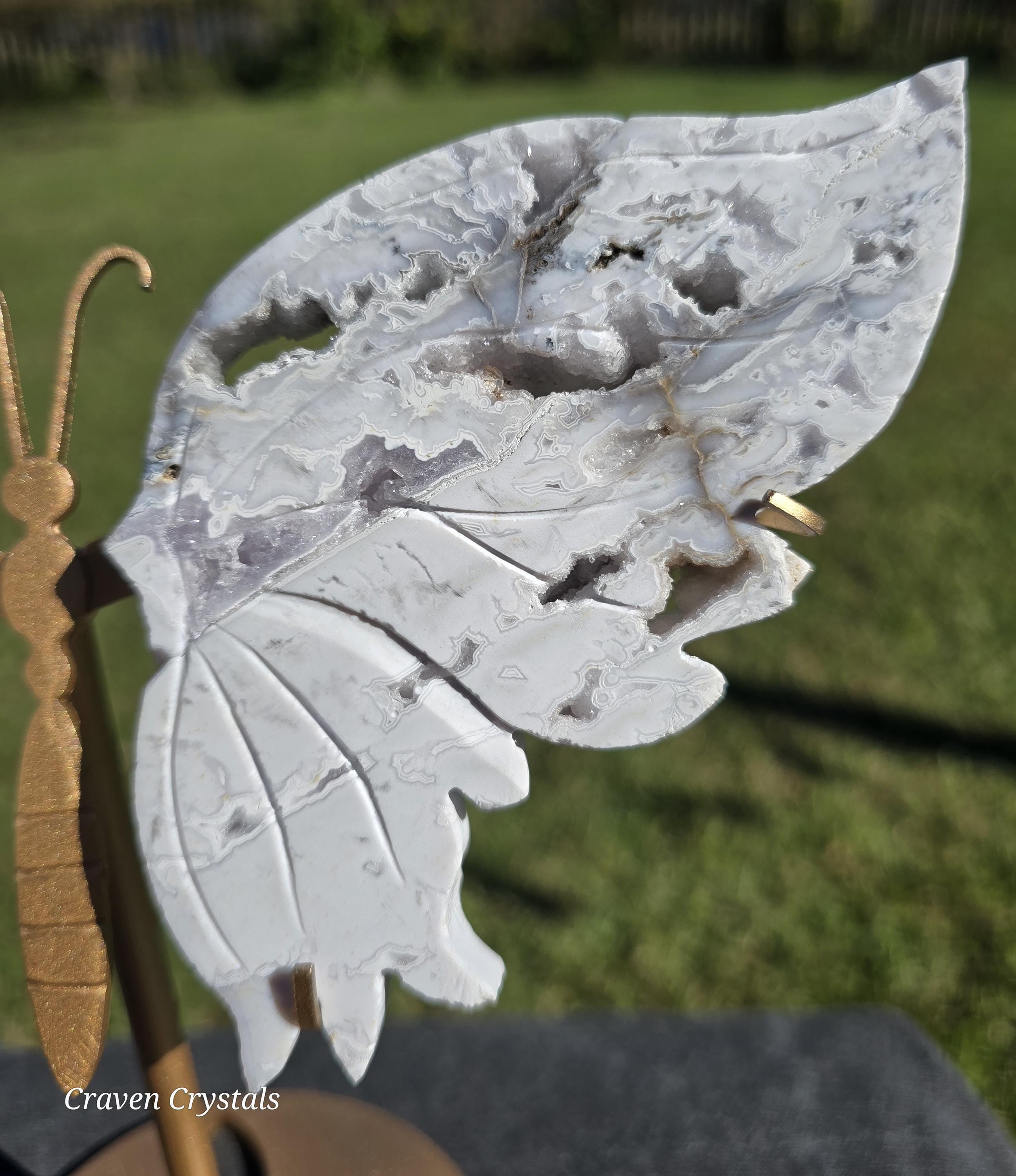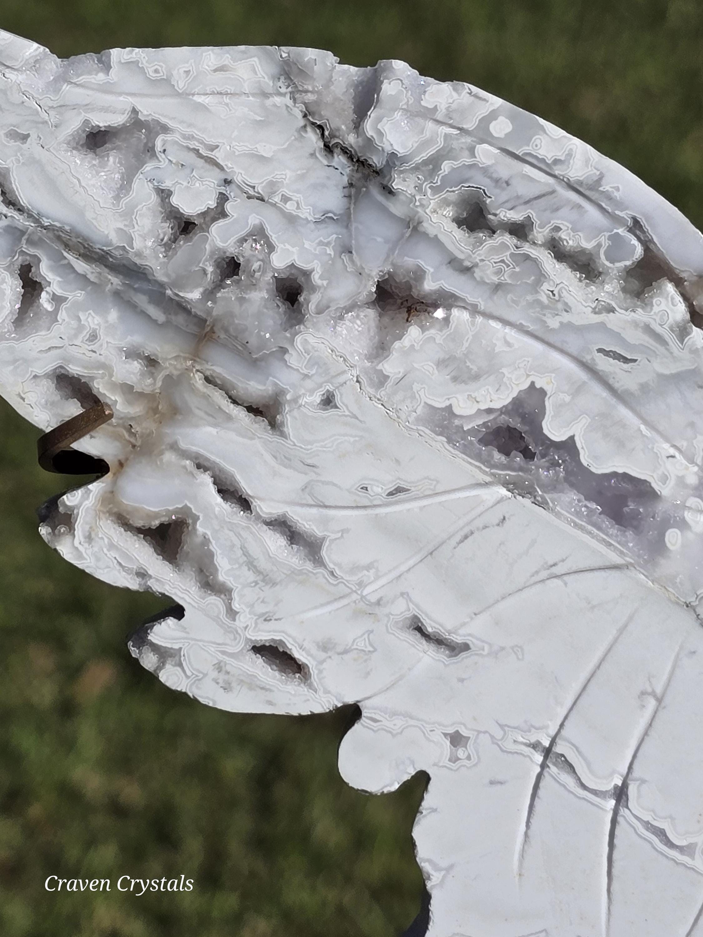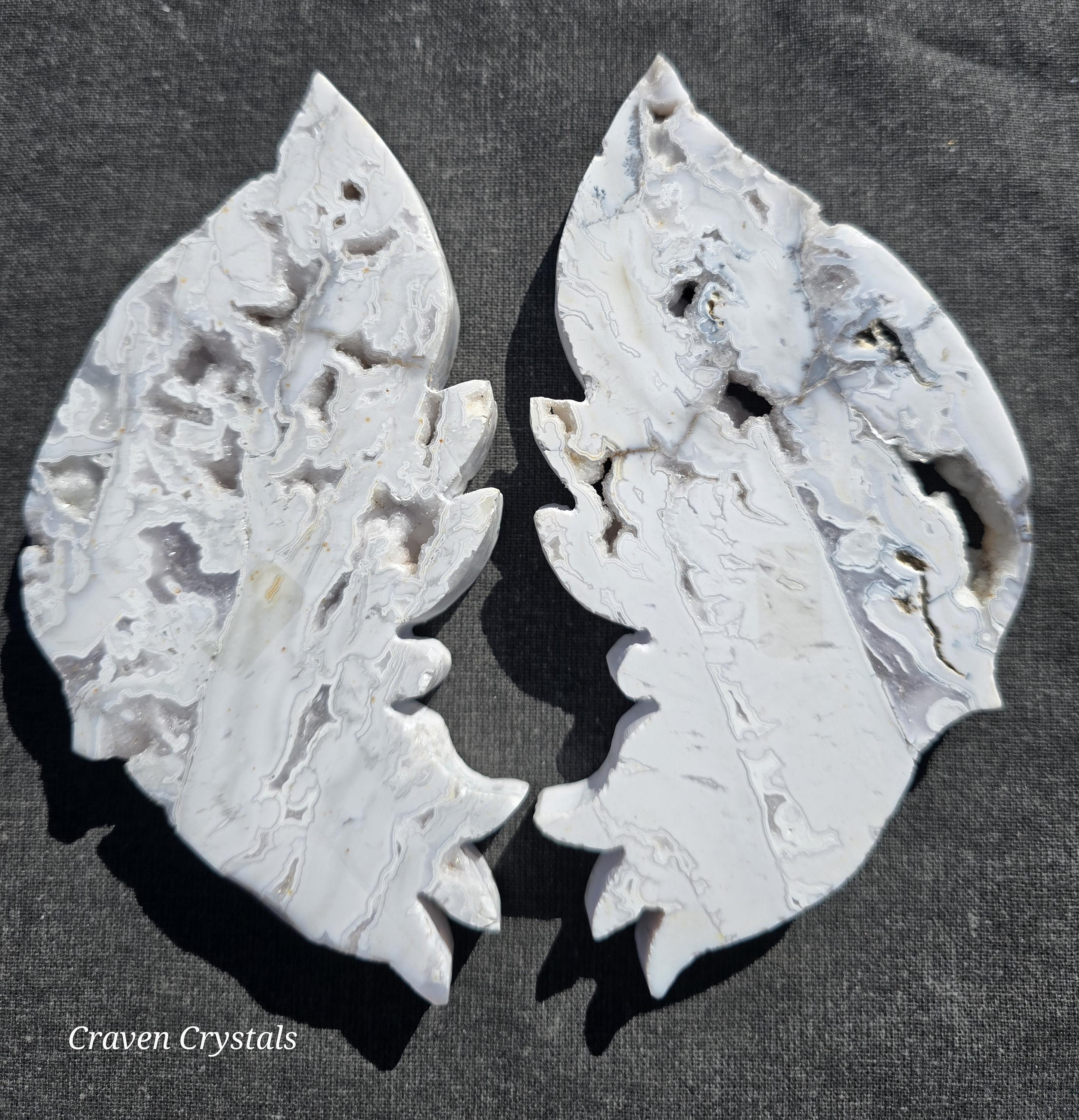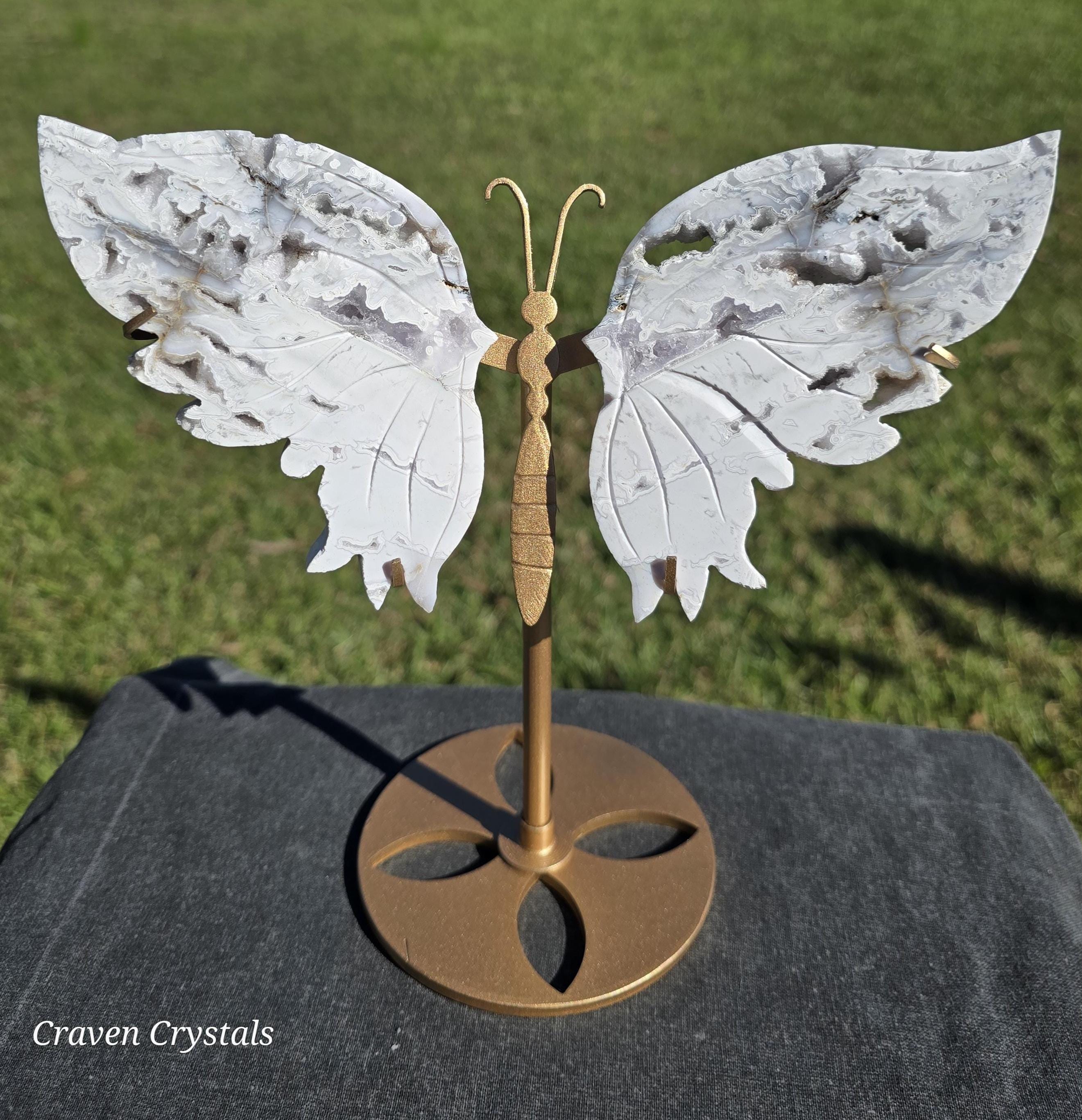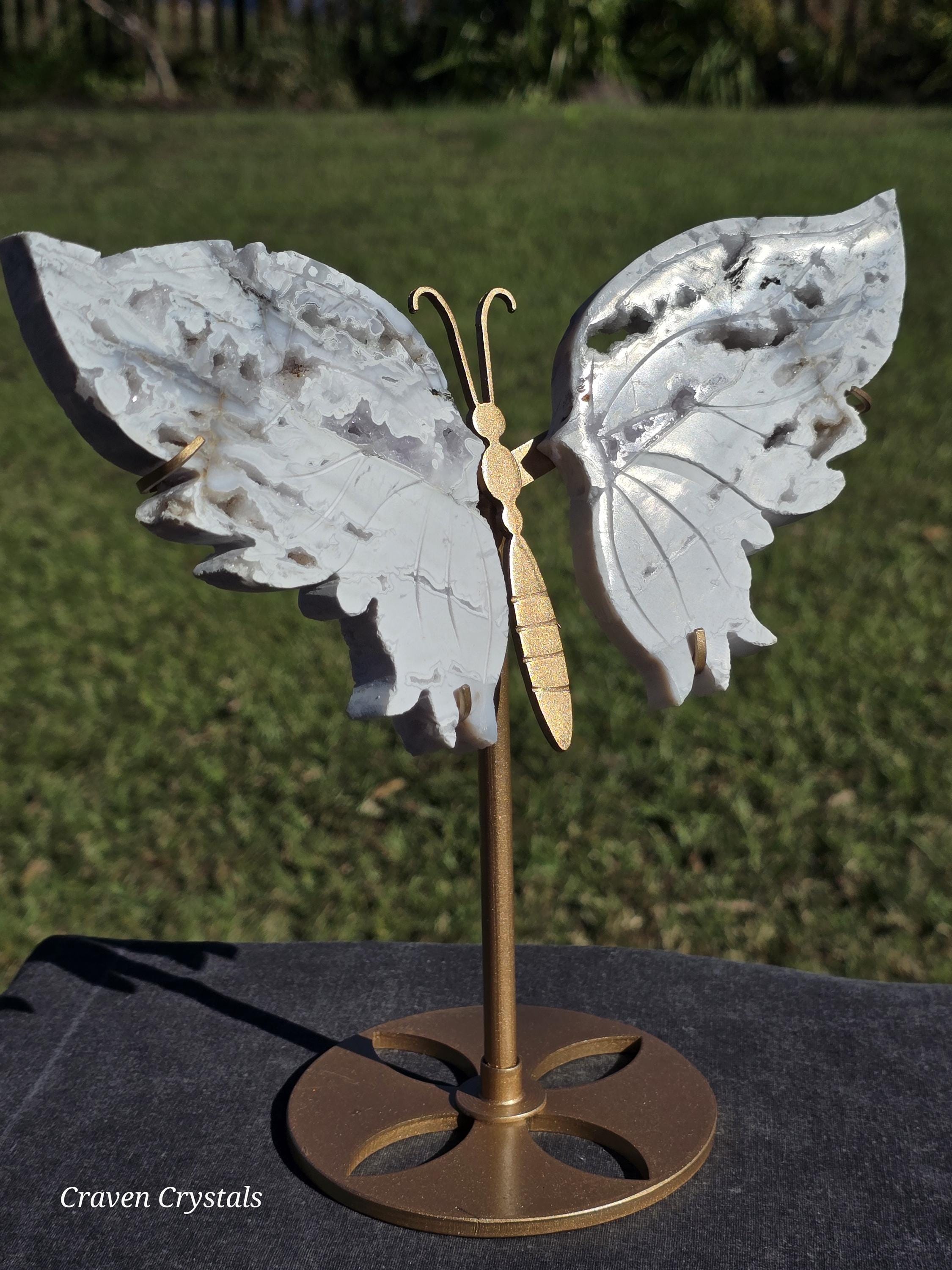 Absolutely stunning white Snow Agate Crystal Butterfly Wings with light purple Amethyst sparkly drusy