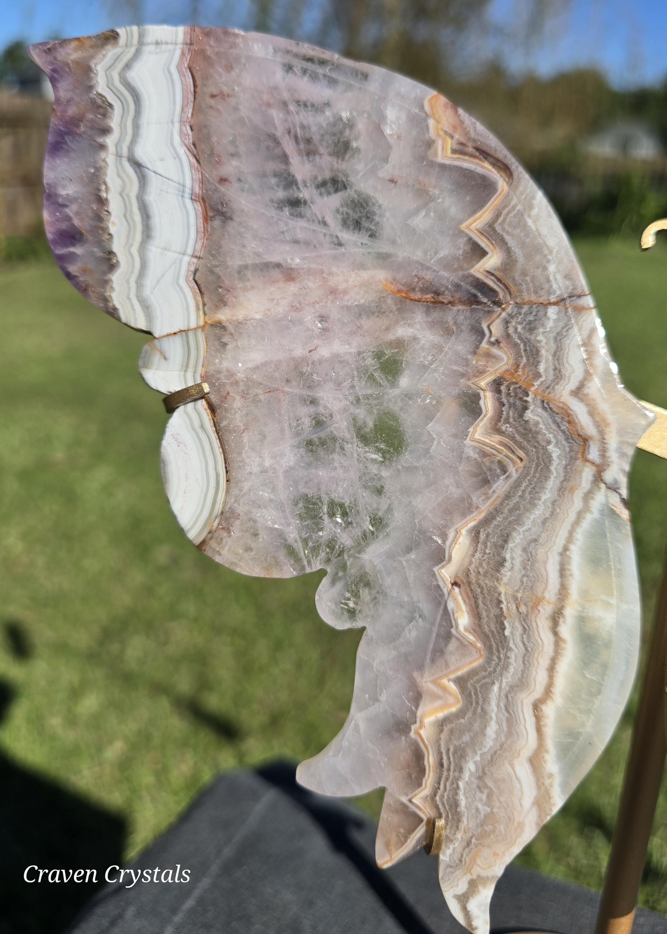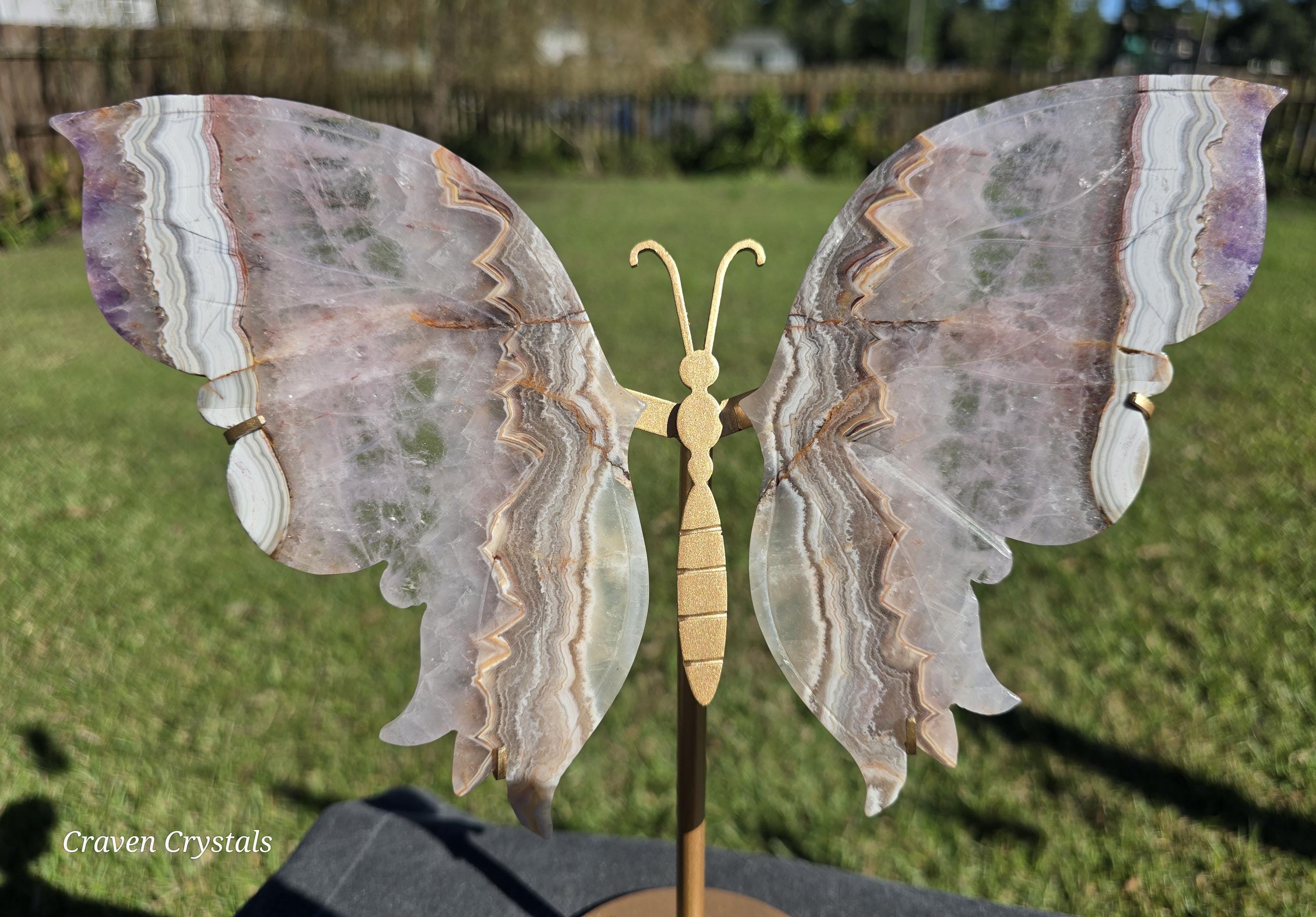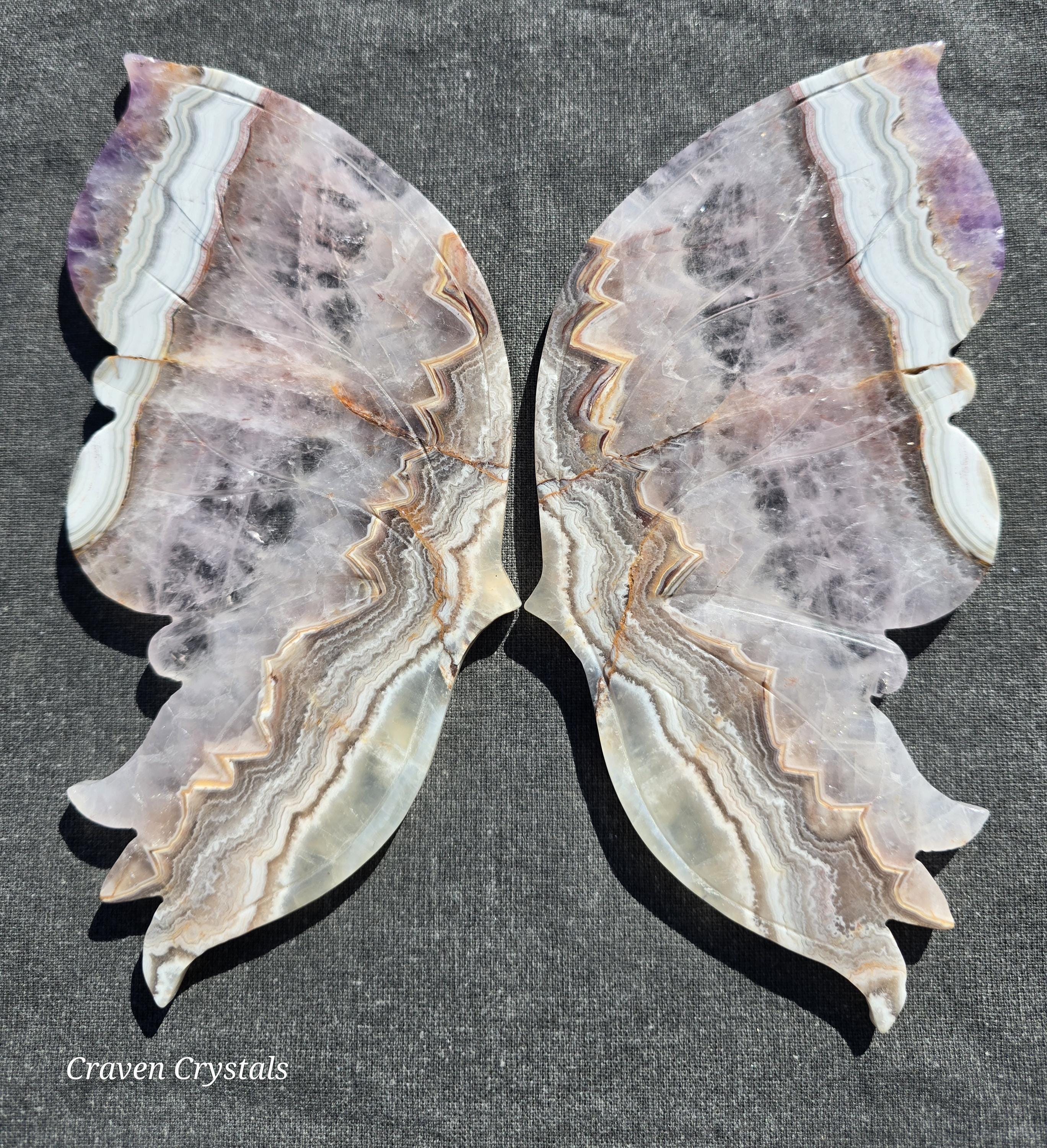 Stunning blend of purple and pink Amethyst with brown Crazy Lace Agate banding Crystal Butterfly Wings