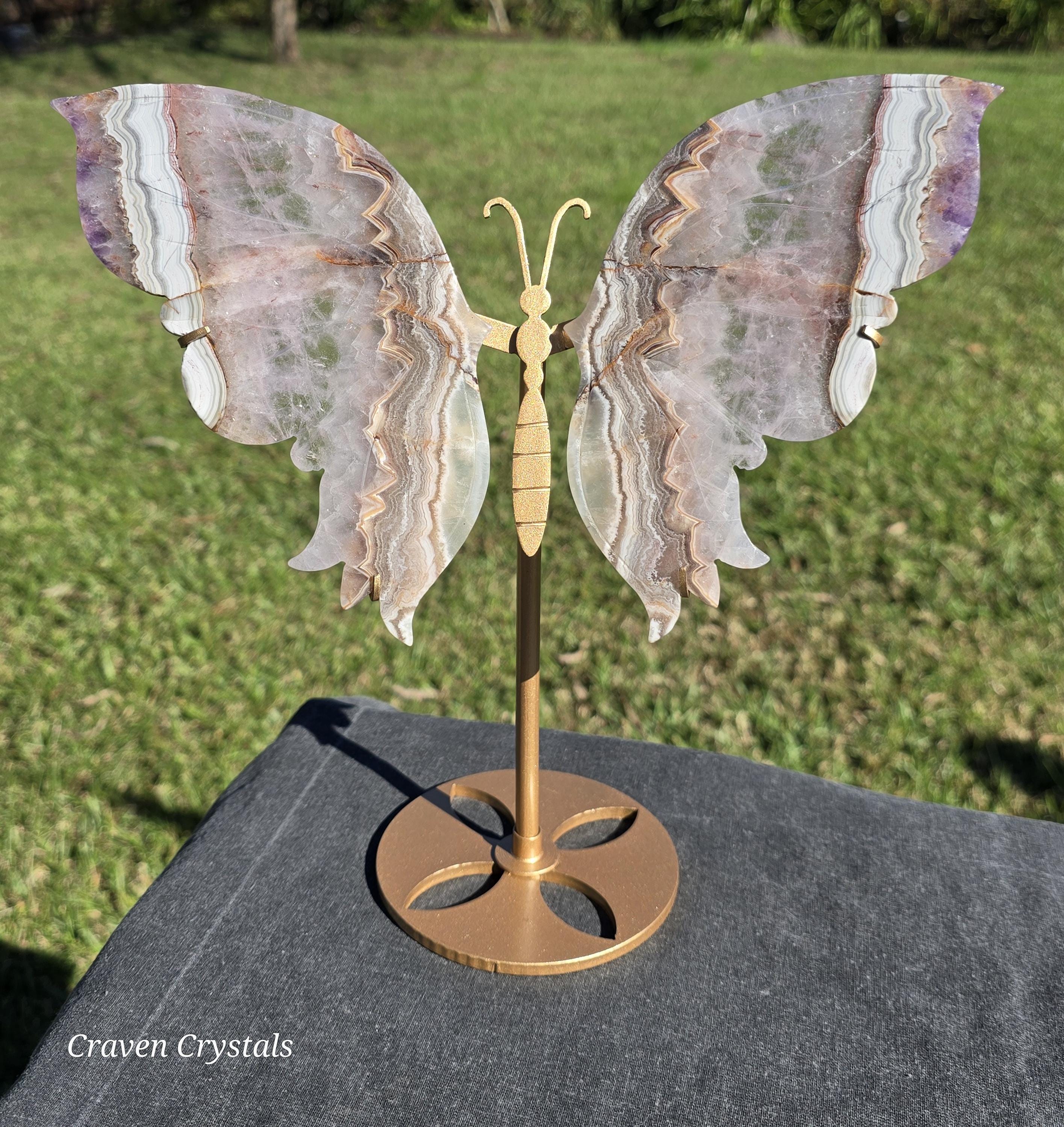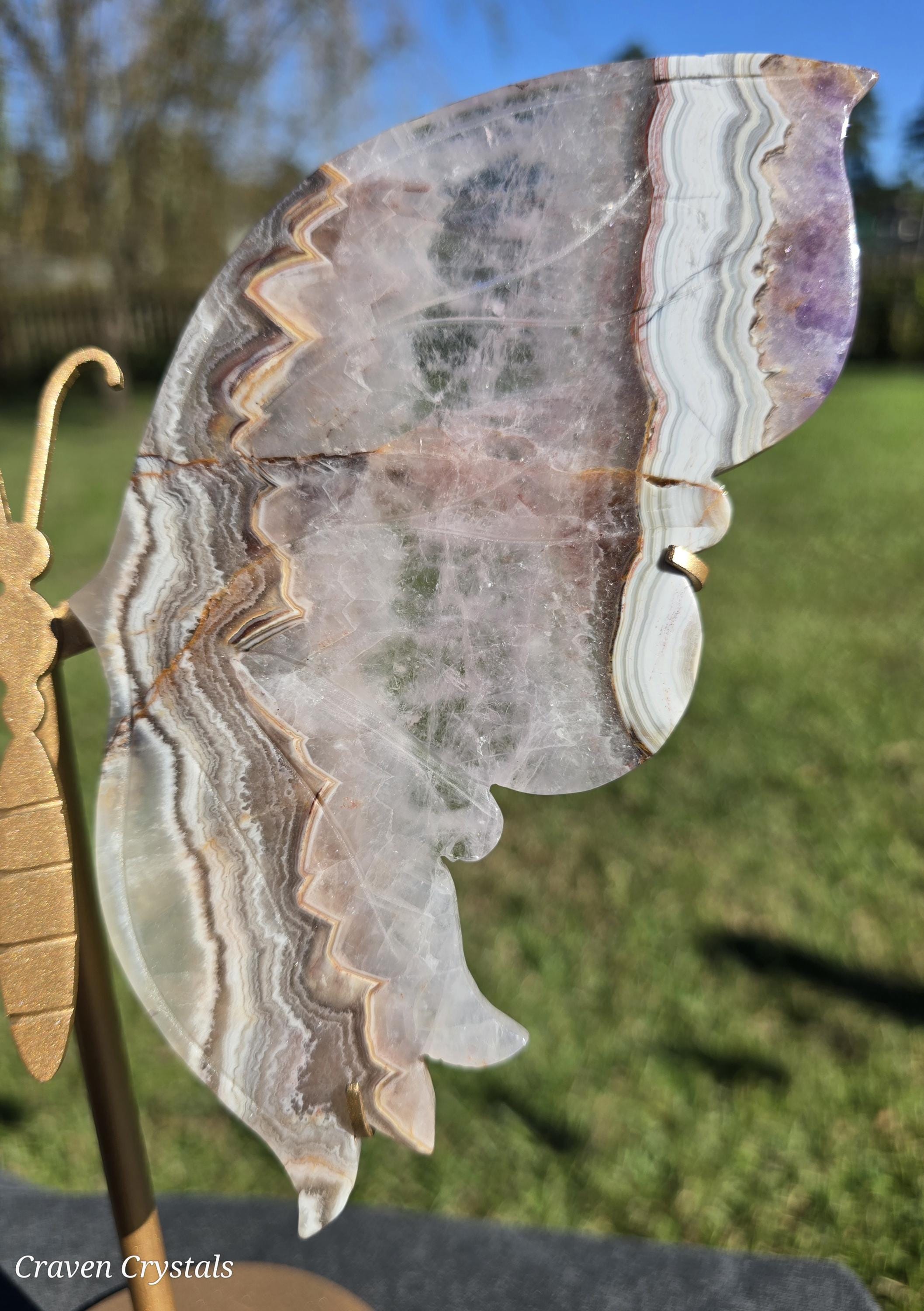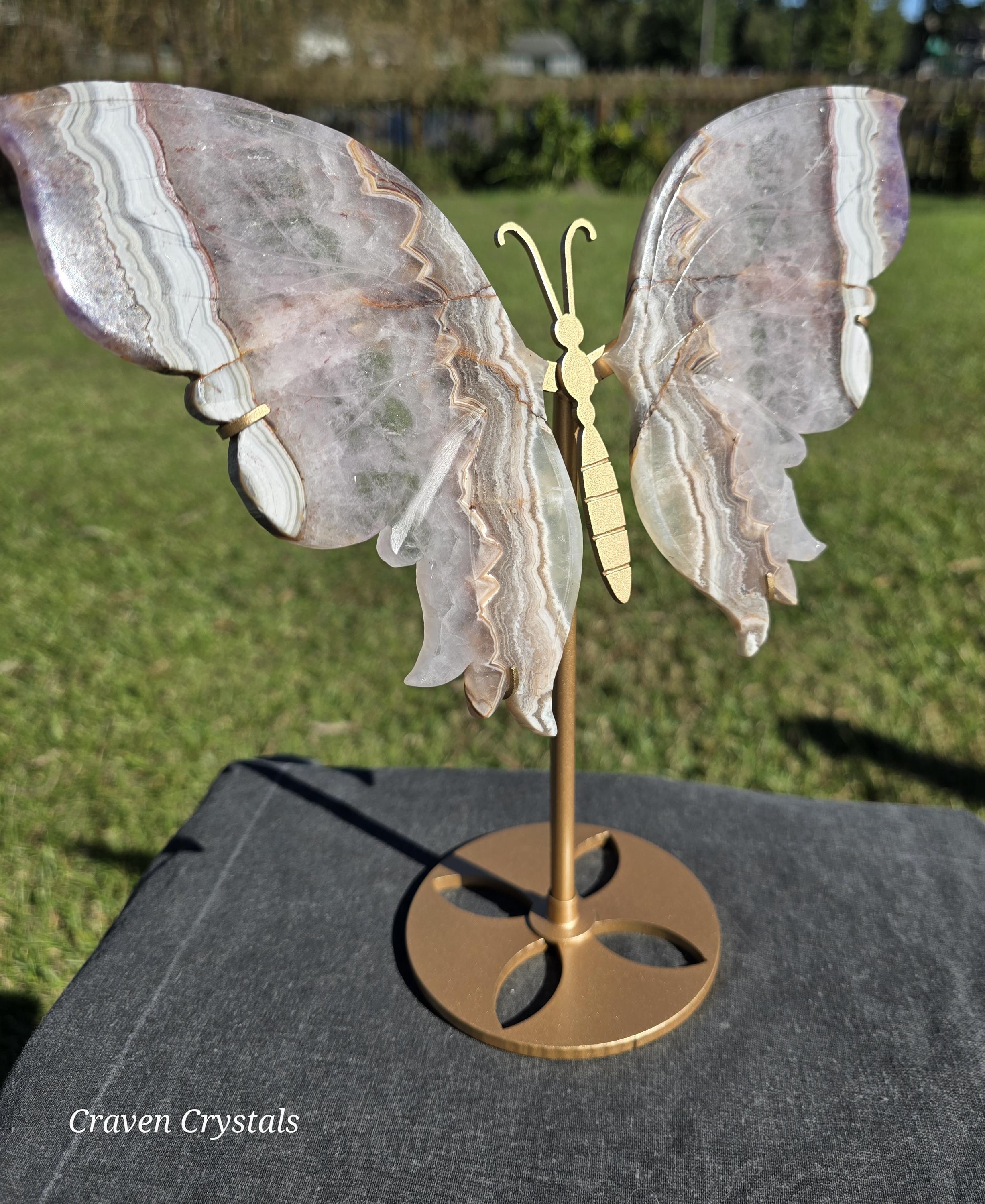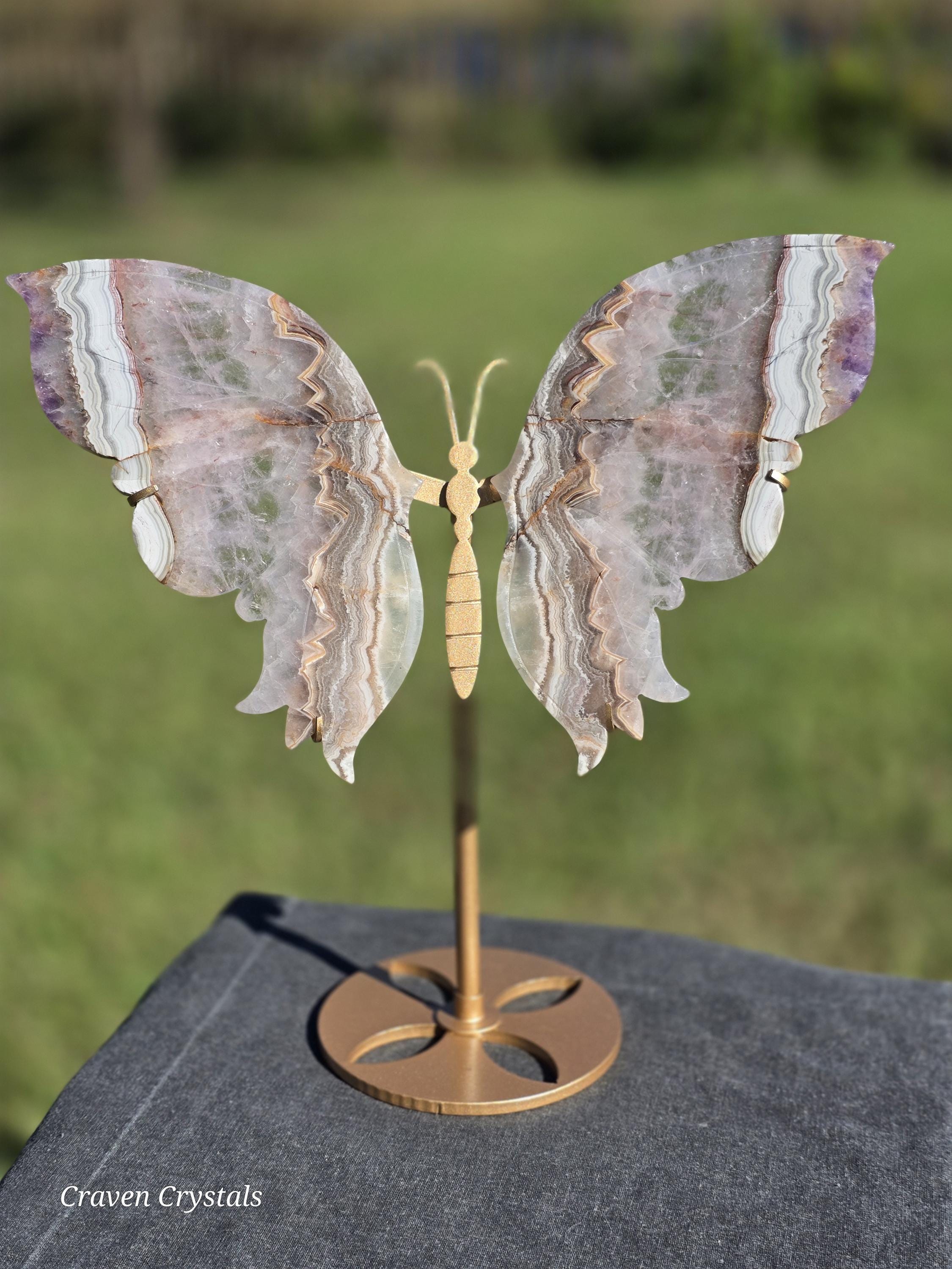 Stunning blend of purple and pink Amethyst with brown Crazy Lace Agate banding Crystal Butterfly Wings
