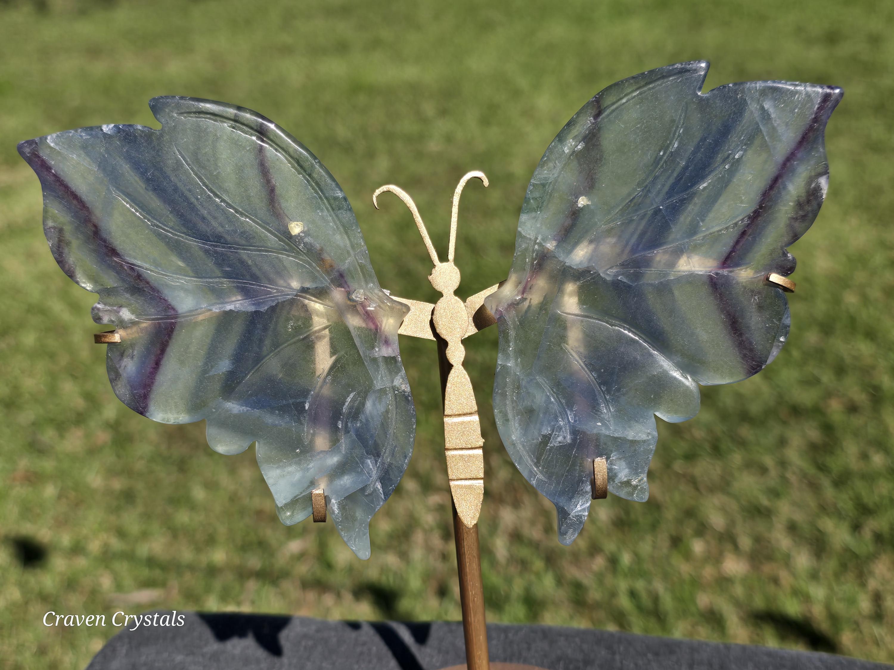 Beautiful blue, green and purple Rainbow Fluorite Crystal Butterfly Wings with amazing banding