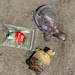 RARE 8th Vein Ocean Jasper Turtle with pink, blue, red and black bands and orbs,