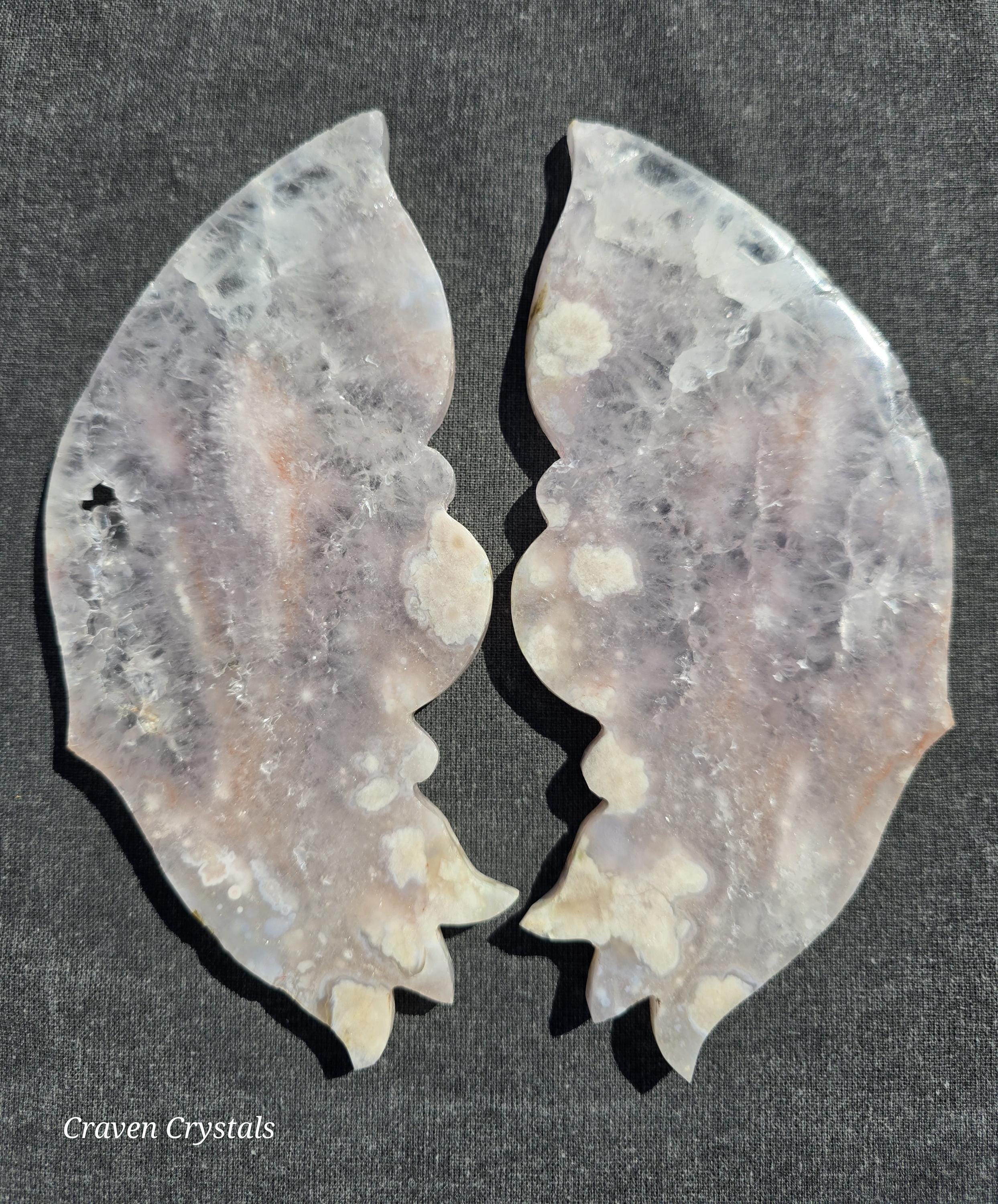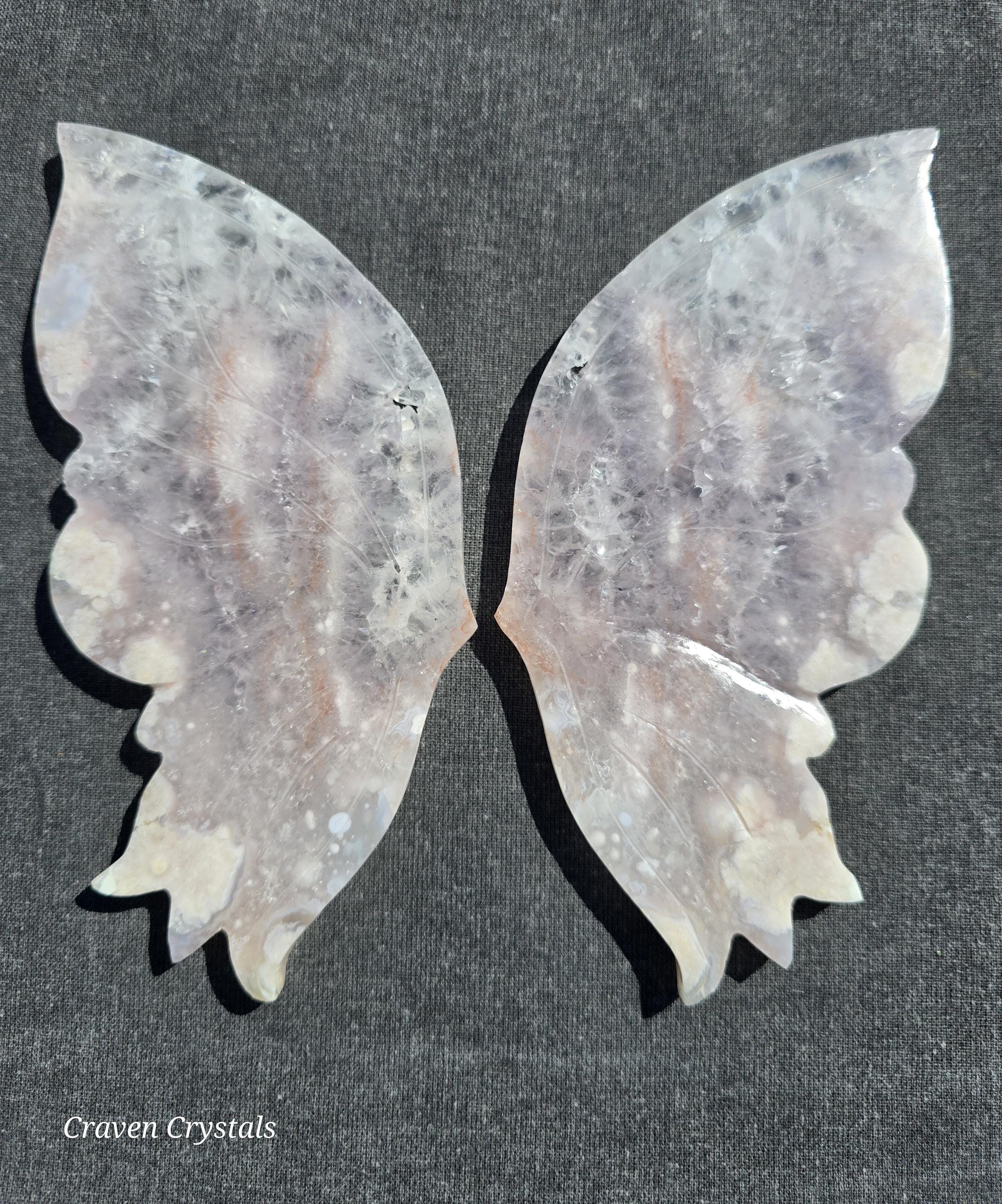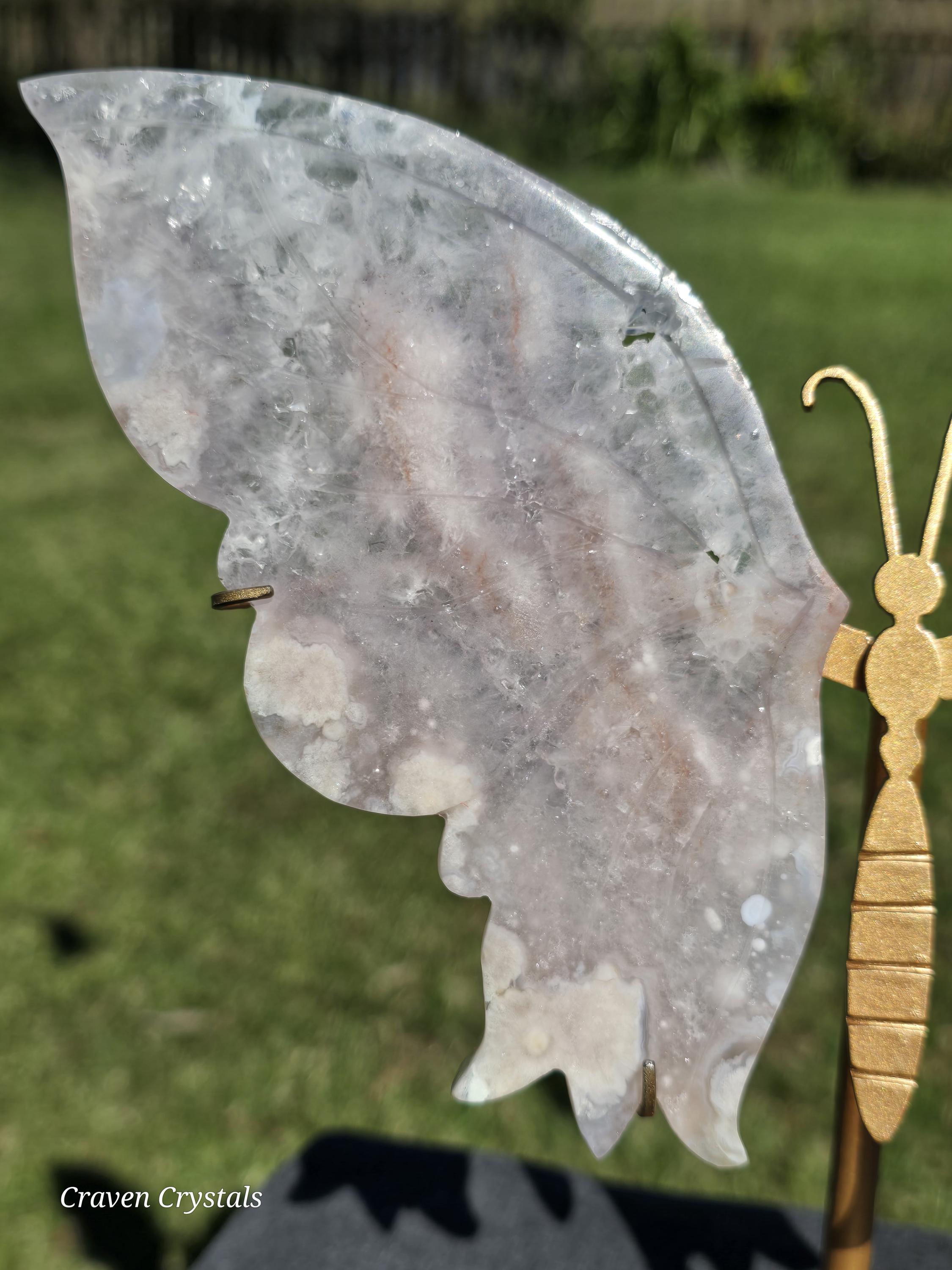Stunning pastel Pink Amethyst Crystal Butterfly Wings with clear drusy and pink flowers