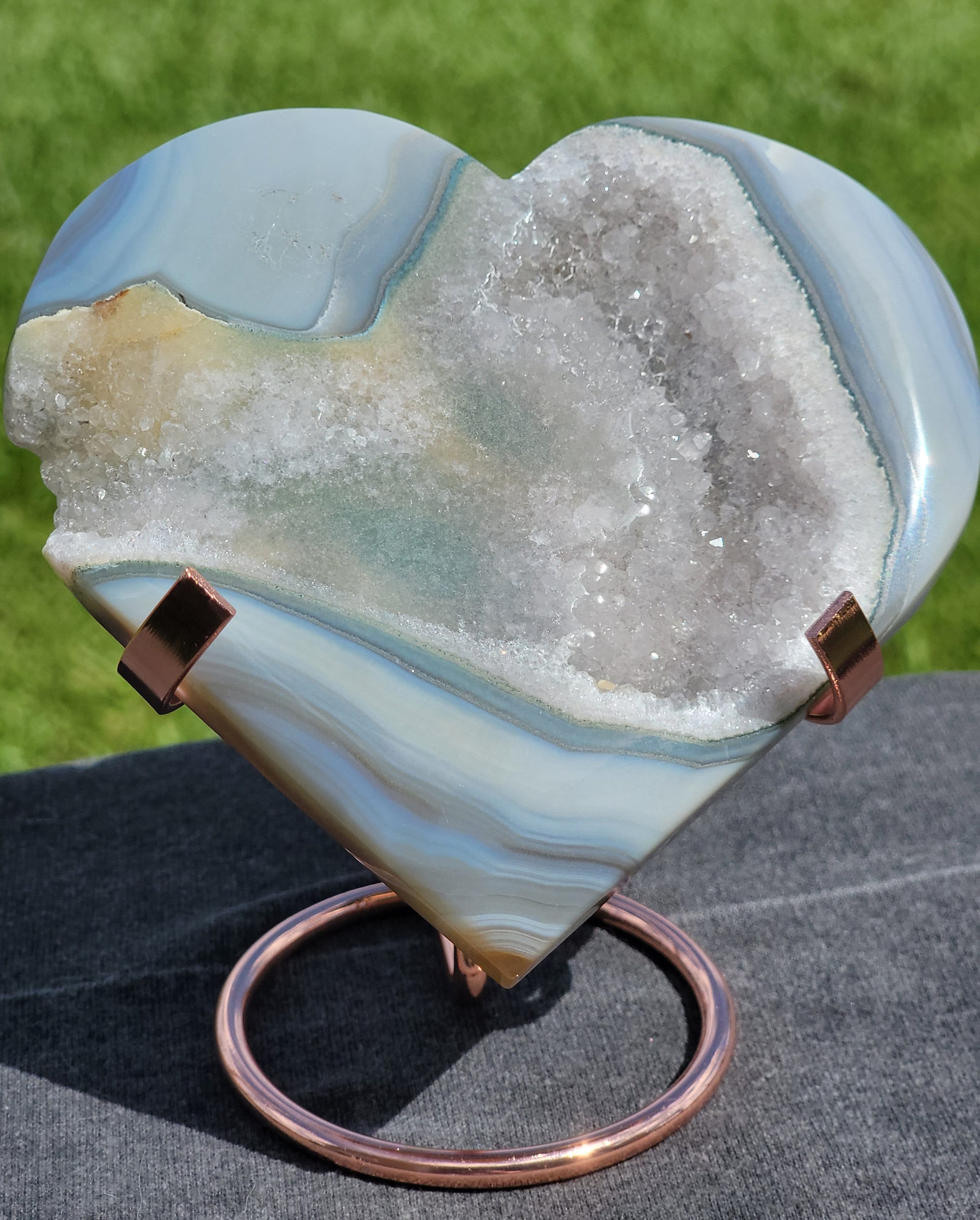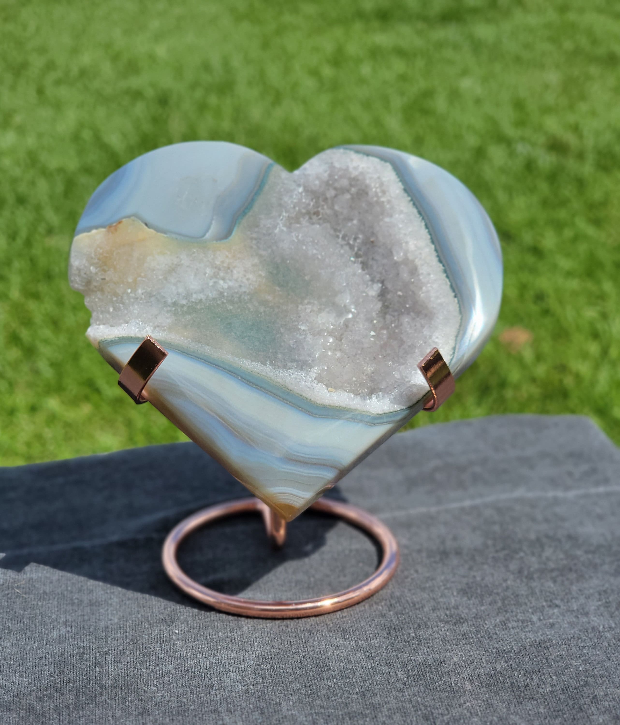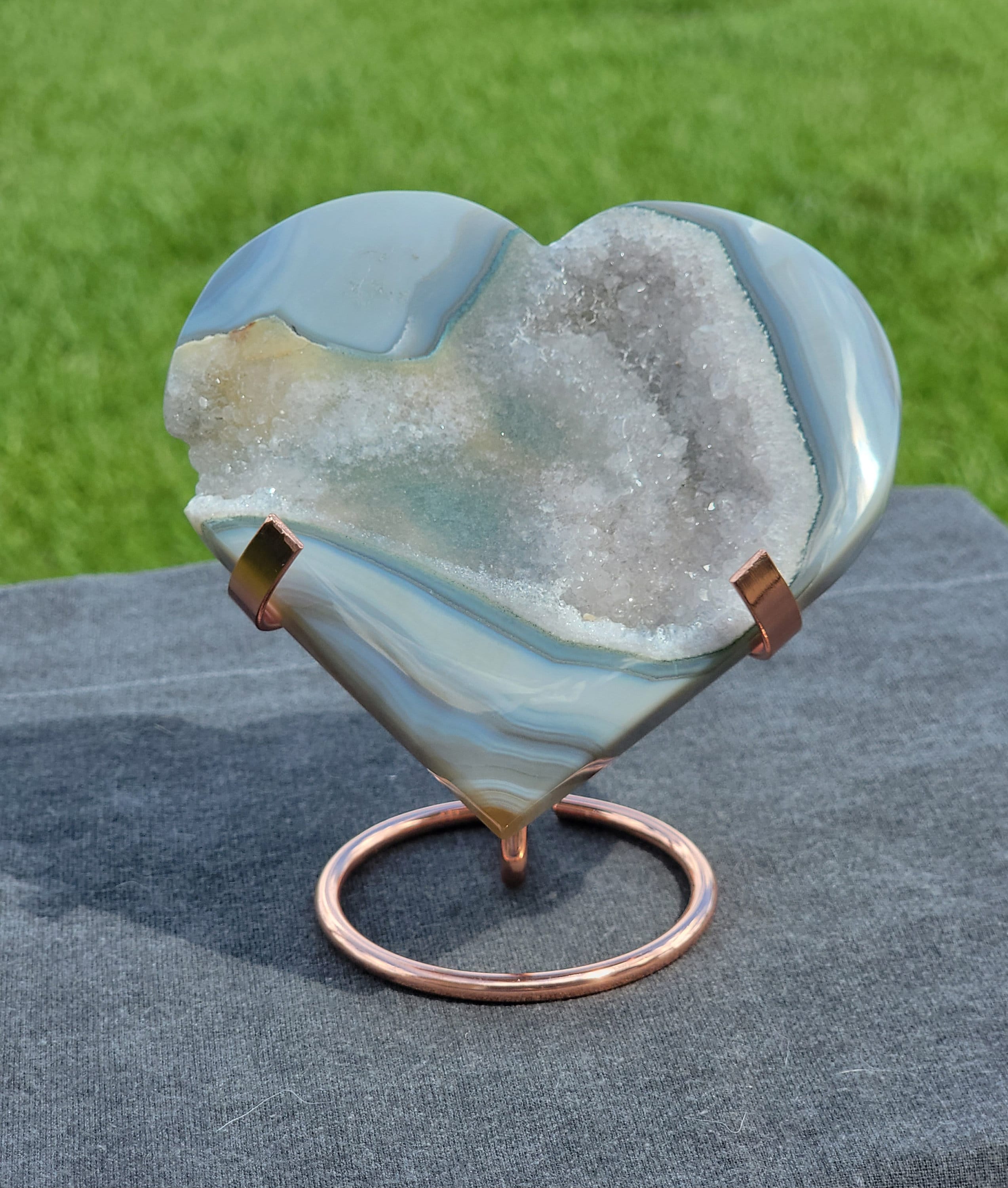 Blue drusy Agate Heart with beautiful banding