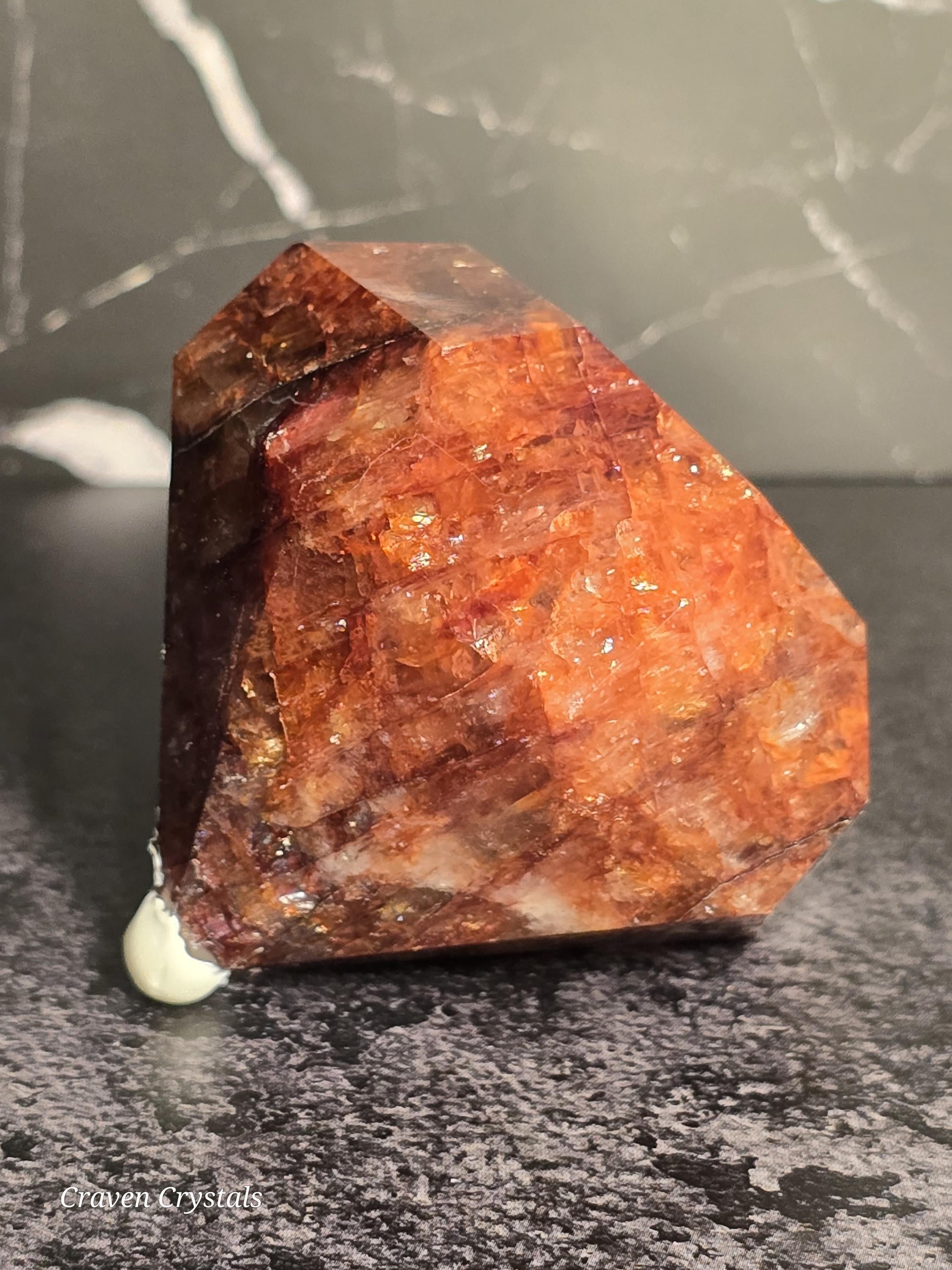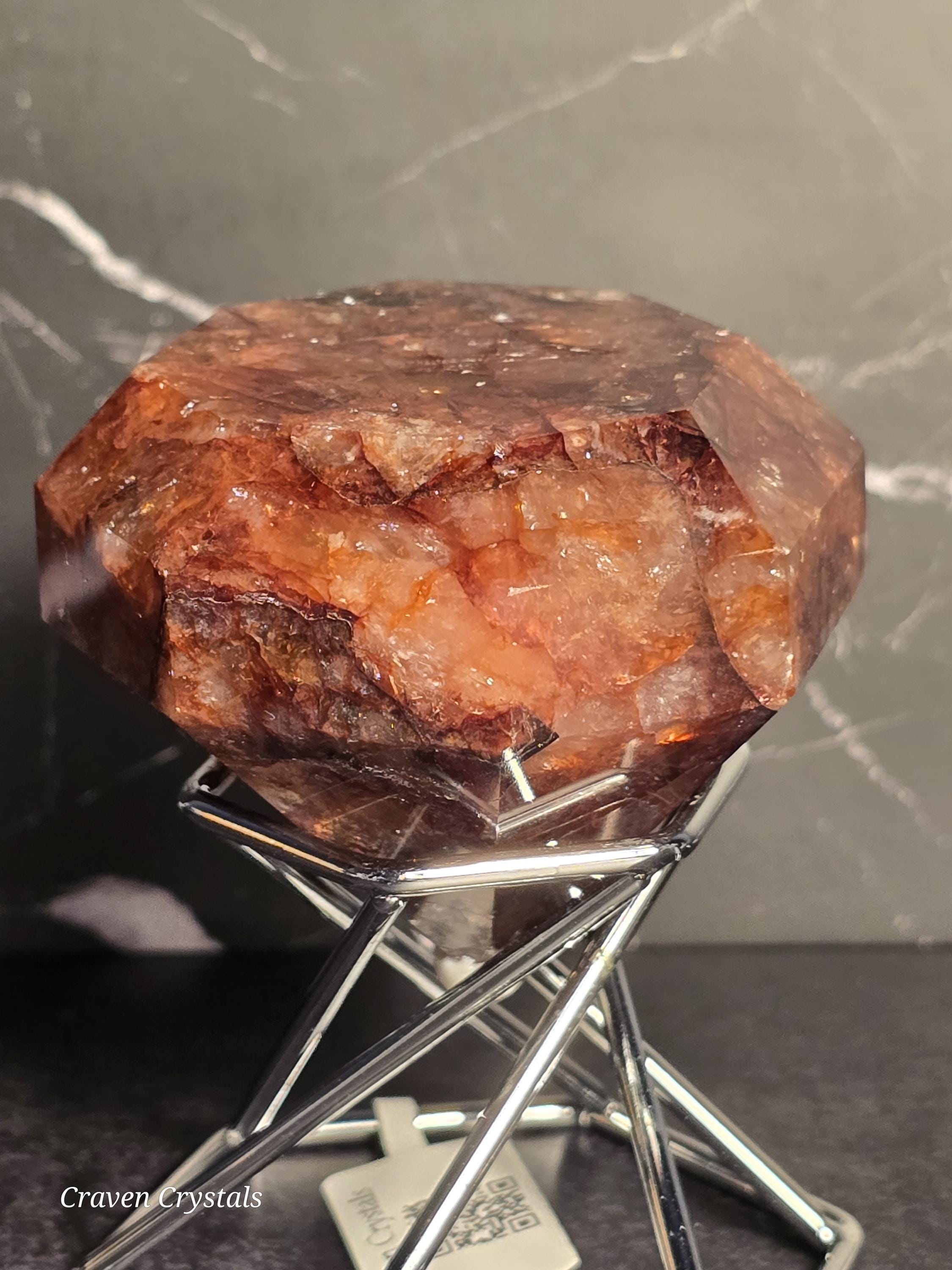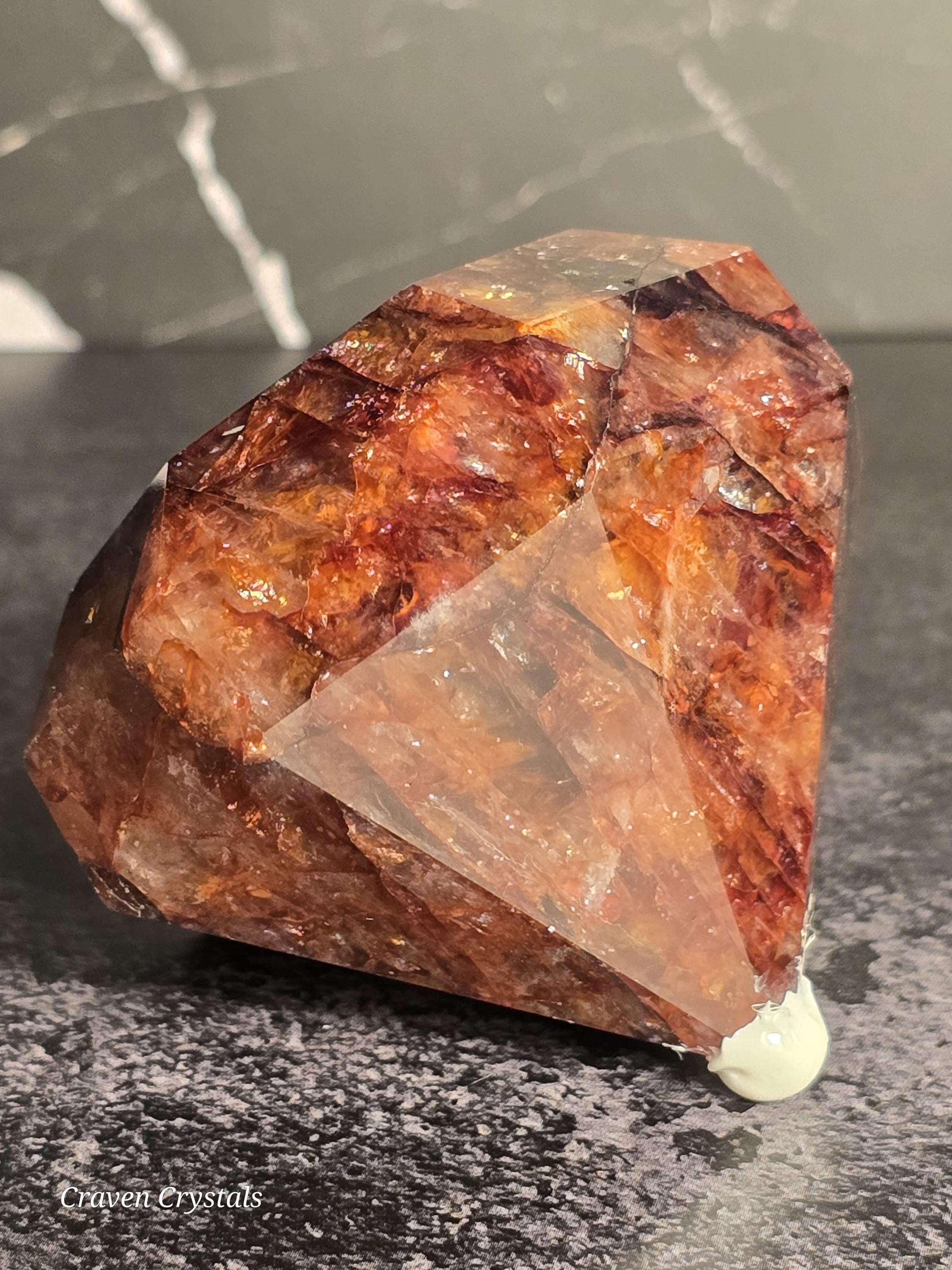 Stunning dark red Fire Quartz, also known as Hematoid Quartz, Harlequin Quartz, or Ferruginous Quartz, Crystal Diamond with rainbows, a captivating and unique variety of quartz that exhibits a combination of clear quartz and hematite.