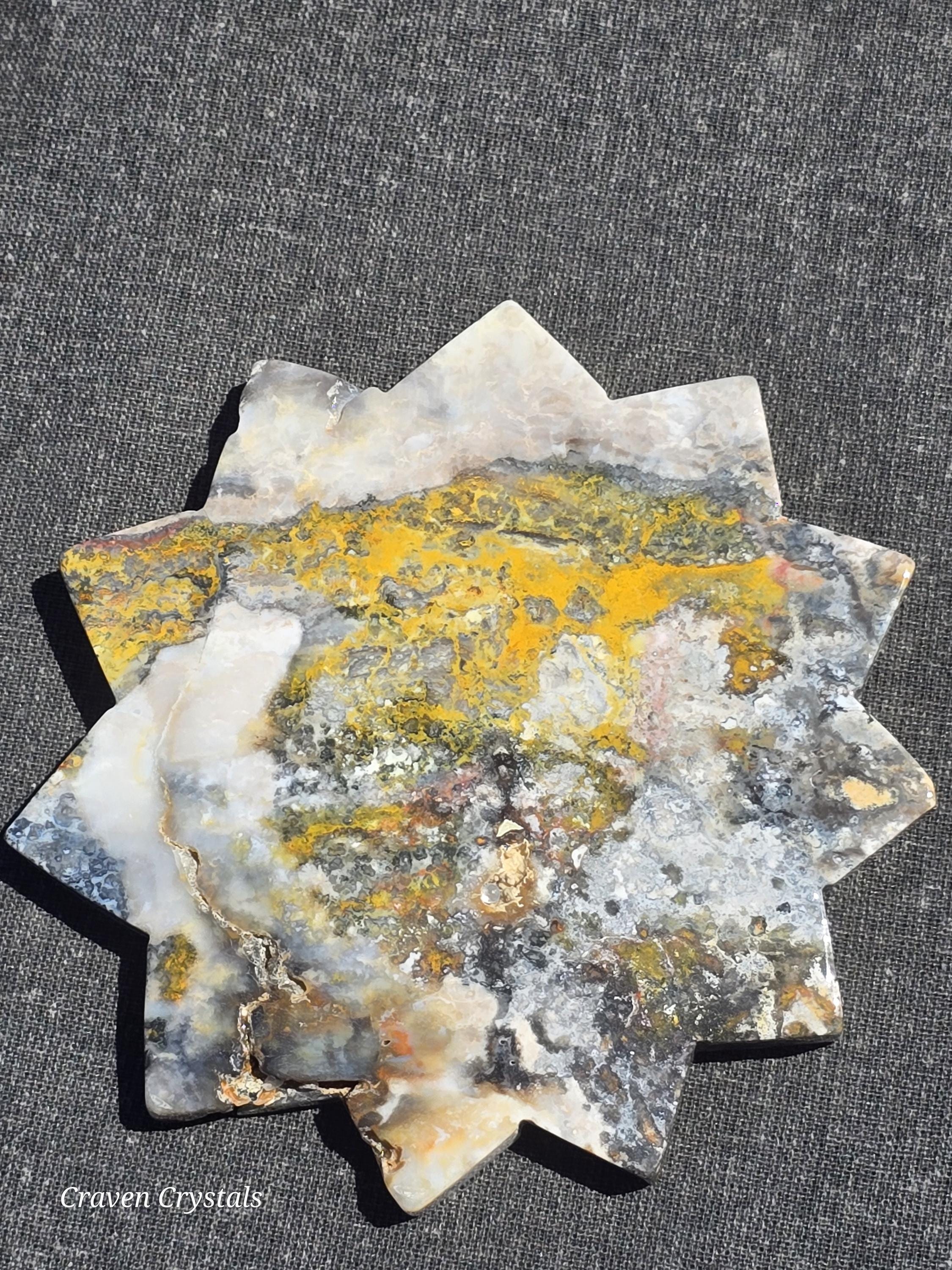 Bumblebee Jasper is thought to carry an energy that promotes happiness, positivity, and confidence. It's believed to inspire and motivate, helping individuals take action and pursue their goals. Despite its stimulating energy, Bumblebee Jasper is said to have grounding and protective qualities.