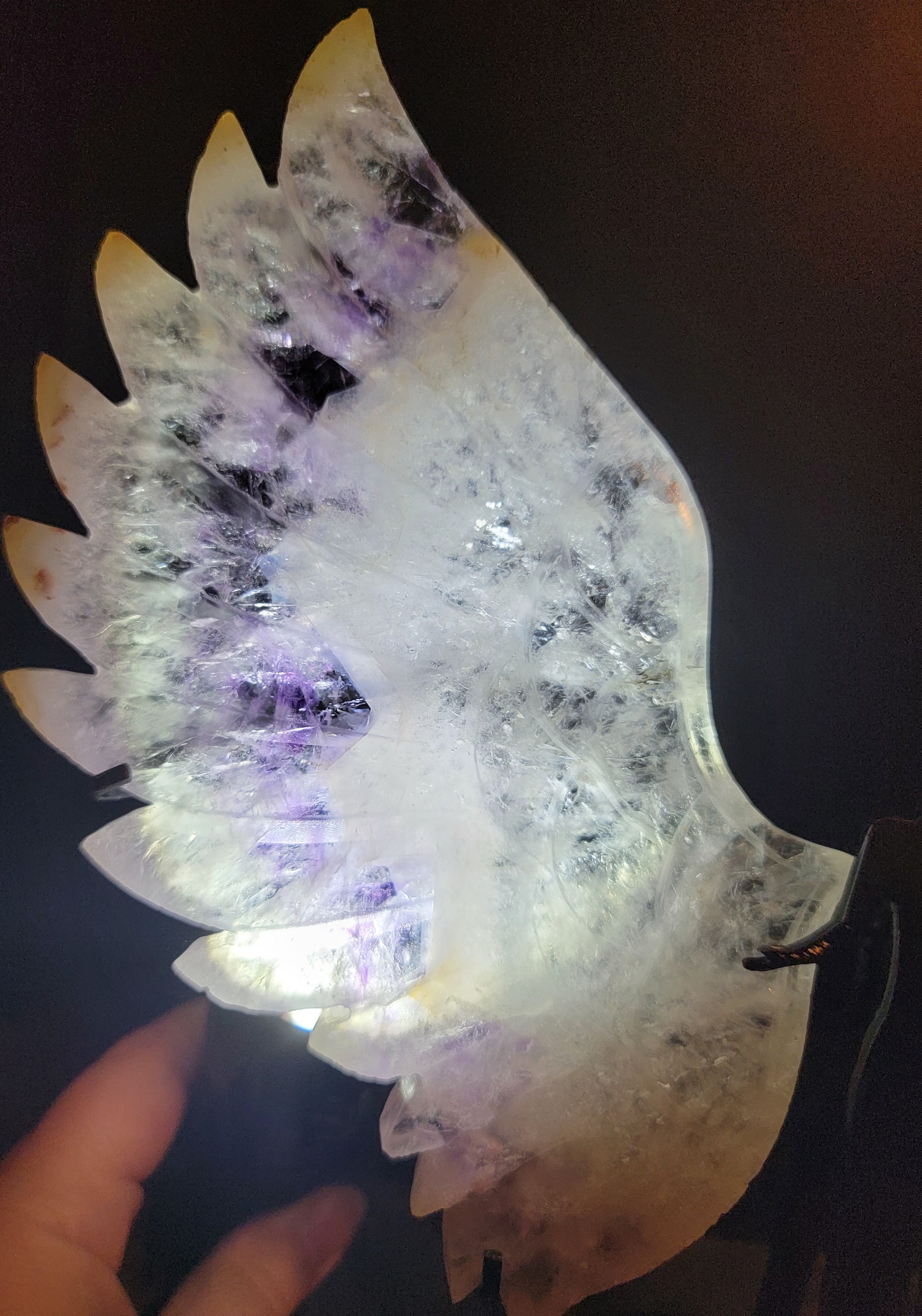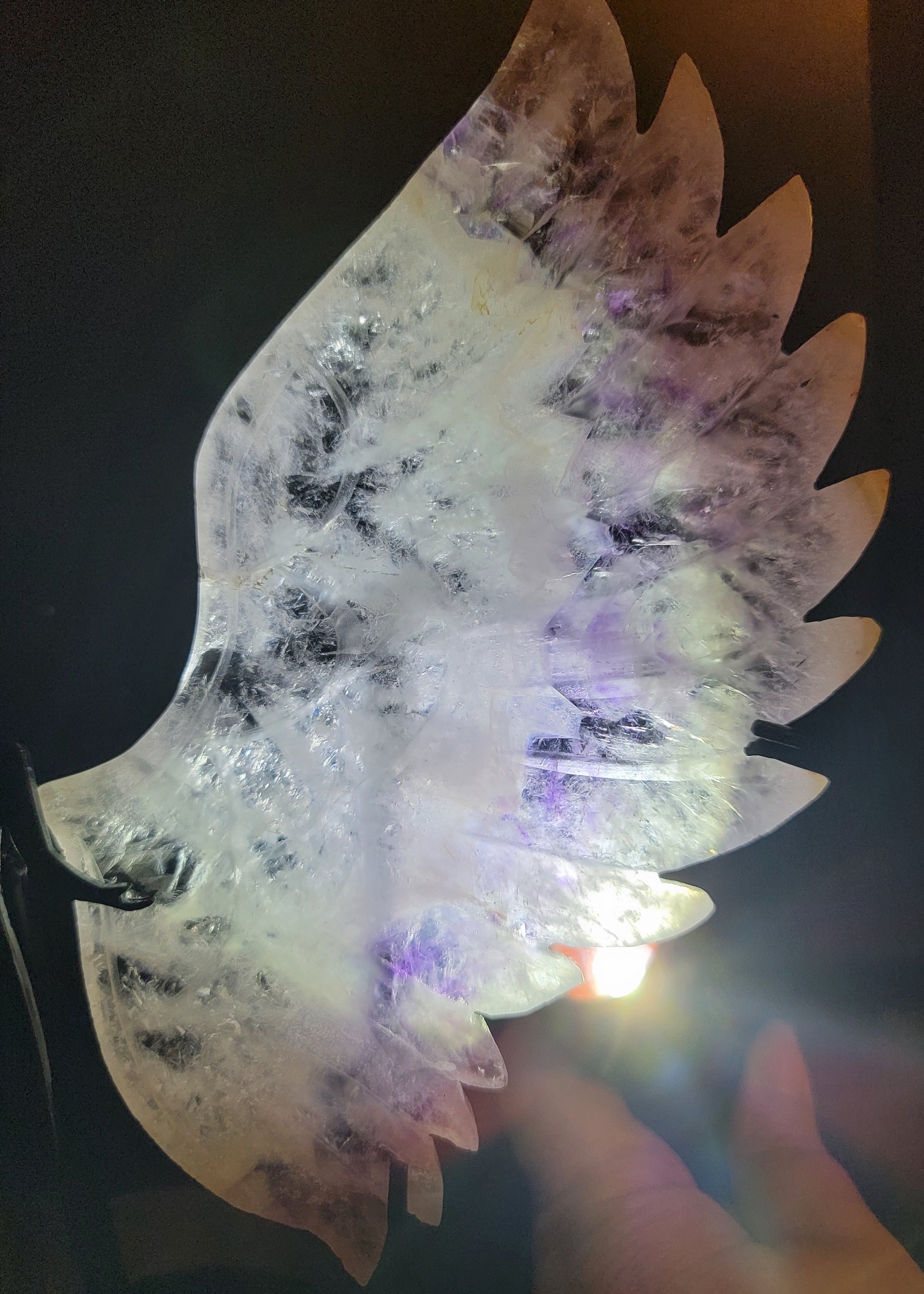 Amazing pair of clear quartz and amethyst angel wings! Shipping was prompt and arrived on time and undamaged. Even more beautiful in person… would buy from seller again!