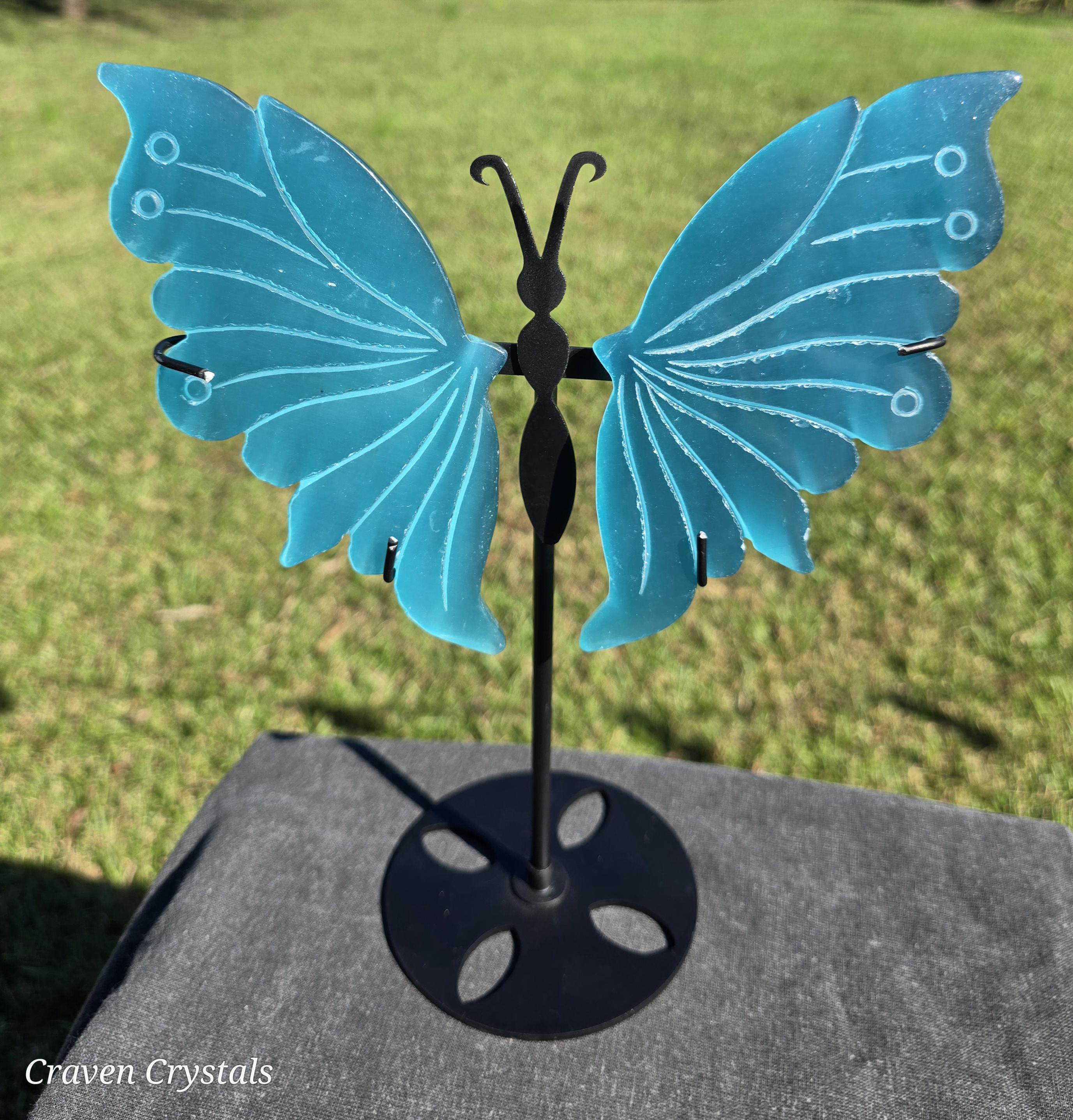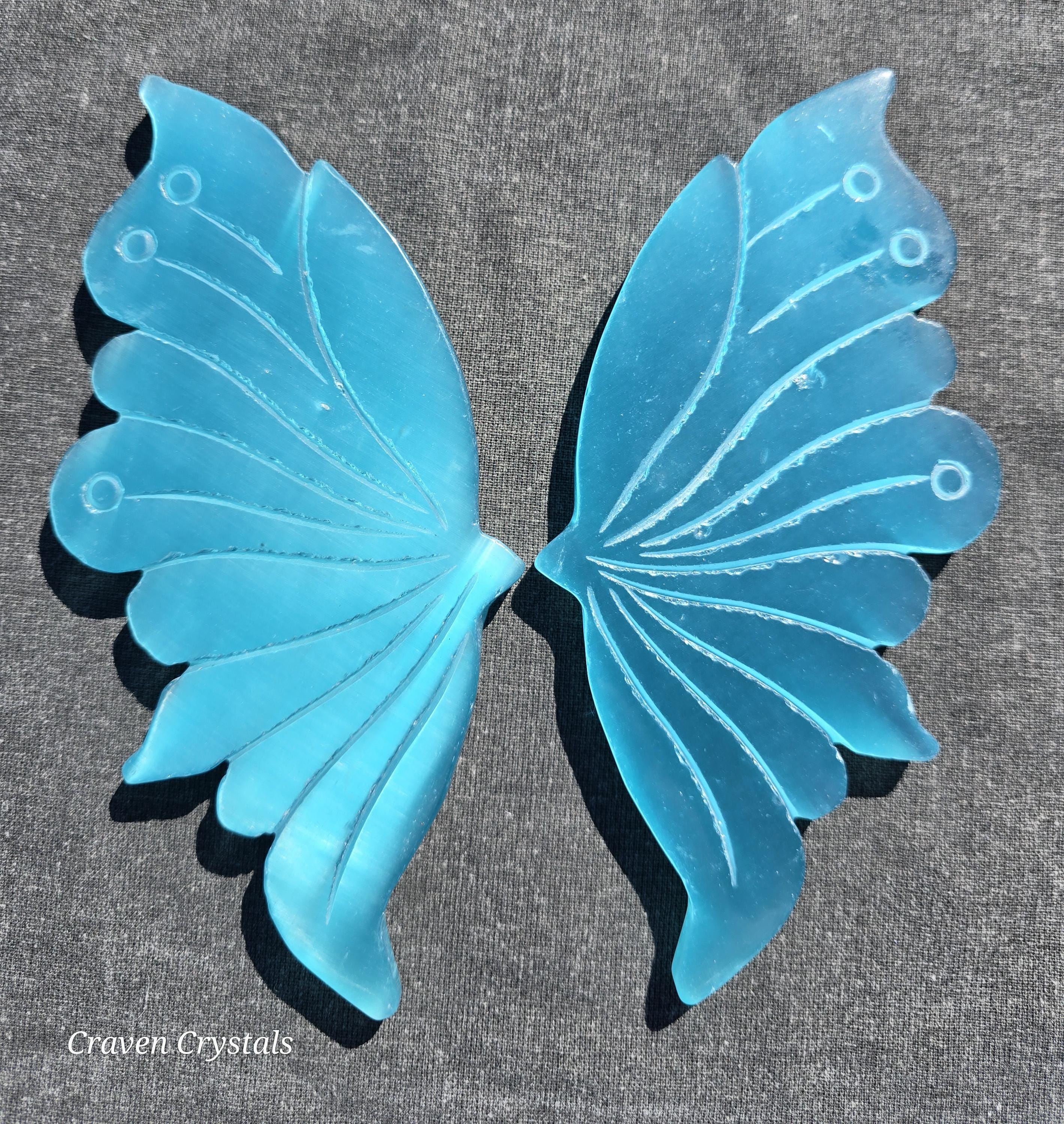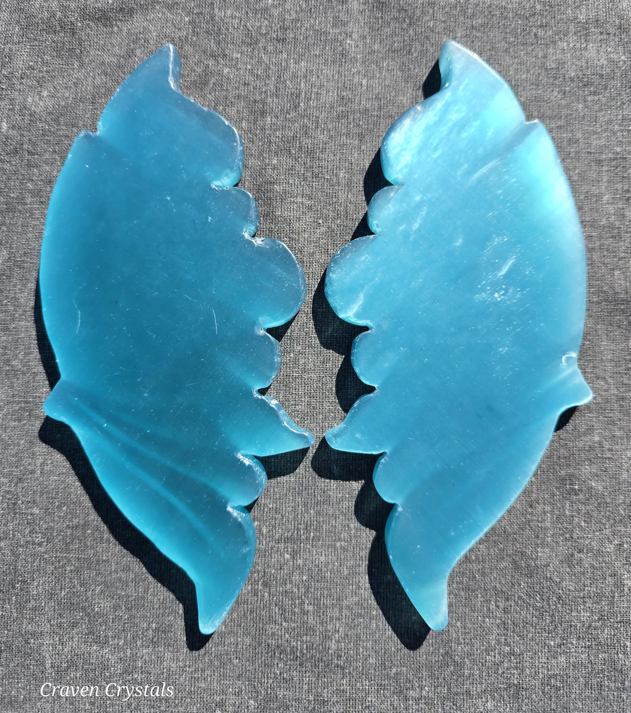 Beautiful Teal Caribbean ocean blue Selenite Cat Eye Crystal Butterfly Wings