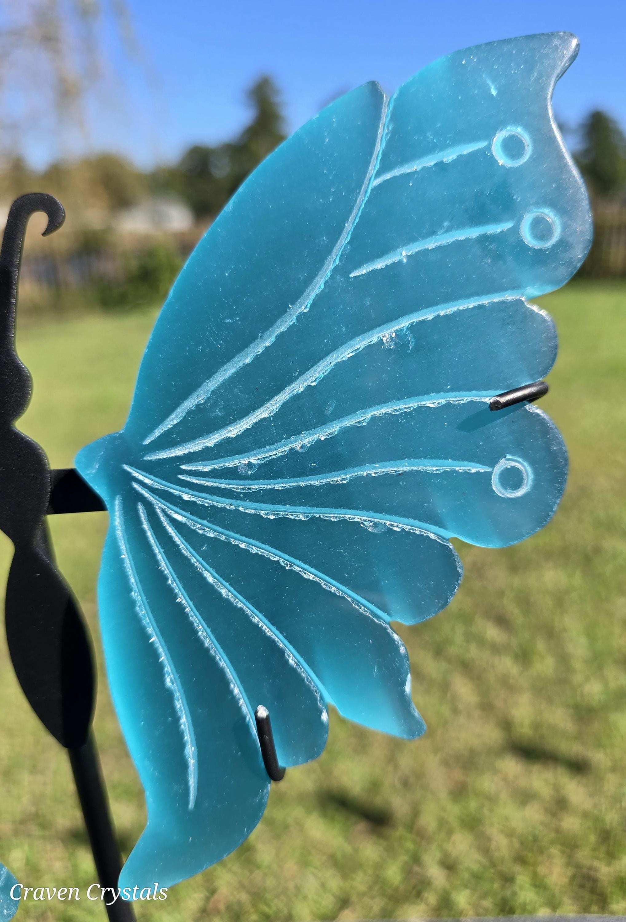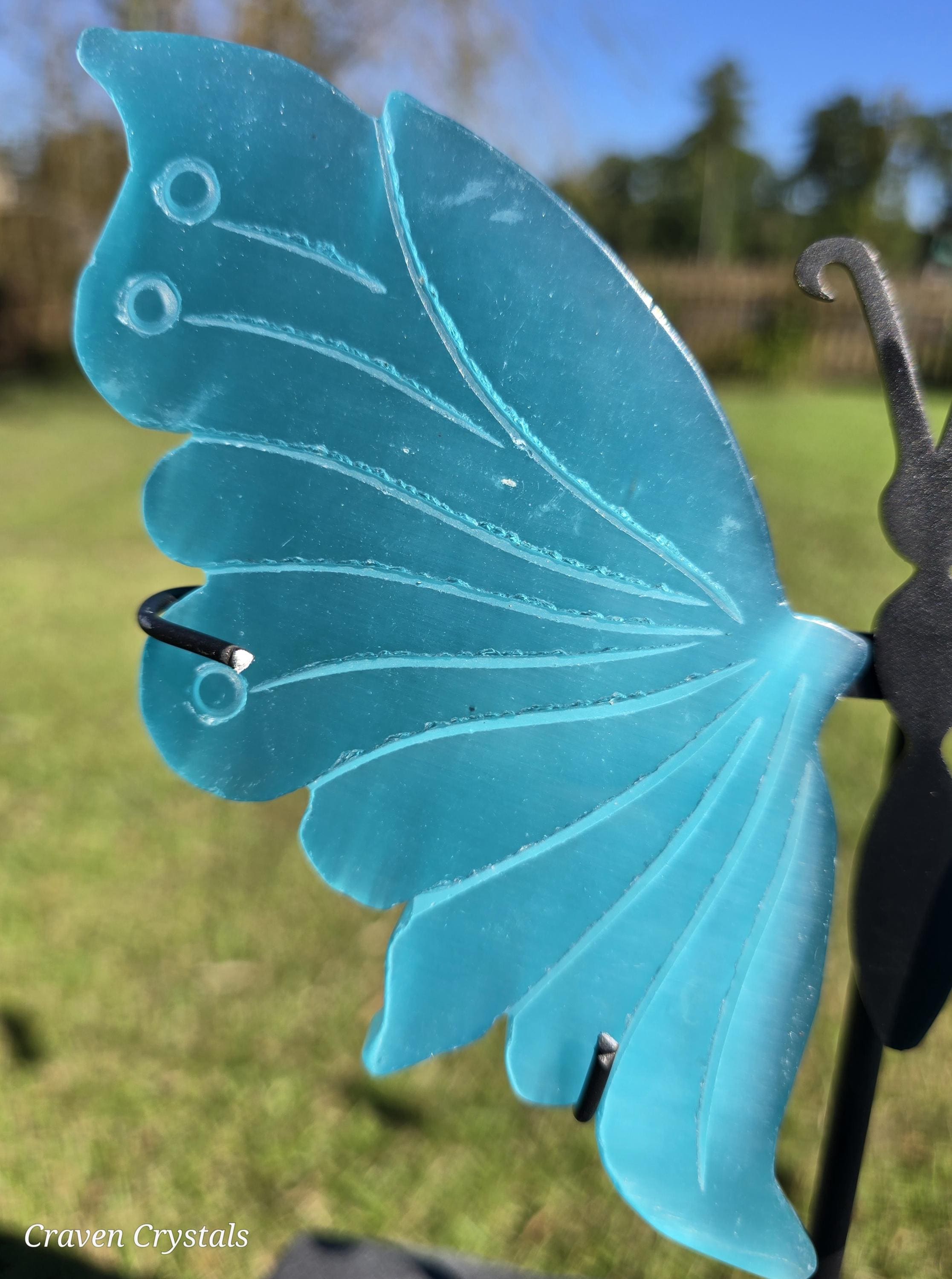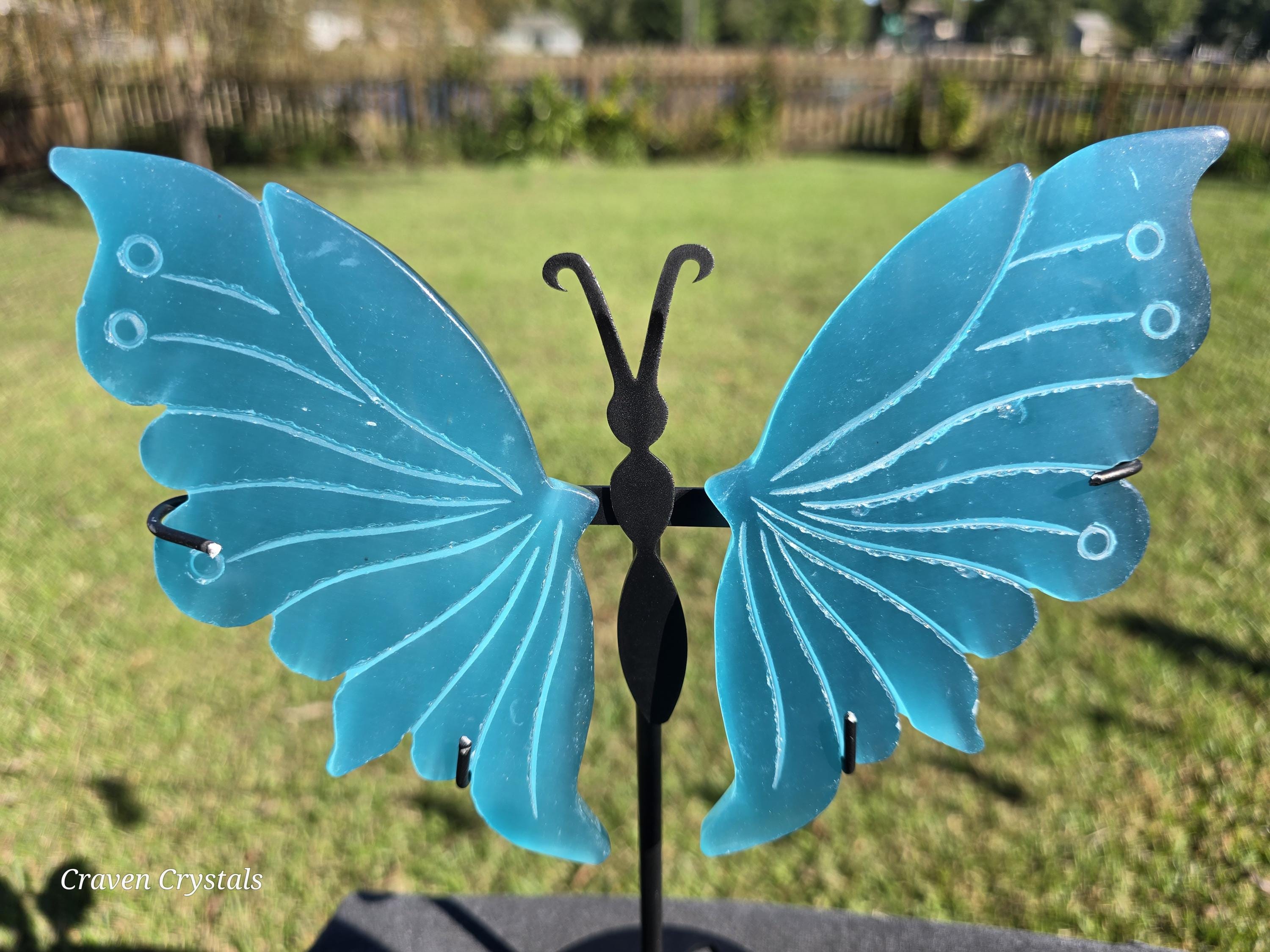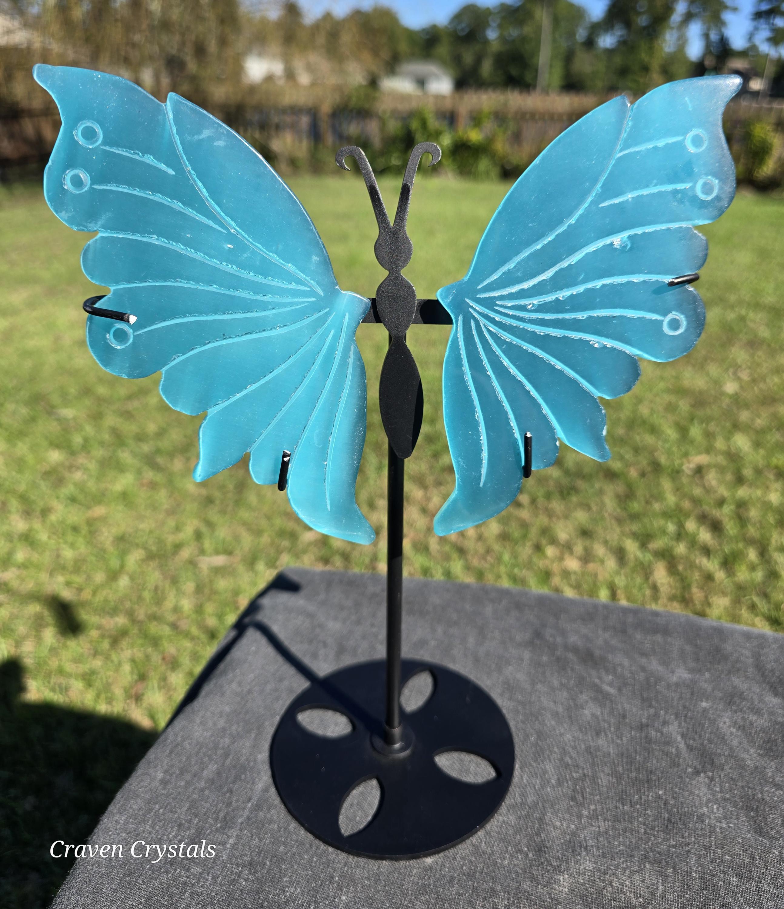 Beautiful Teal Caribbean ocean blue Selenite Cat Eye Crystal Butterfly Wings
