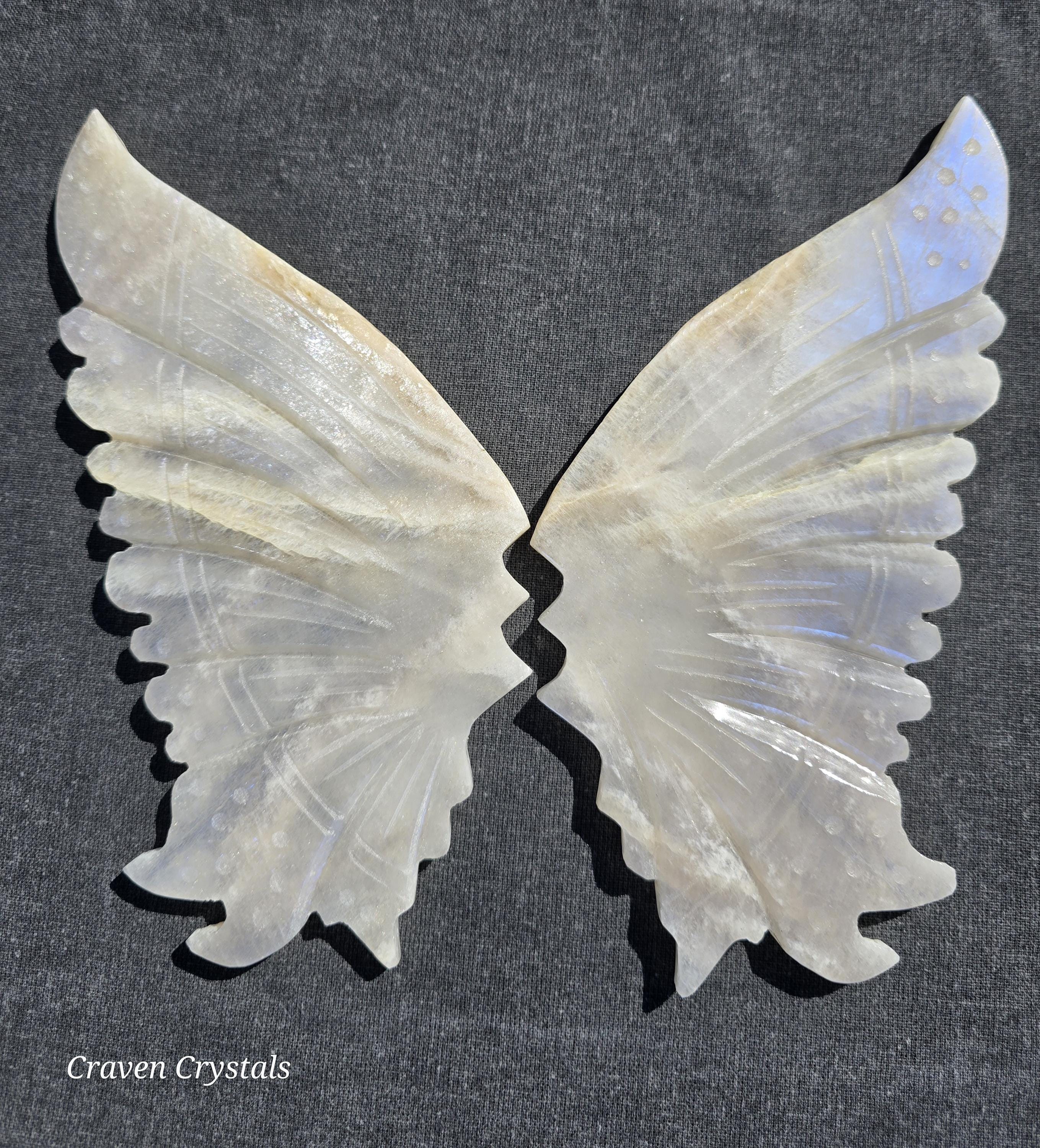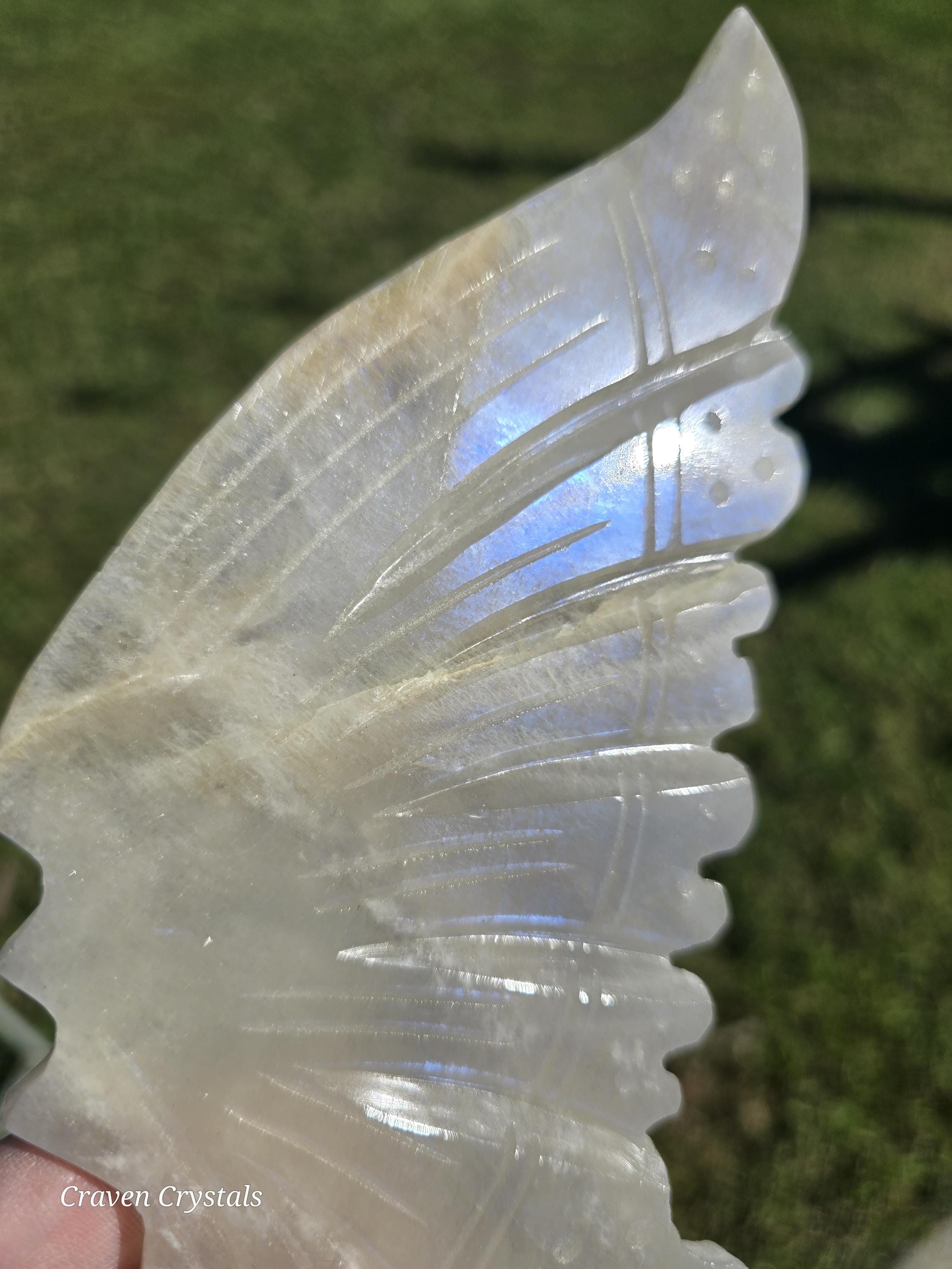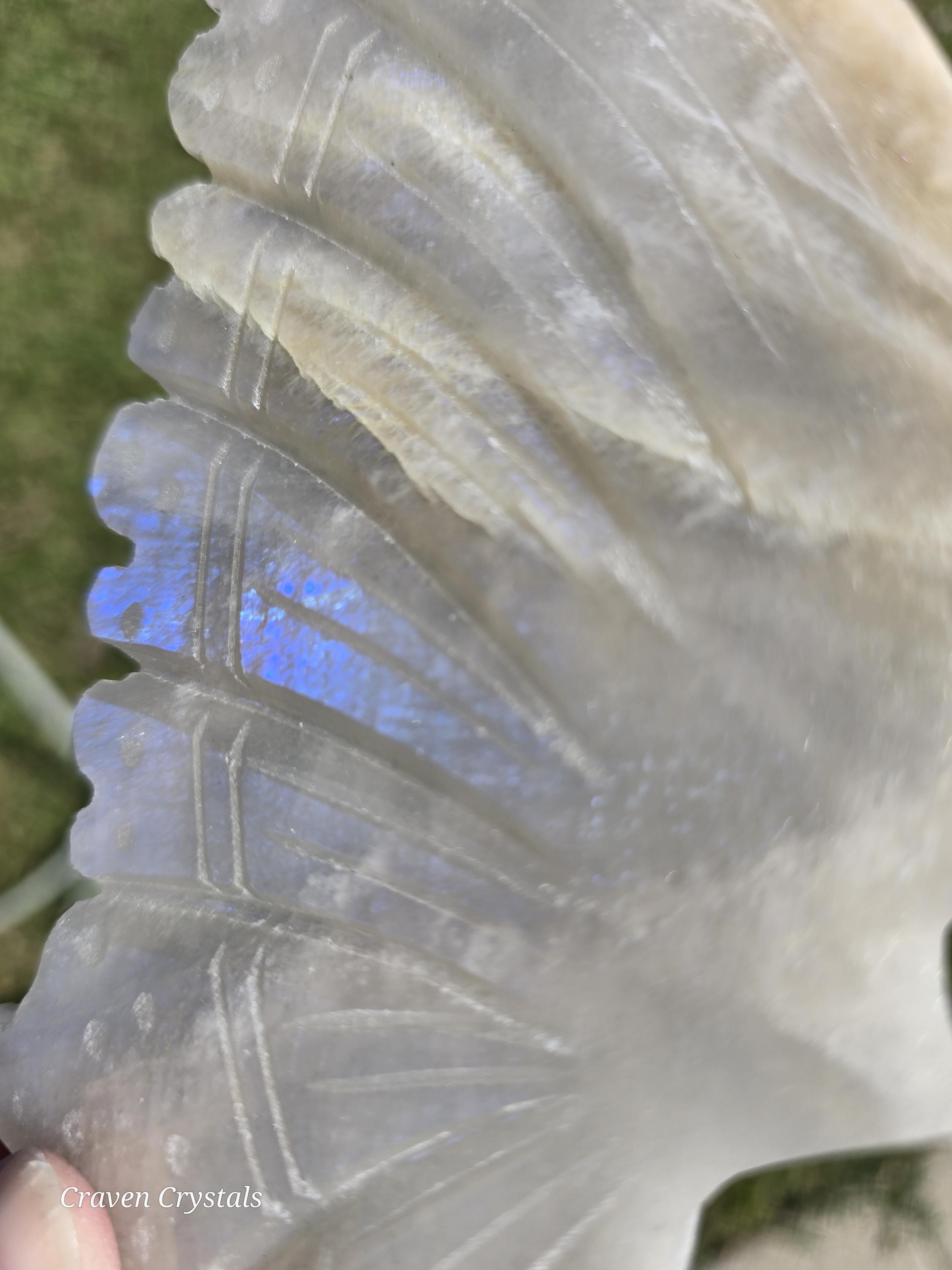Unbelievably stunning Moonstone with blue flash and silver sparkle Crystal Butterfly Wings