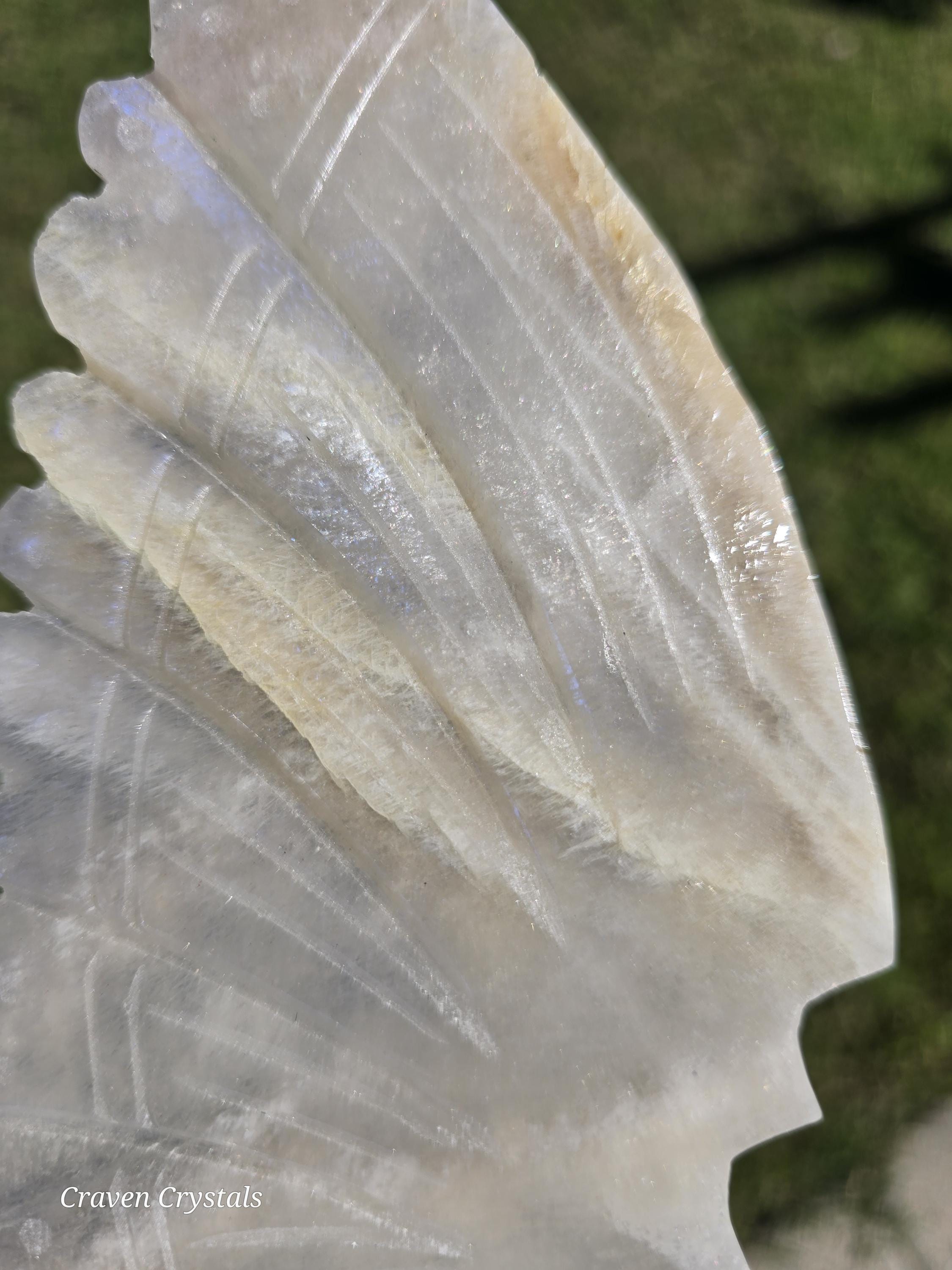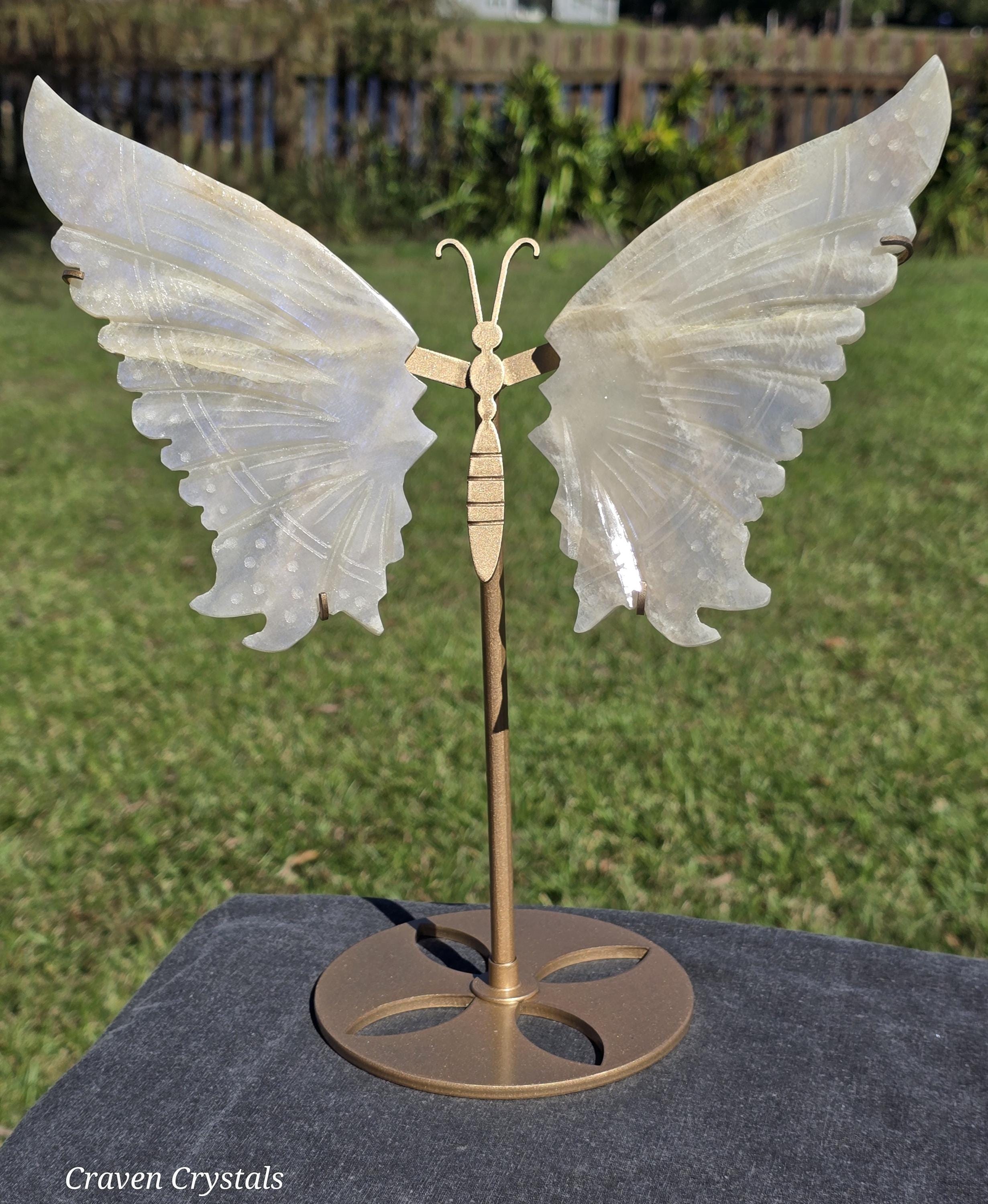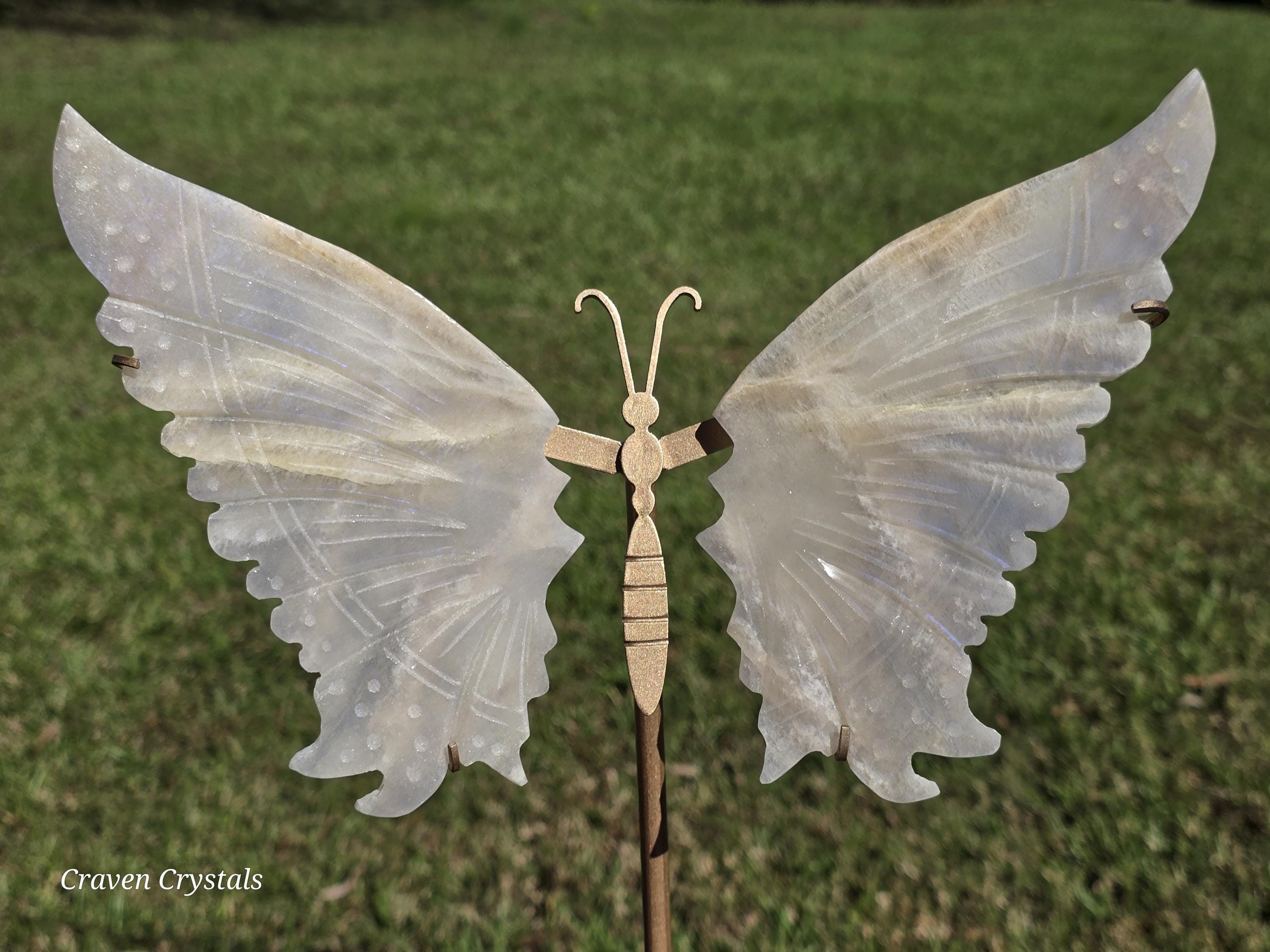 Unbelievably stunning Moonstone with blue flash and silver sparkle Crystal Butterfly Wings