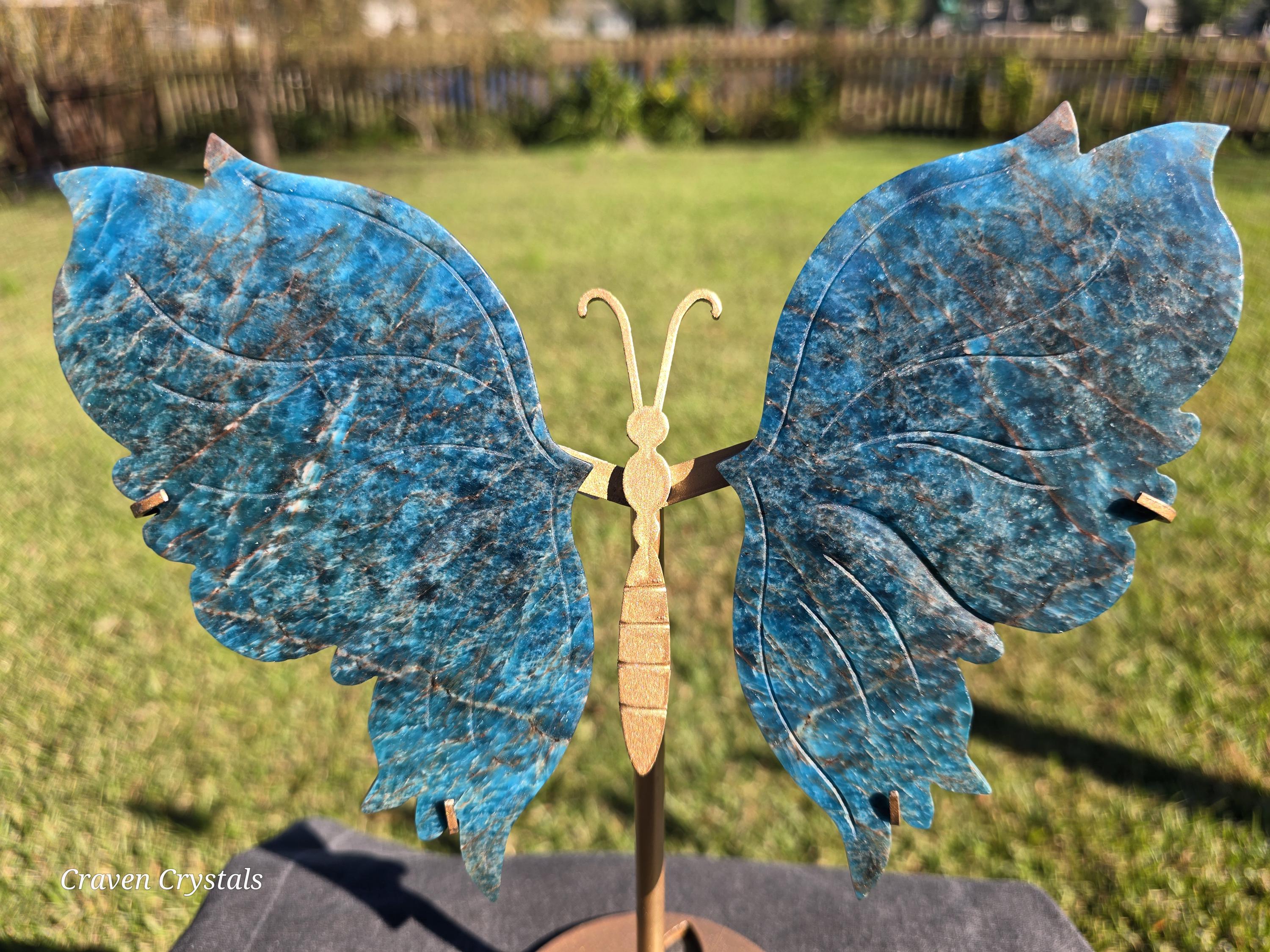 Striking deep blue Apatite Crystal Butterfly Wings in a gorgeous teal