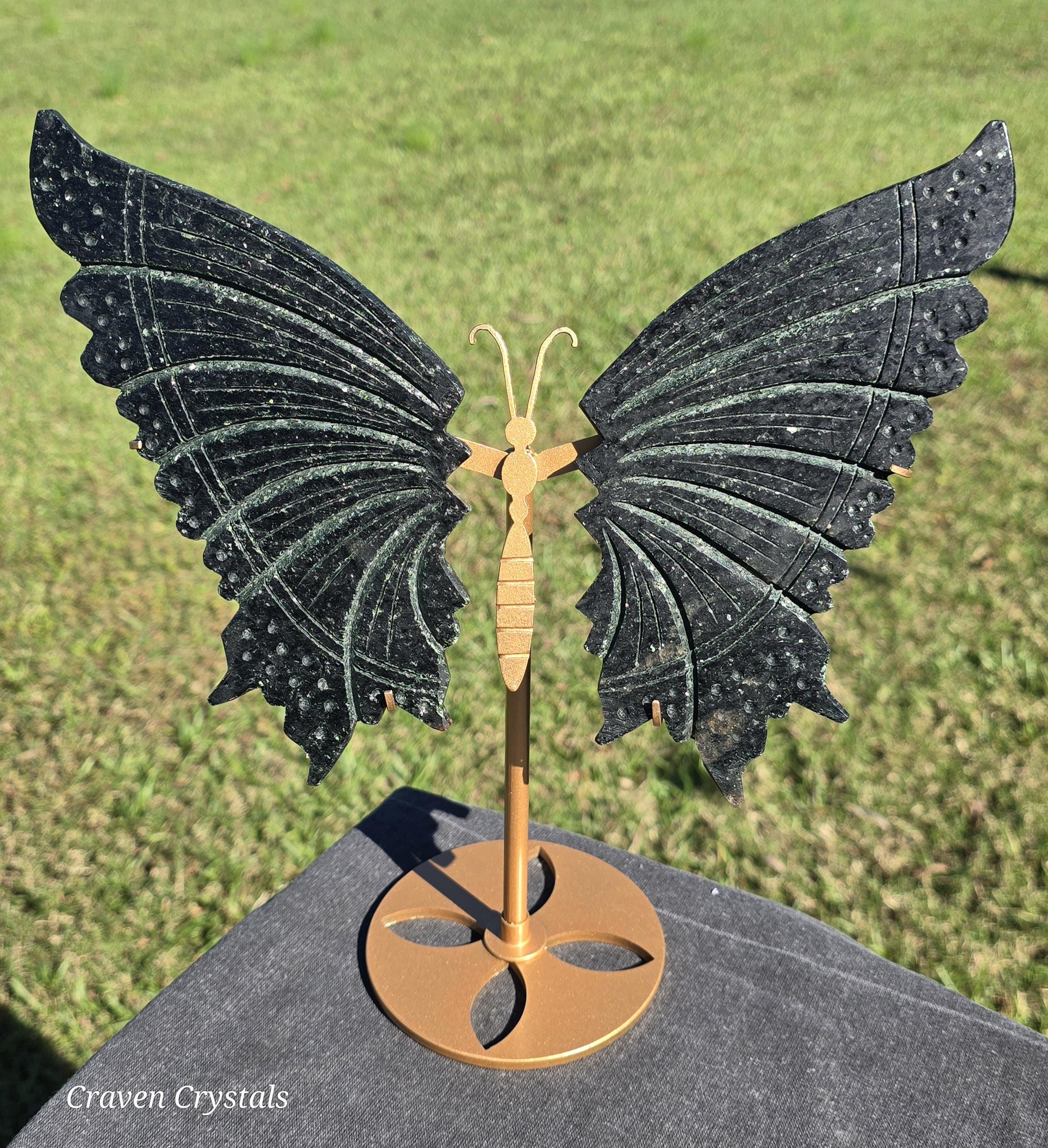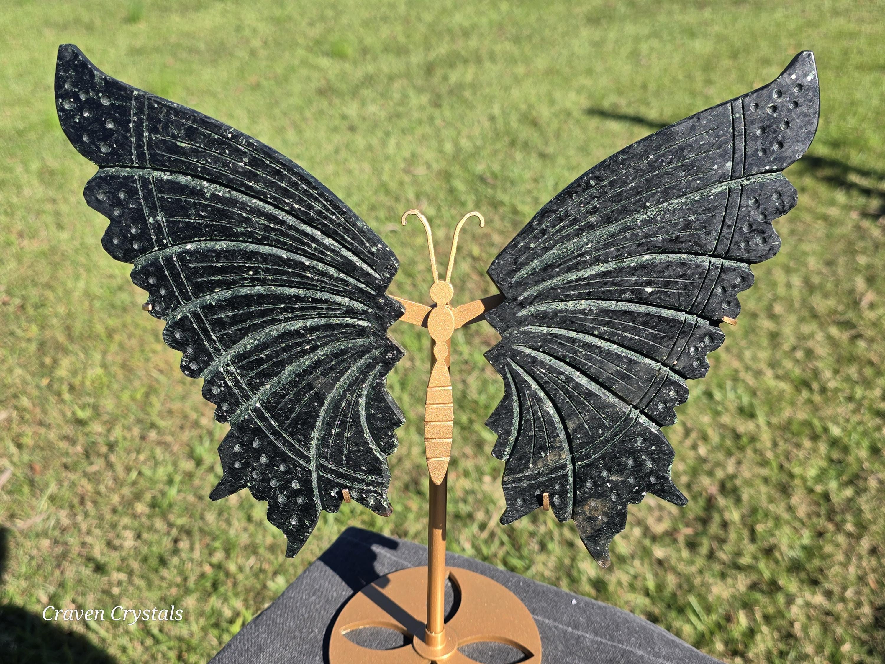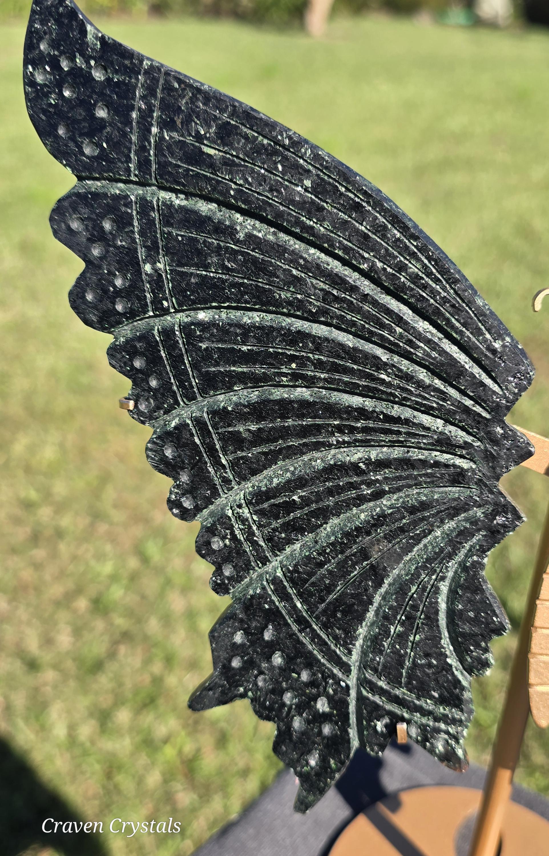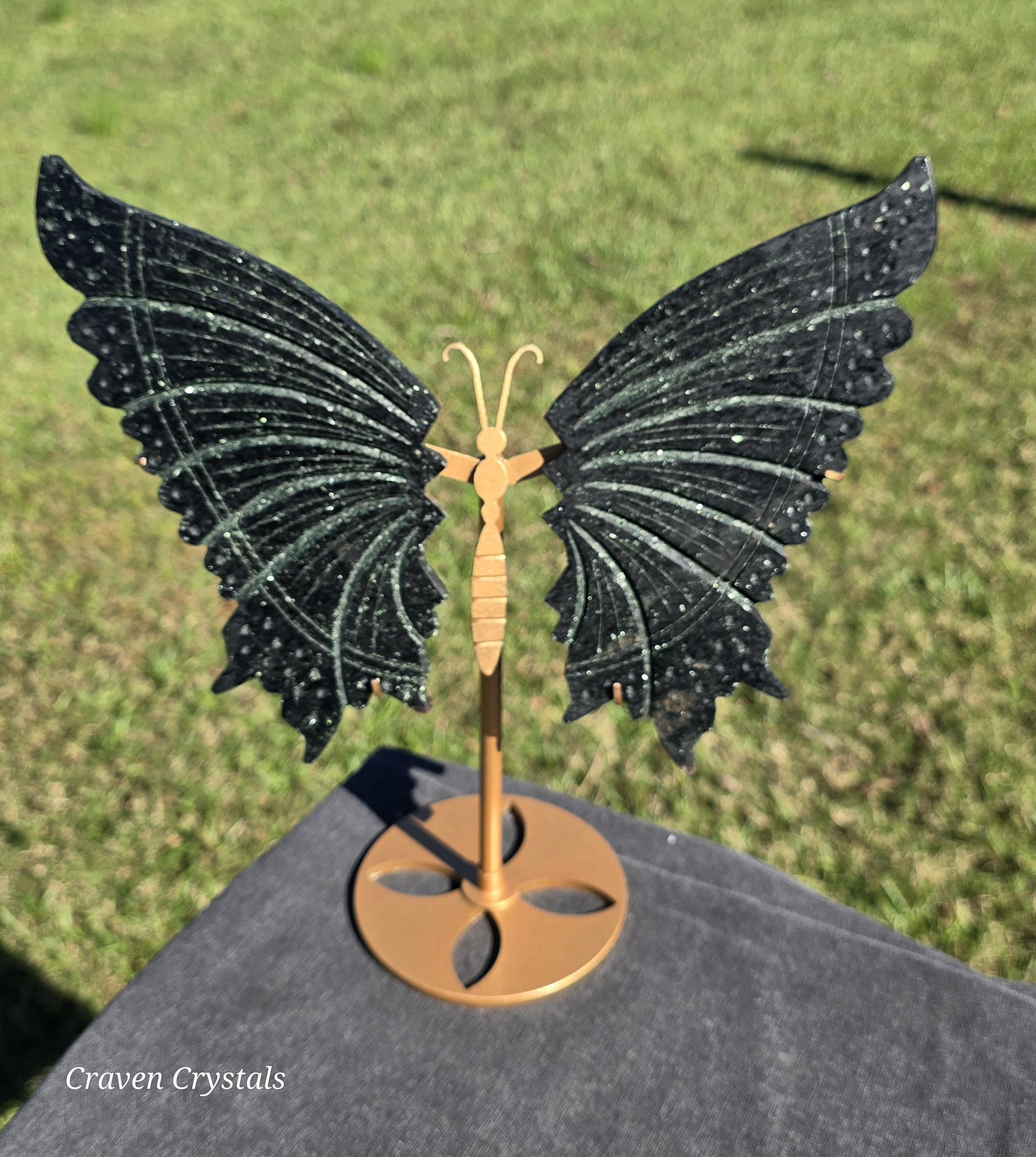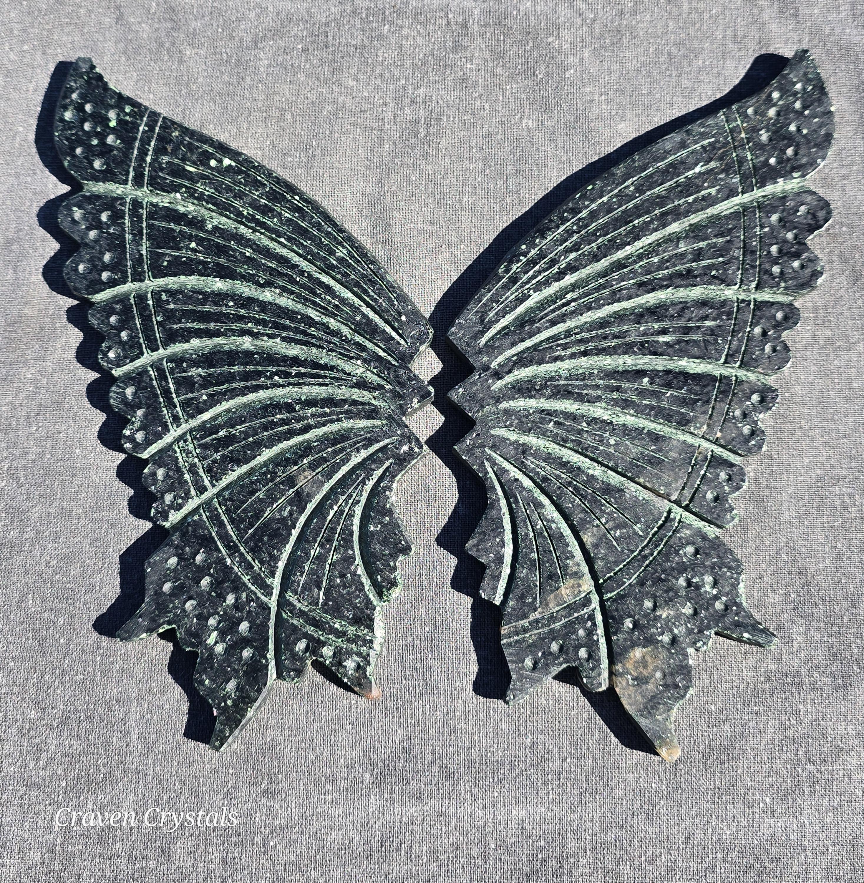 Sparkly deep forest Green Fuchsite Mica Crystal Butterfly Wings