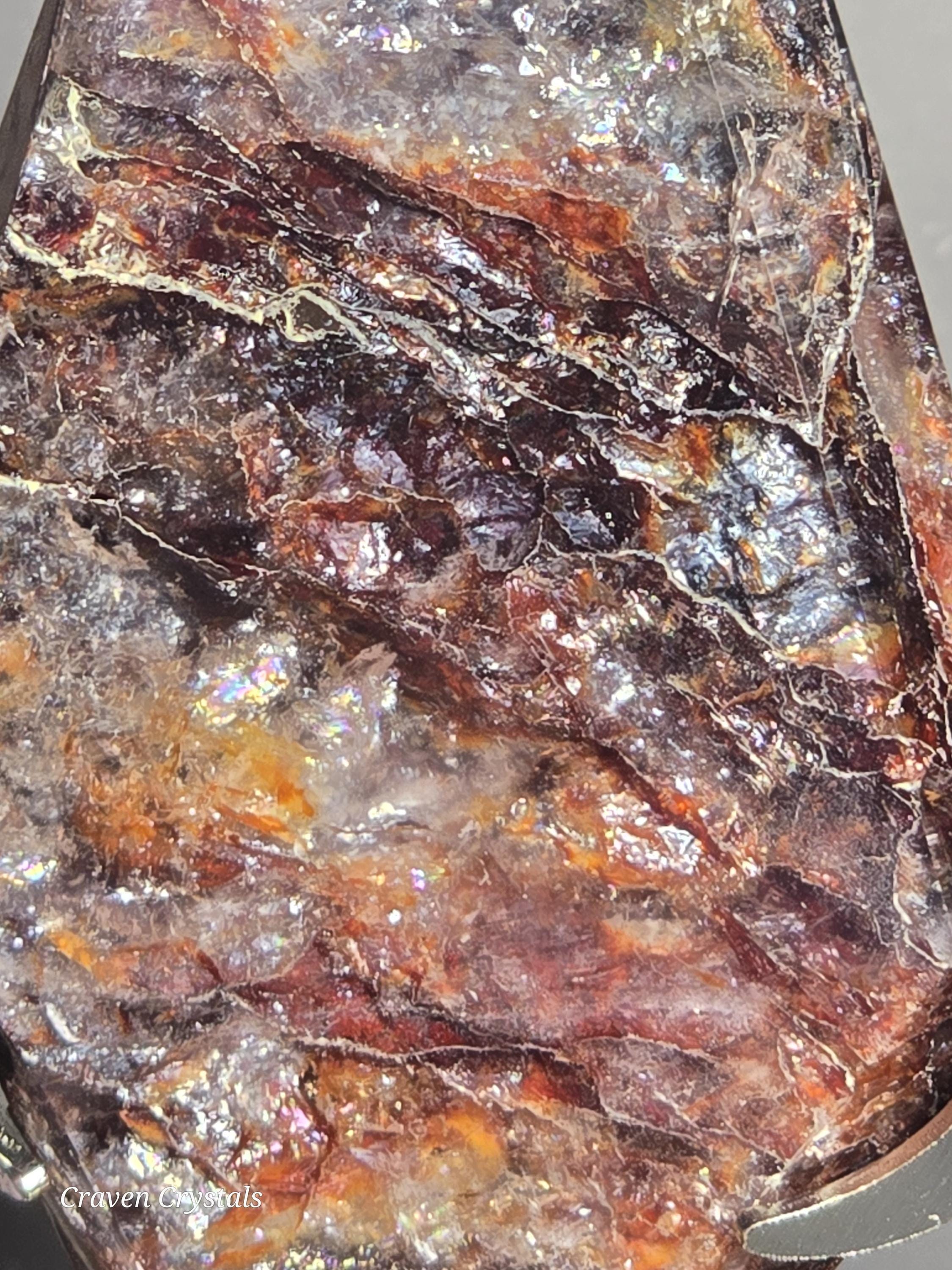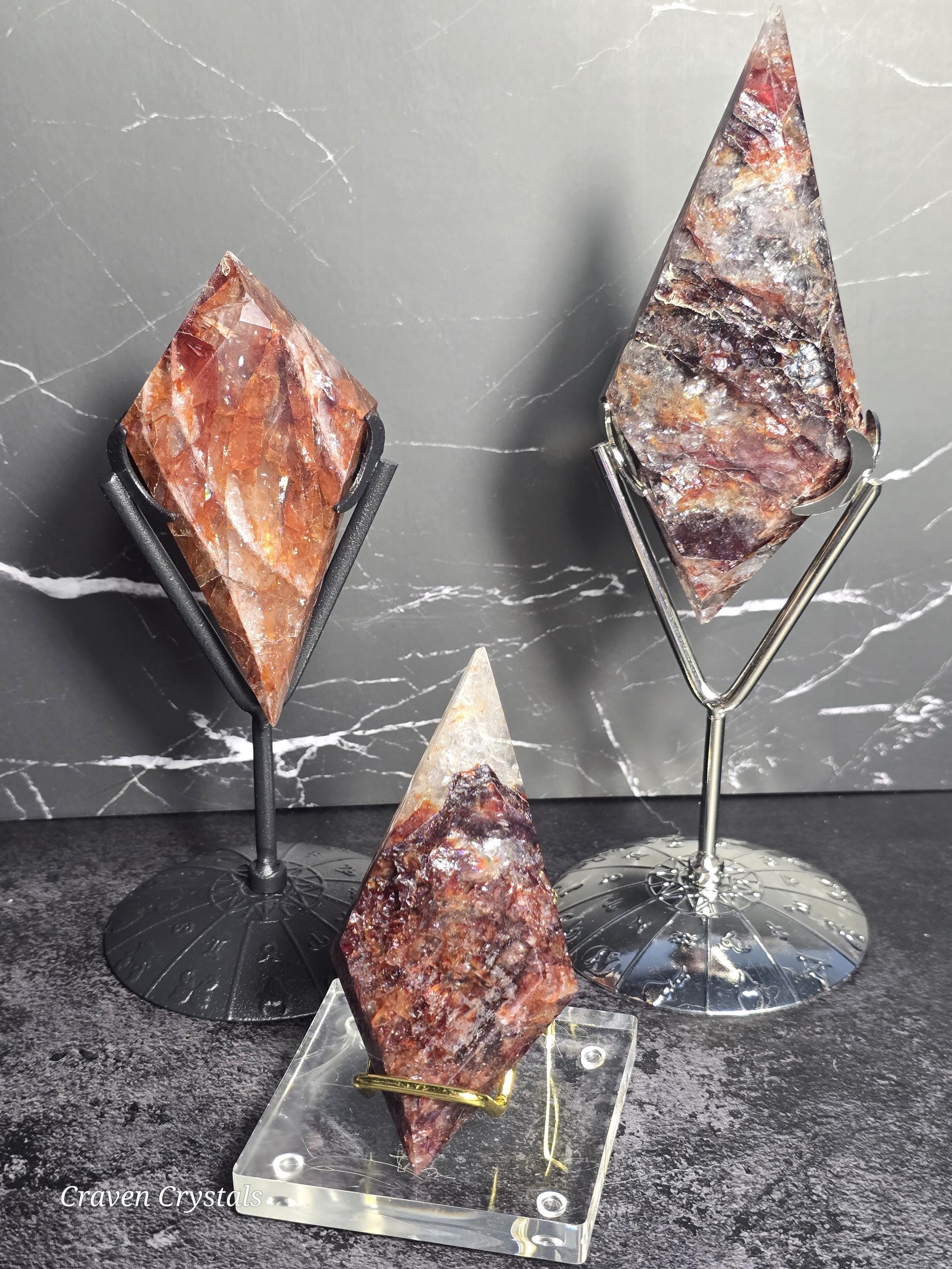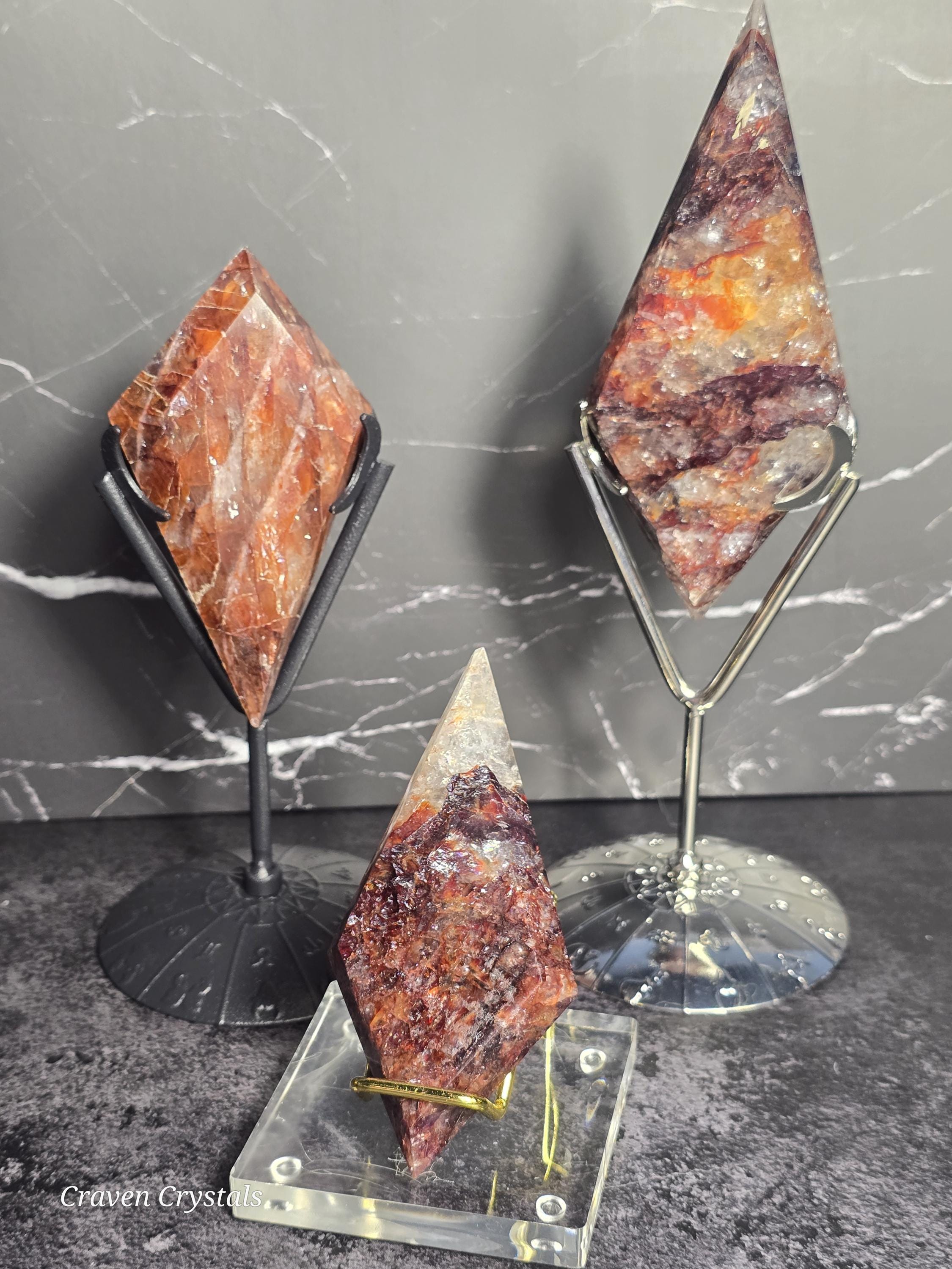 Stunning dark red Fire Quartz Crystal Rhombus Diamonds with rainbows