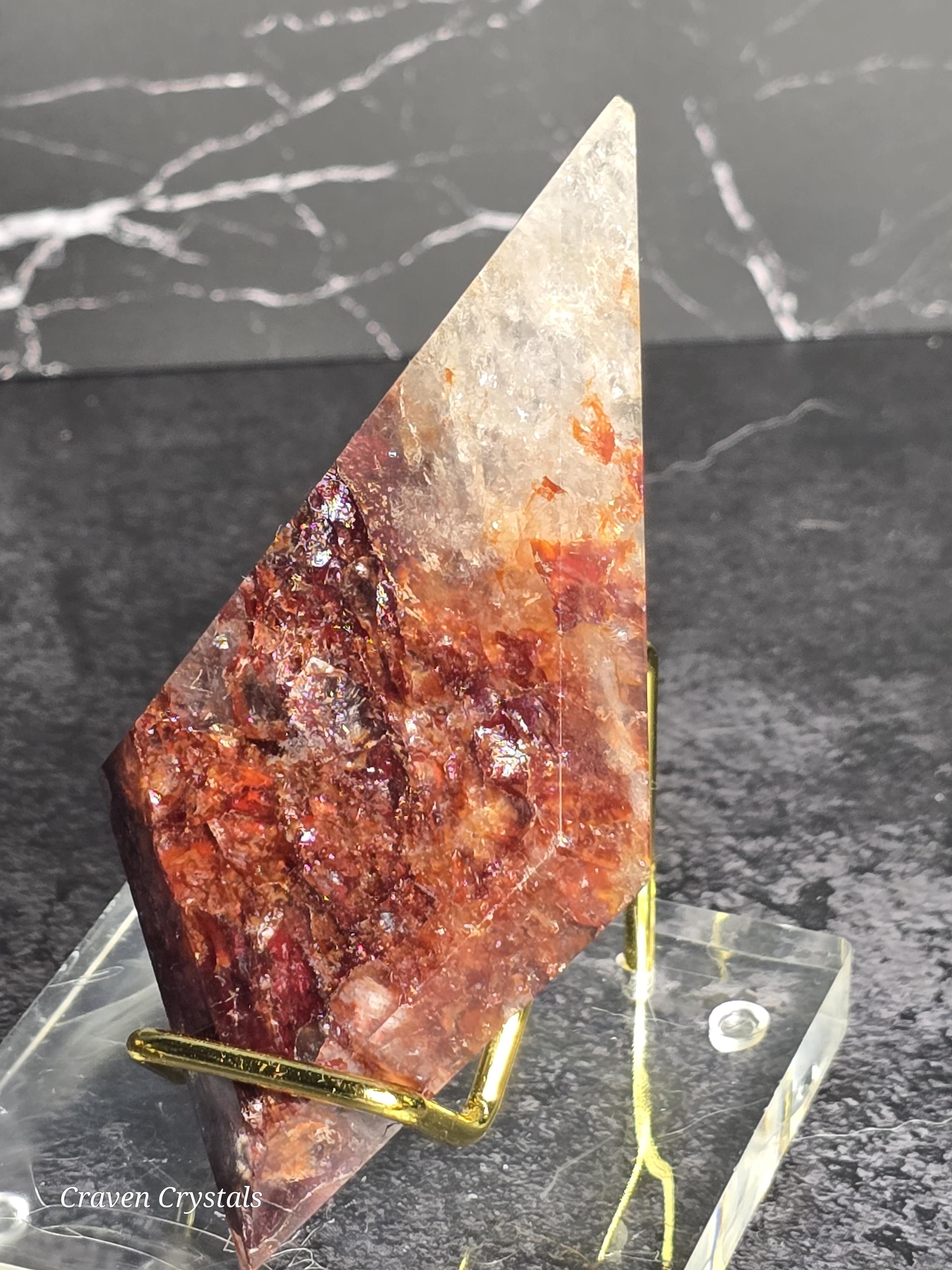 Fire Quartz, also known as Hematoid Quartz, Harlequin Quartz, or Ferruginous Quartz, is a captivating and unique variety of quartz that exhibits a combination of clear quartz and hematite.