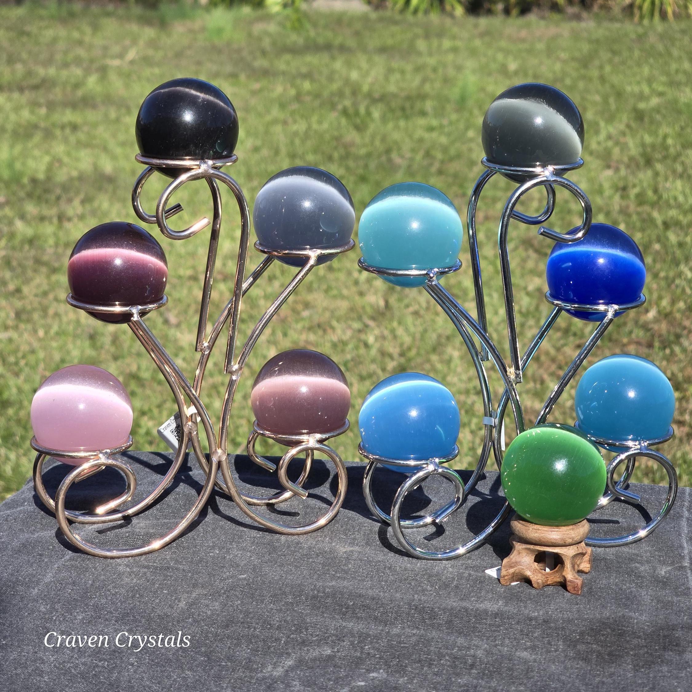 Enhanced color Cat Eye Selenite Crystal Sphere available in multiple colors