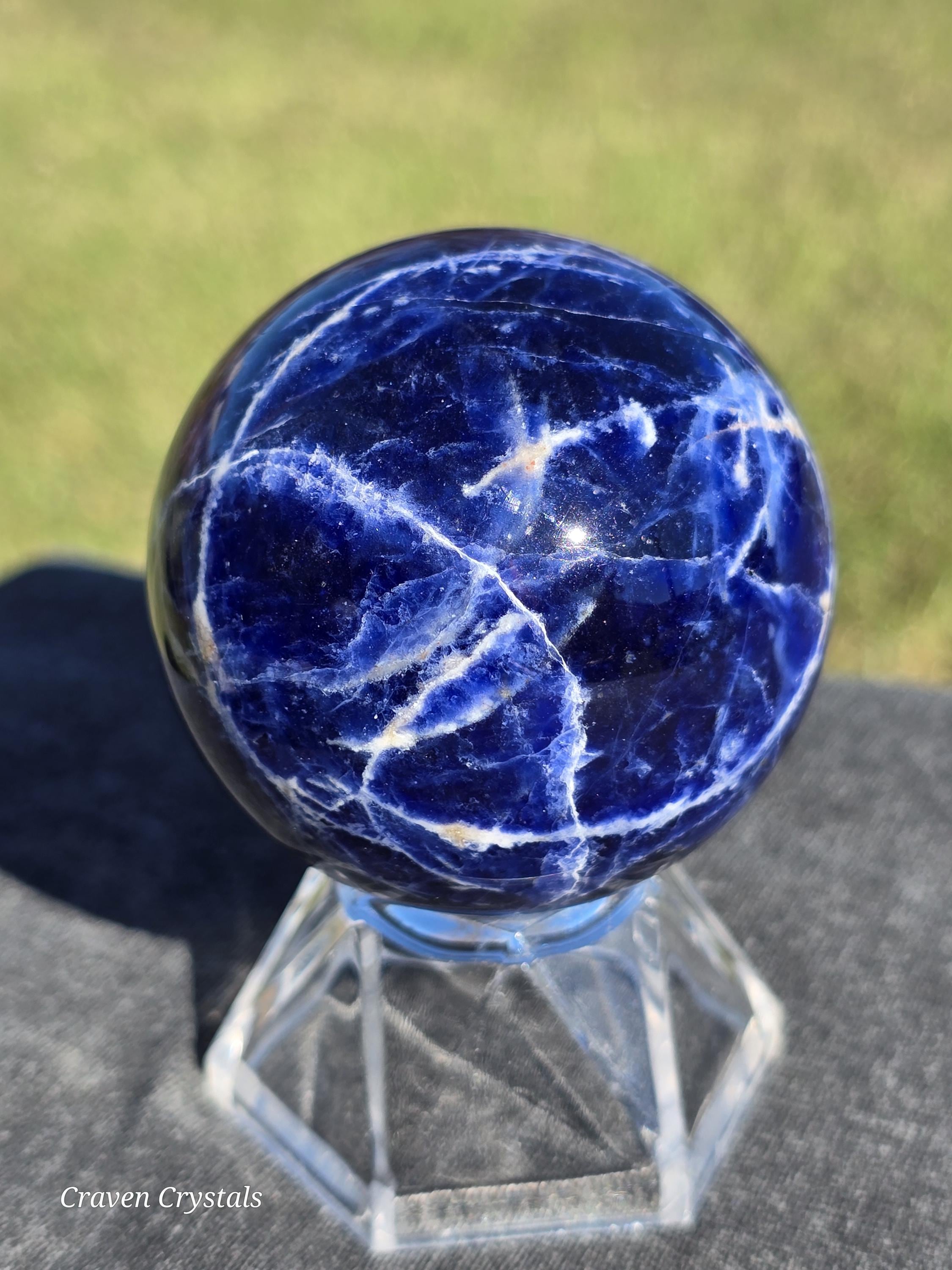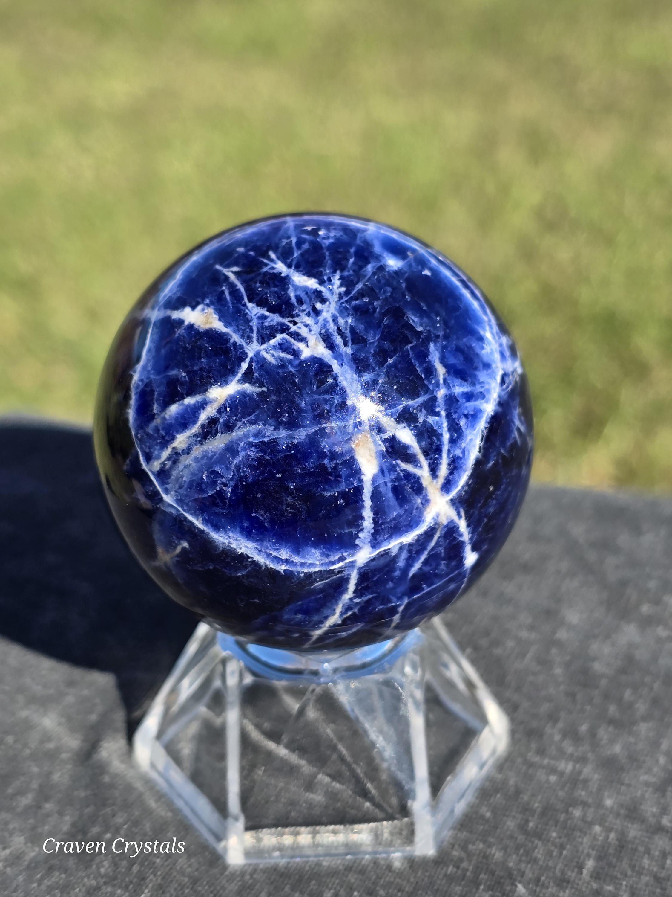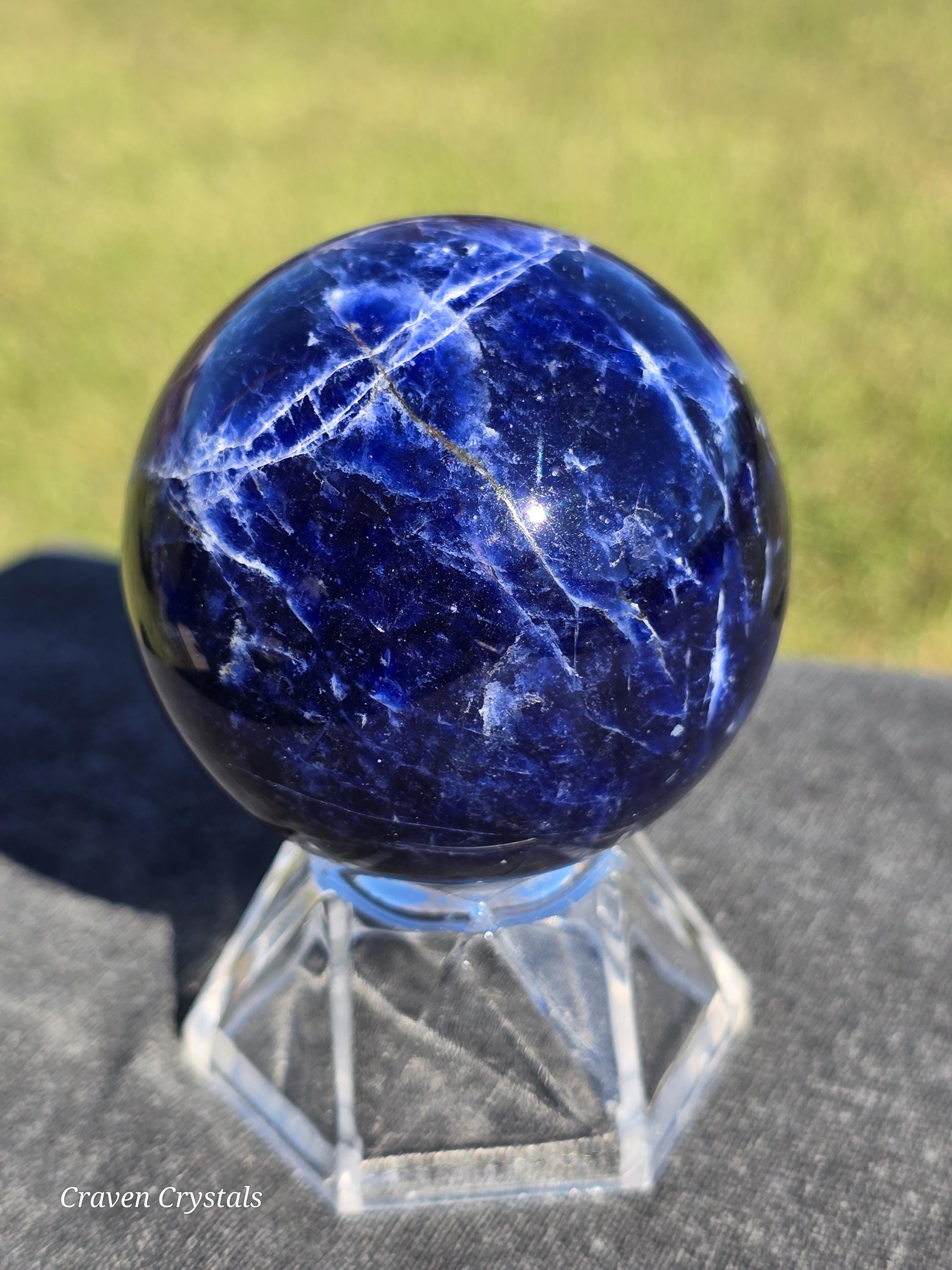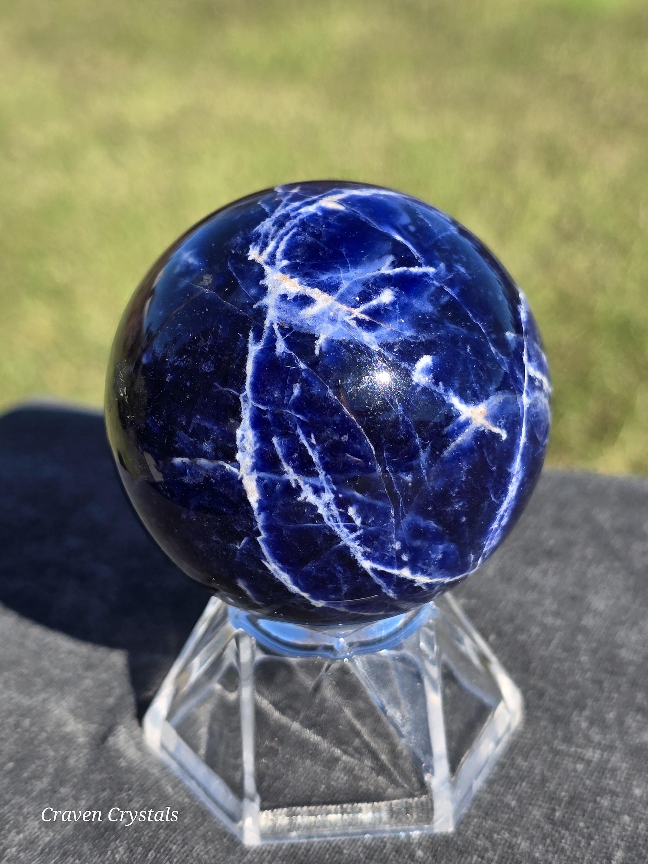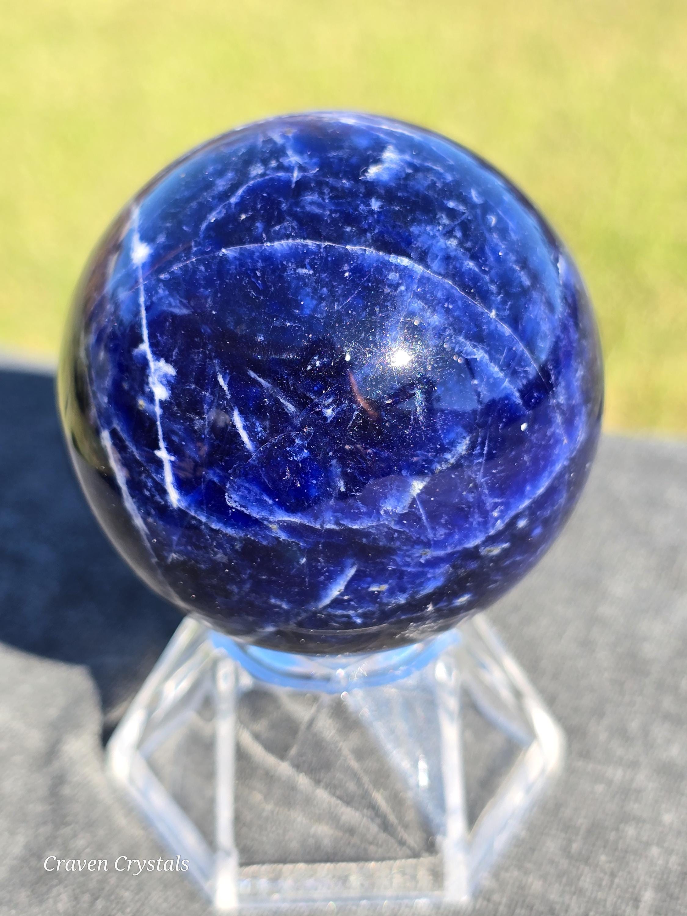 Beautiful, high quality, deep blue Sodalite Crystal Sphere with a stormy appearance