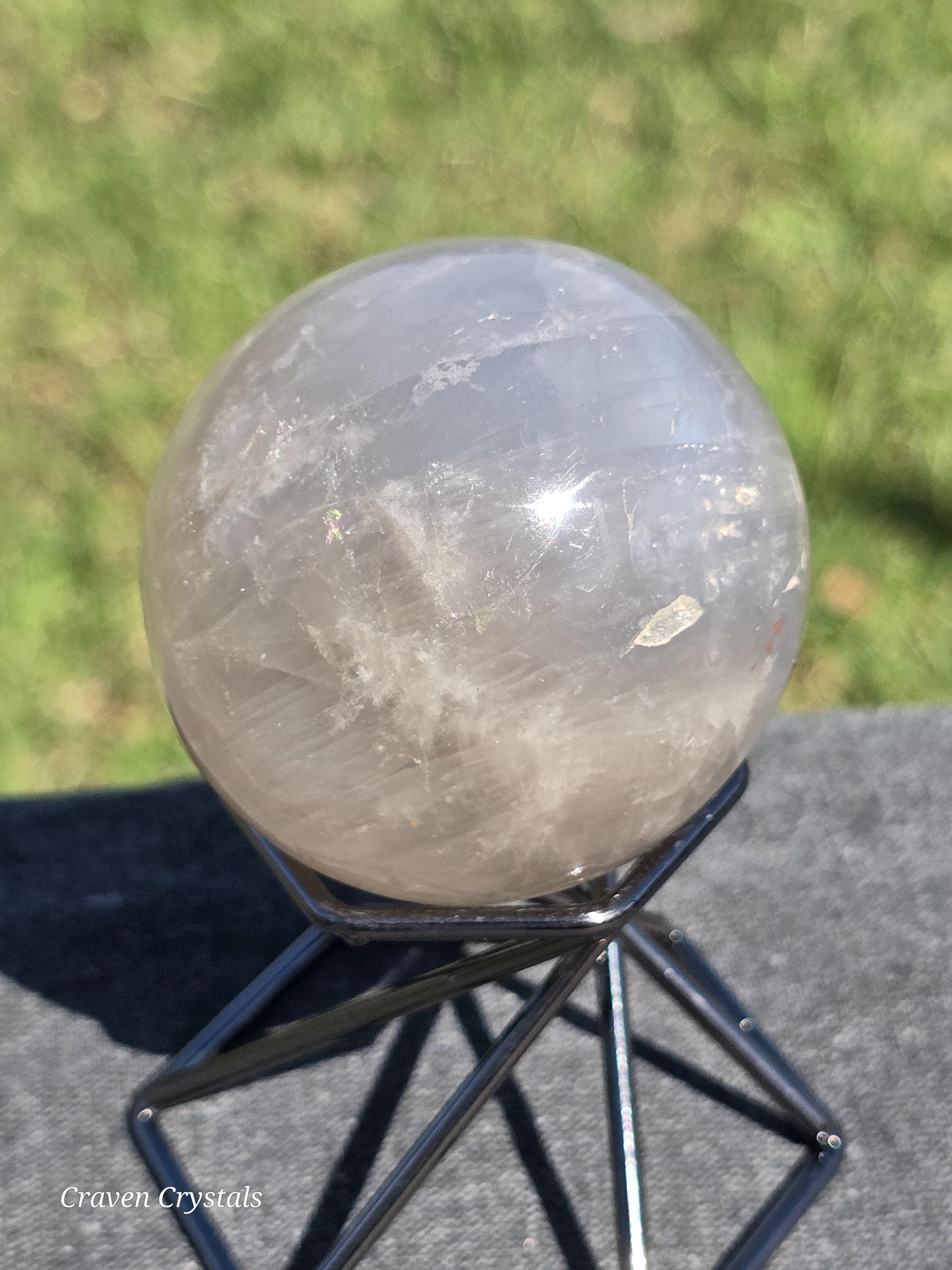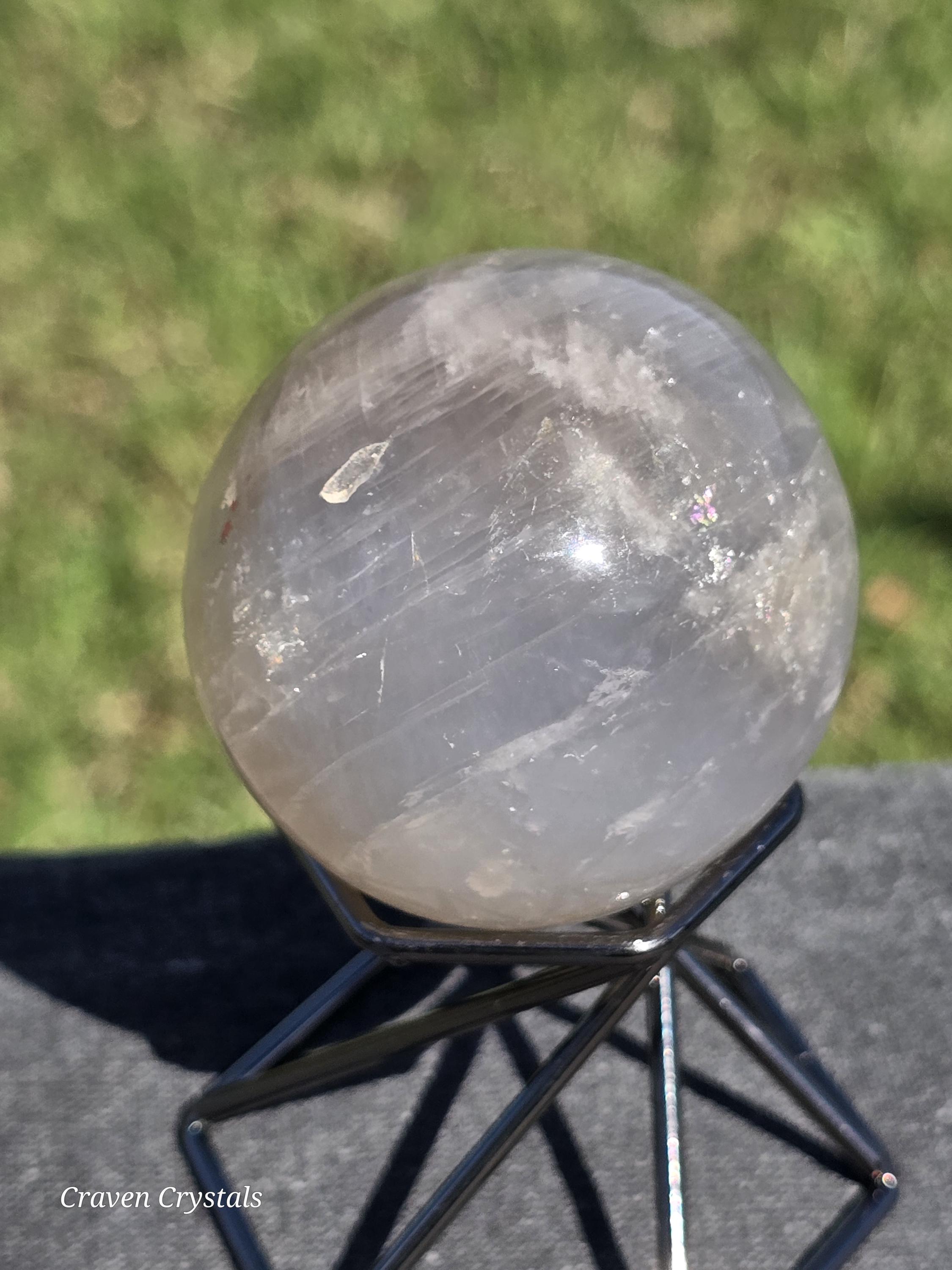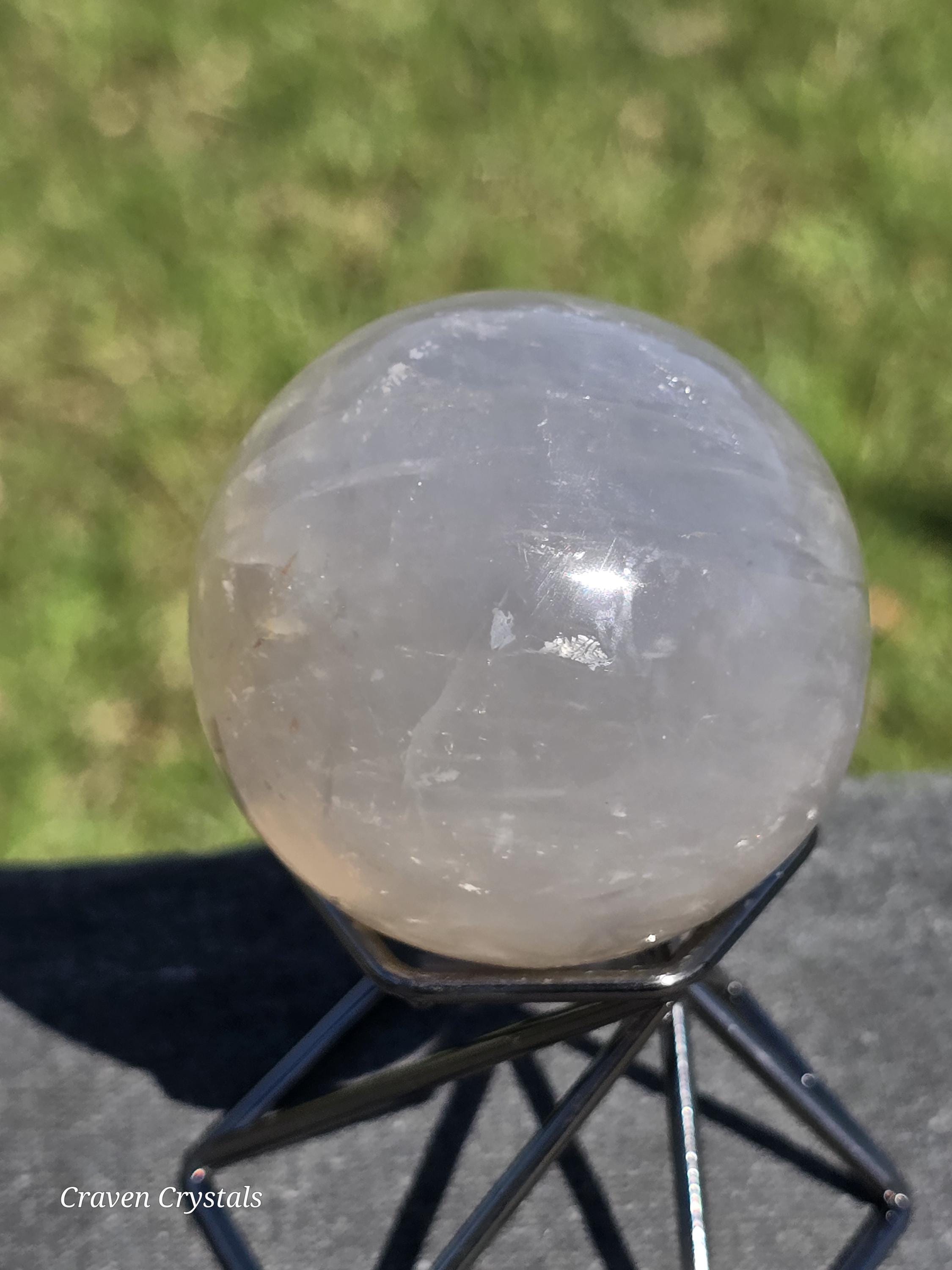 Beautiful Blue Rose Quartz Crystal Sphere with flash