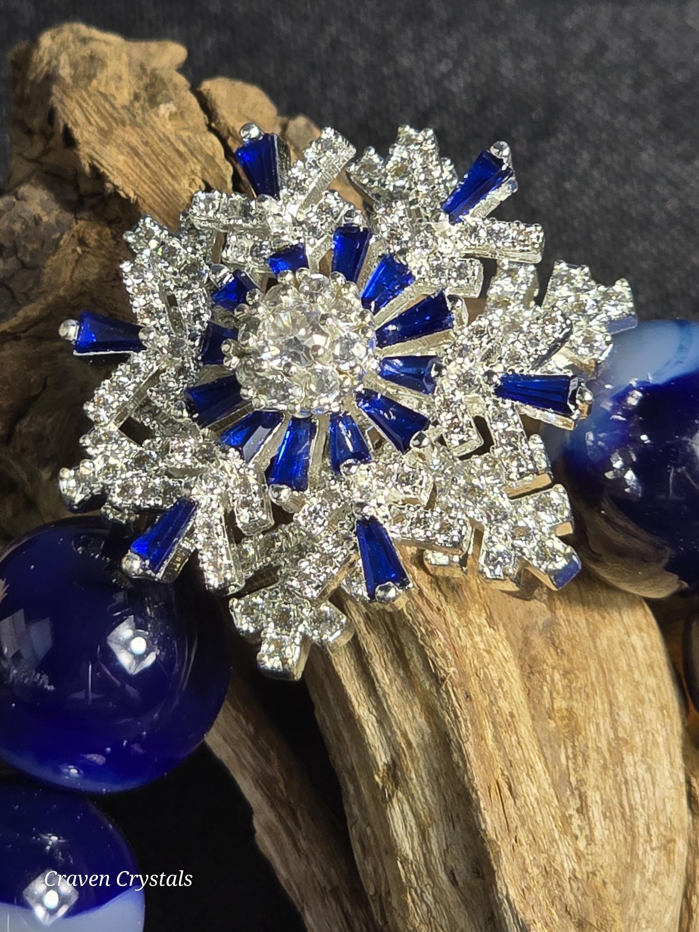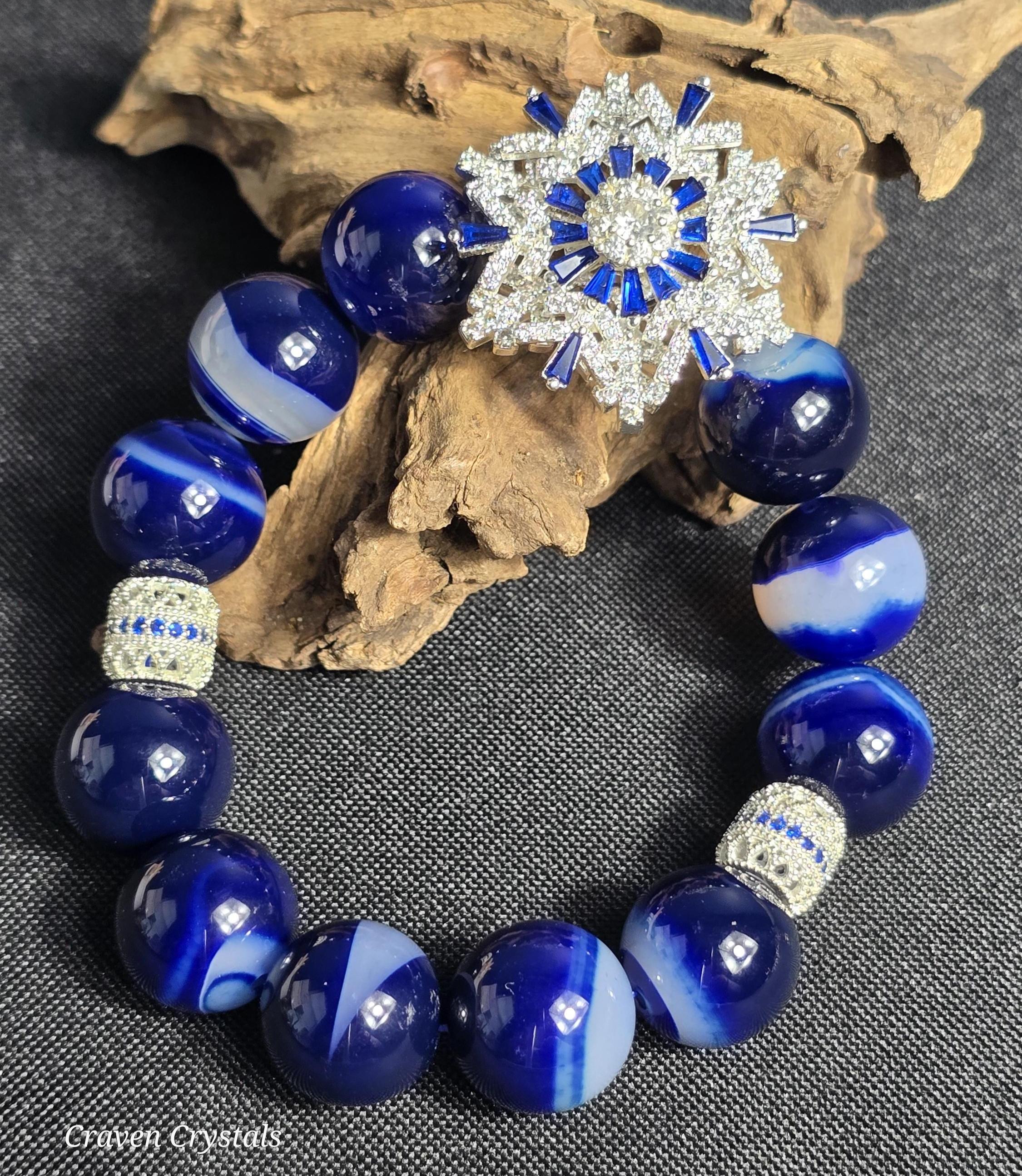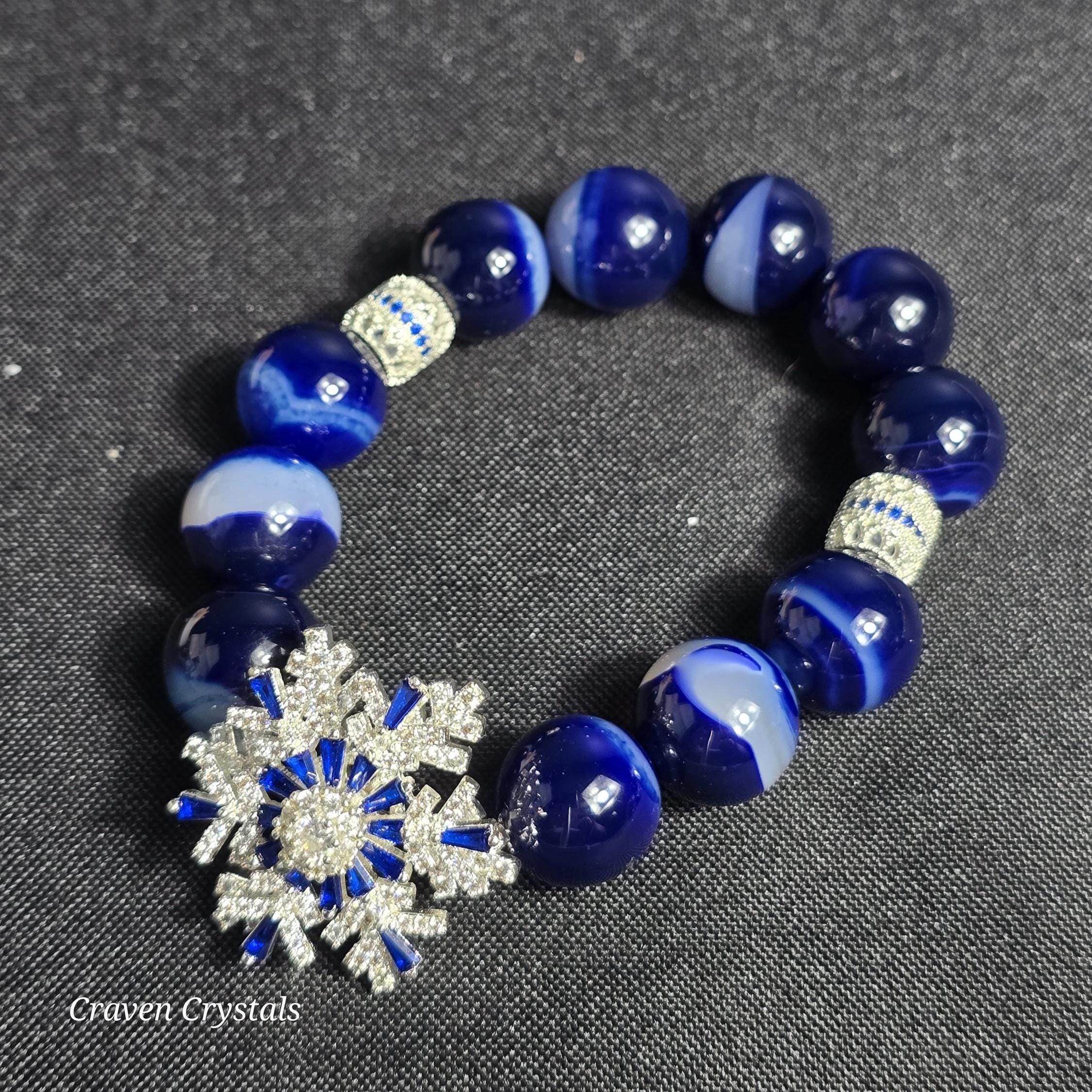Cool, luminous, and endlessly mesmerizing, “Arctic Glow” captures the brilliance of winter light dancing across fresh snow. This bracelet features enhanced blue agate beads, glowing with frosty depth and tranquil color, beautifully accented by silver-tone spacers adorned with shimmering zircon for an elevated, icy sparkle. At the heart of the design is a breathtaking blue and clear zircon spinner snowflake centerpiece — a symbol of individuality, stillness, and quiet wonder. The spinning motion adds a soothing, interactive element, inviting moments of calm, reflection, and winter magic wherever you go.