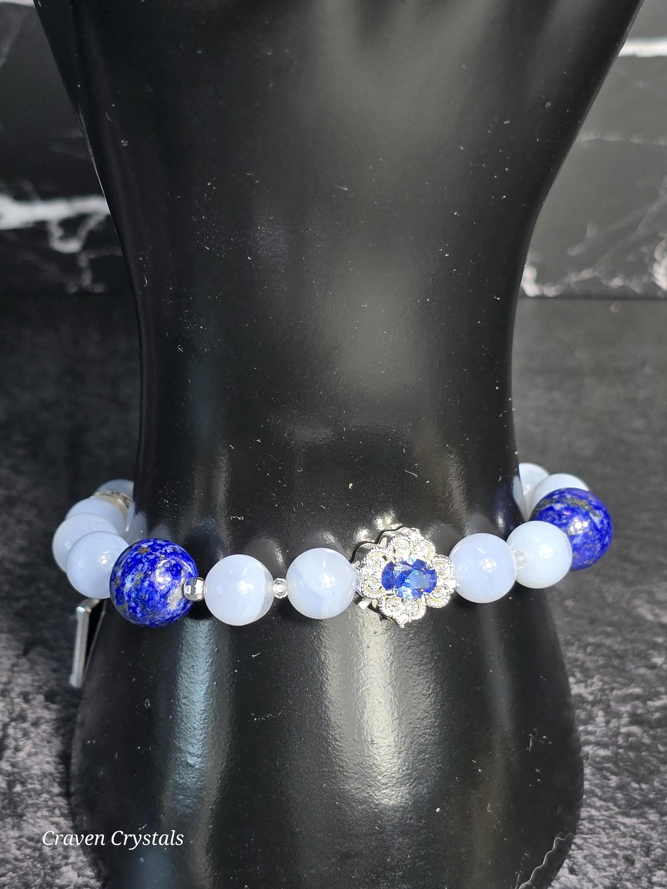 Each Craven Crystals bracelet is thoughtfully handcrafted using natural stones, elastic cord, and carefully selected metals. To preserve the beauty and integrity of your piece, handle it with care and avoid excessive stretching. Bracelets should be rolled on and off the wrist rather than pulled, especially those made with elastic. It is recommended to remove your bracelet before sleeping, bathing, swimming, exercising, or performing household tasks, as moisture, chemicals, and impact can weaken elastic, dull metals, and damage stones. Sterling silver and mixed metal components may naturally develop a soft patina or tarnish over time. This is a normal process and can be minimized by keeping your jewelry dry and storing it in a soft pouch or jewelry box when not in use. A gentle wipe with a soft, dry cloth after wearing helps remove natural oils and maintain shine. Avoid submerging bracelets in water or using chemical or ultrasonic cleaners. For sterling silver accents only, a silver polishing cloth may be used. Delicate beads, glass, shell, charms, and detailed focal pieces should be protected from hard knocks or pressure, as natural and specialty materials can chip or crack if dropped. Crystals, stones, and shells are natural materials and may display unique variations in color, texture, or pattern. These characteristics are part of what makes each Craven Crystals piece one of a kind. With mindful care, your bracelet will continue to bring beauty, meaning, and enjoyment for years to come.