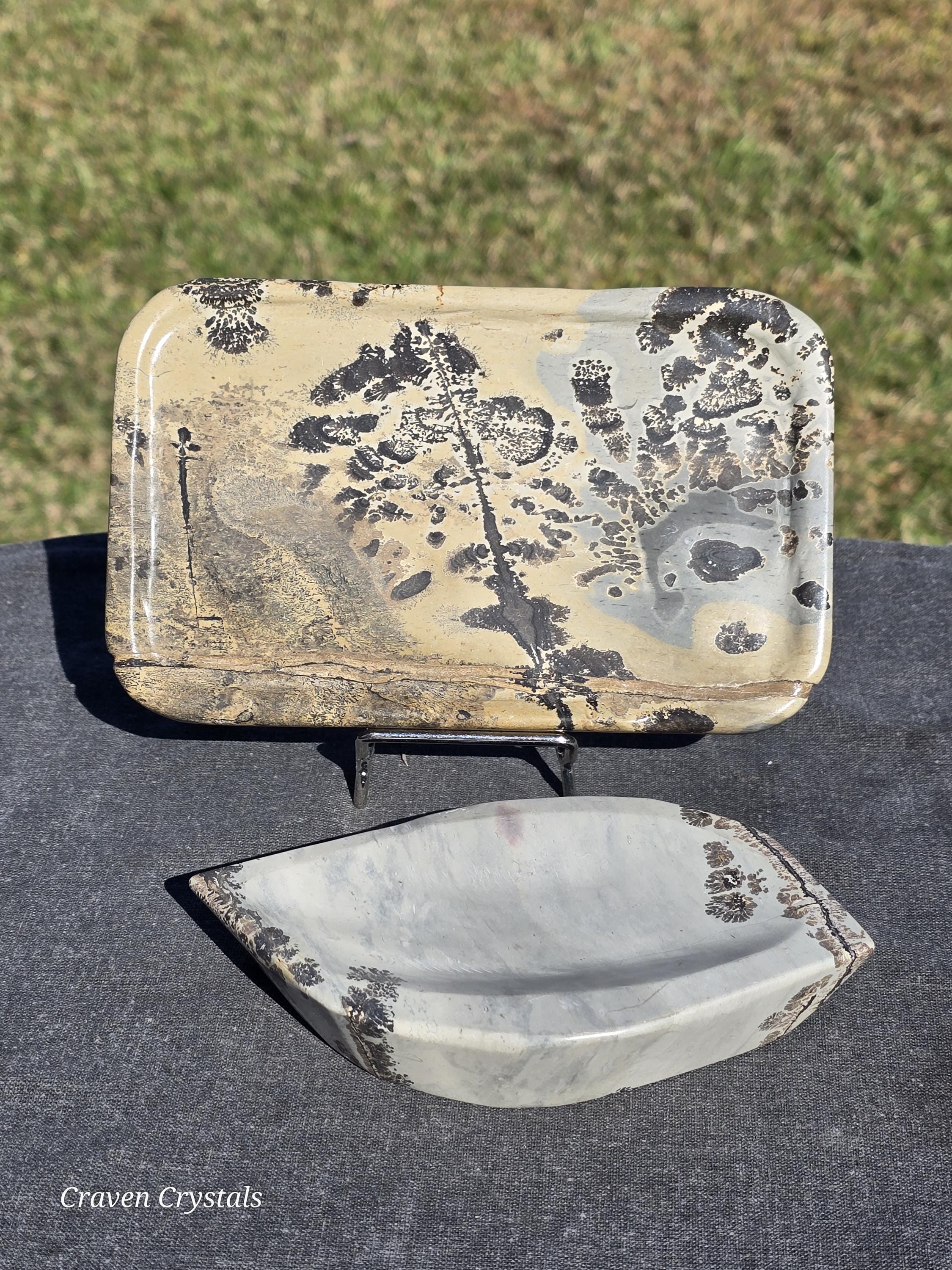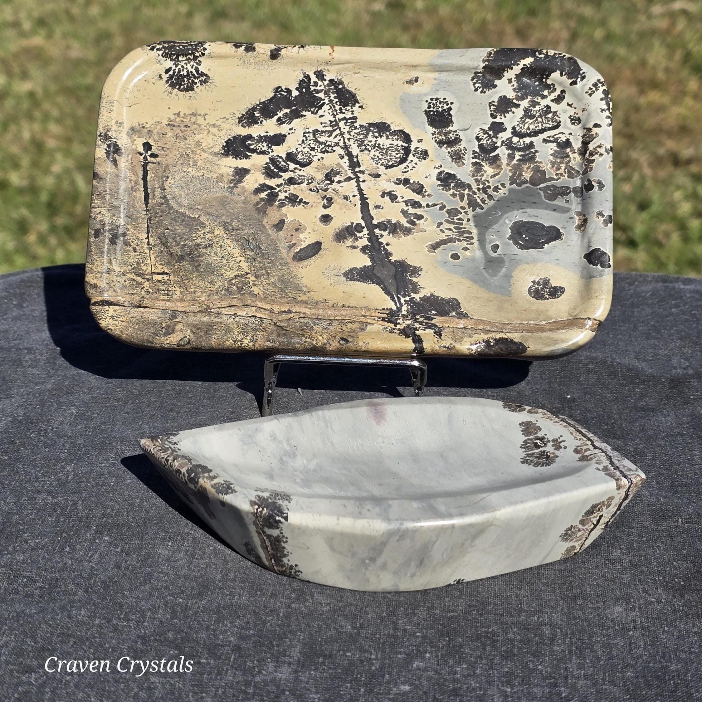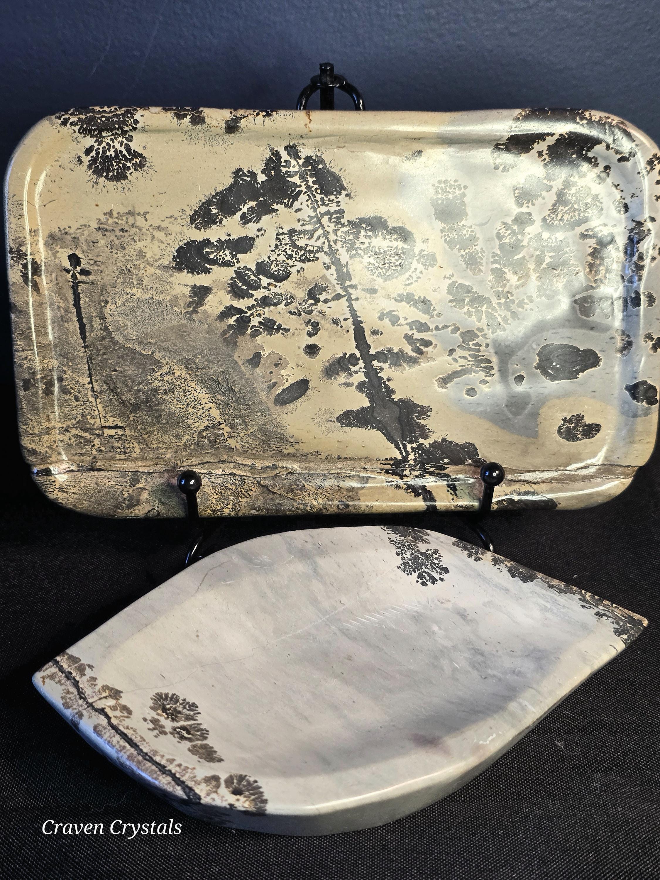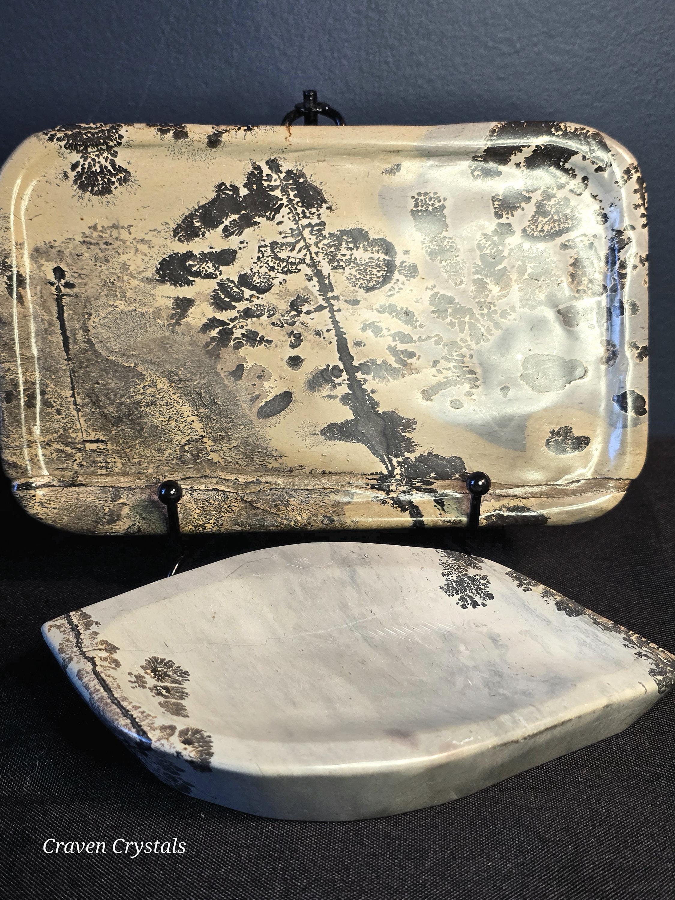 No two pieces are alike, featuring breathtaking landscapes of warm, earthy tones and delicate veining. Perfect for holding jewelry, keepsakes, or simply as a statement décor piece. Picture Jasper is known for its nurturing and stabilizing properties, making it a powerful addition to any sacred space. Whether as a meaningful gift or a timeless addition to your home, this Picture Jasper plate embodies elegance, energy, and natural beauty. Own a piece of Earth’s artwork today. 🌎✨