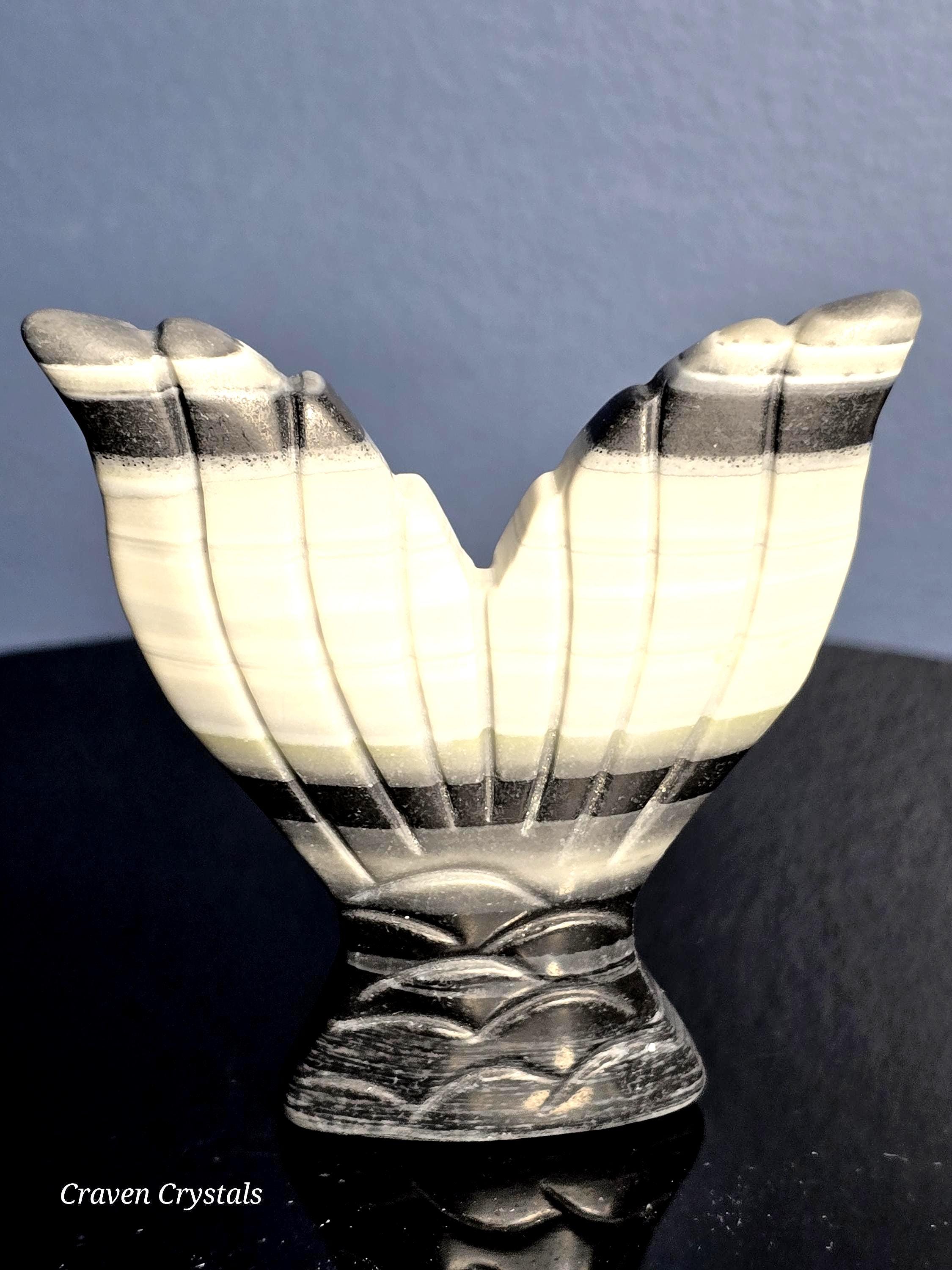 Dive into the mystique of the sea with this enchanting Taiji Jasper Mermaid Tail carving. Taiji Jasper, known for its patterns of white, gray and black, mirrors the eternal dance of yin and yang — balance, harmony, and the cycles of nature.