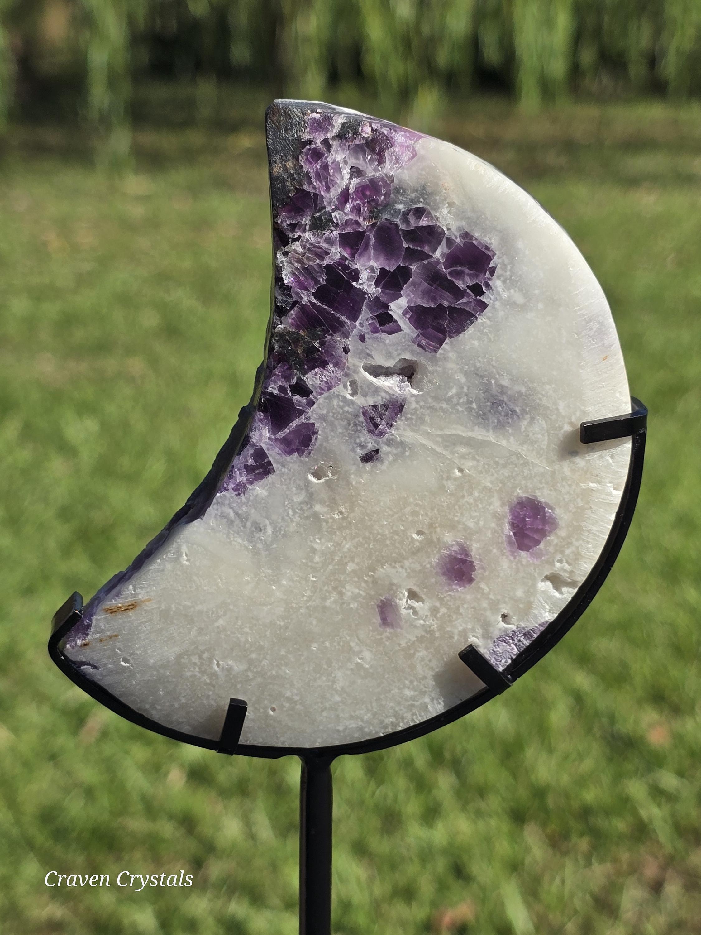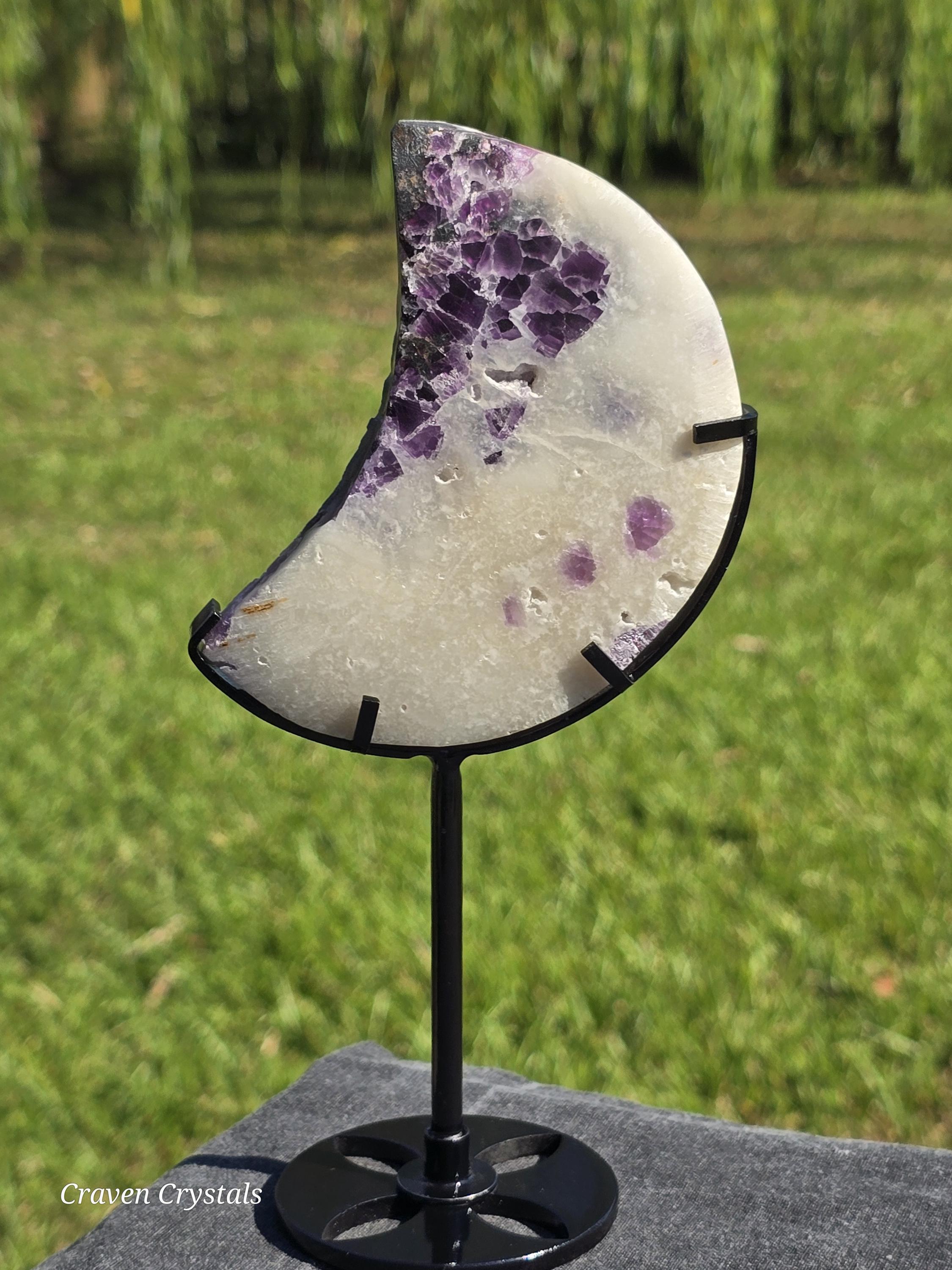 Moon-shaped crystals are often associated with lunar energy and the moon's cycles. The moon is linked to feminine energy, intuition, emotions, and the ebb and flow of life. Crystals shaped like moons are used to harness and amplify these lunar qualities.
