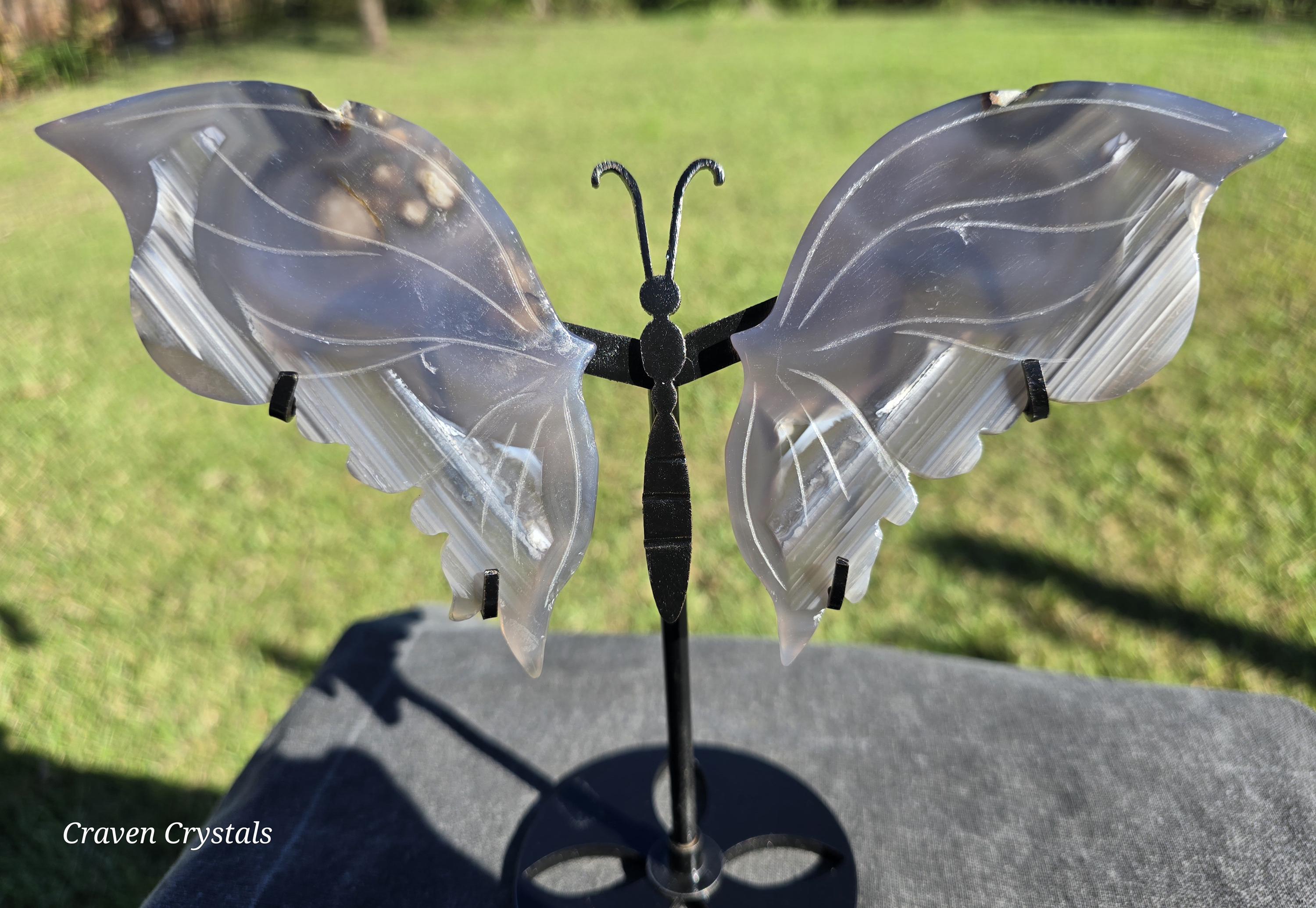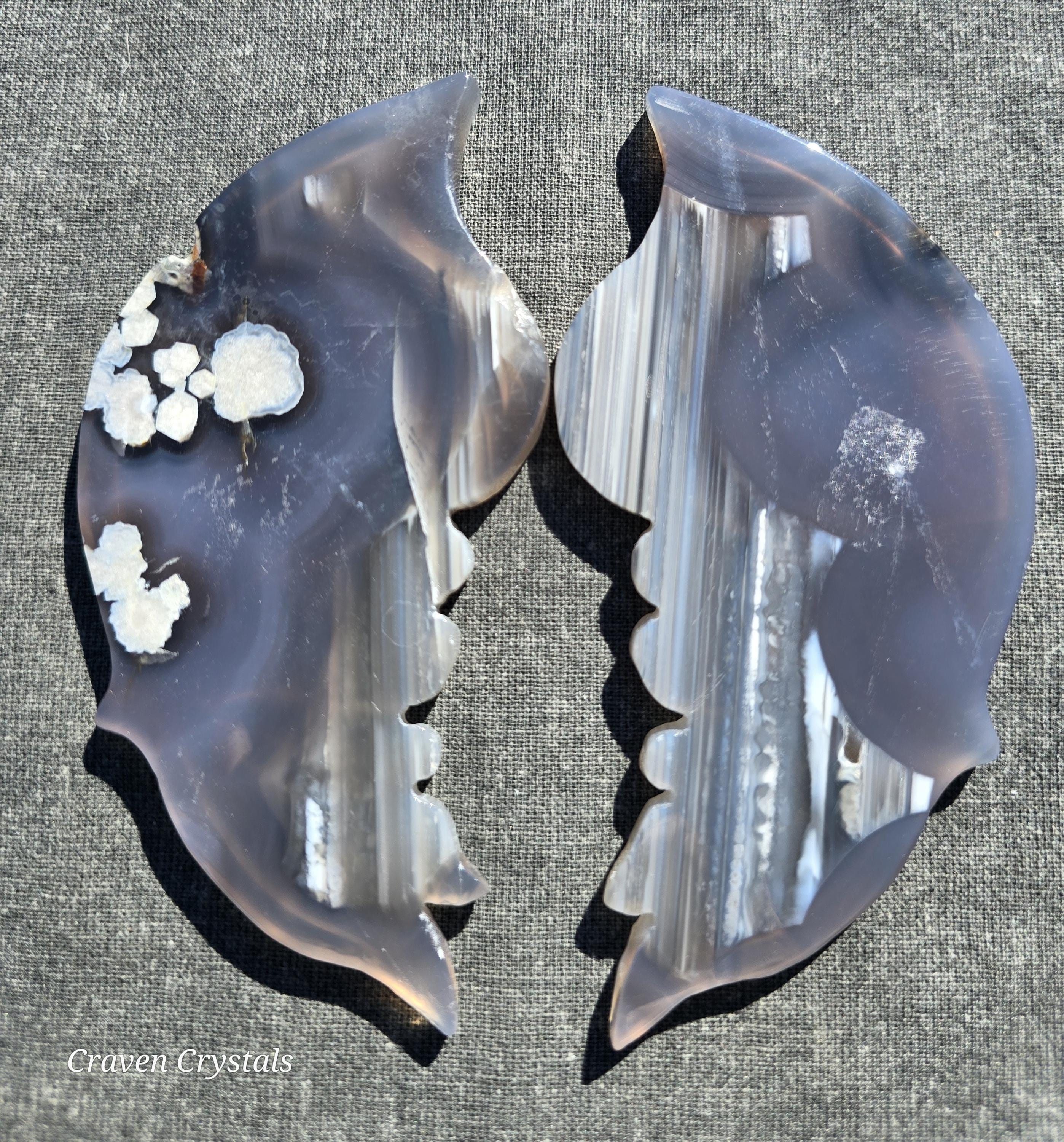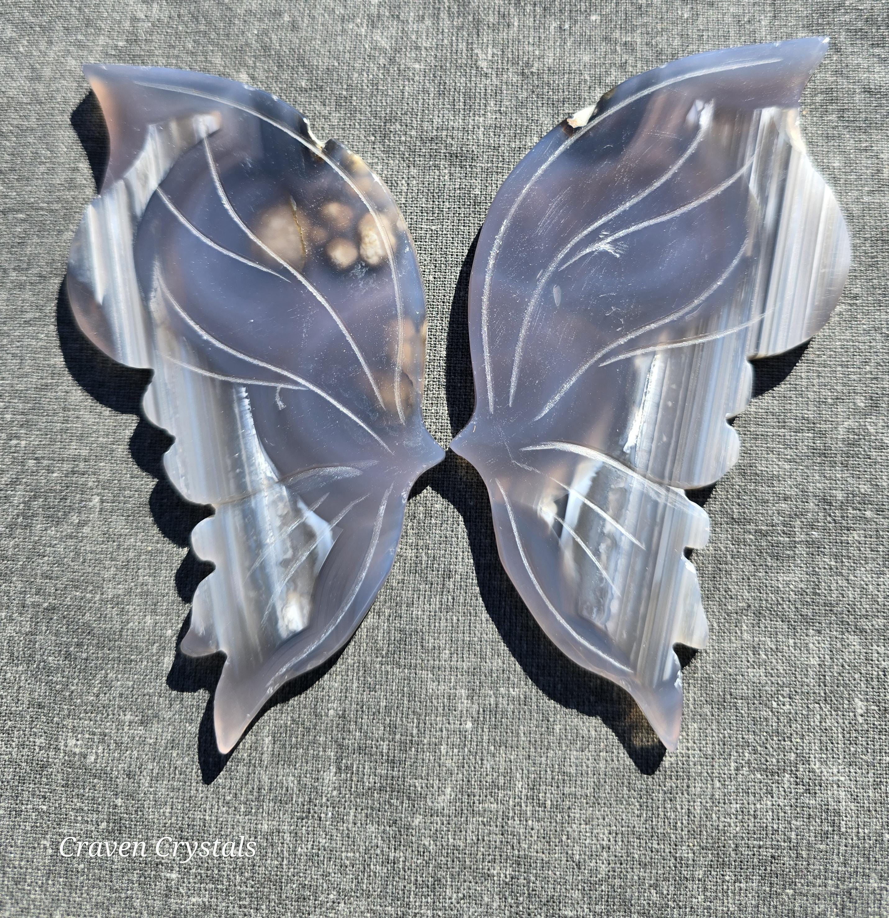 Beautiful Black Flower Agate Crystal Butterfly Wings with delicate flowering and stunning banding