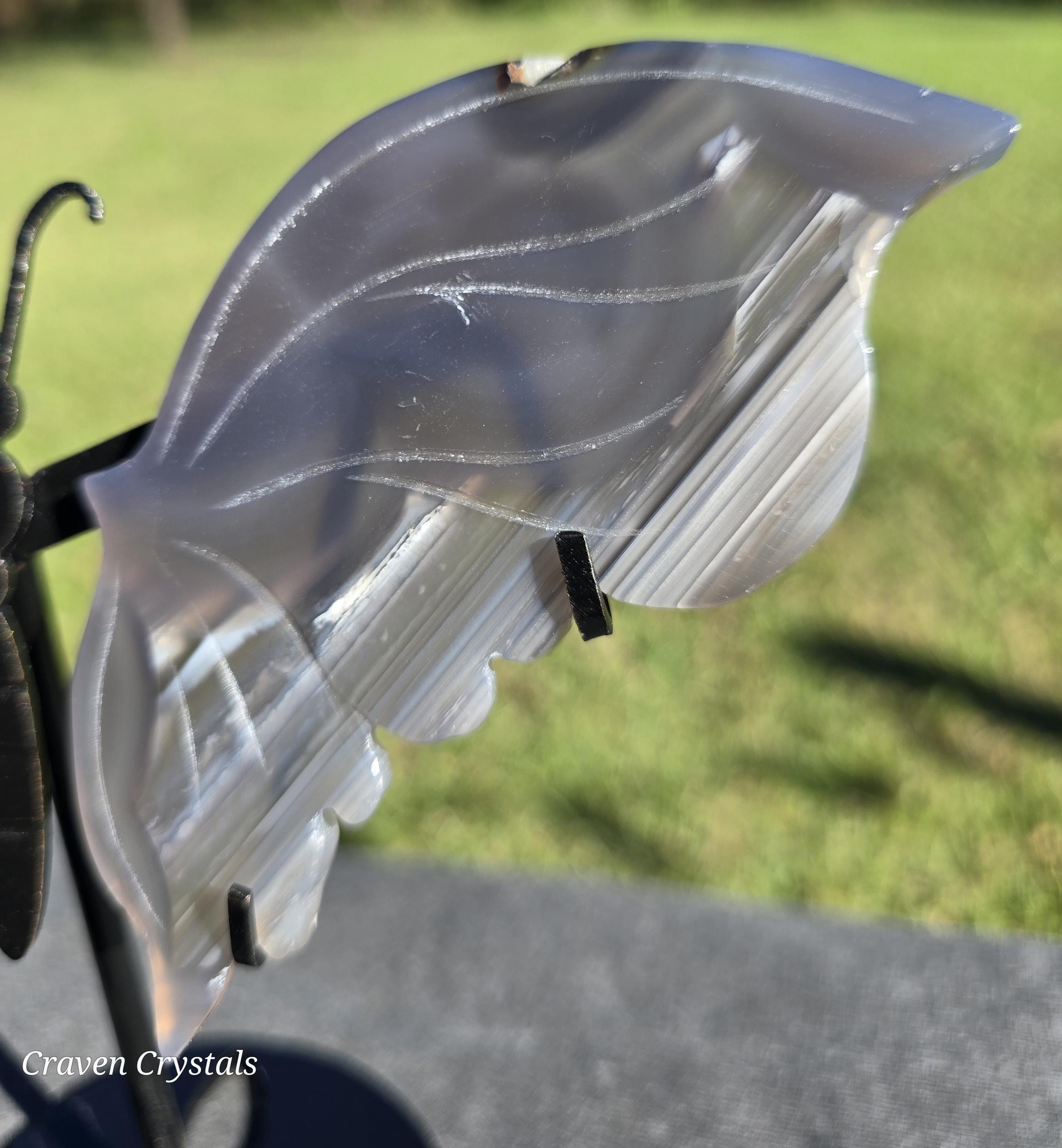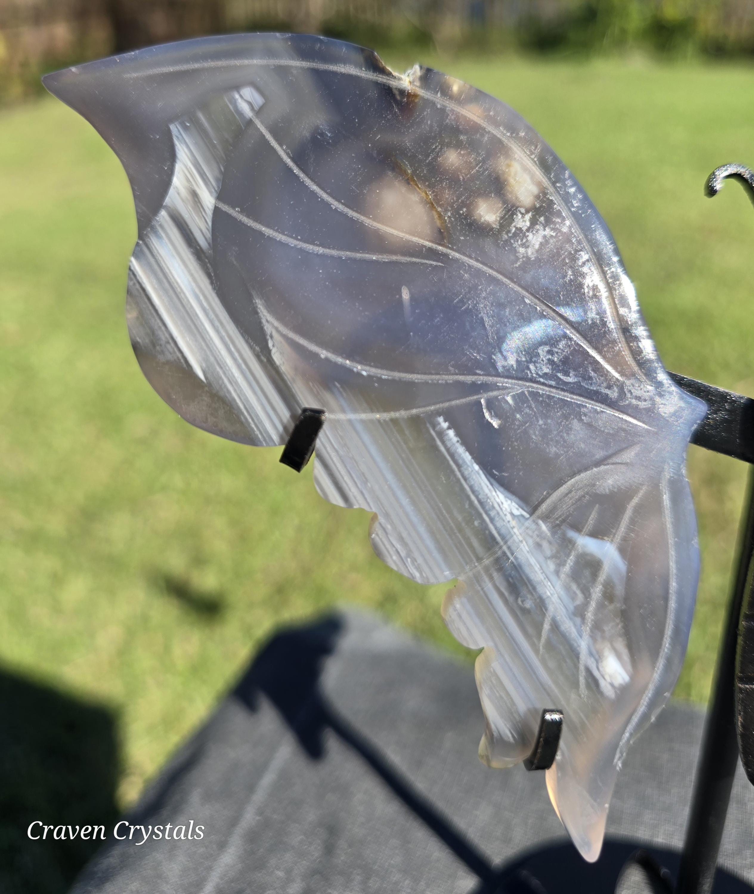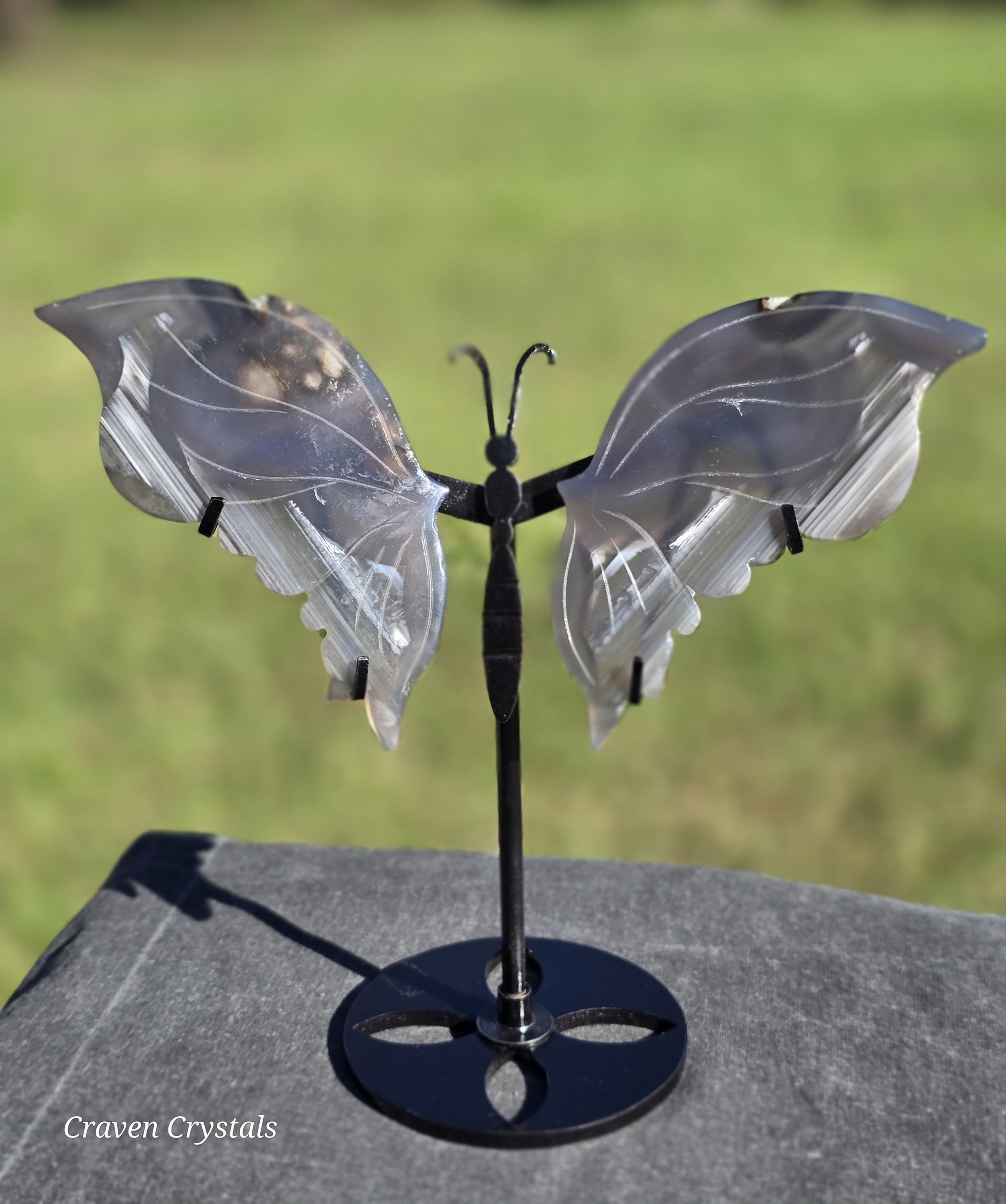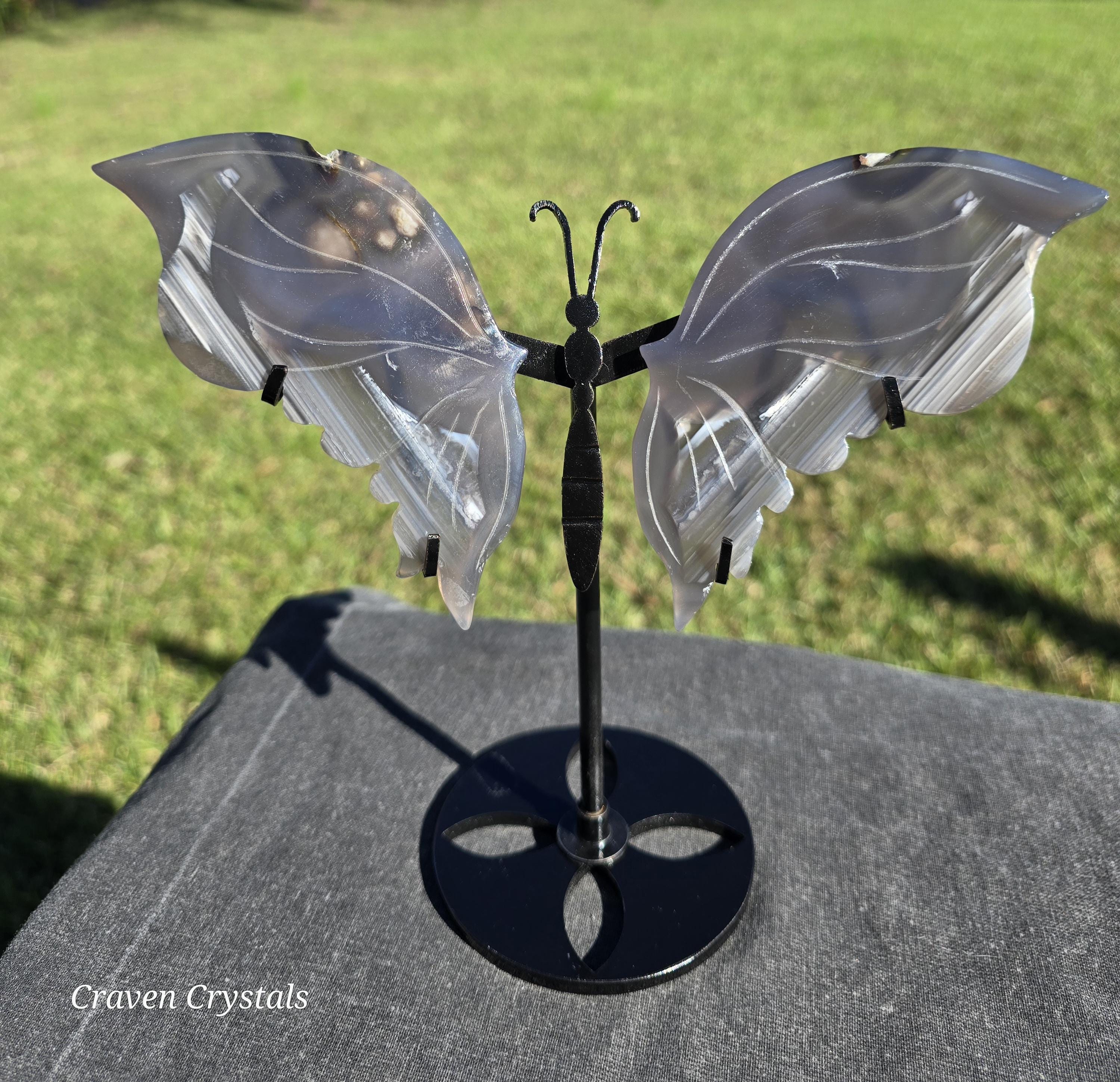 Beautiful Black Flower Agate Crystal Butterfly Wings with delicate flowering and stunning banding