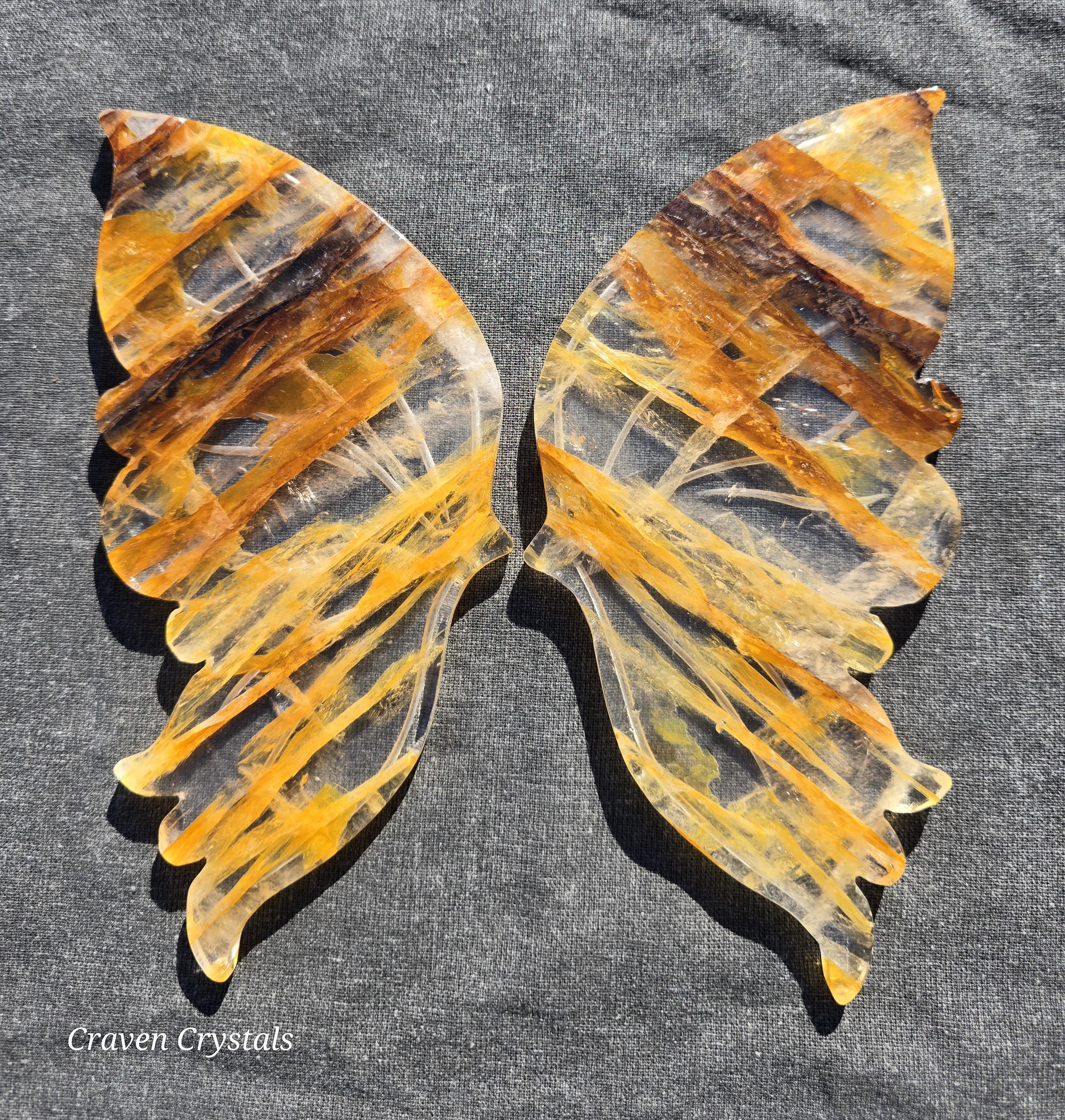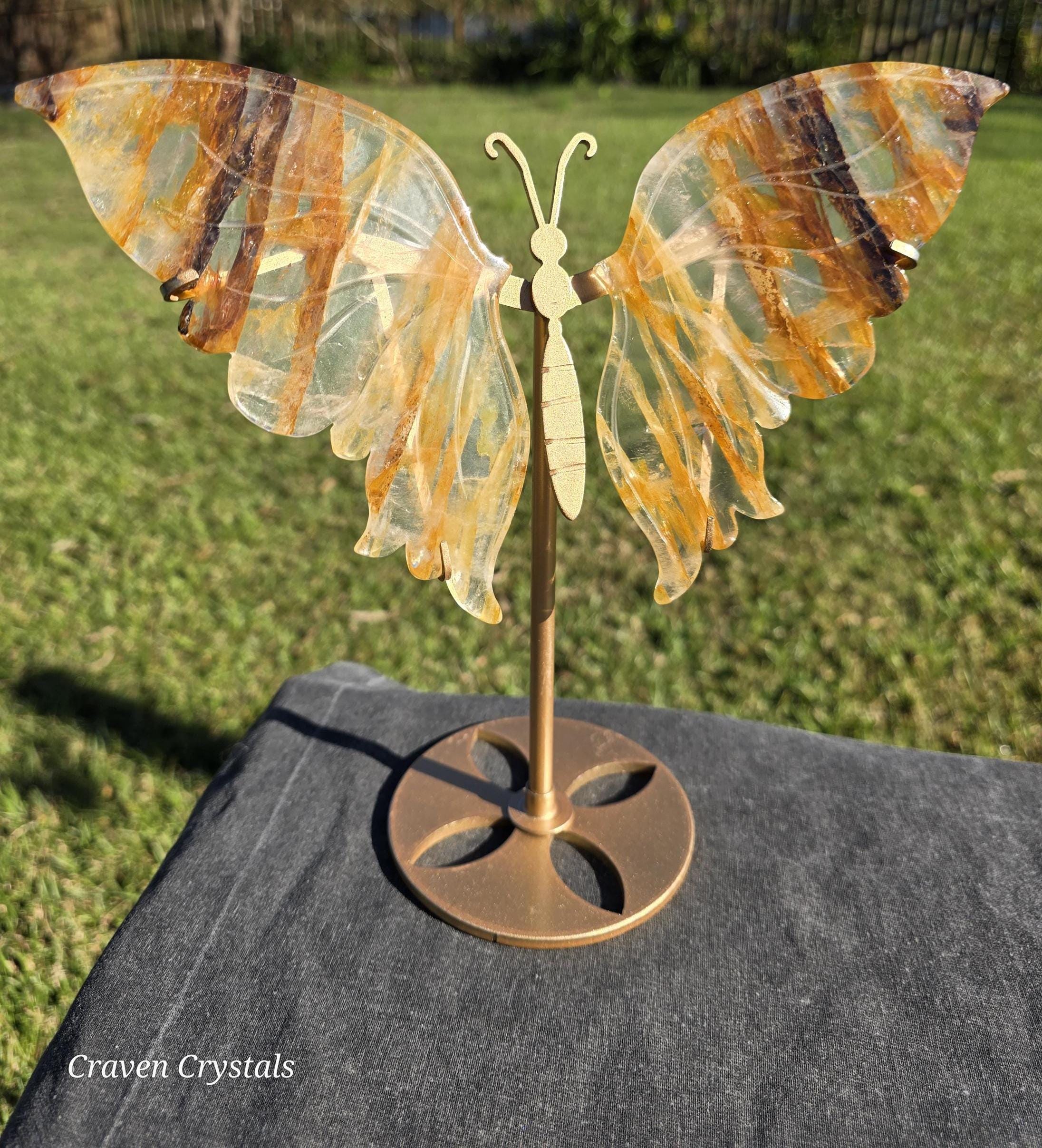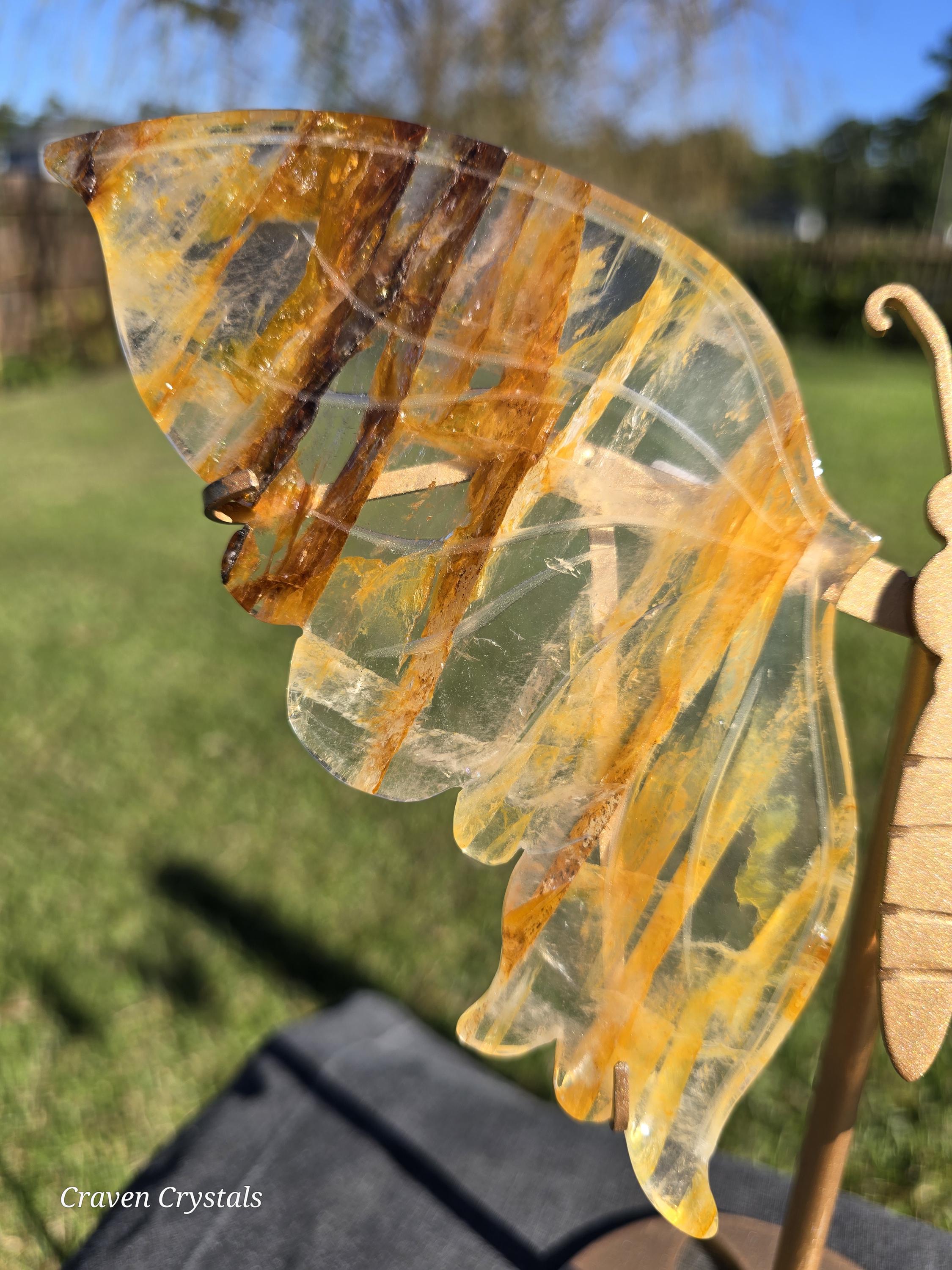 Stunning, super clear, Golden Healer Crystal Butterfly Wings with striking golden caramel streaks.